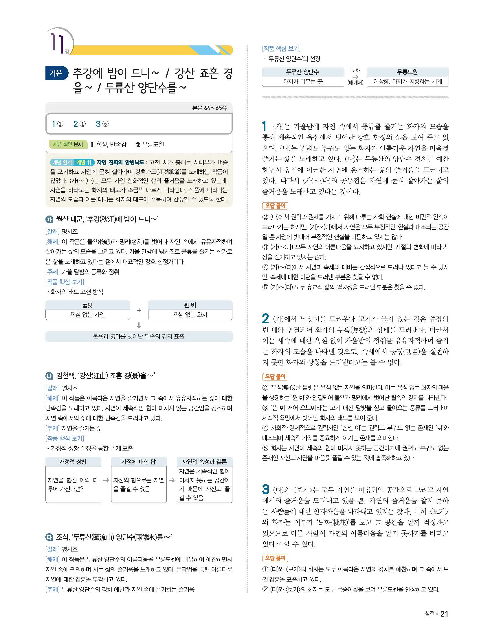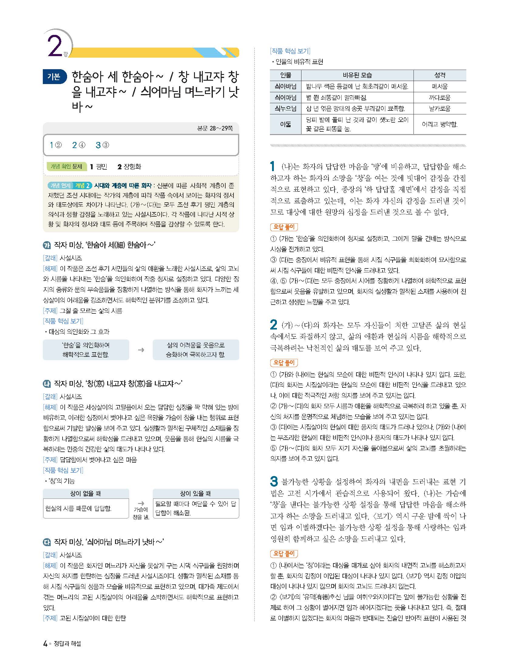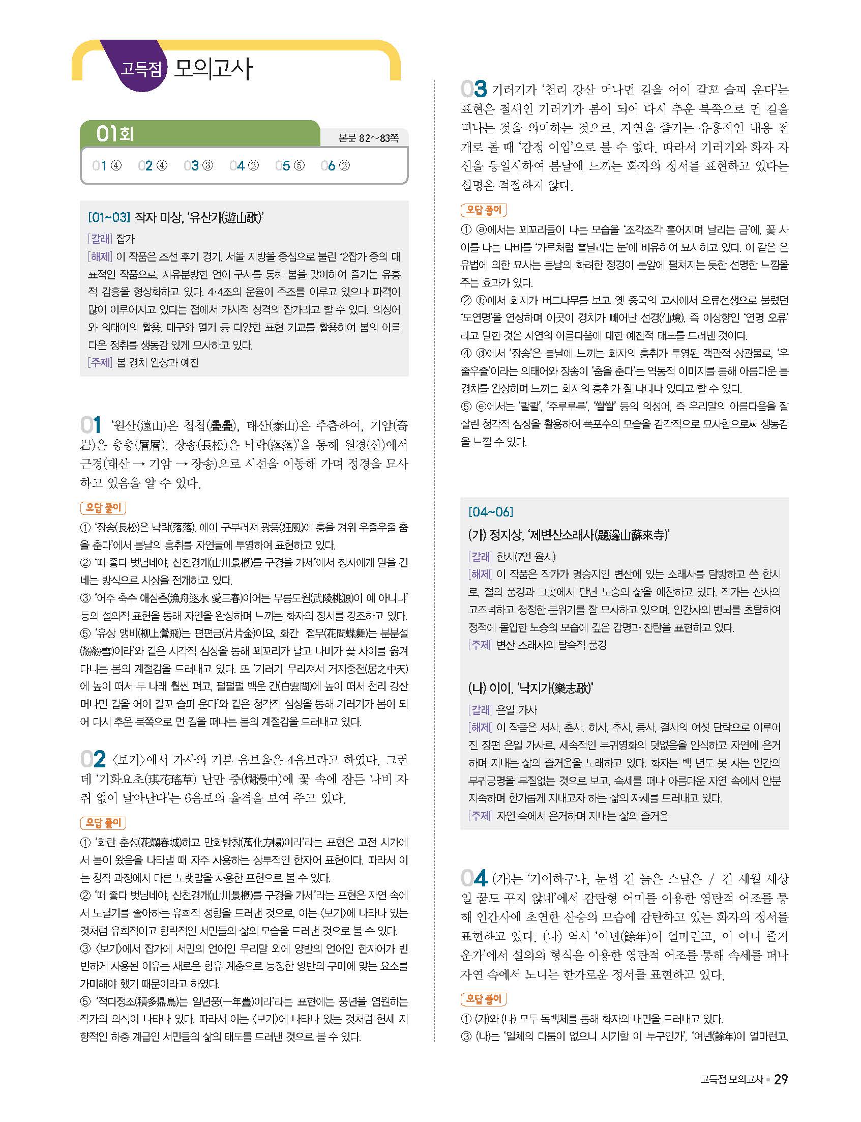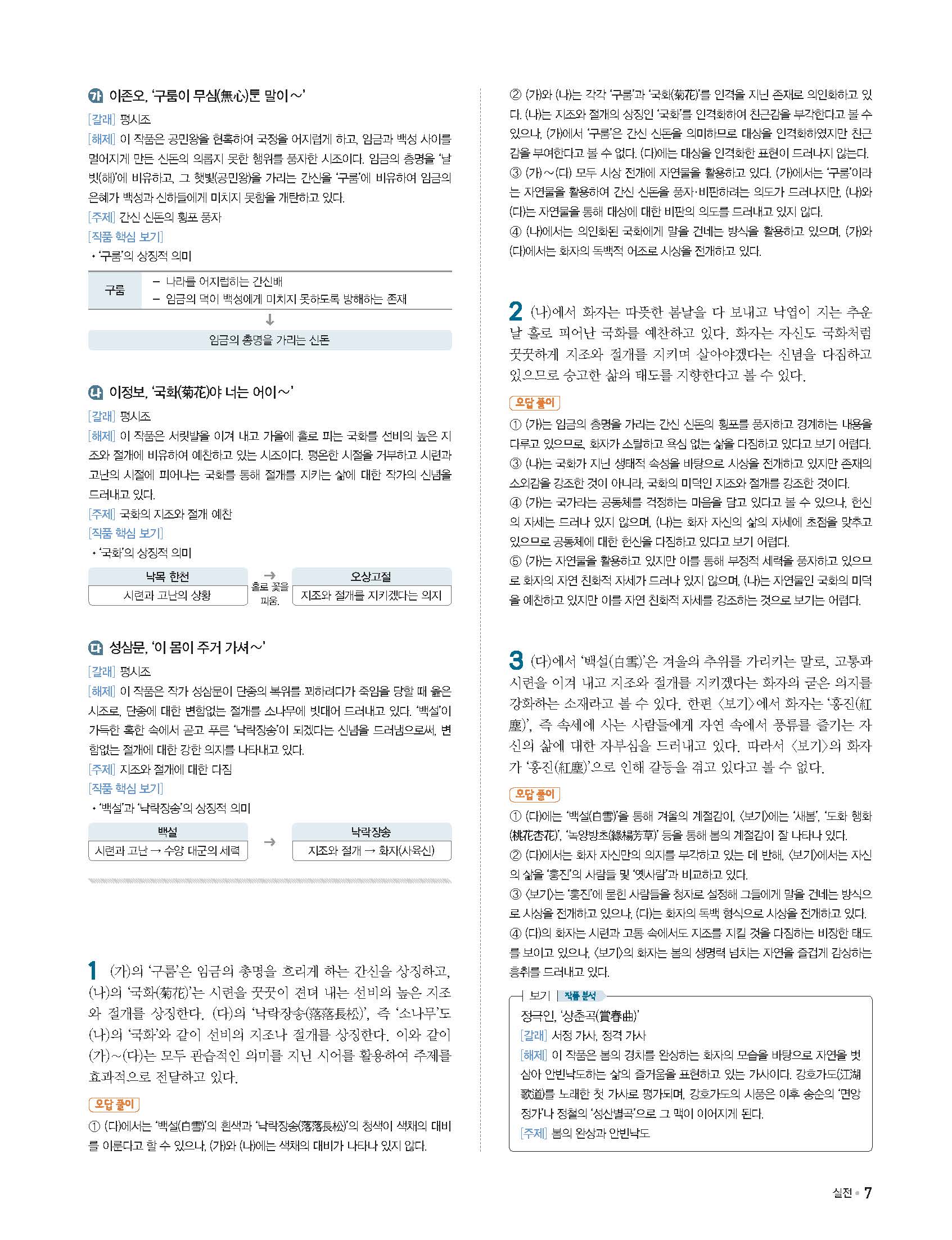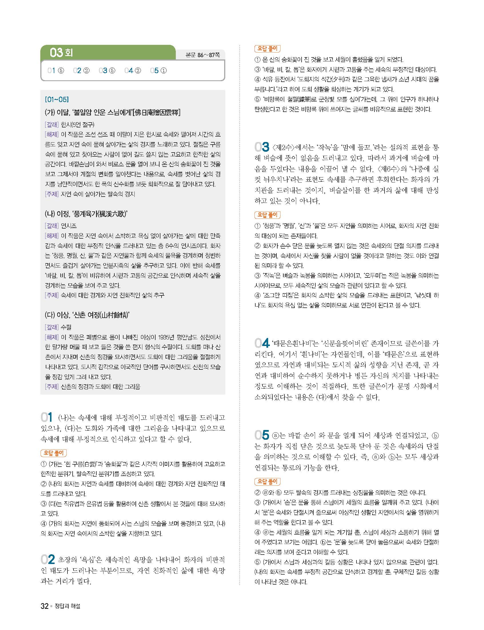단기특강 국어영역 고전시가 답지 해설 사진답지 빠른답지 모바일최적화
