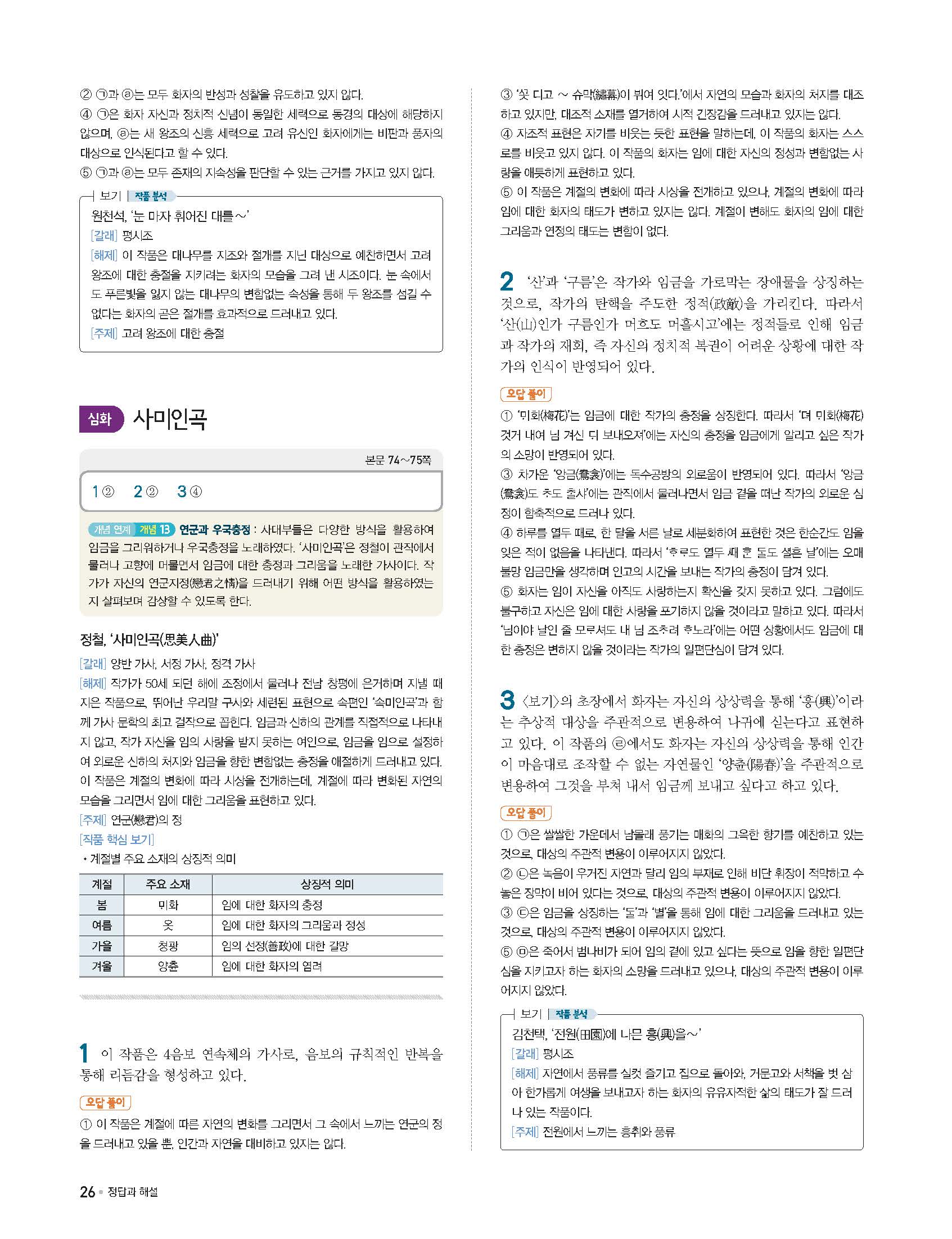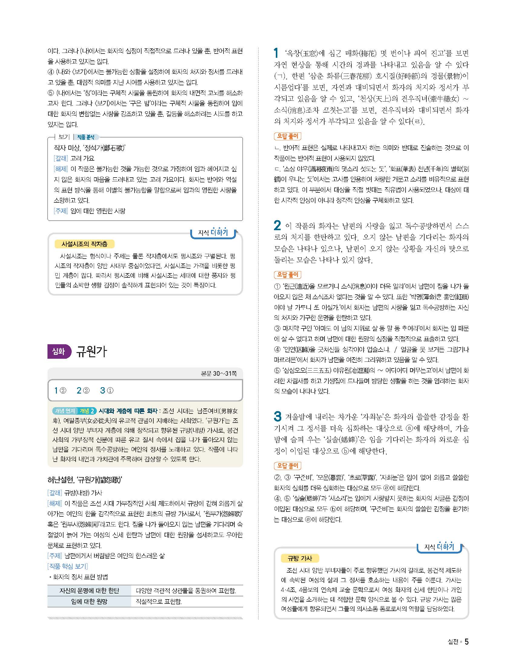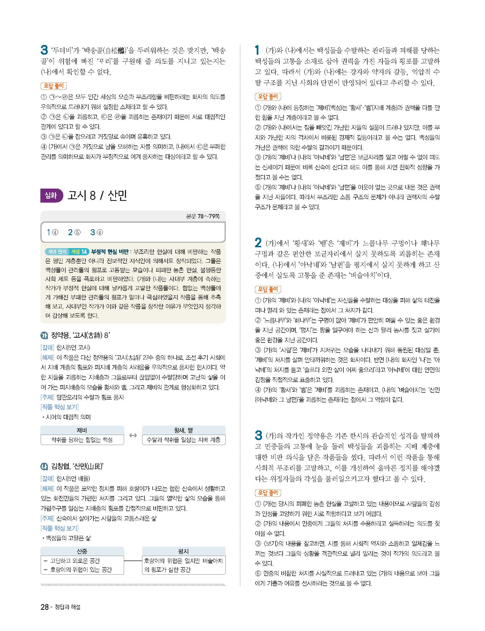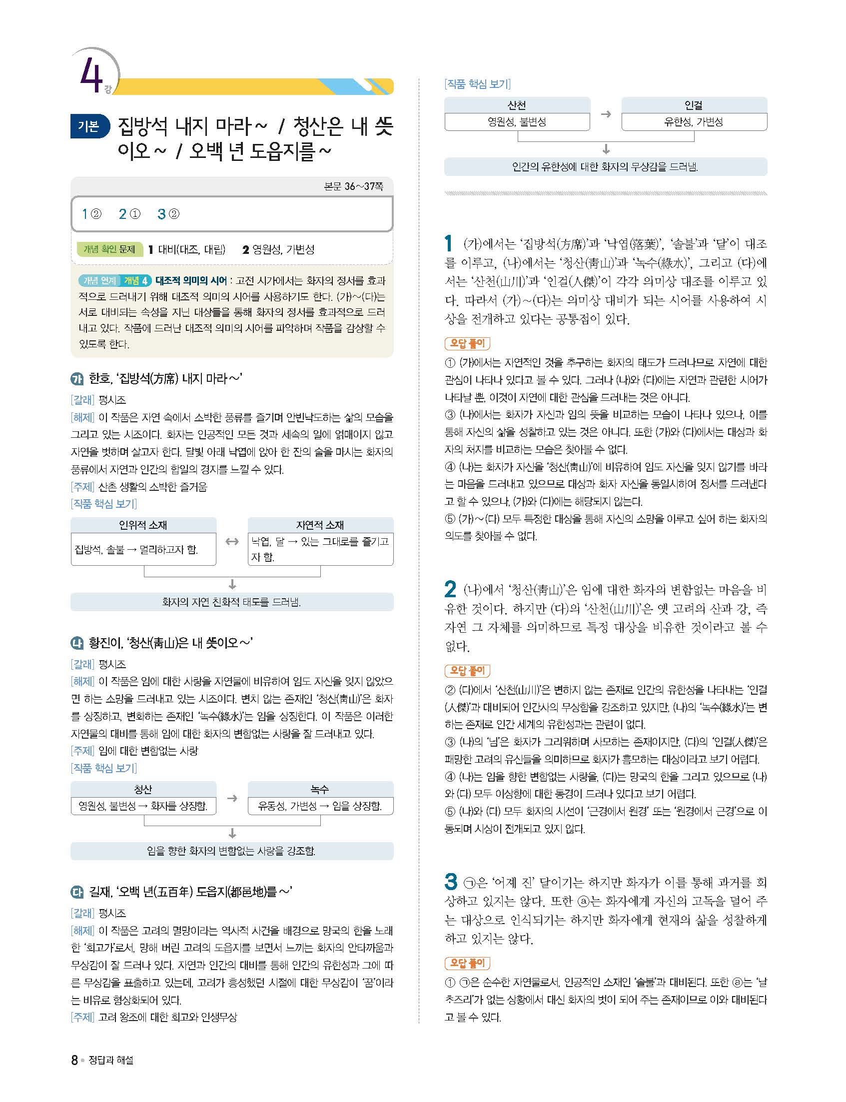 단기특강 국어영역 고전시가 답지 해설 사진답지 빠른답지 모바일최적화