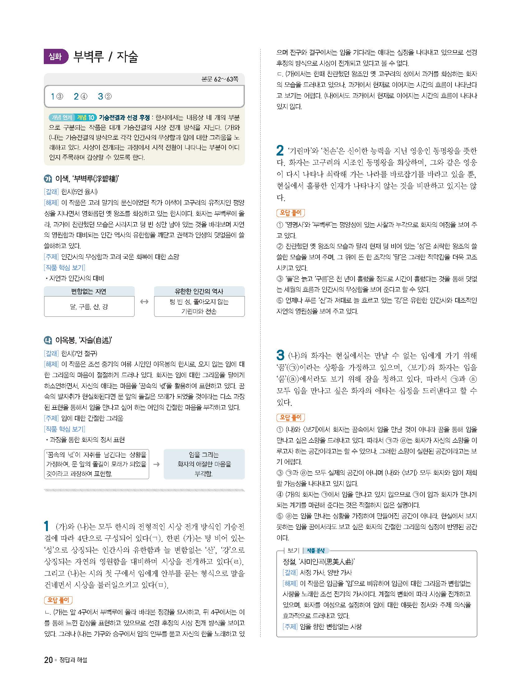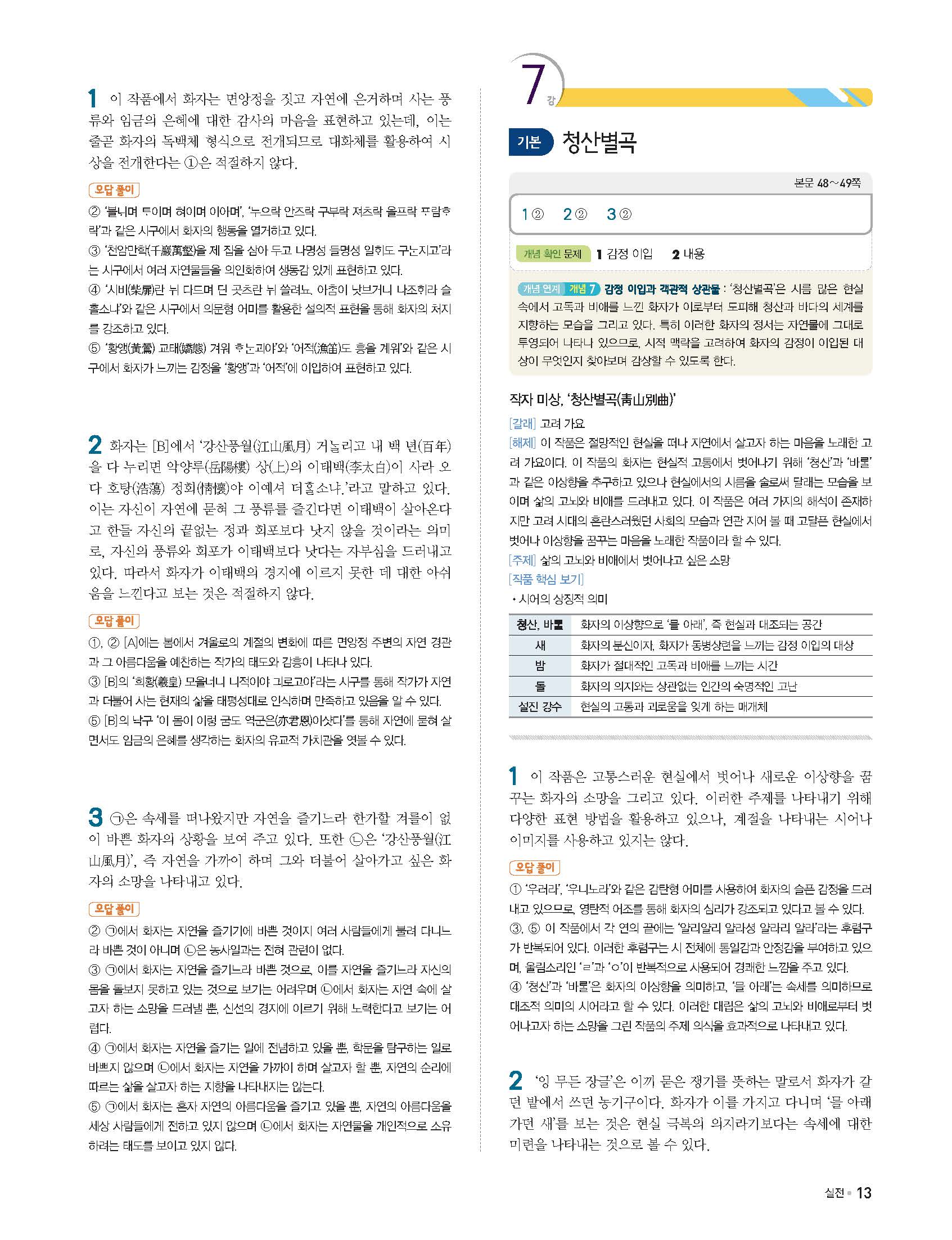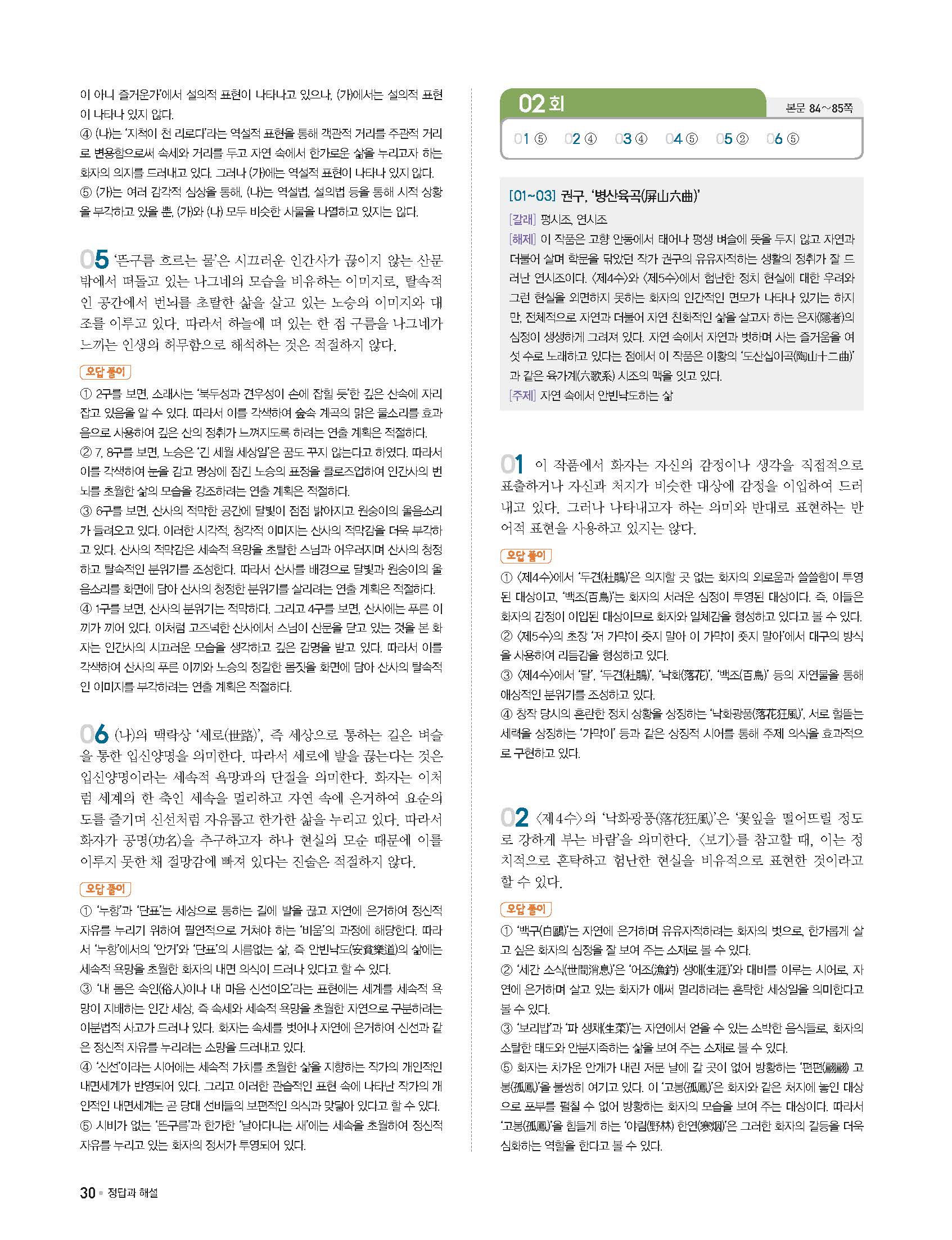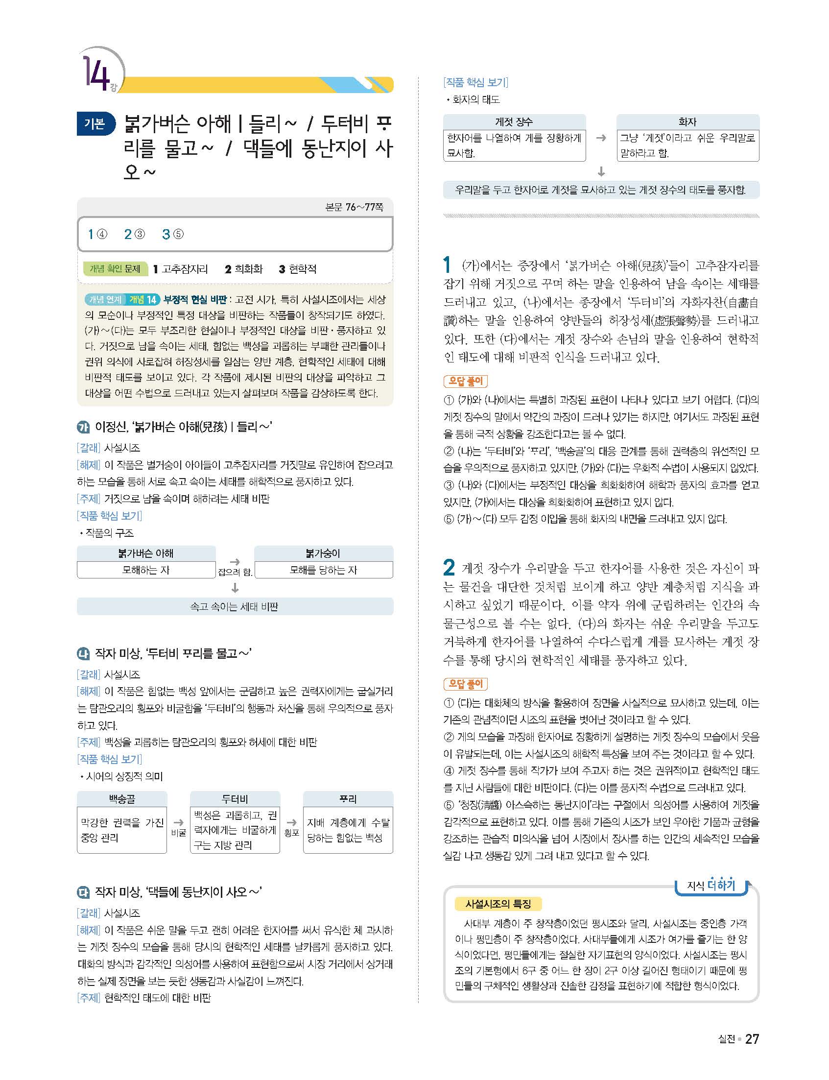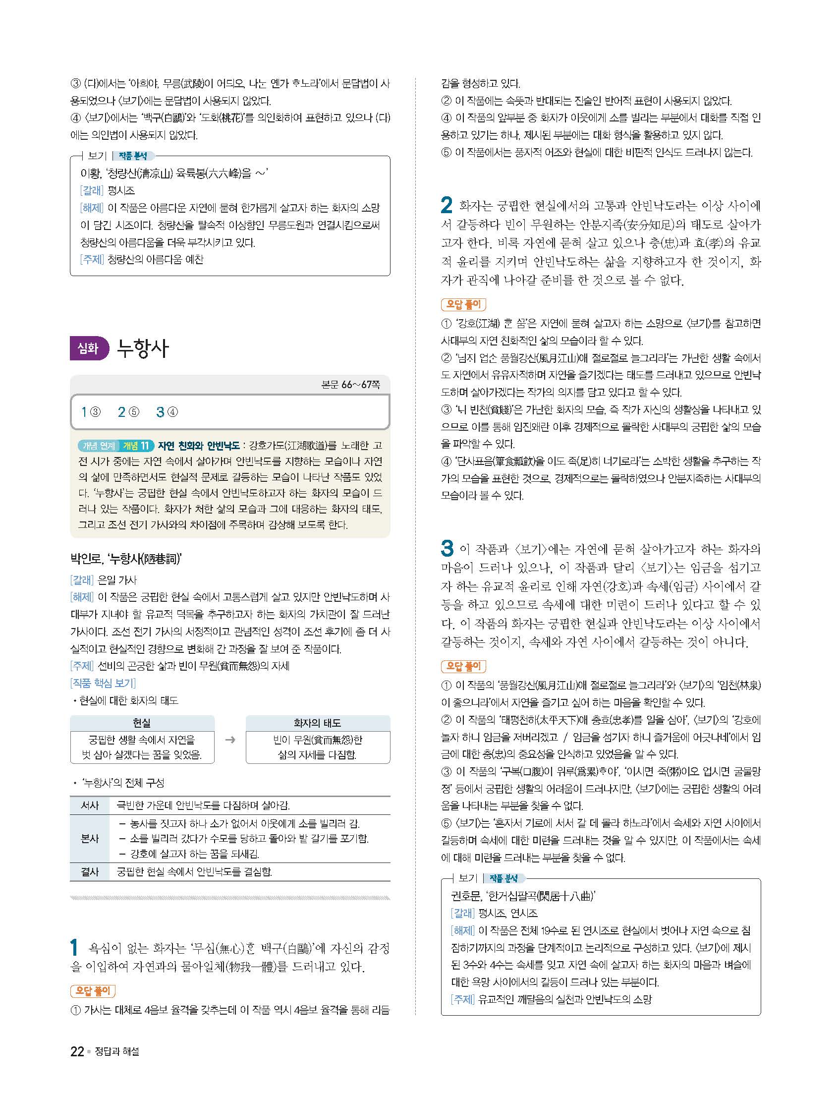 단기특강 국어영역 고전시가 답지 해설 사진답지 빠른답지 모바일최적화