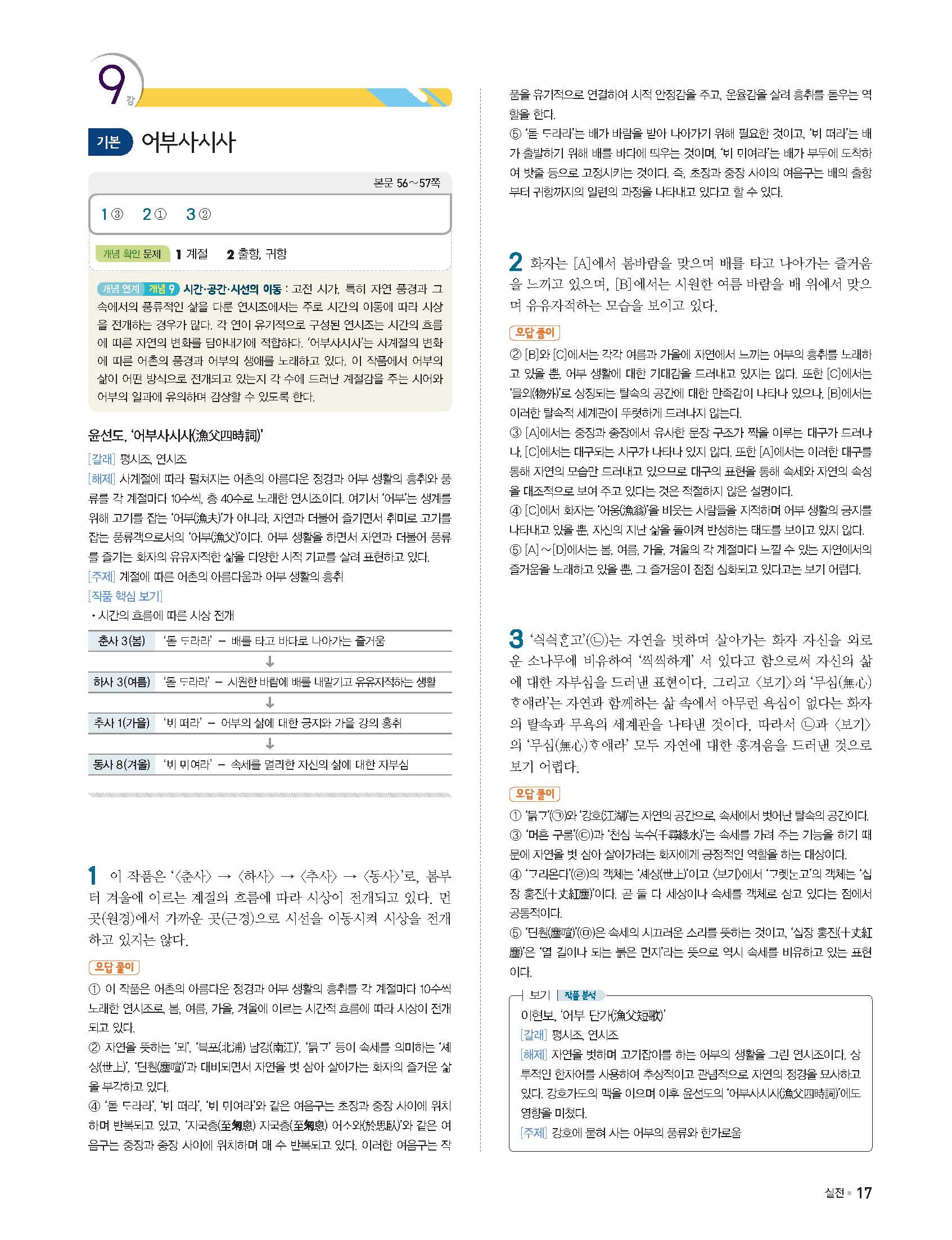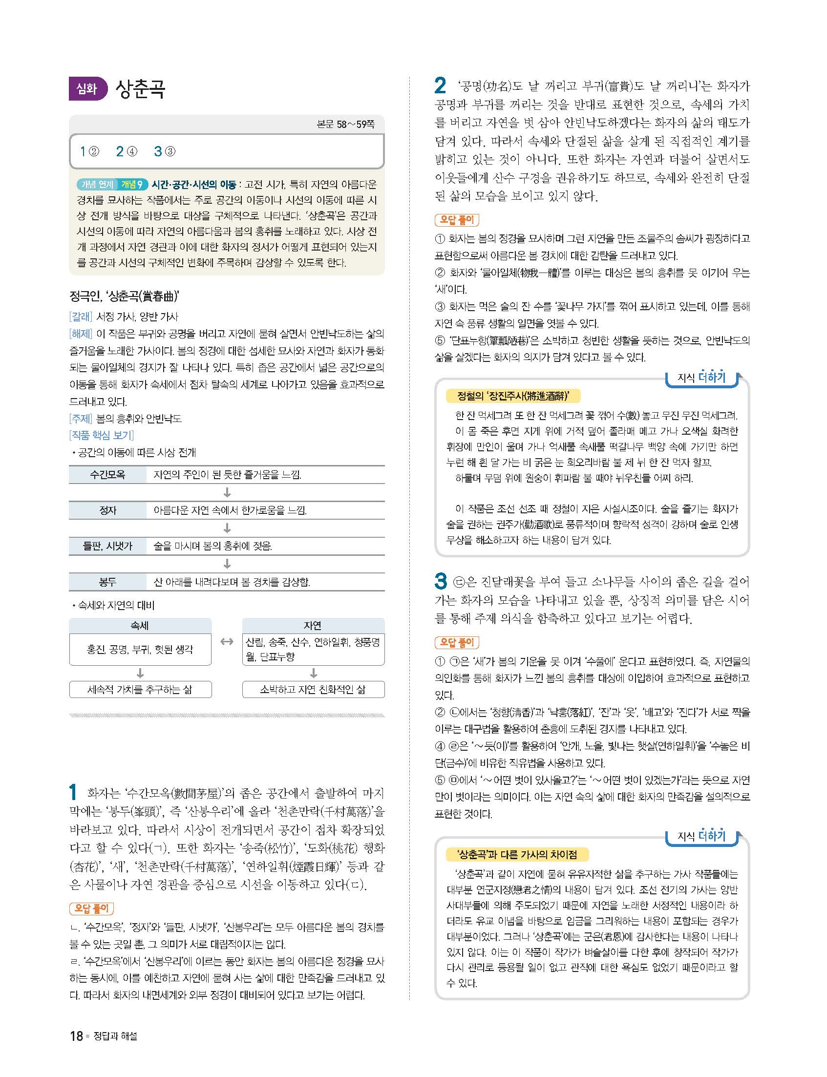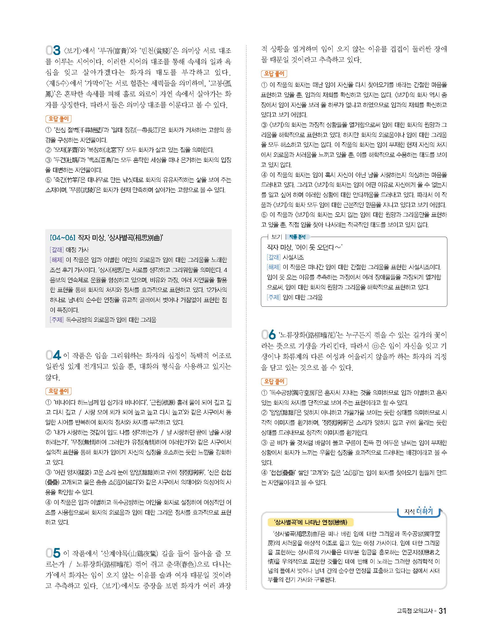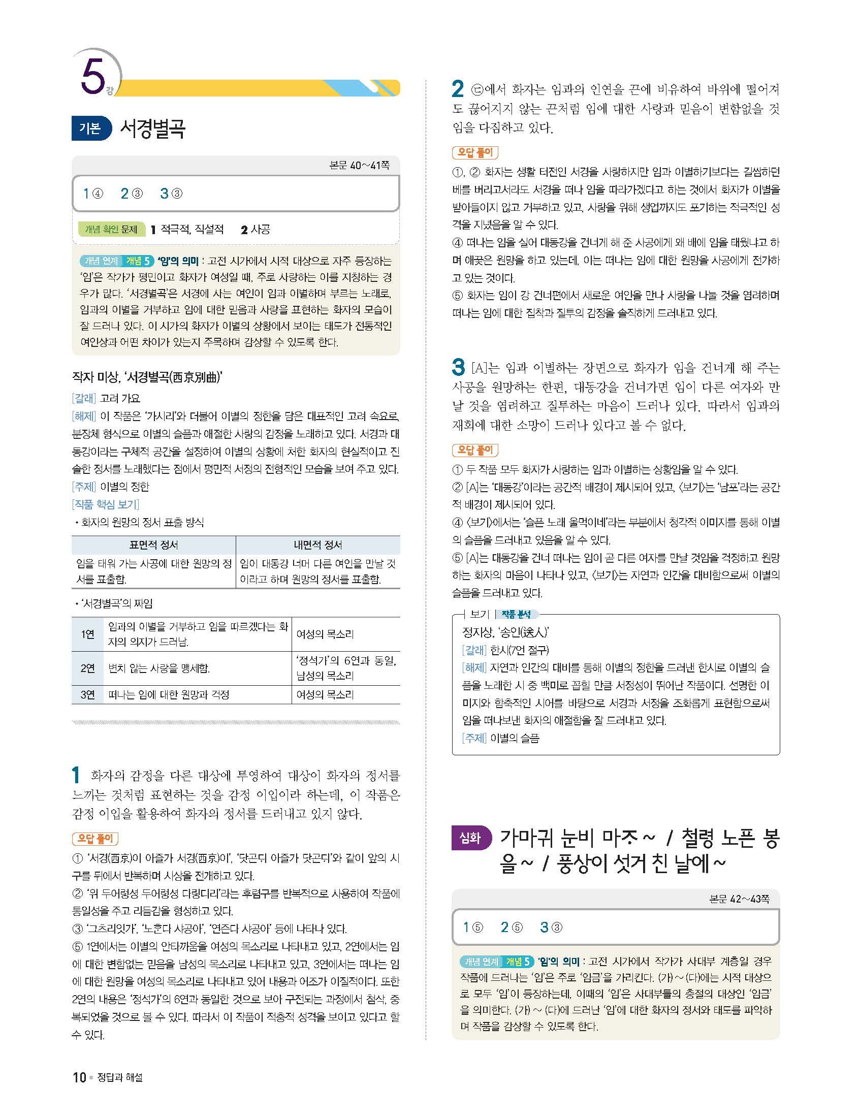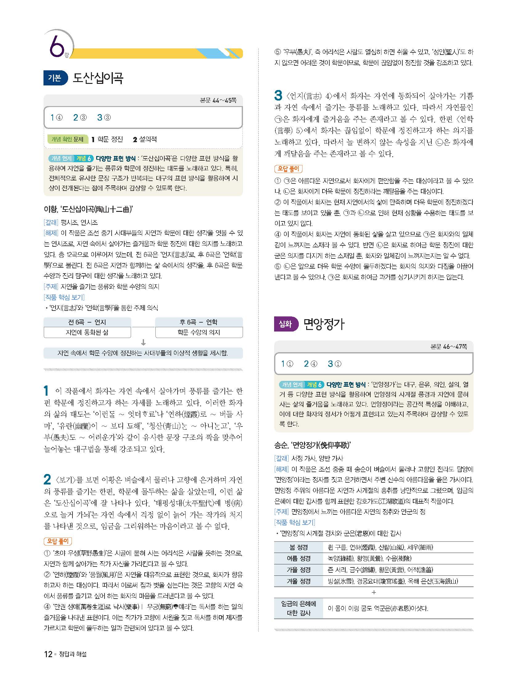 단기특강 국어영역 고전시가 답지 해설 사진답지 빠른답지 모바일최적화