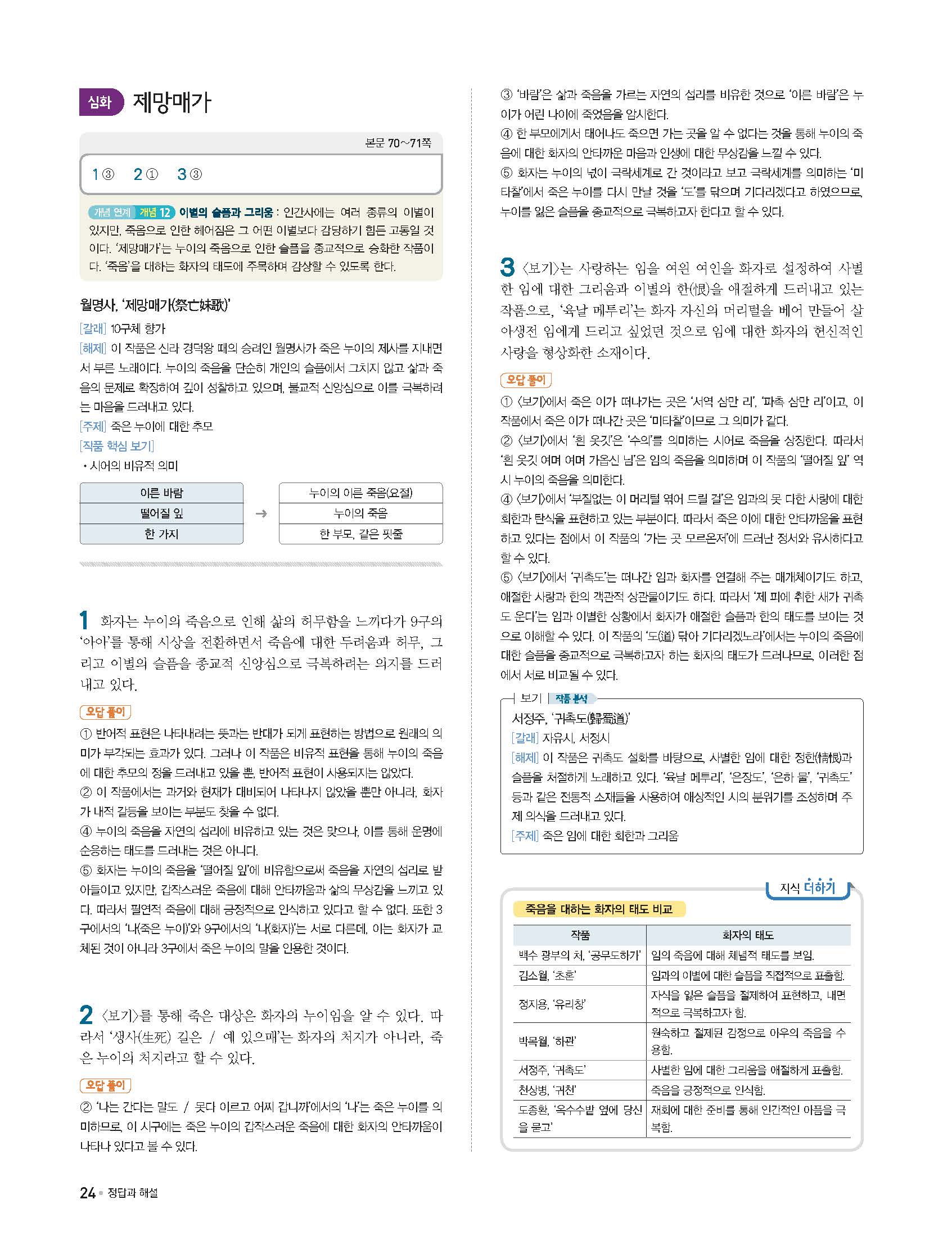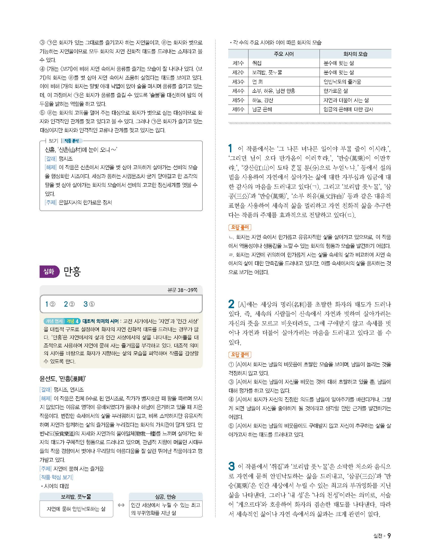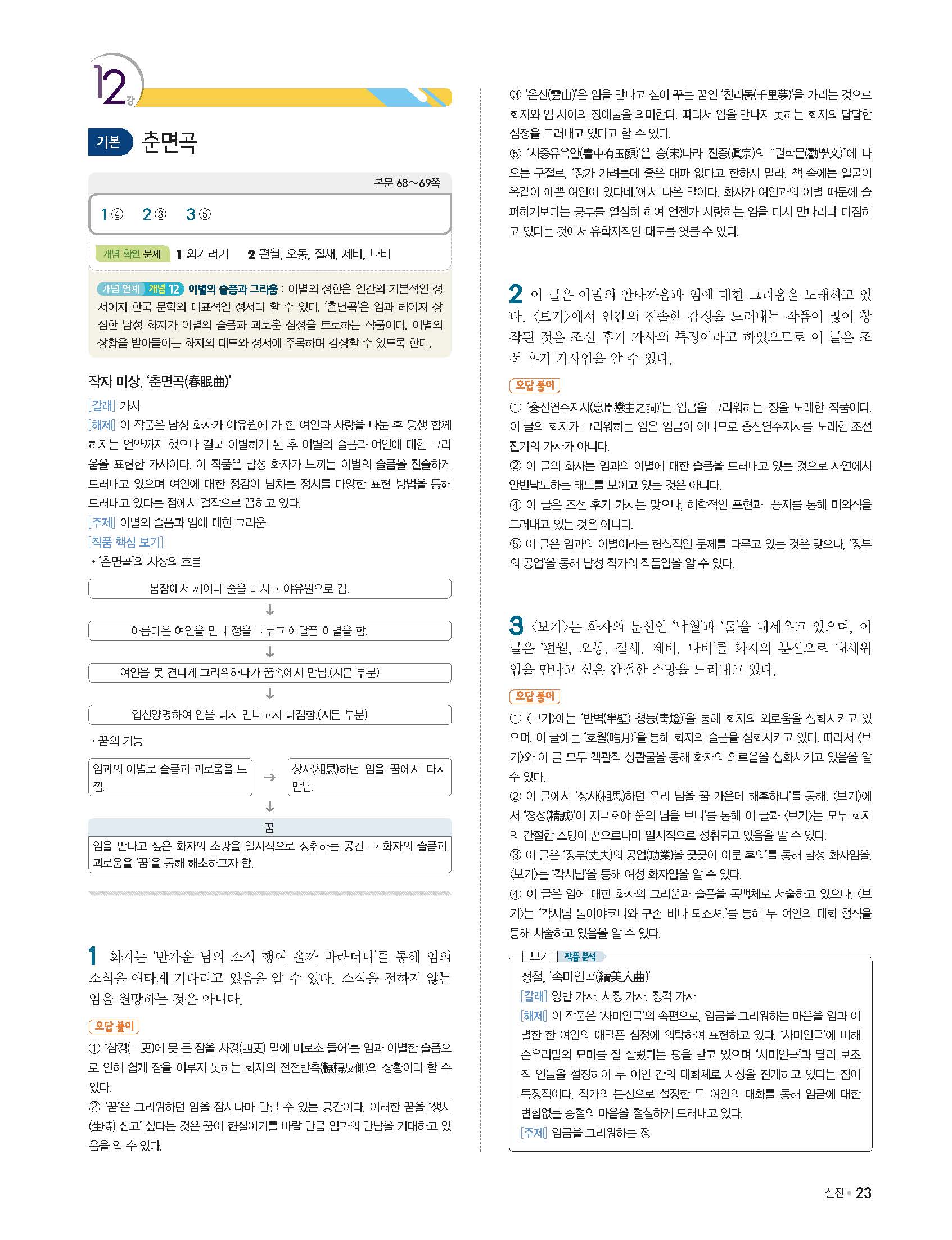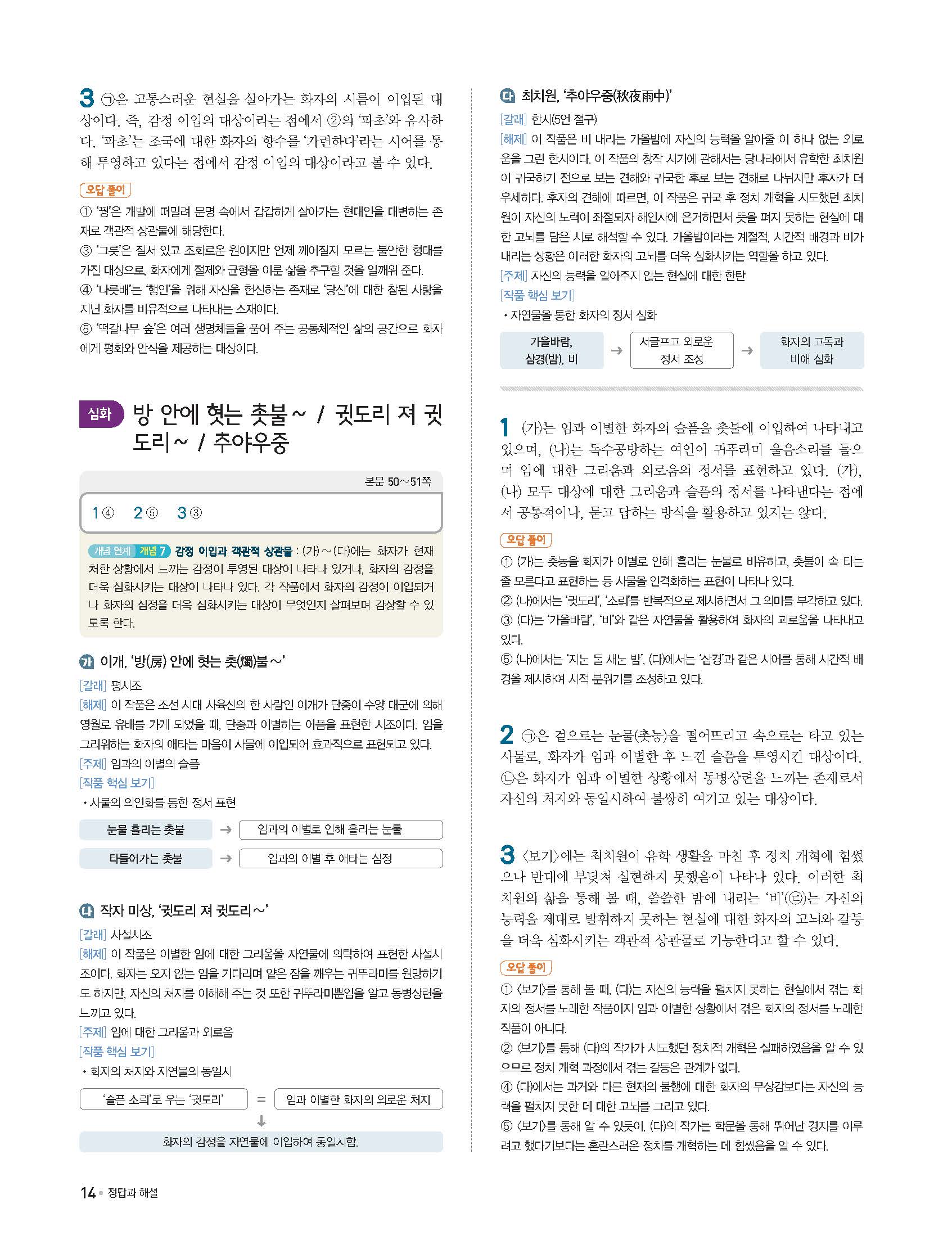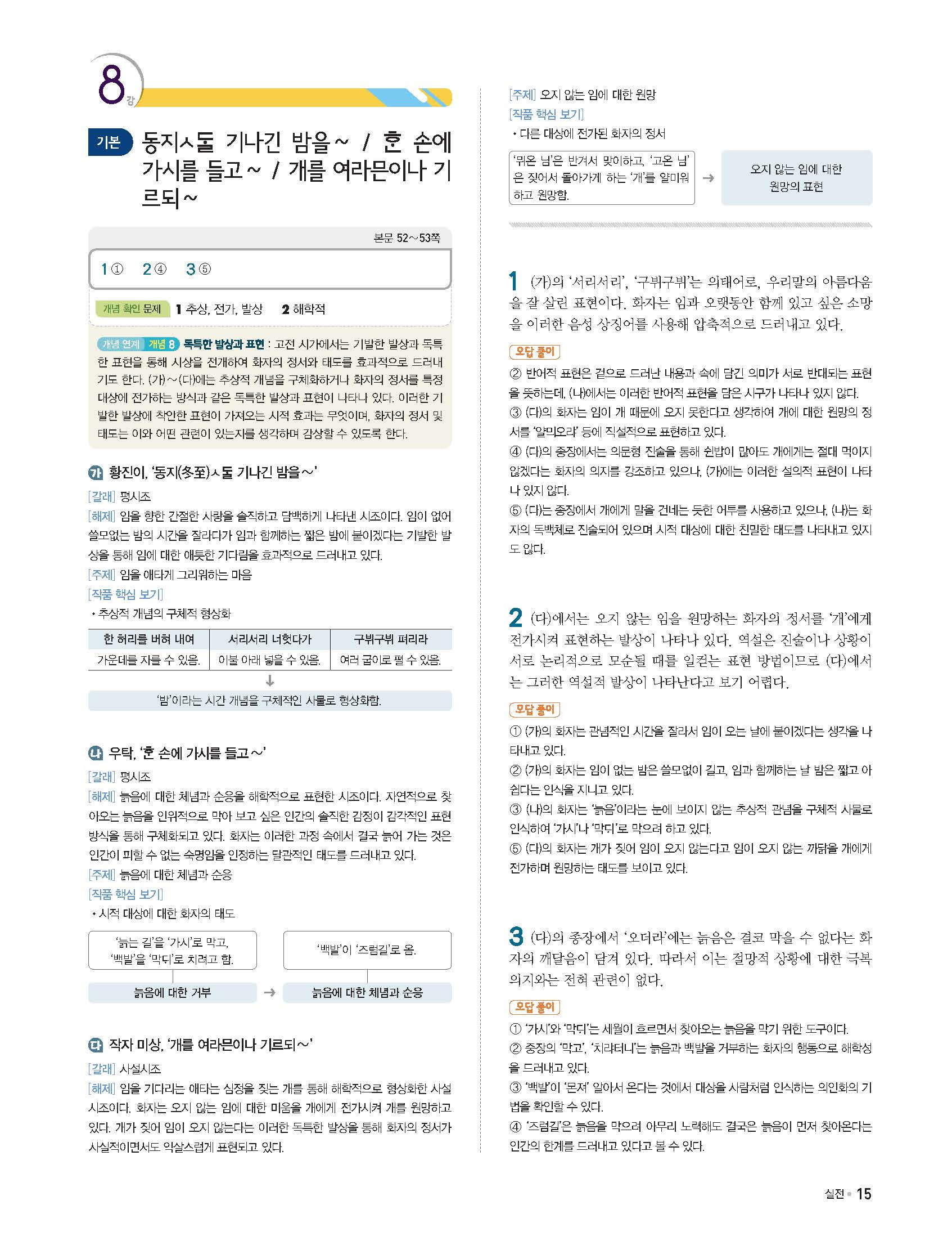 단기특강 국어영역 고전시가 답지 해설 사진답지 빠른답지 모바일최적화