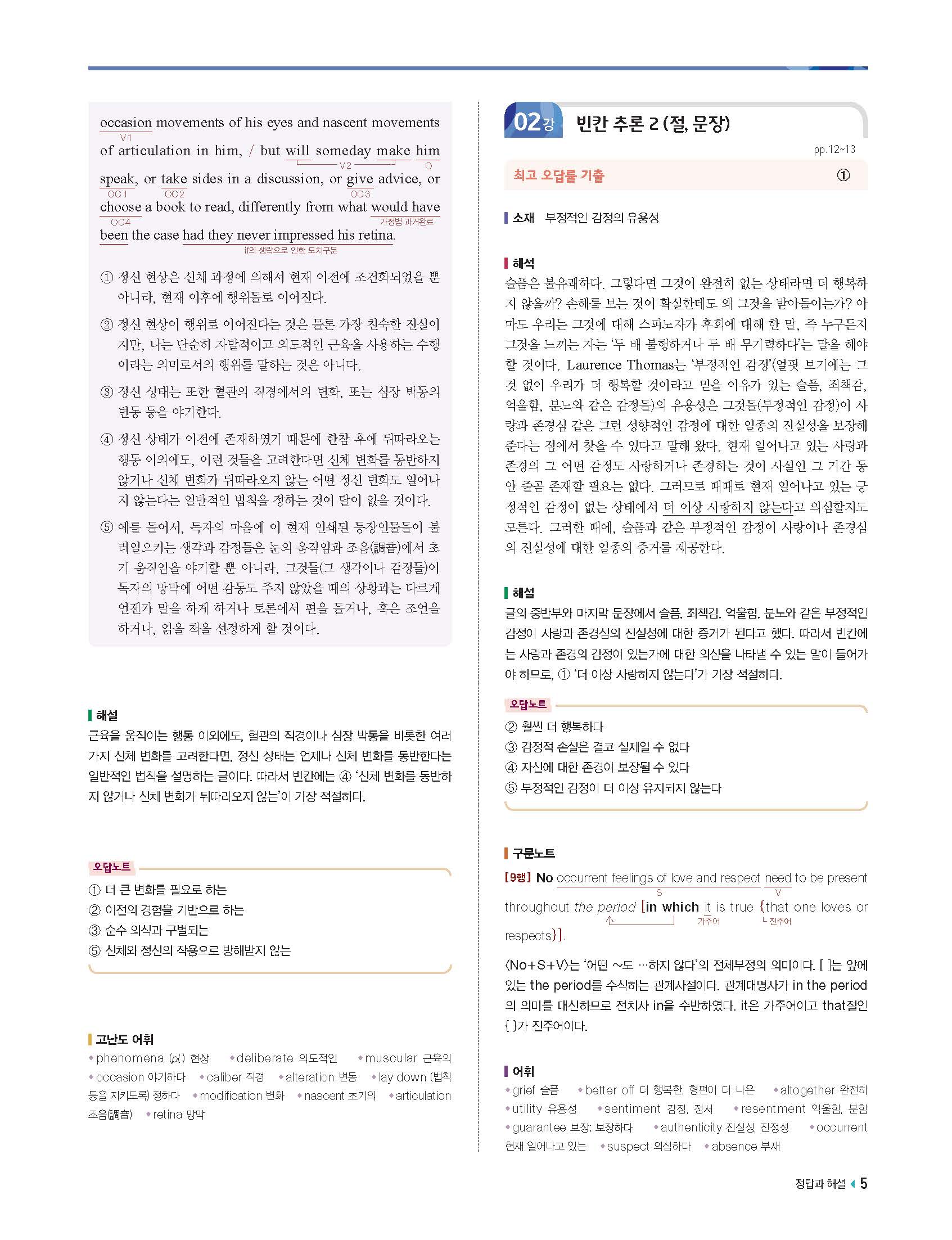 단기특강 영어영역 고난도유형편 답지 해설 사진답지 빠른답지 모바일최적화