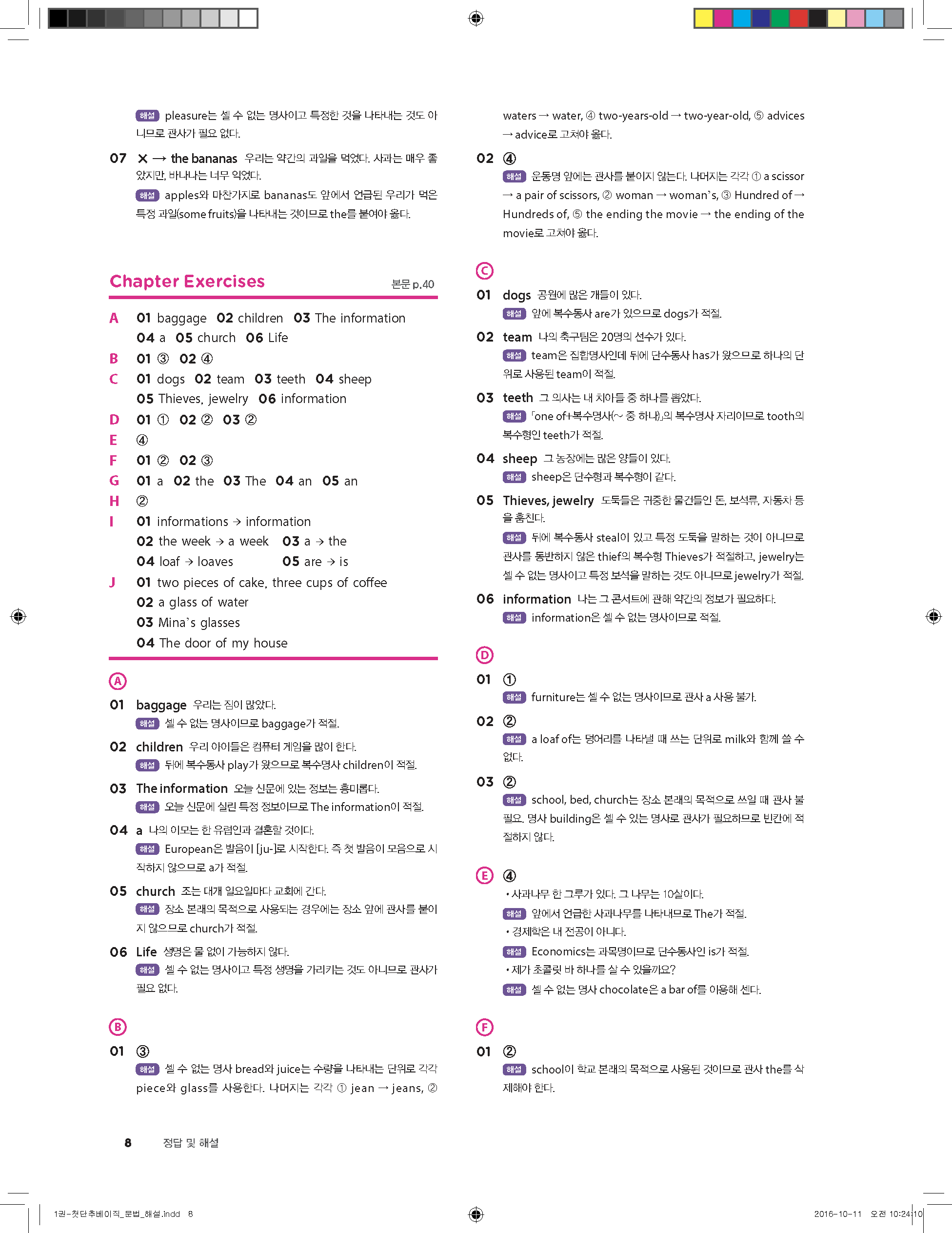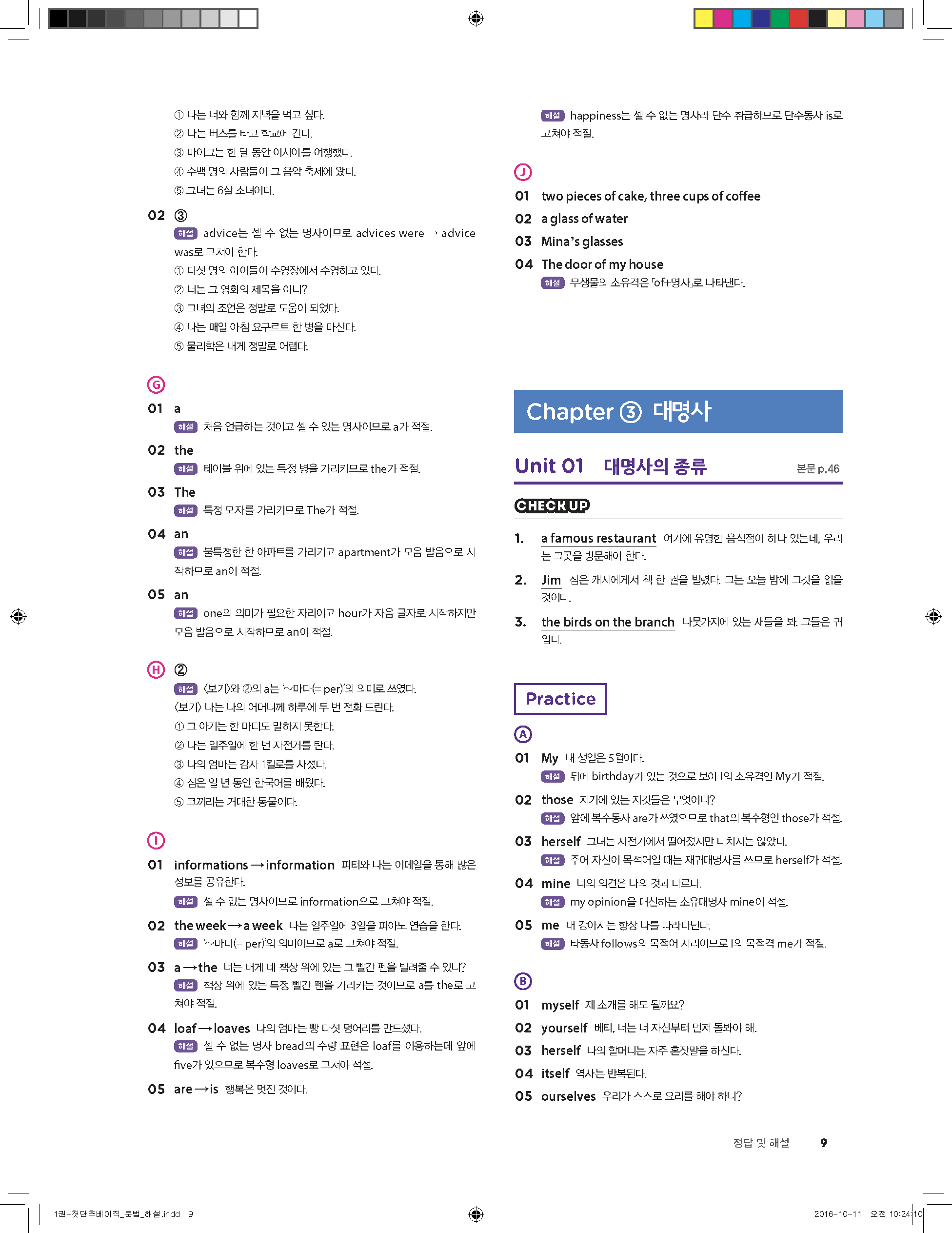 첫단추 BASIC 문법어법편 1권 답지 사진답지 빠른답지 모바일최적화