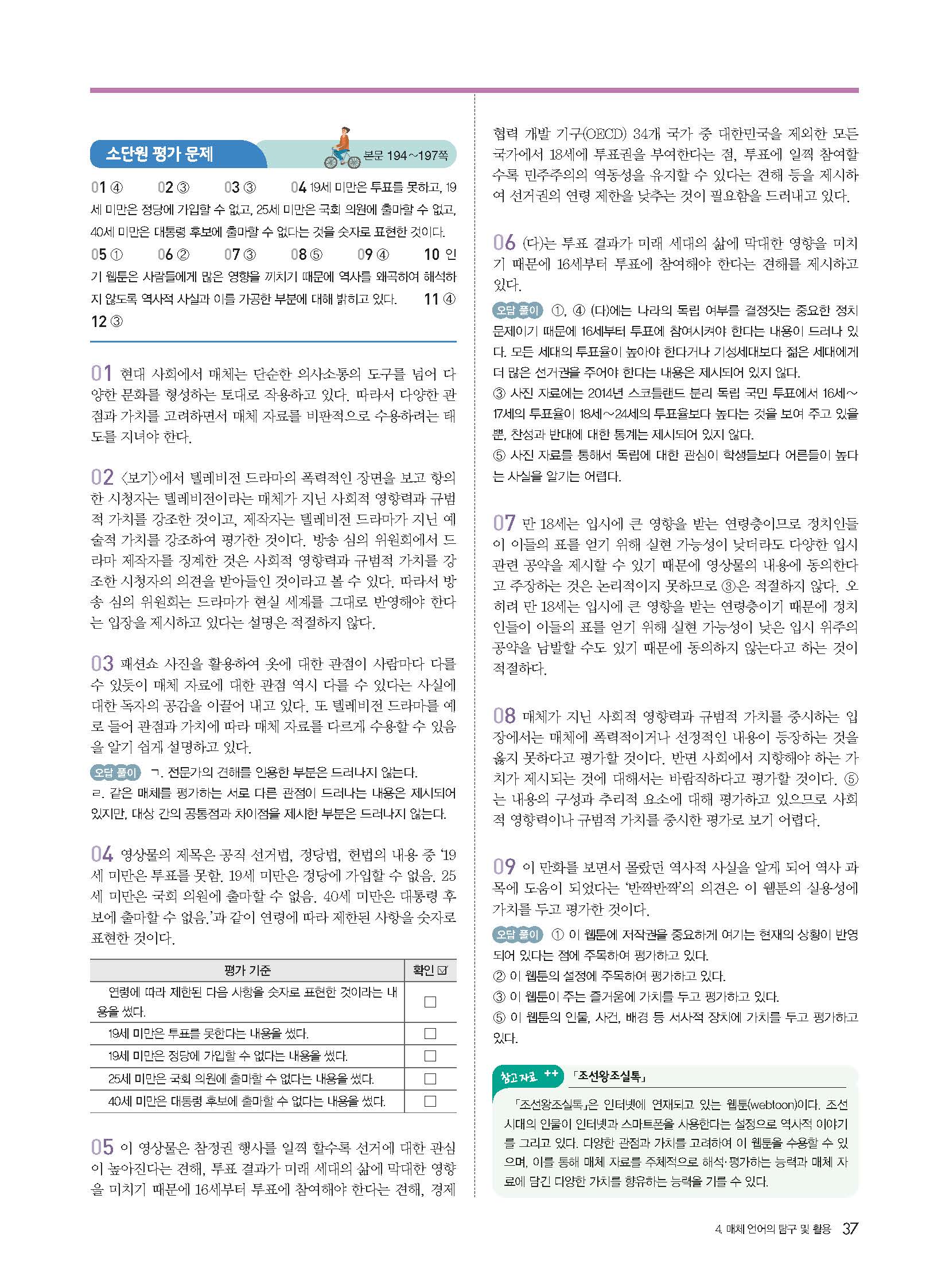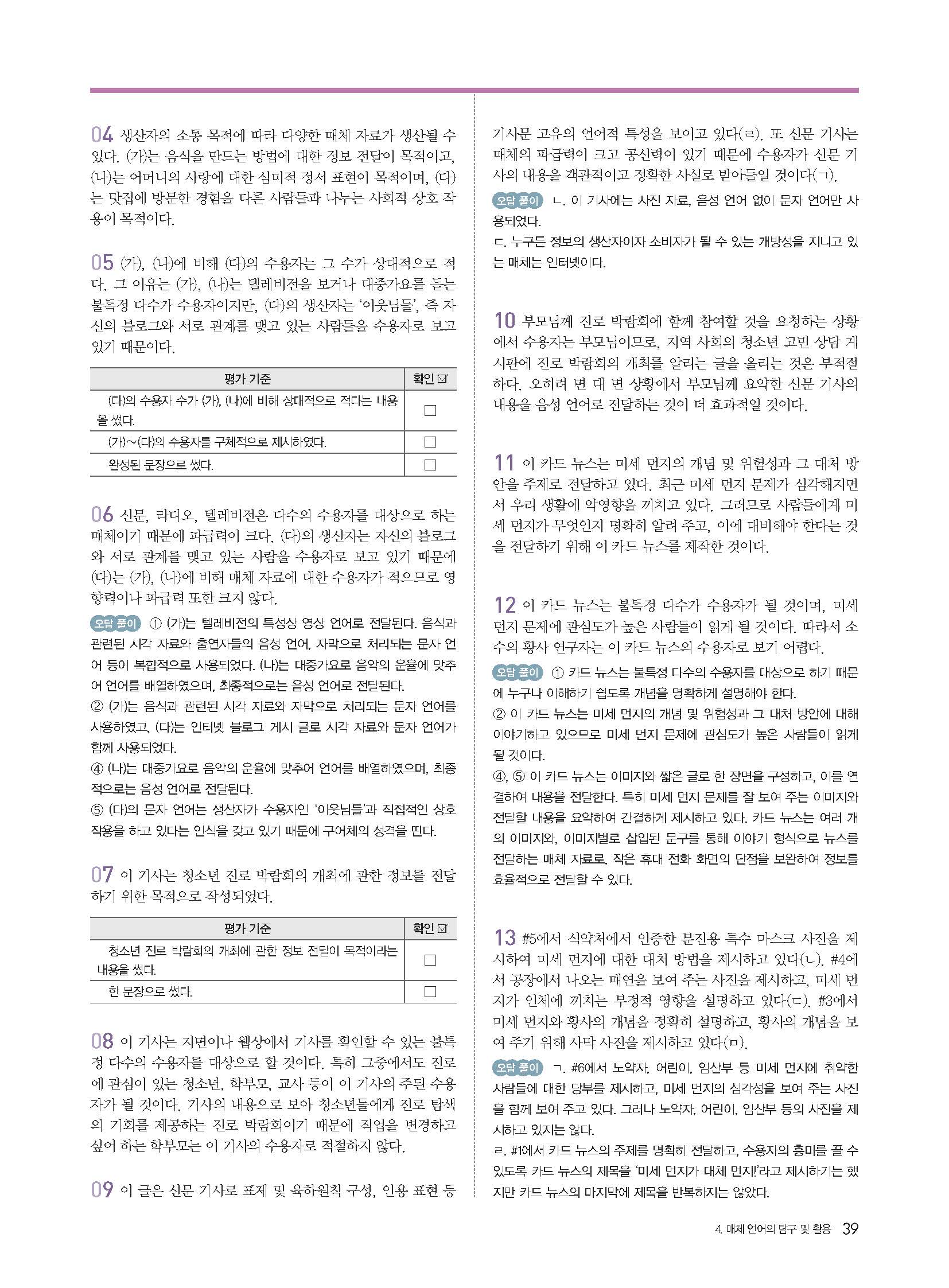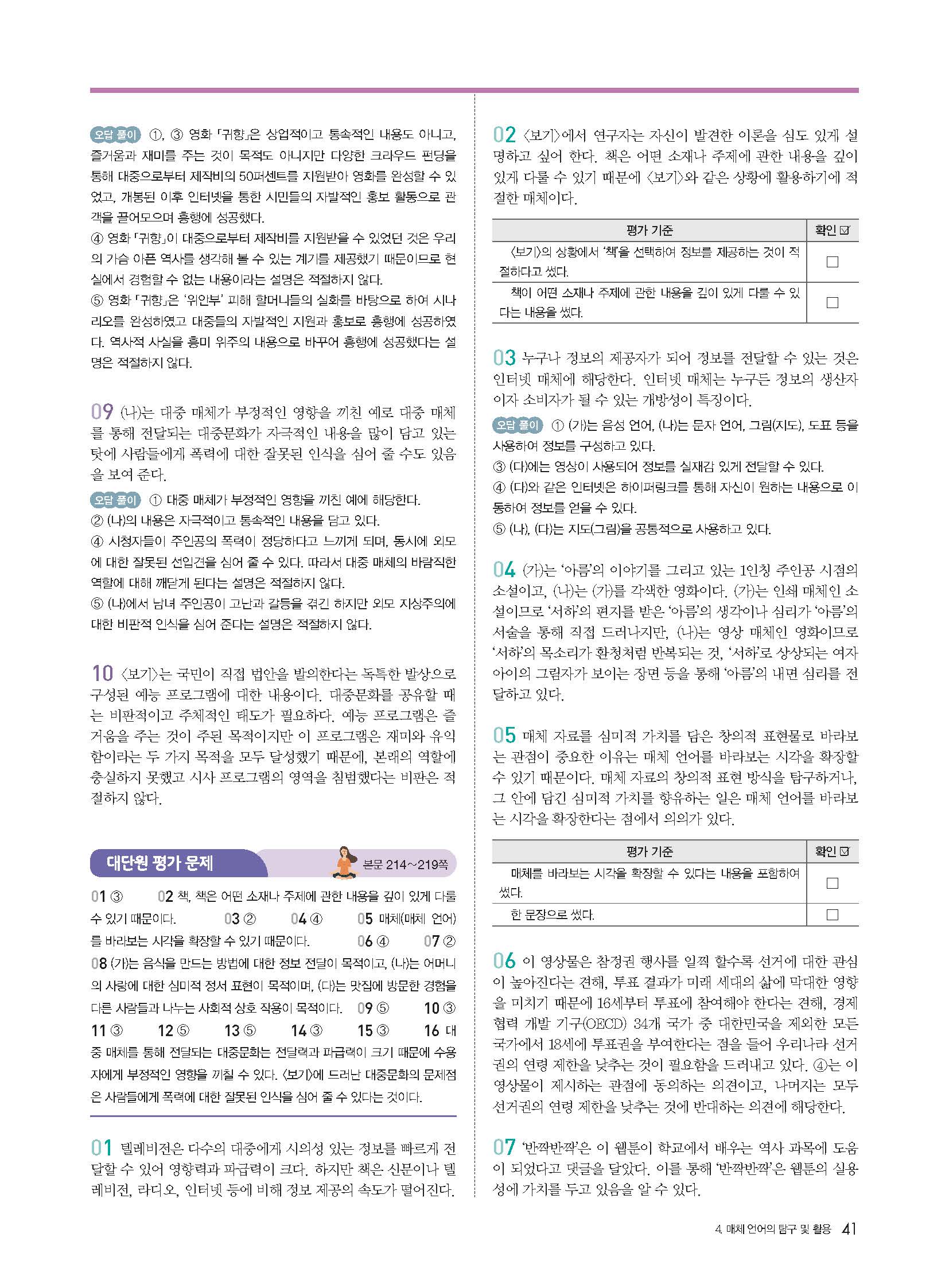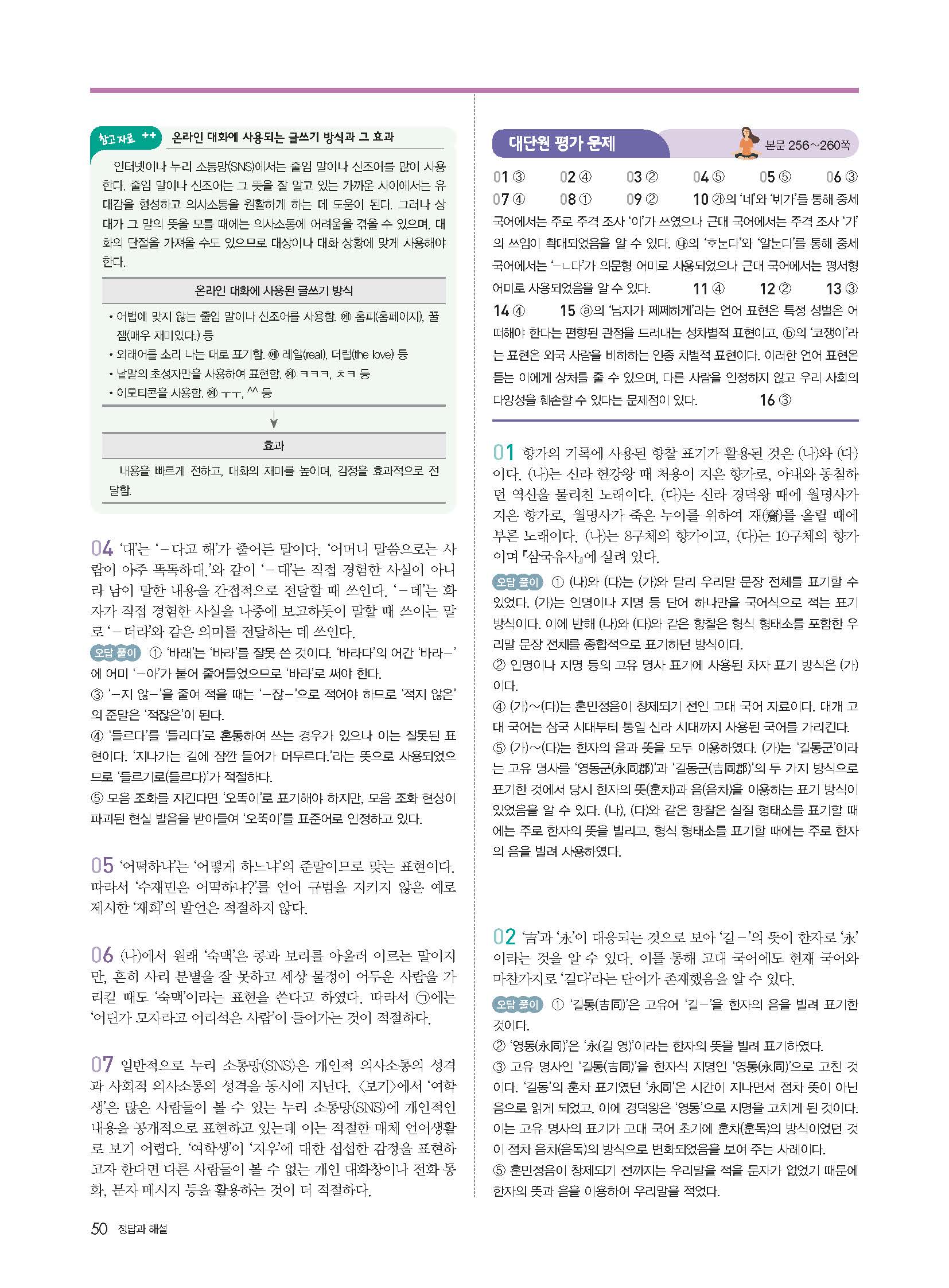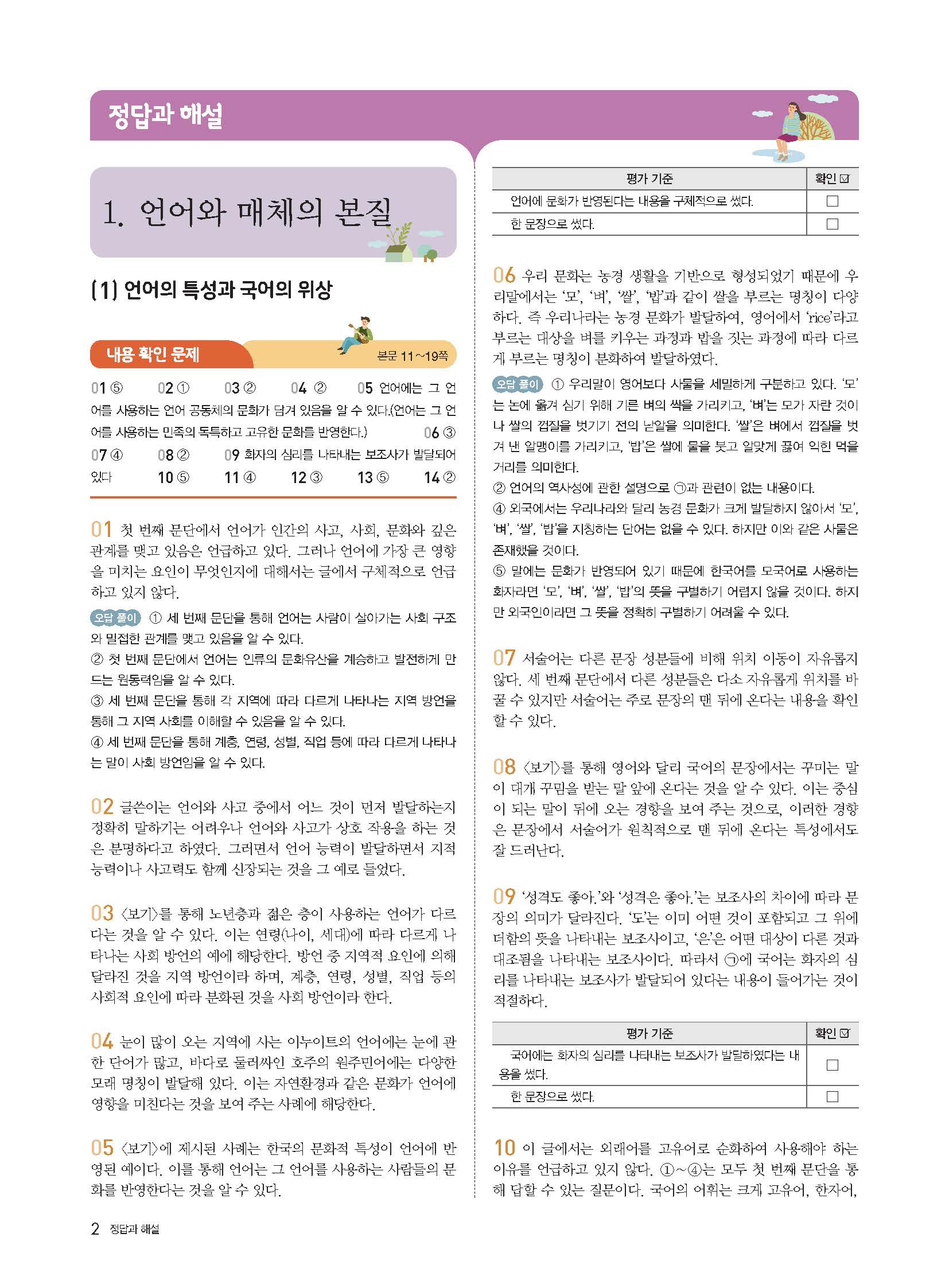 비상 언어와매체 평가문제집 답지 해설 사진답지 빠른답지 모바일최적화