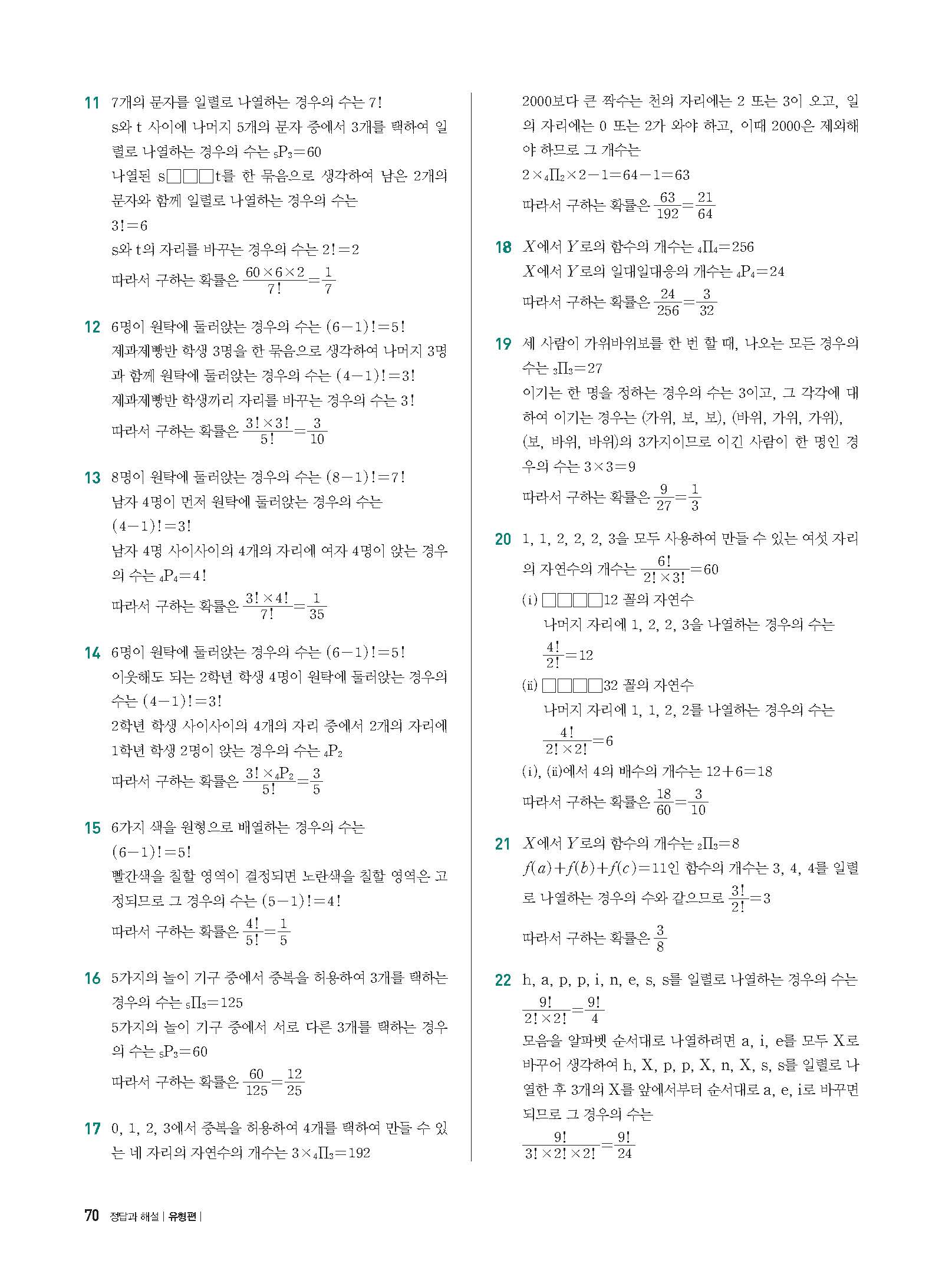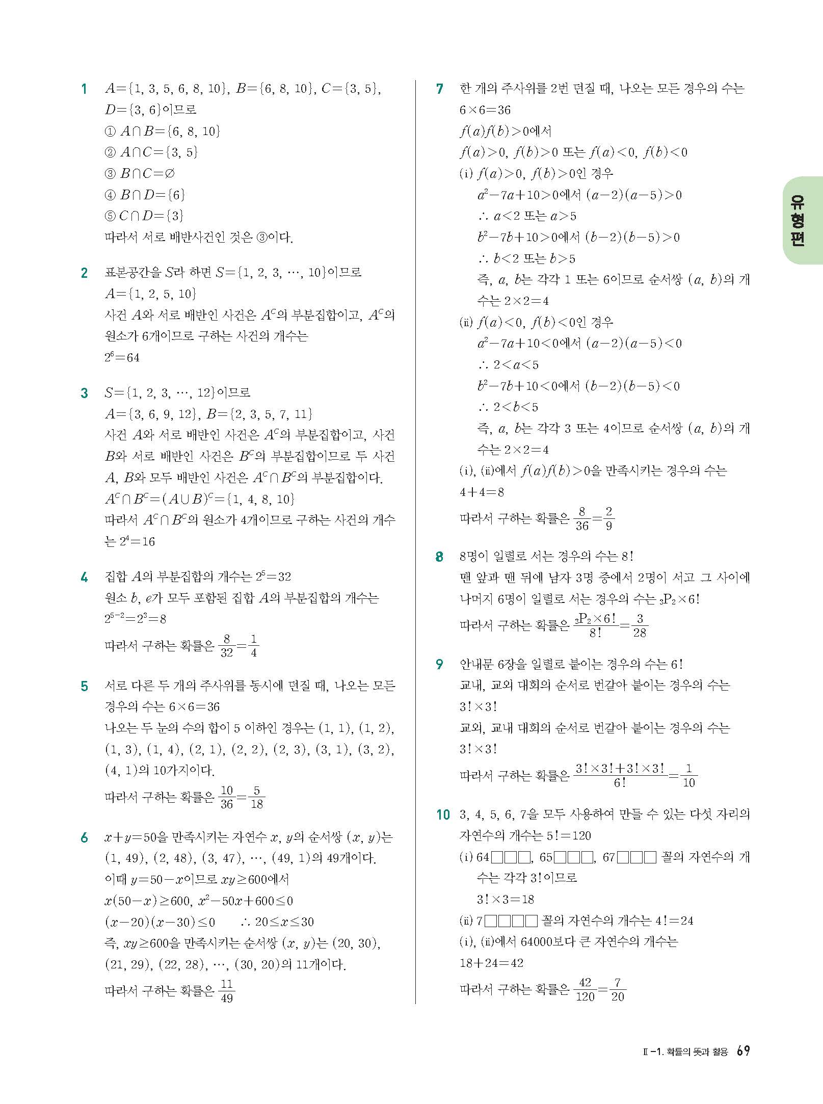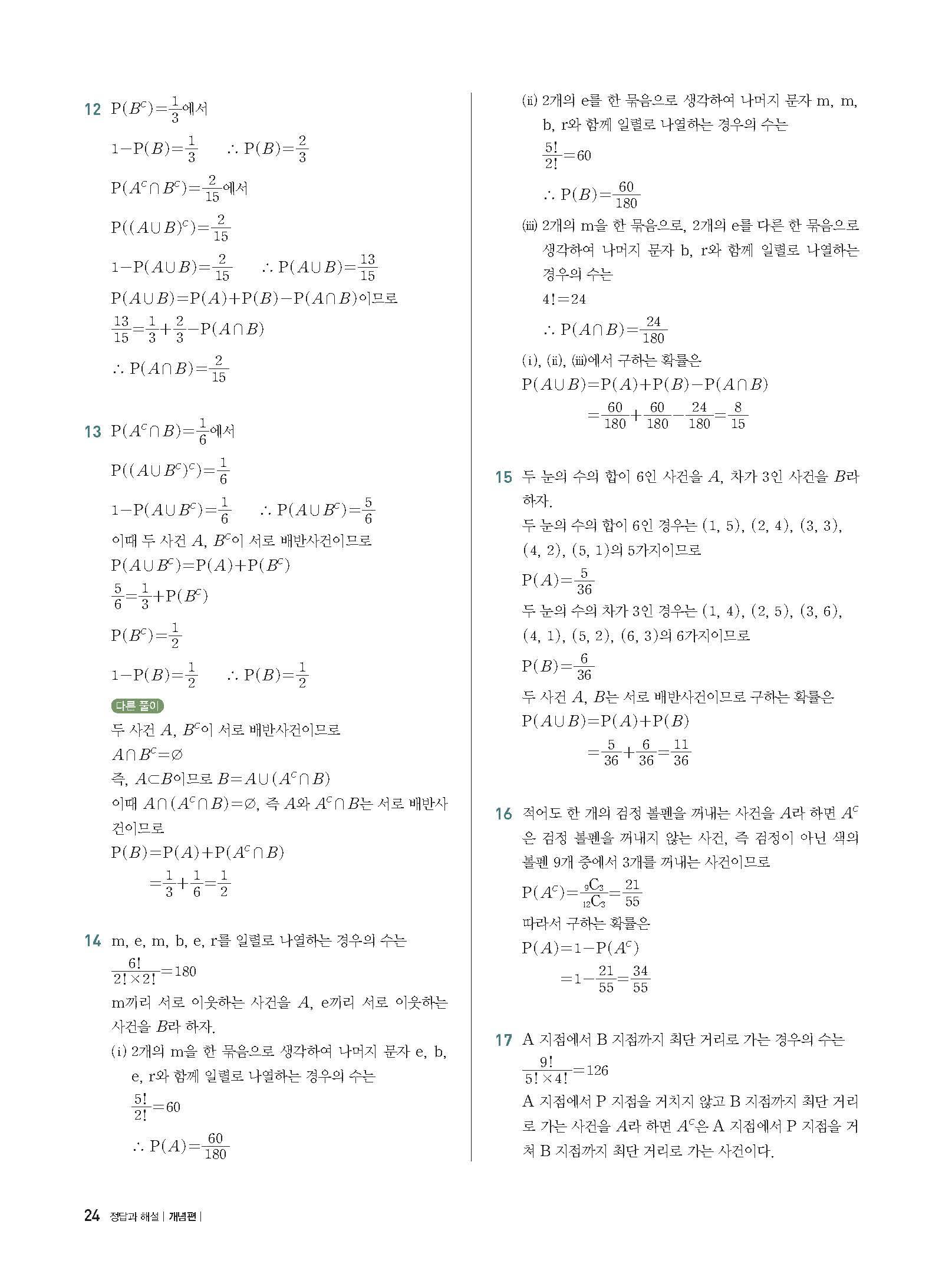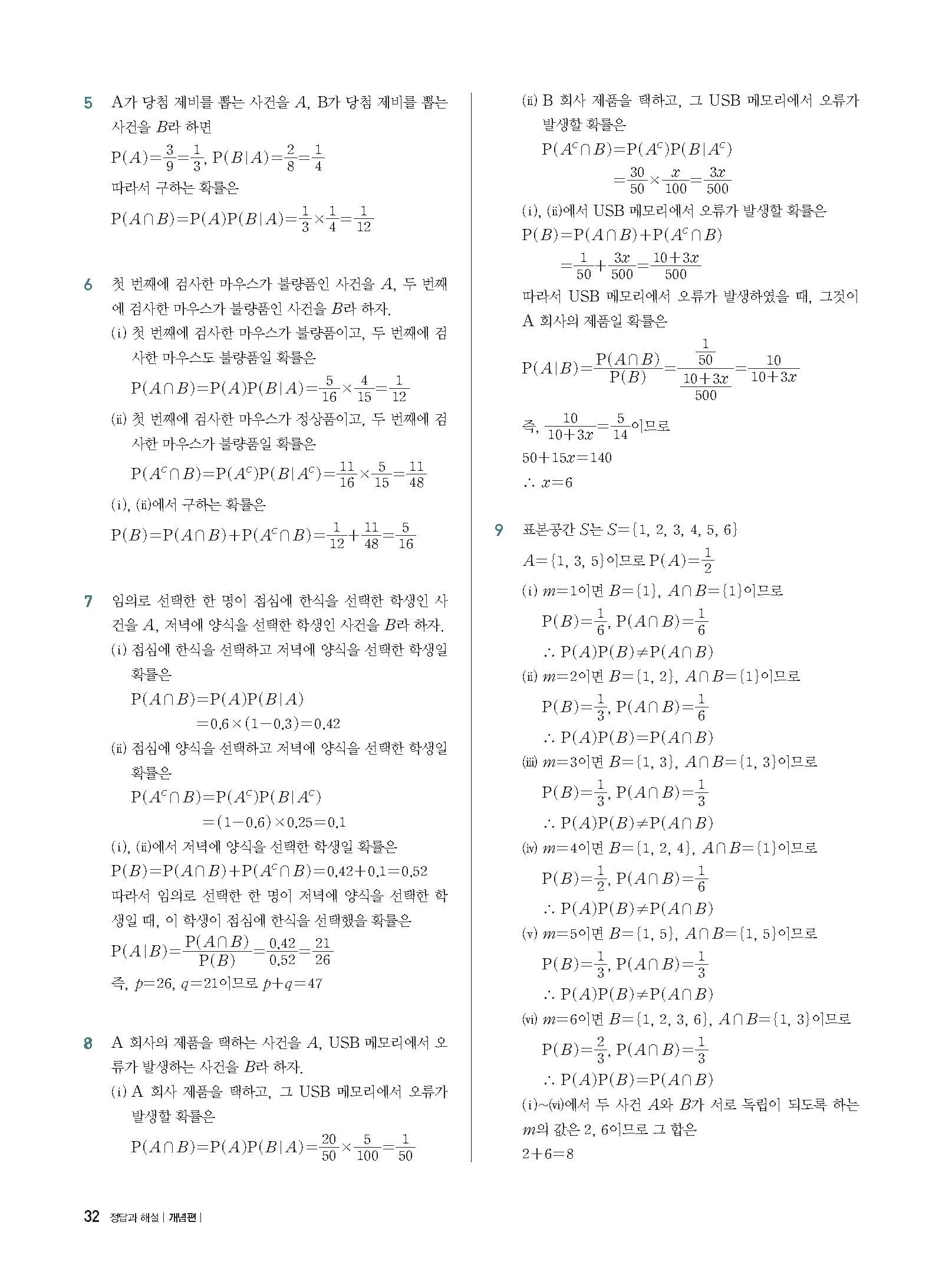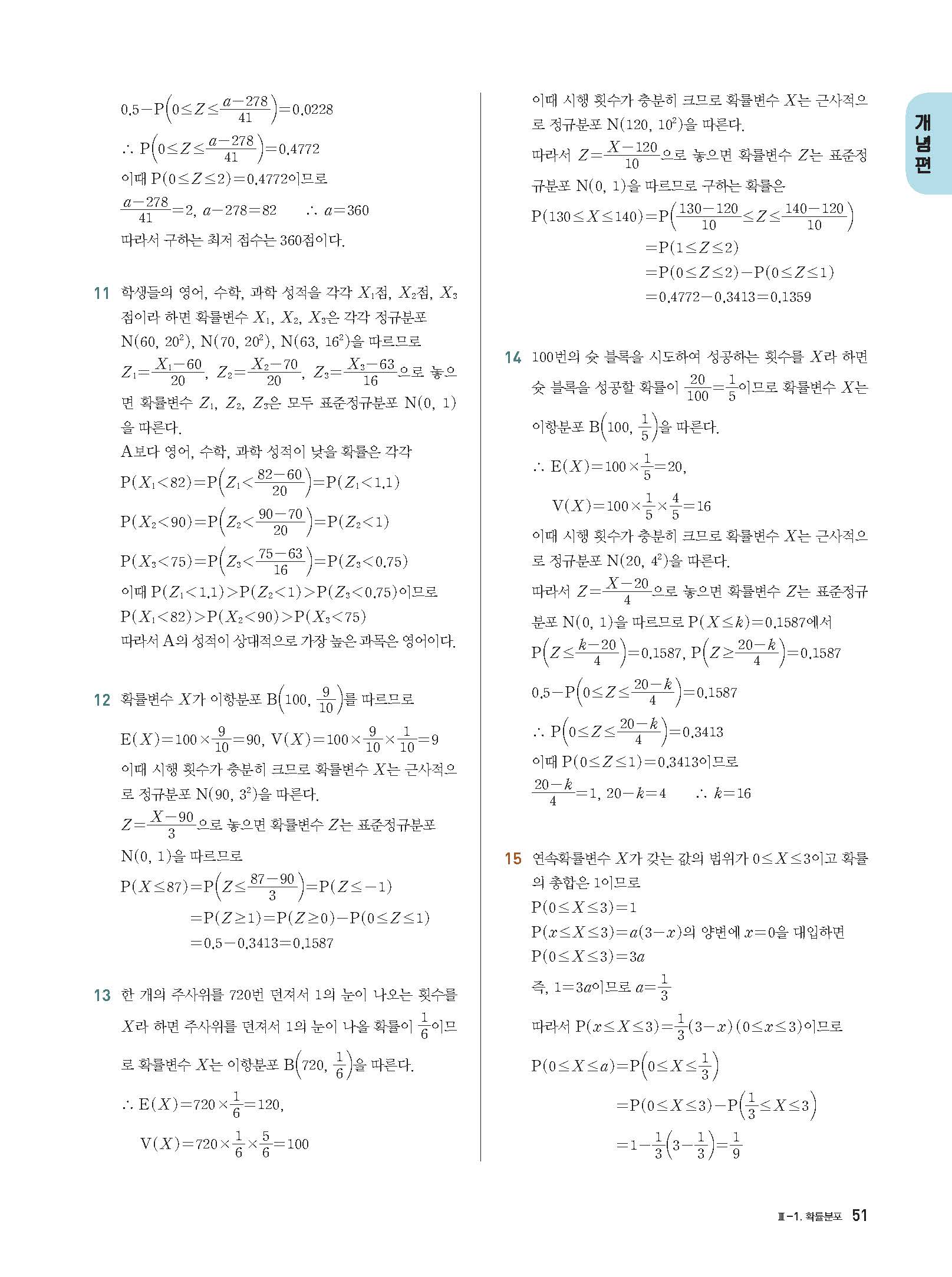 개념플러스유형 확률과통계 답지 해설 사진답지 빠른답지 모바일최적화