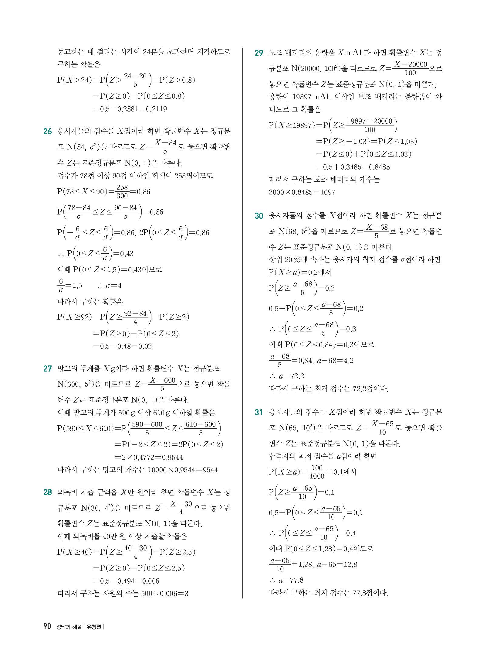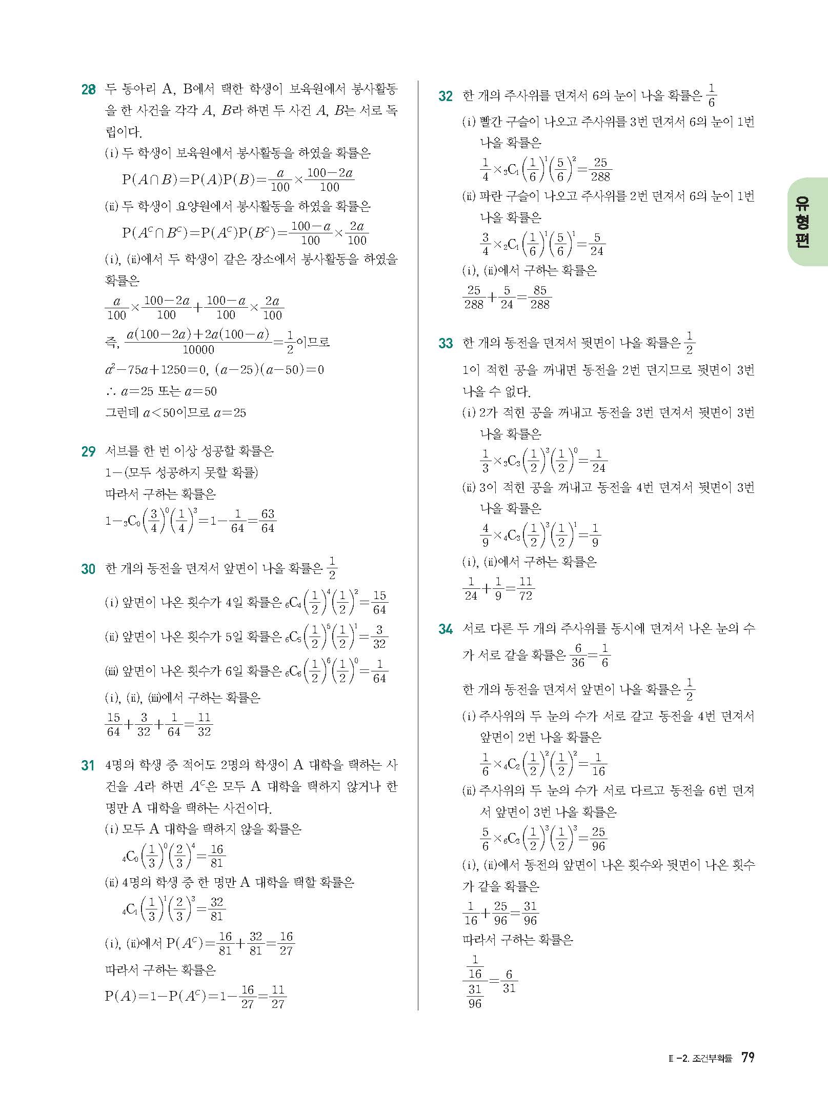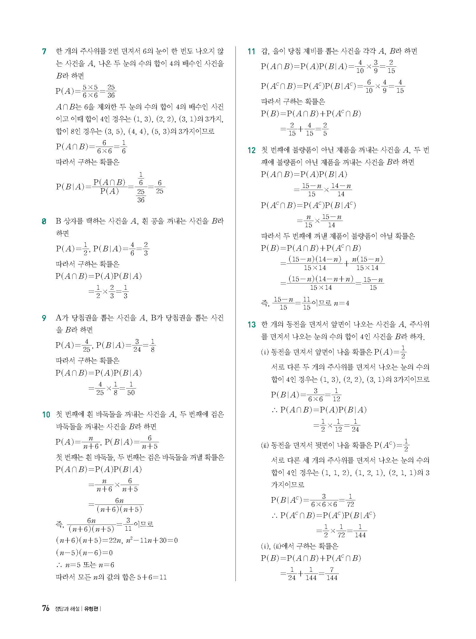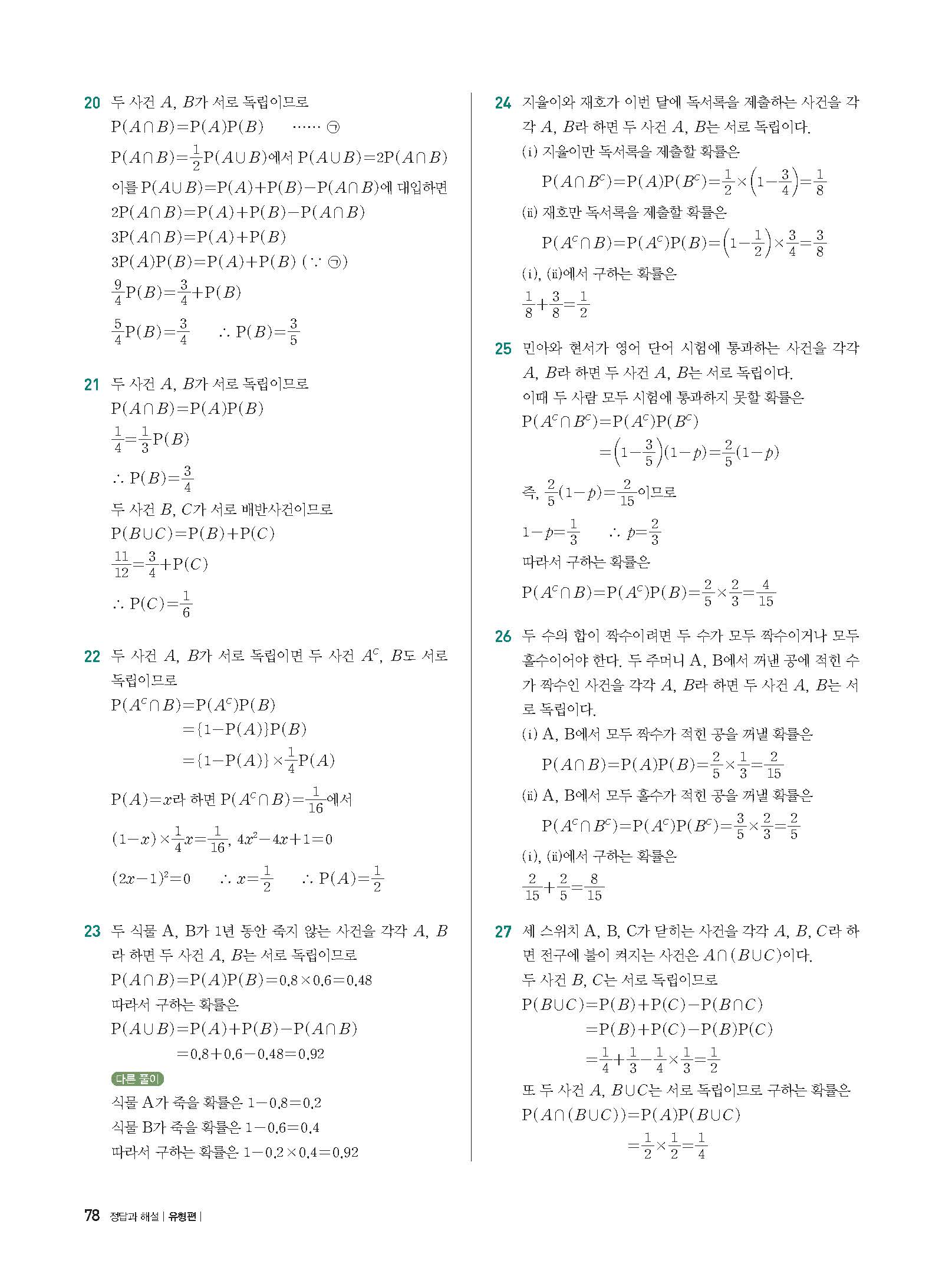 개념플러스유형 확률과통계 답지 해설 사진답지 빠른답지 모바일최적화