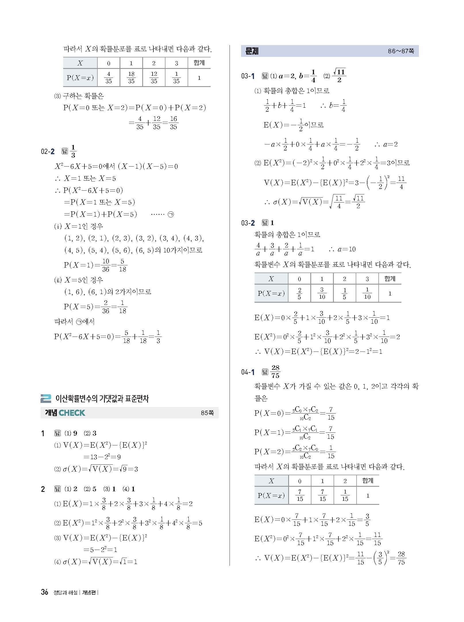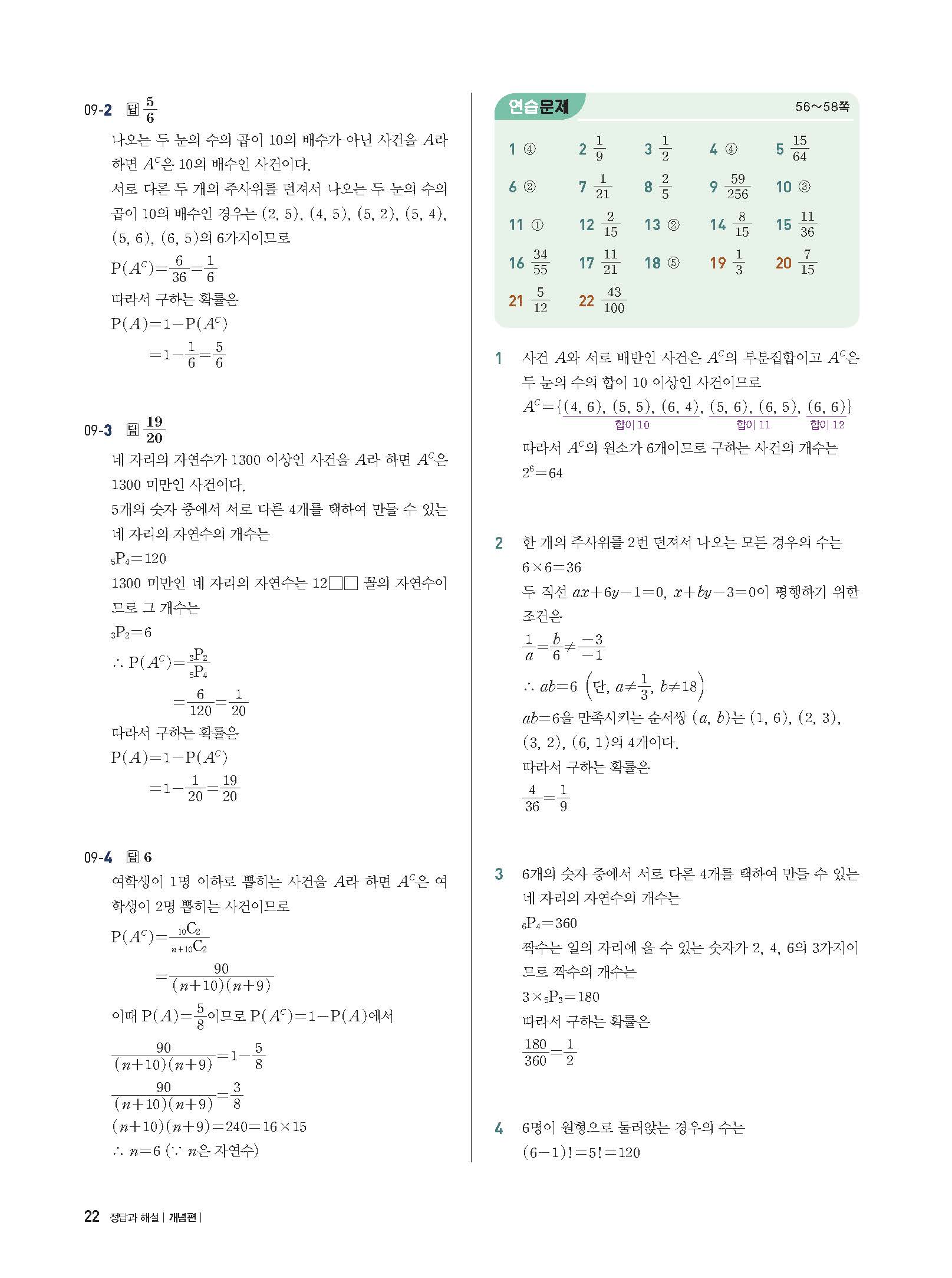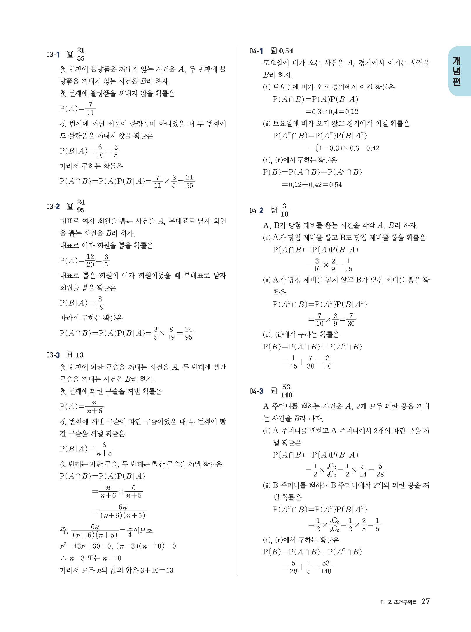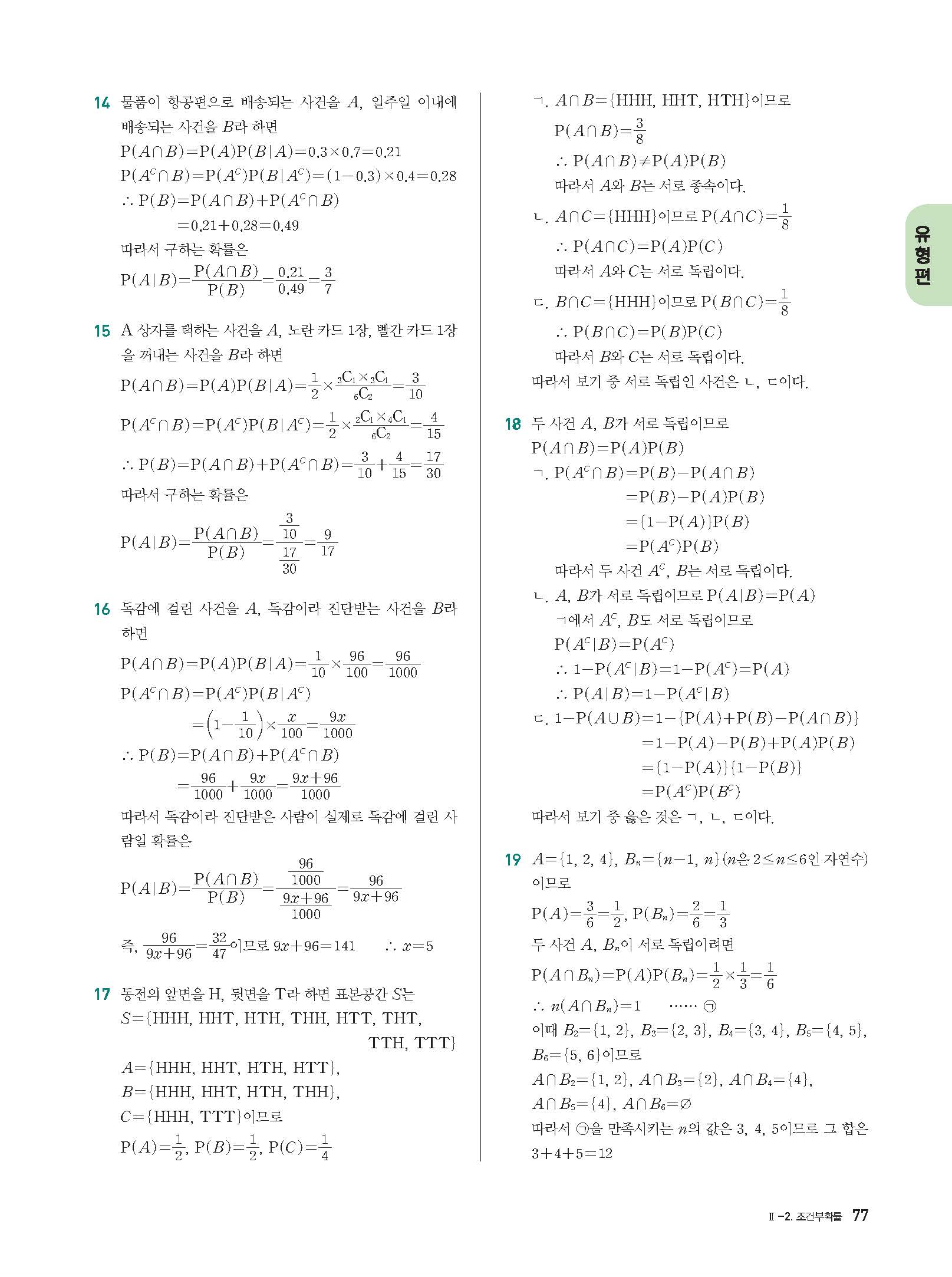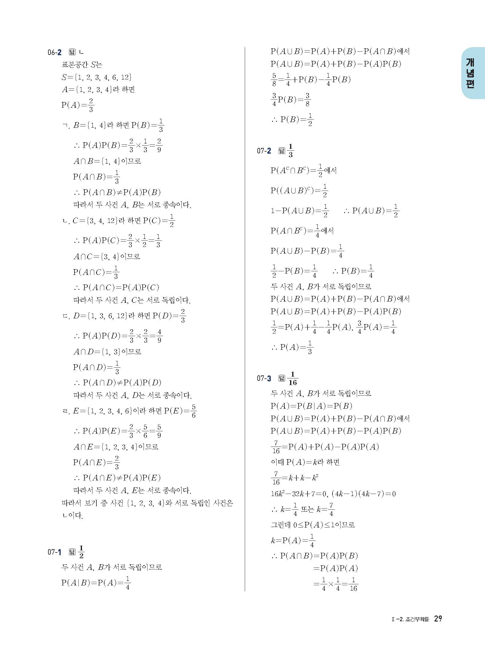 개념플러스유형 확률과통계 답지 해설 사진답지 빠른답지 모바일최적화
