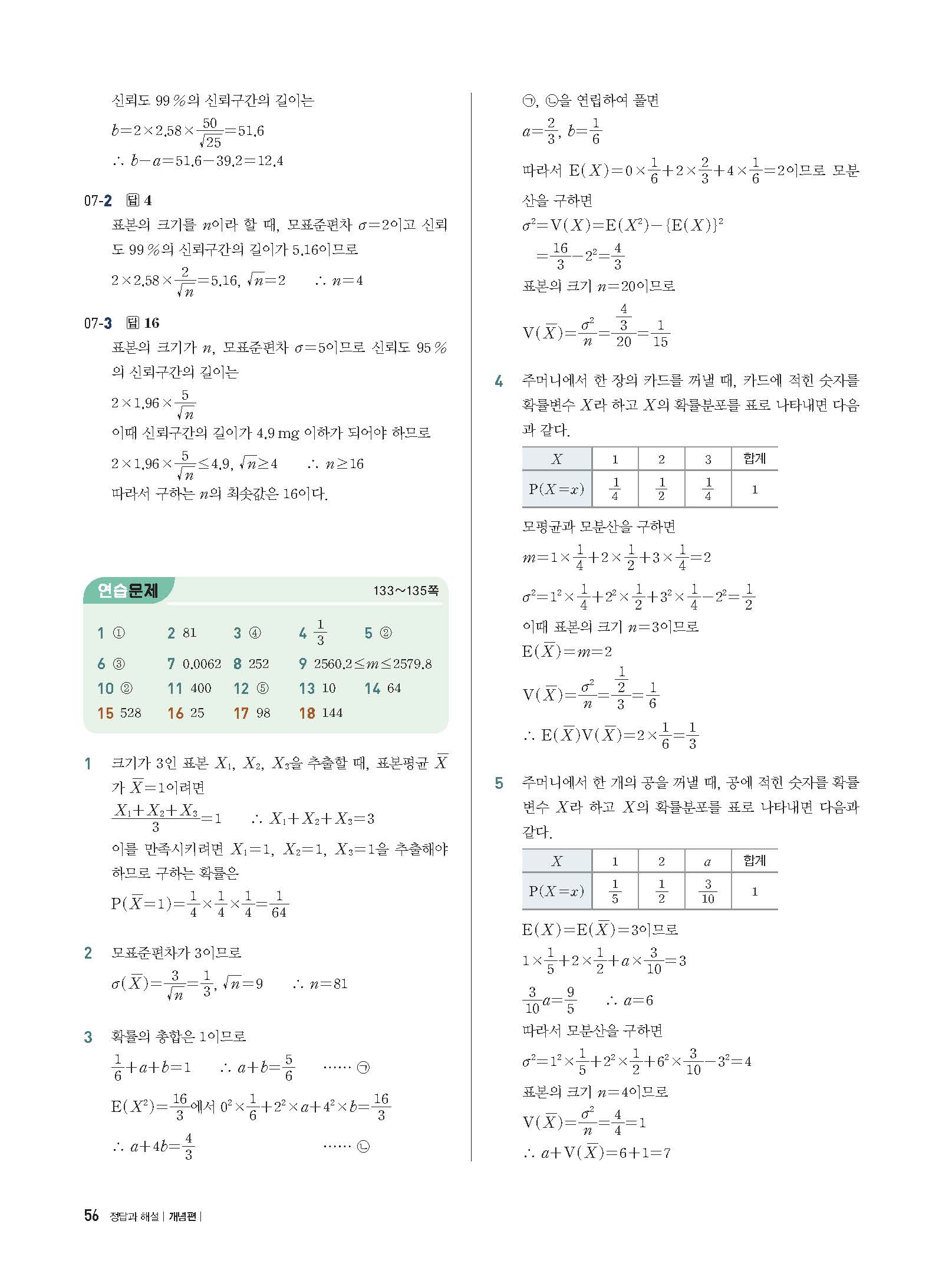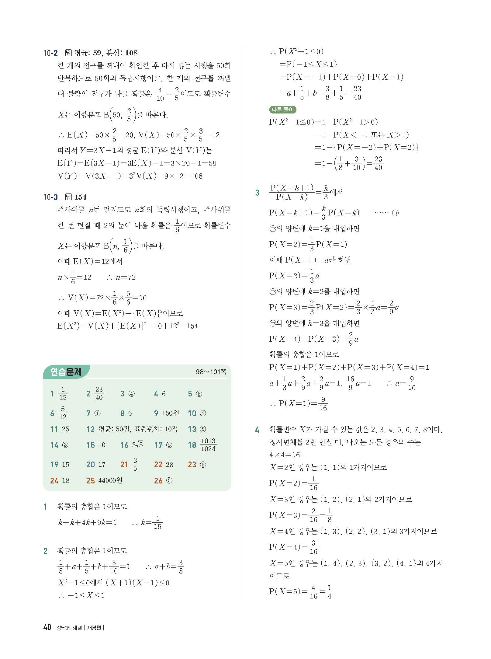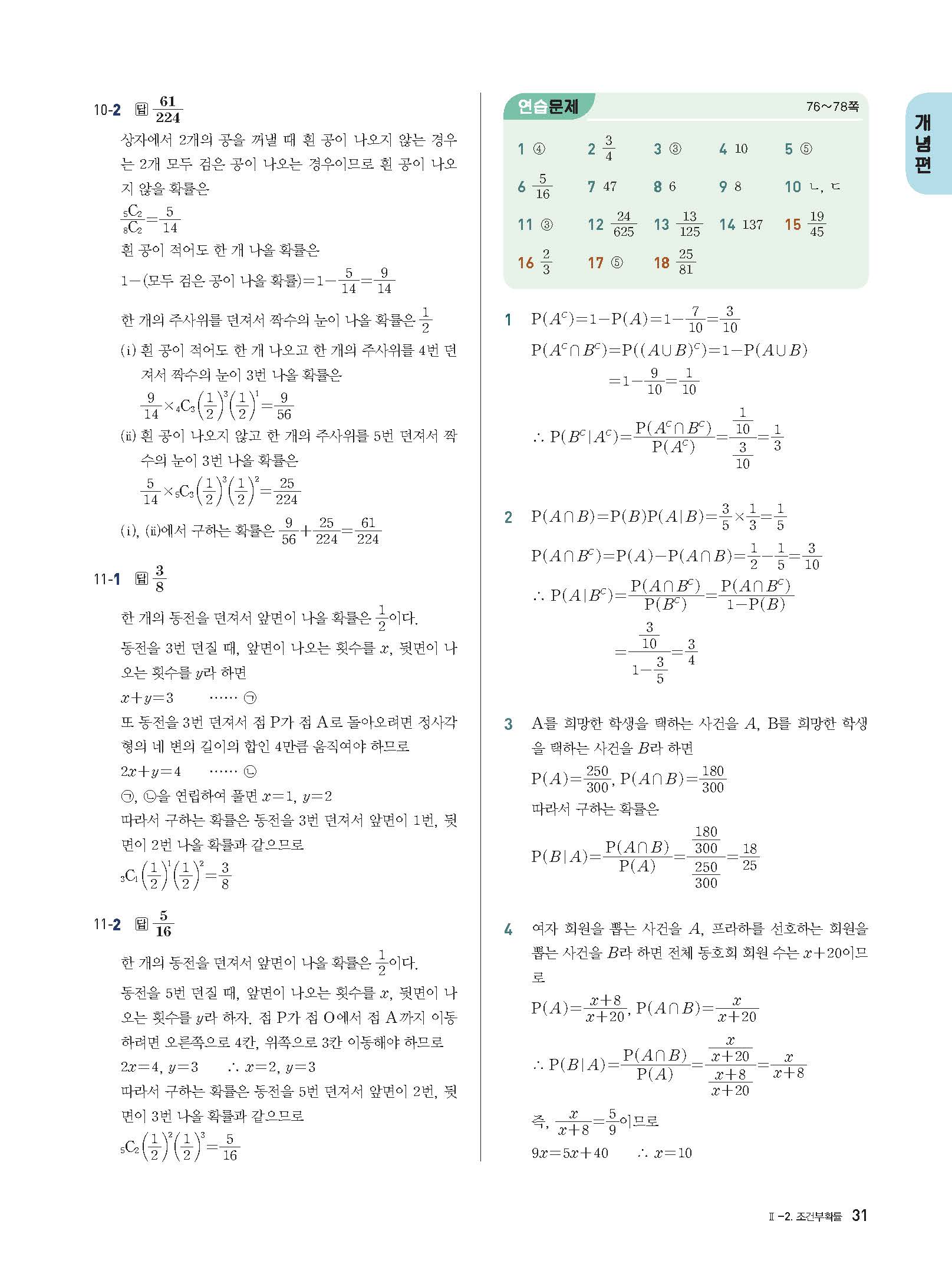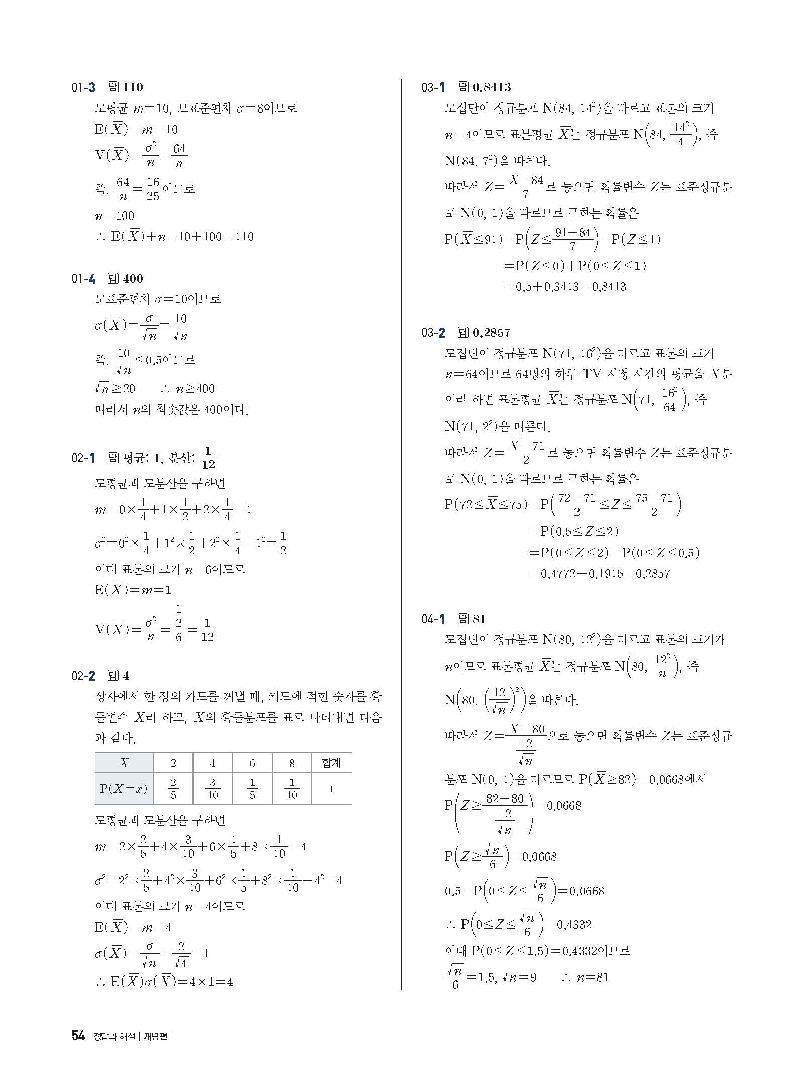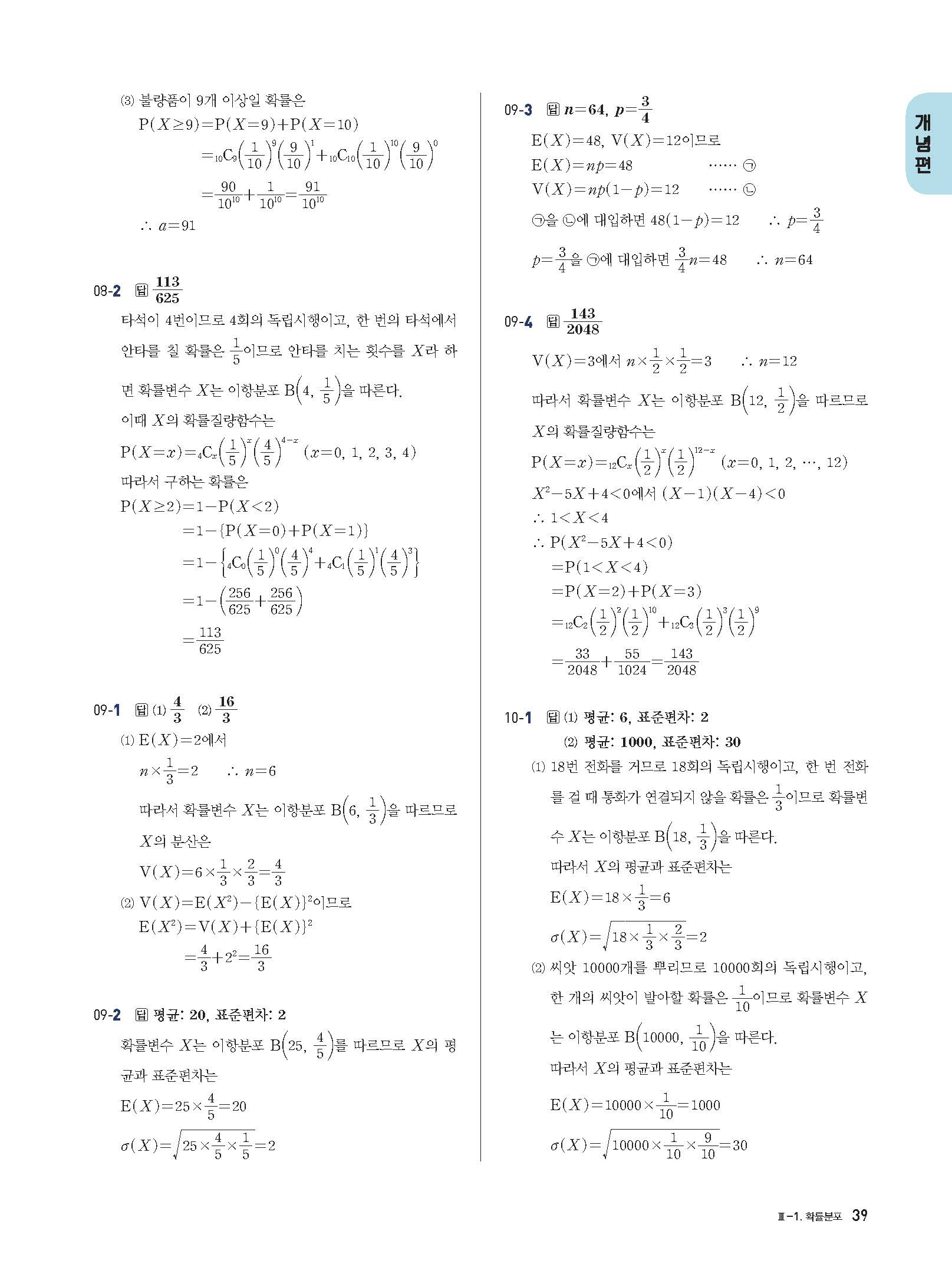 개념플러스유형 확률과통계 답지 해설 사진답지 빠른답지 모바일최적화