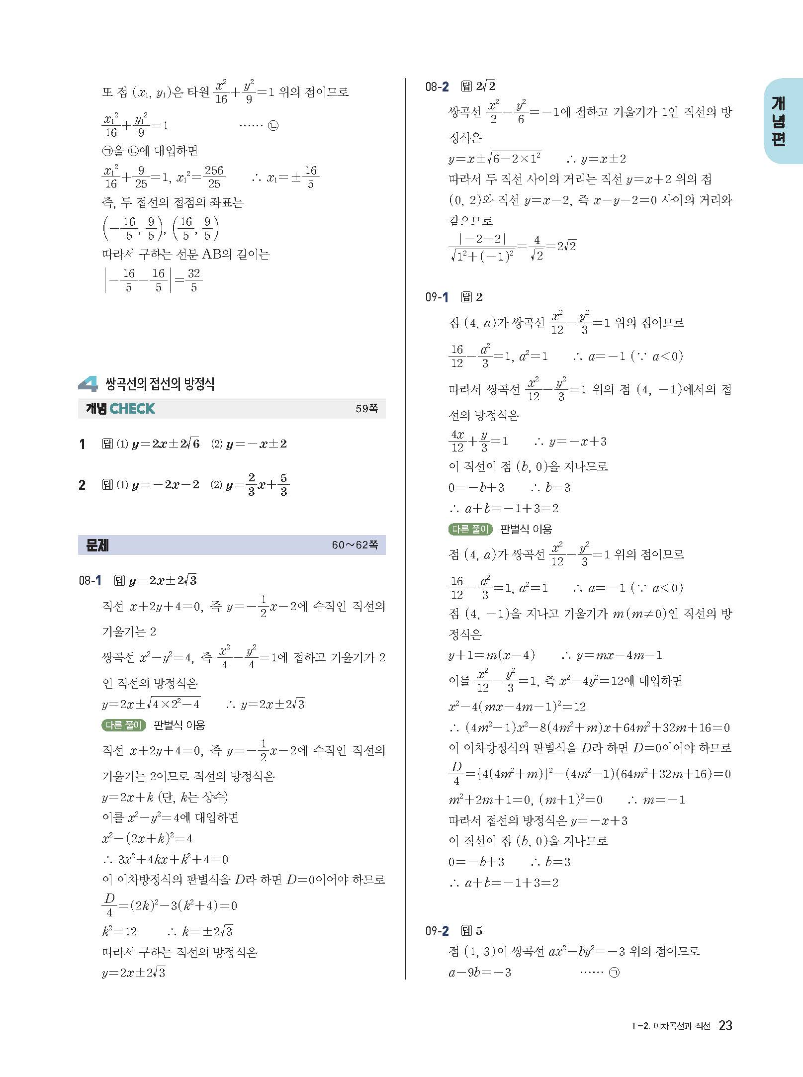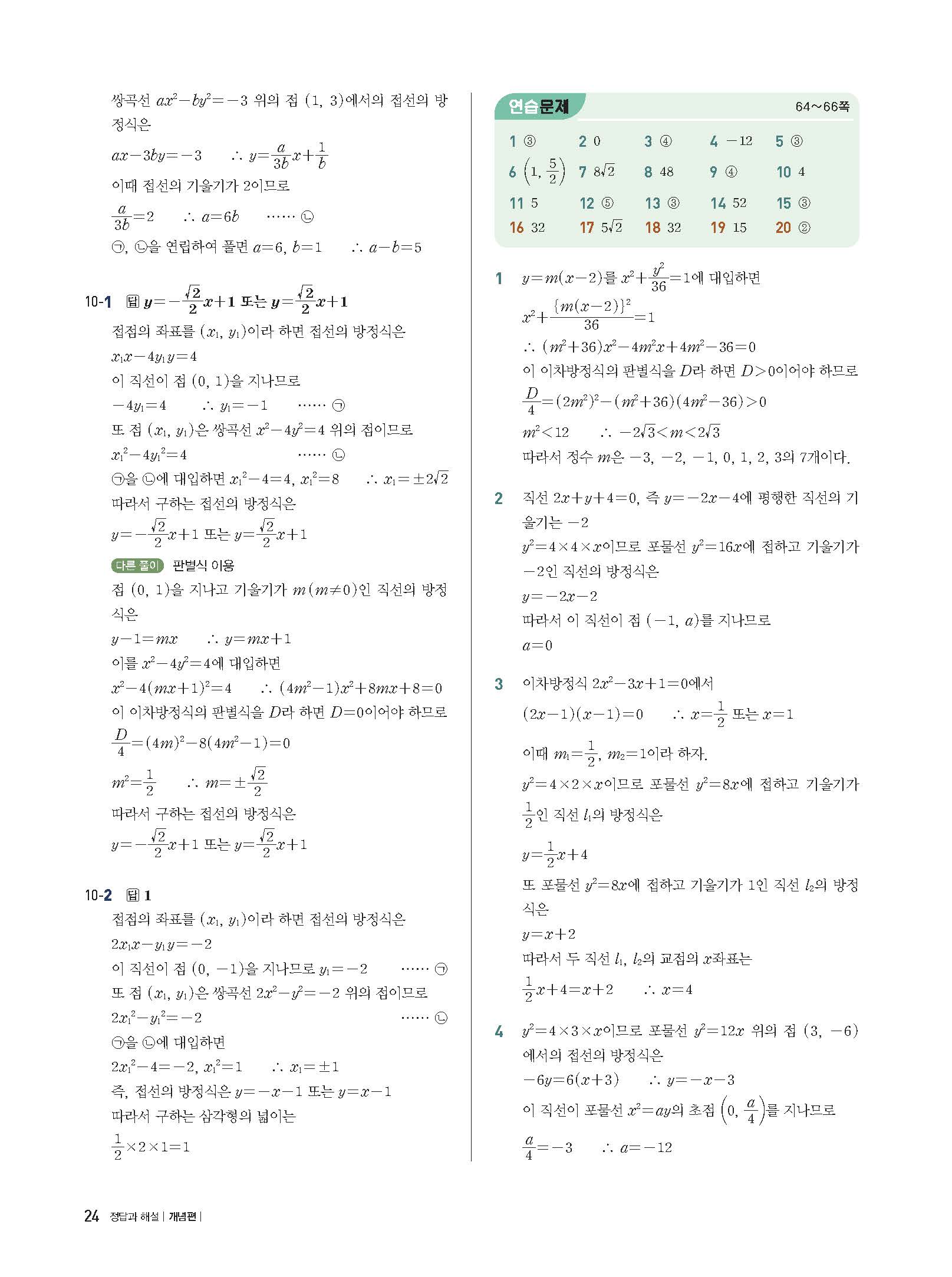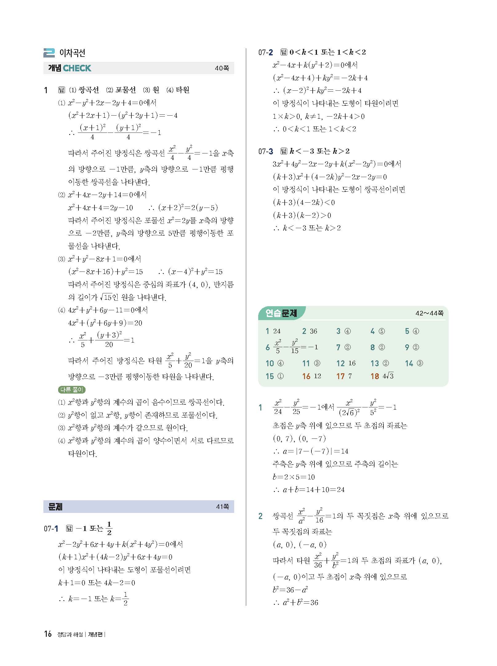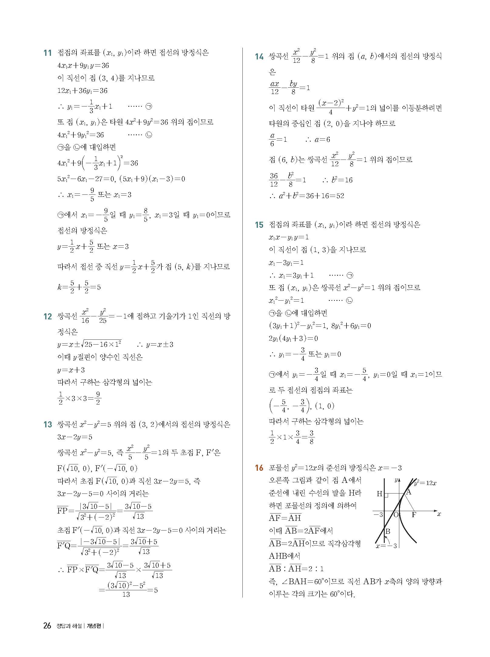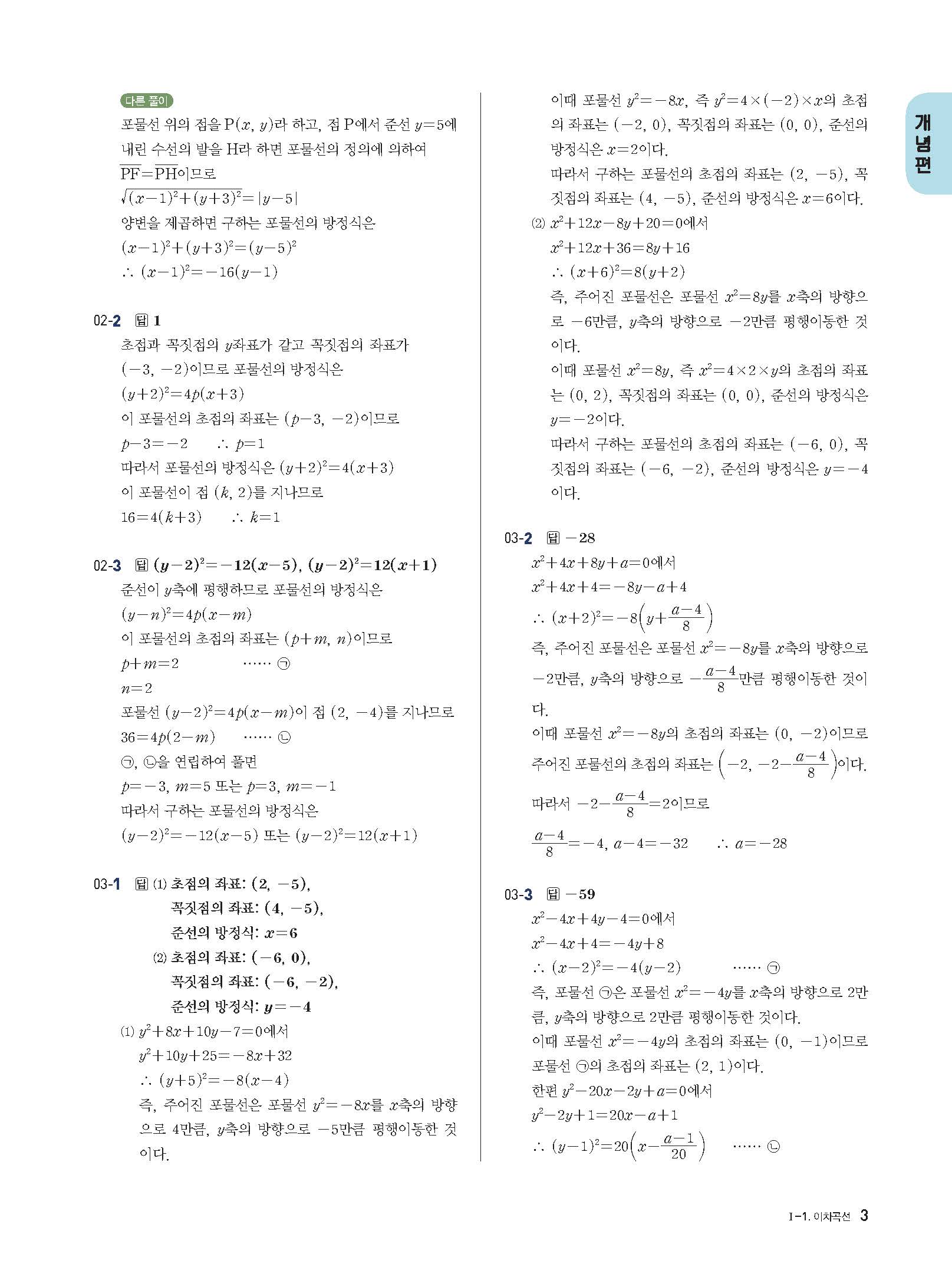 개념플러스유형 고등기하 답지 해설 사진답지 빠른답지 모바일최적화