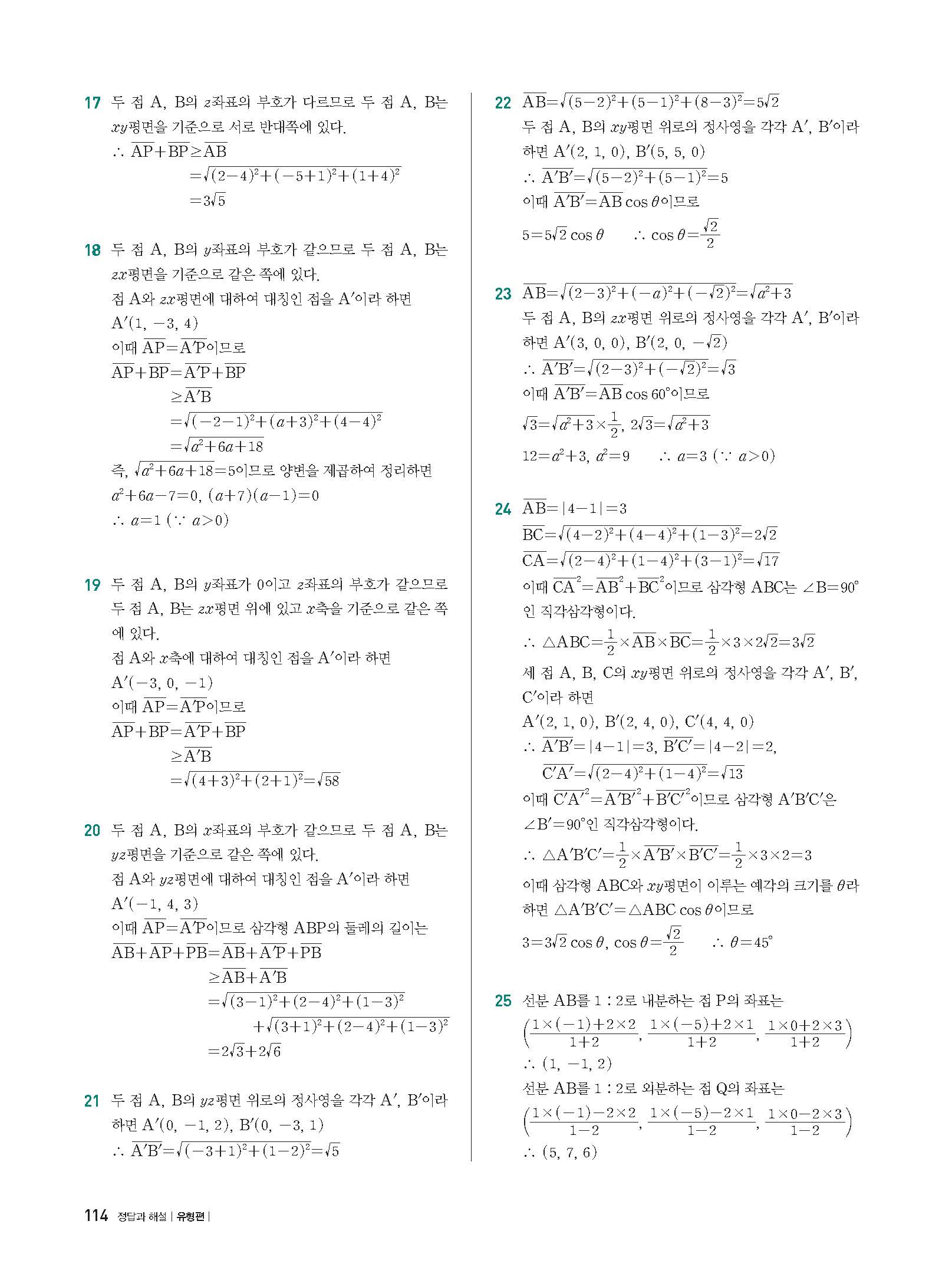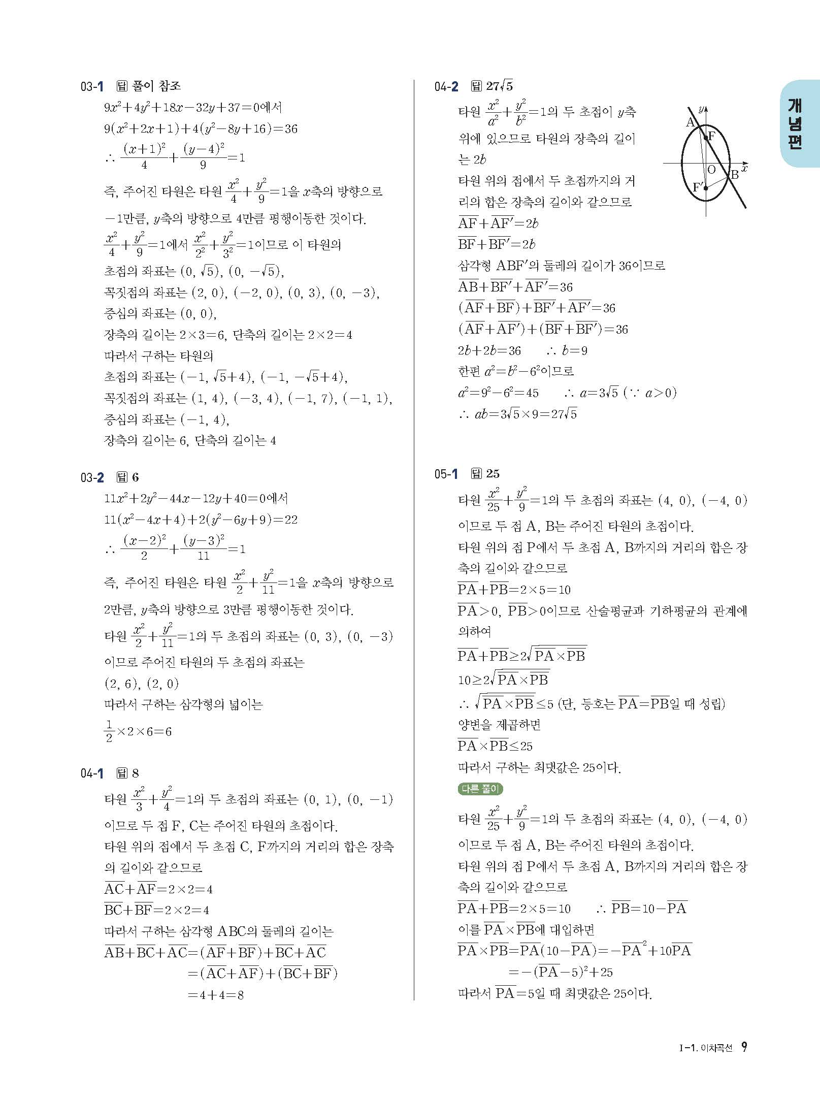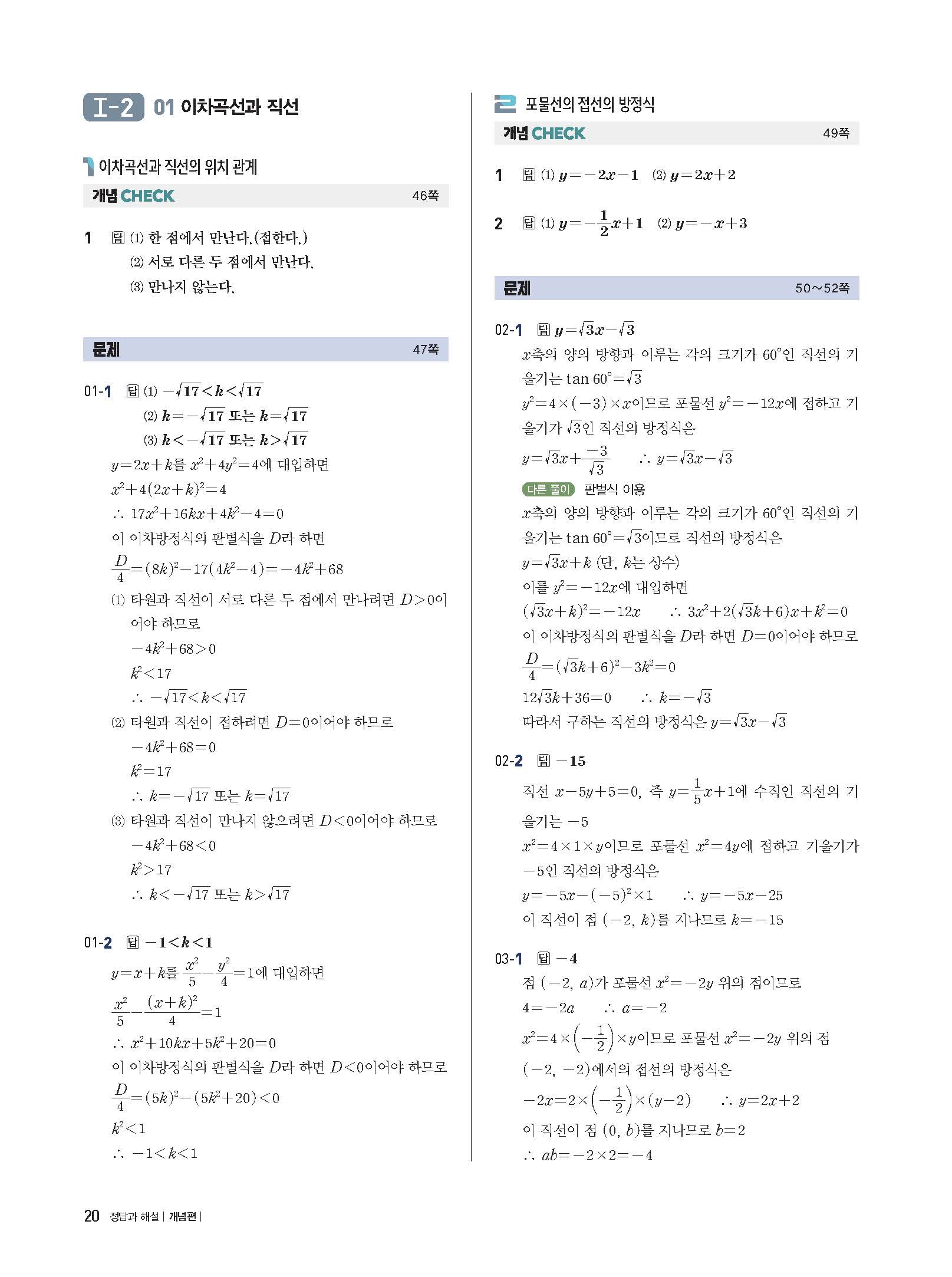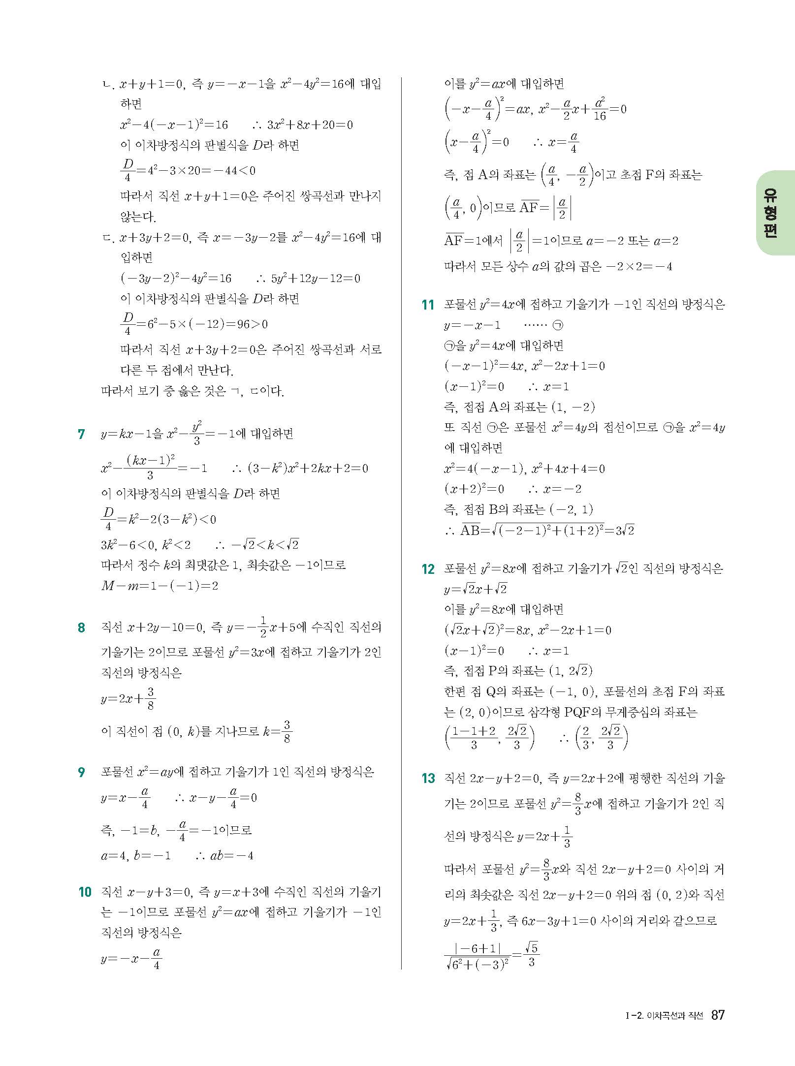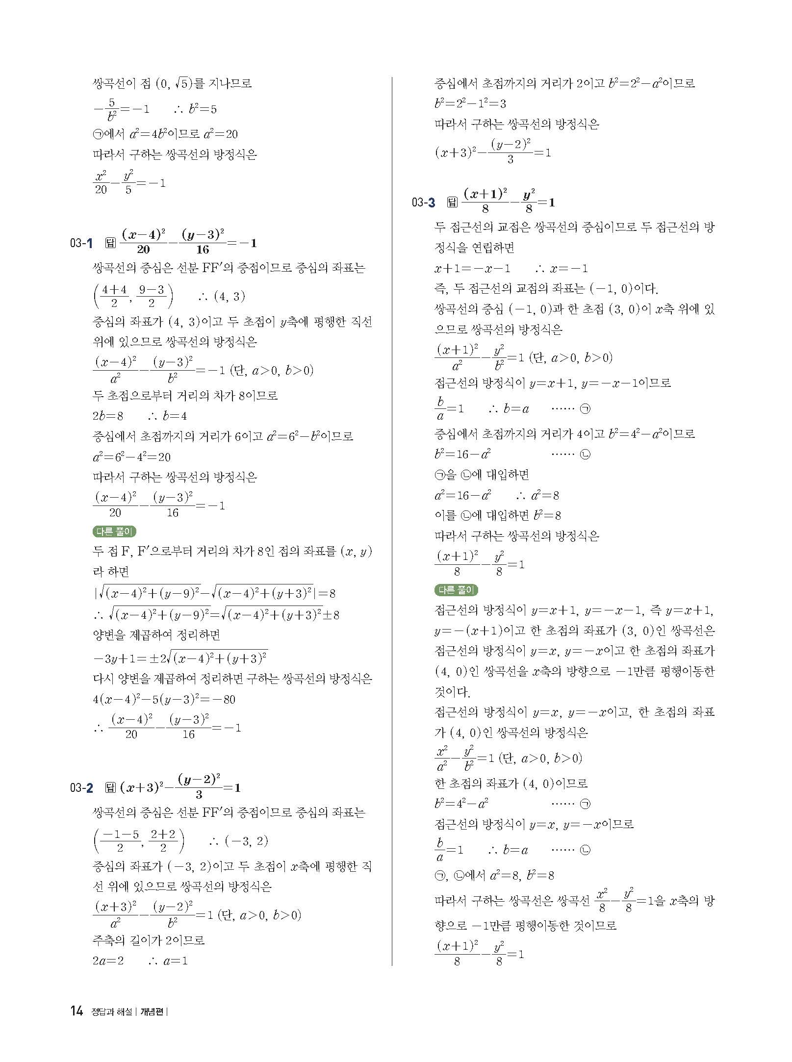 개념플러스유형 고등기하 답지 해설 사진답지 빠른답지 모바일최적화
