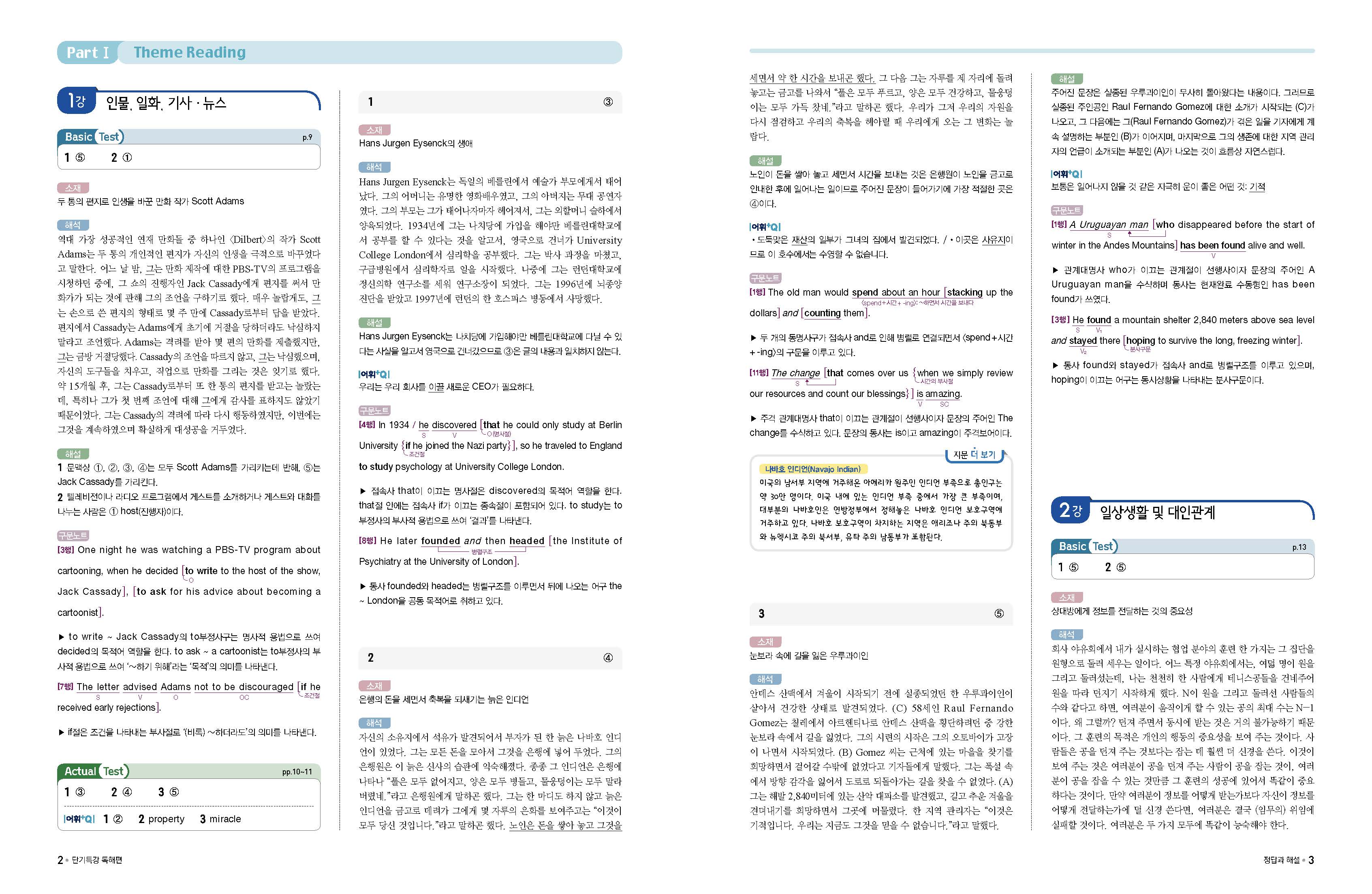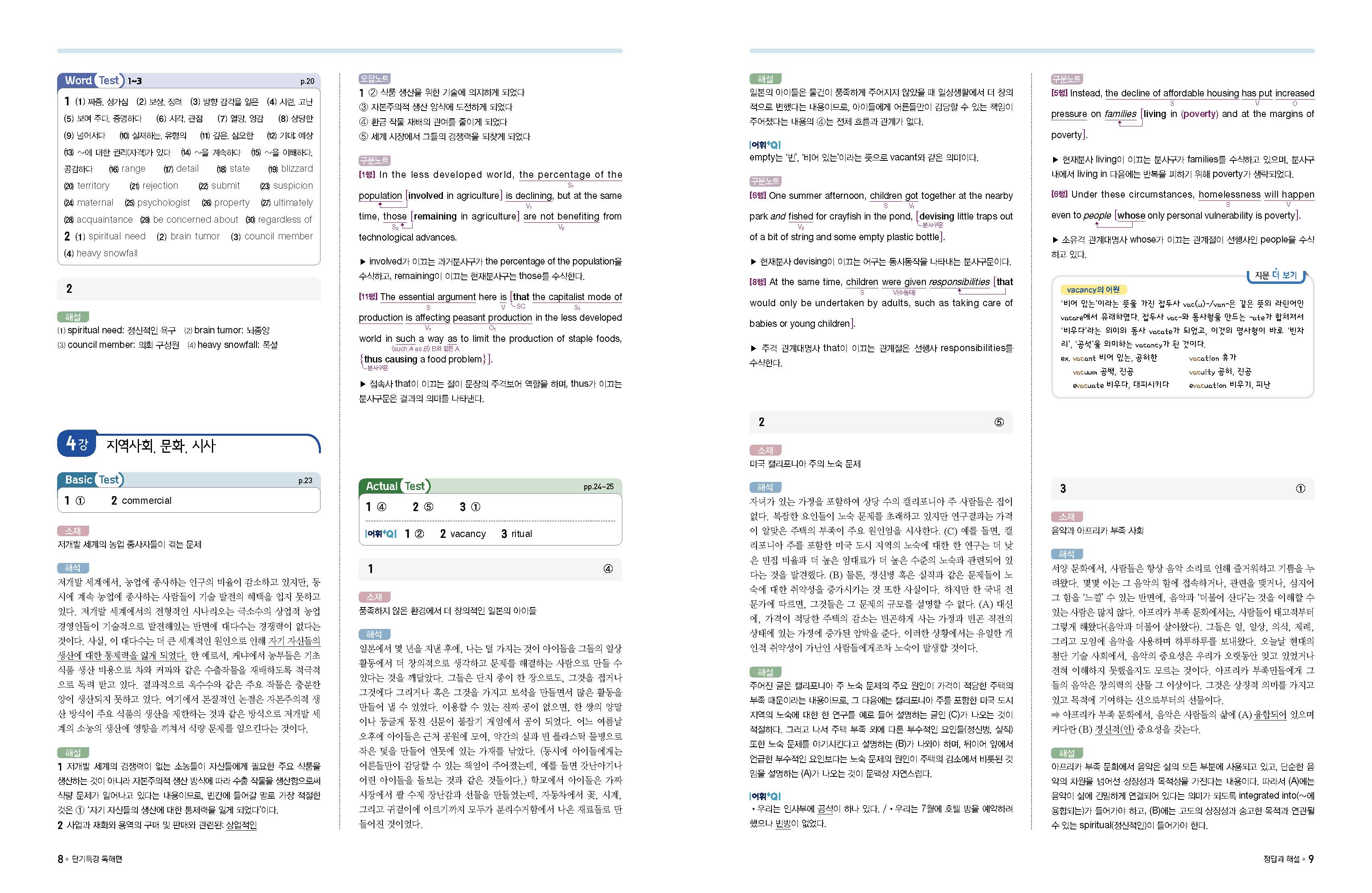 비상 단기특강 영어역영 독해편 답지 해설 사진답지 빠른답지 모바일최적화
