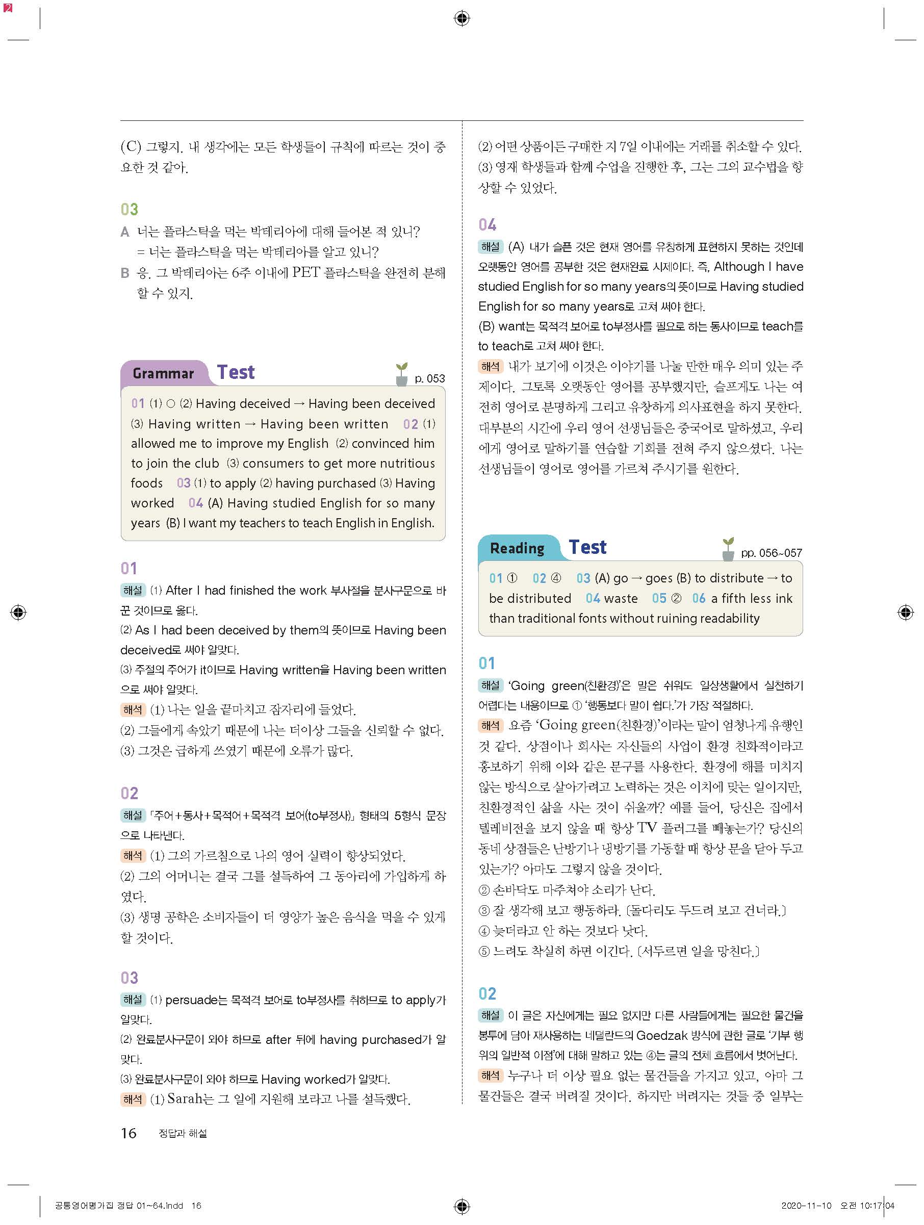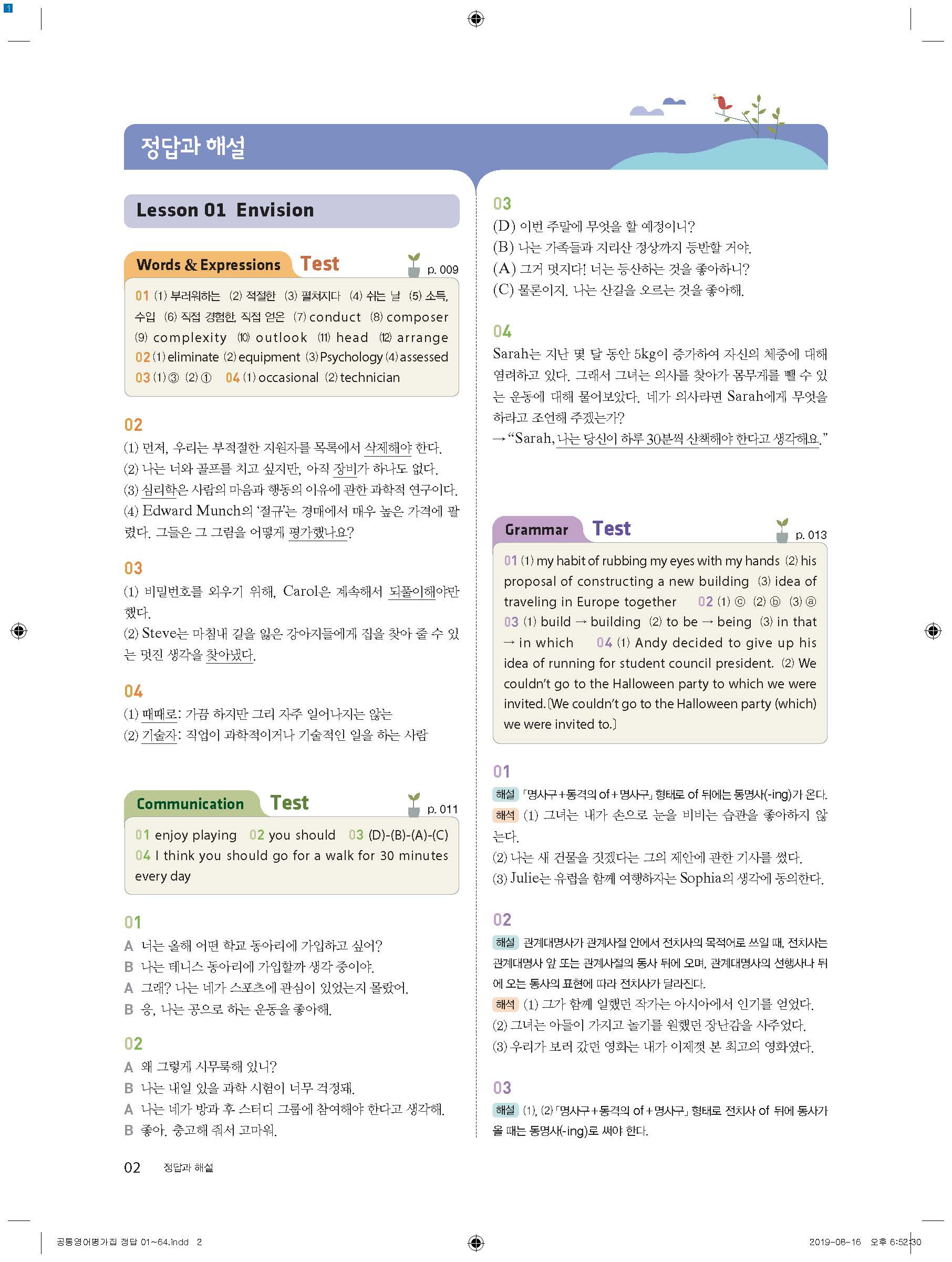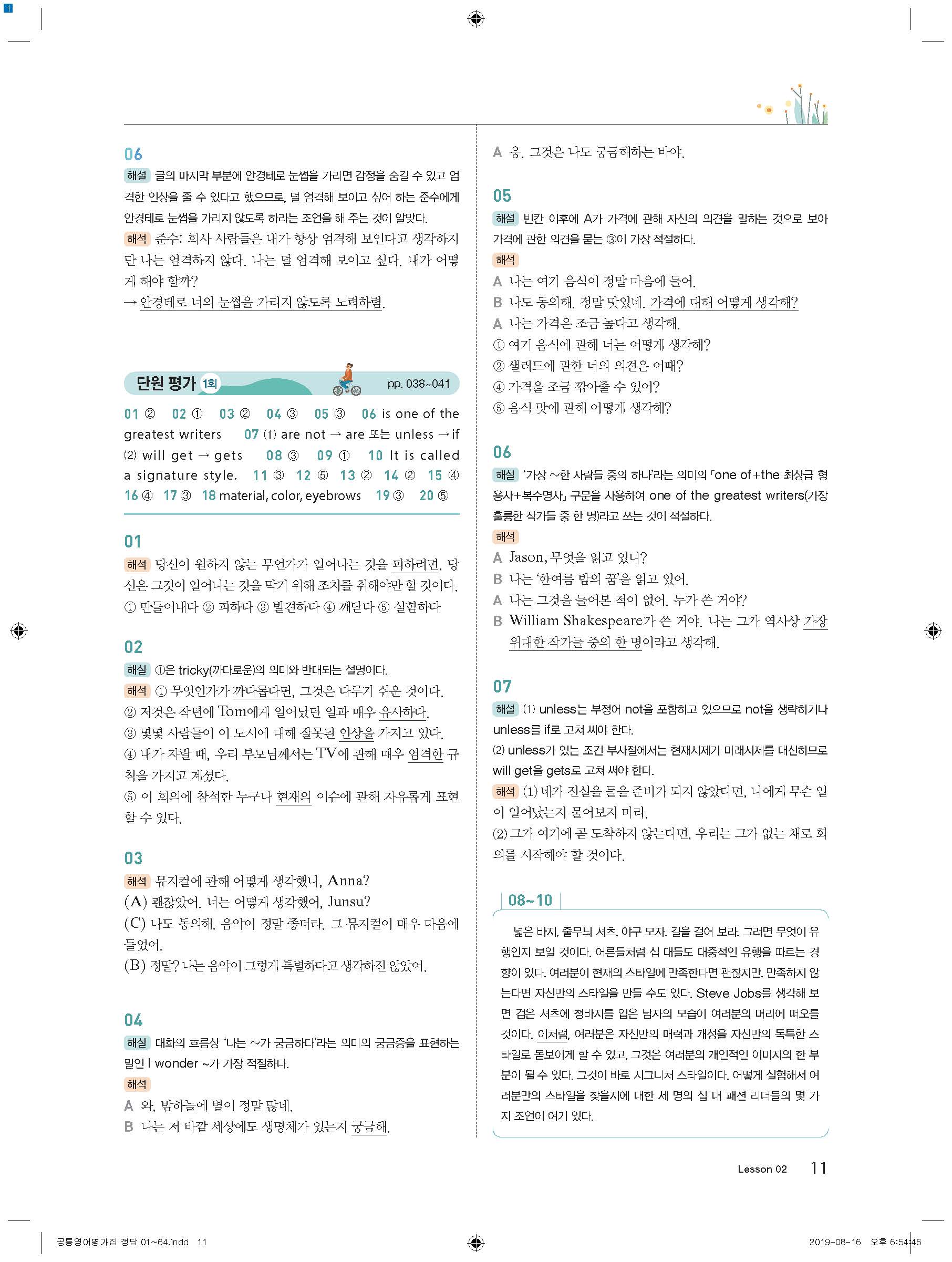비상 고등영어 평가문제집 답지 해설 사진답지 빠른답지 모바일최적화