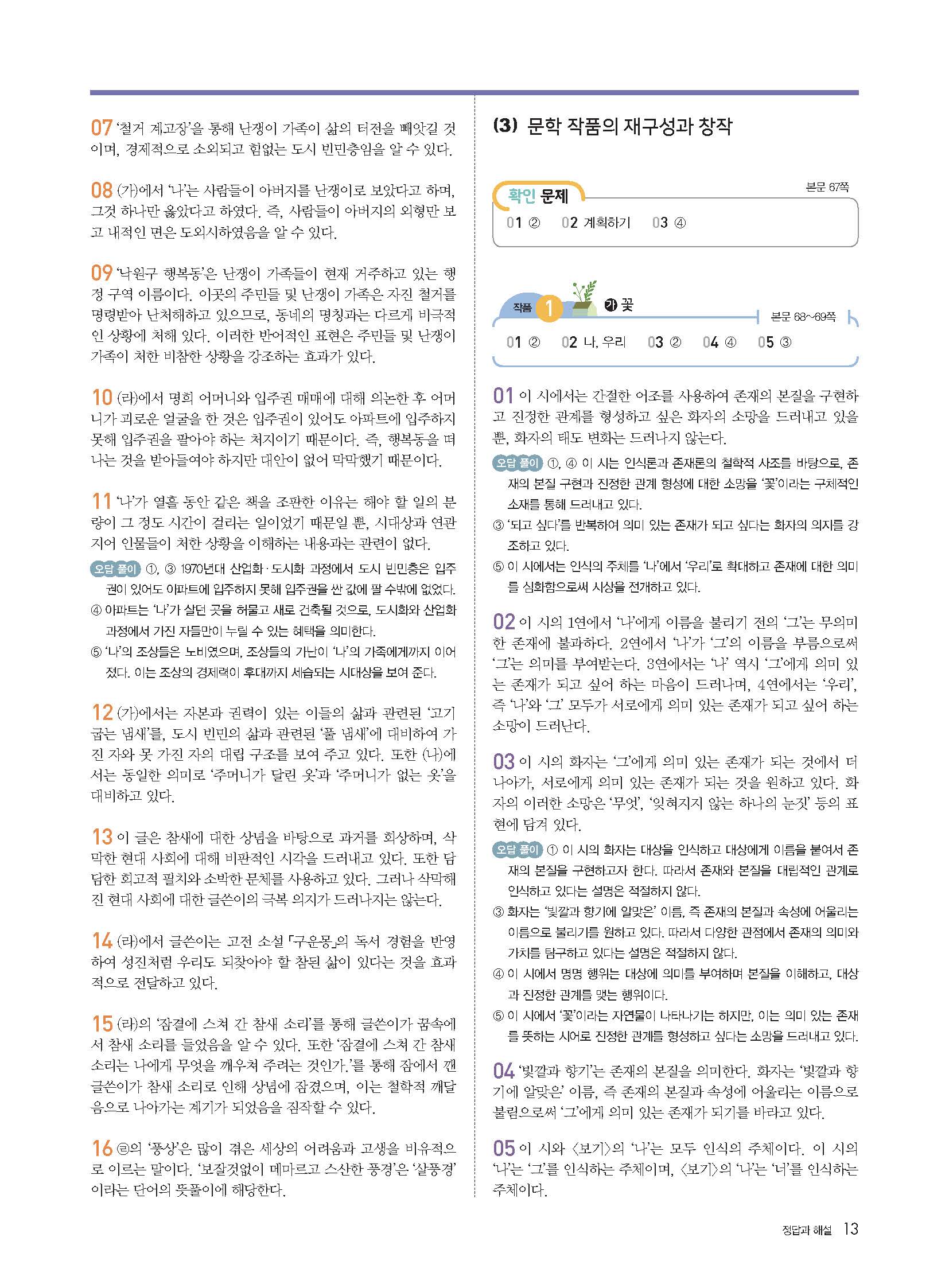 내공의힘 평가문제집 고등문학 답지 해설 사진답지 빠른답지 모바일최적화