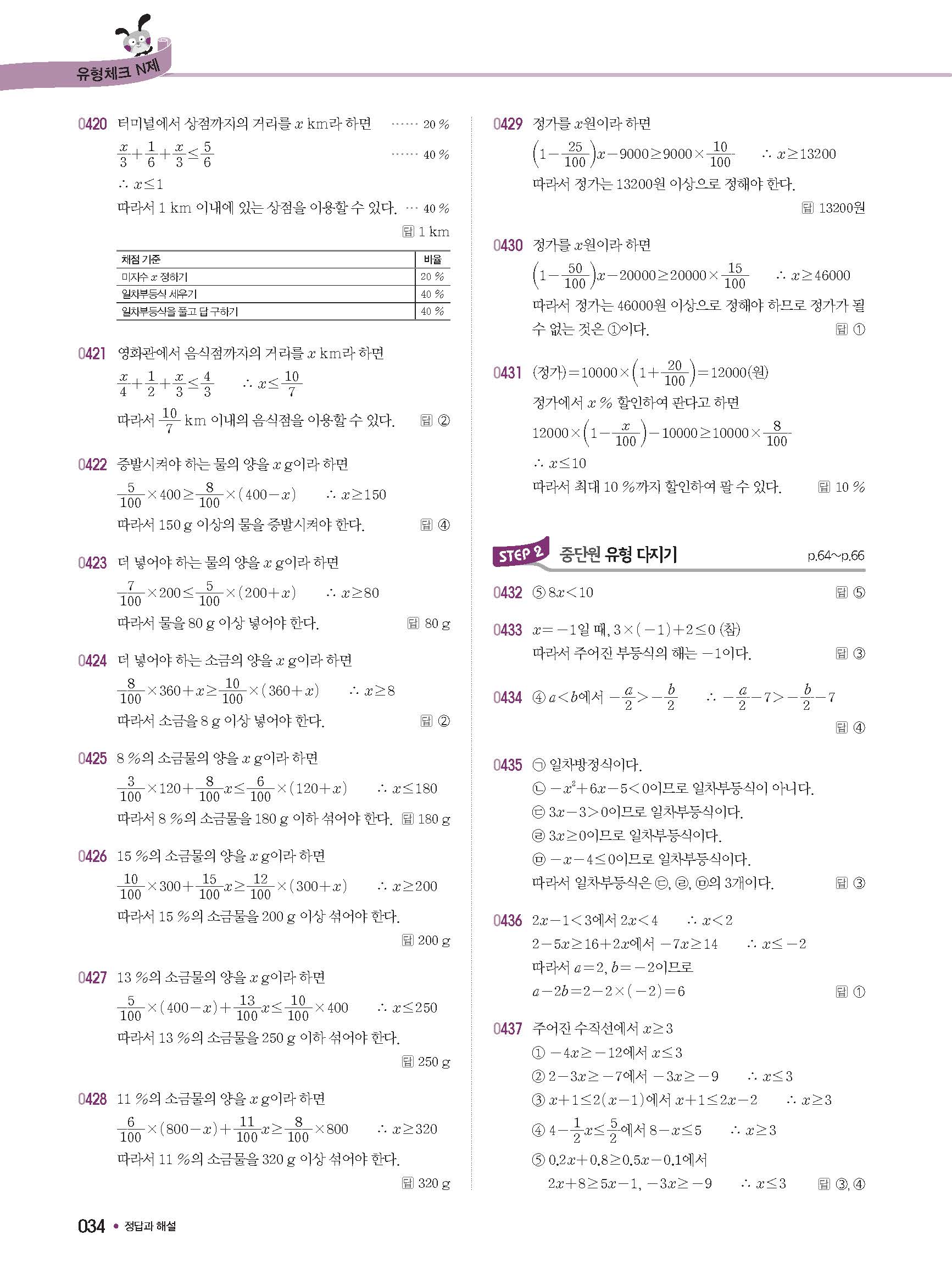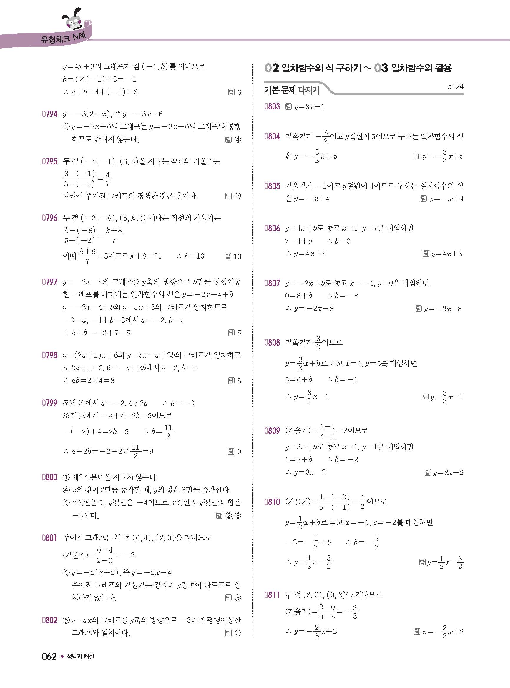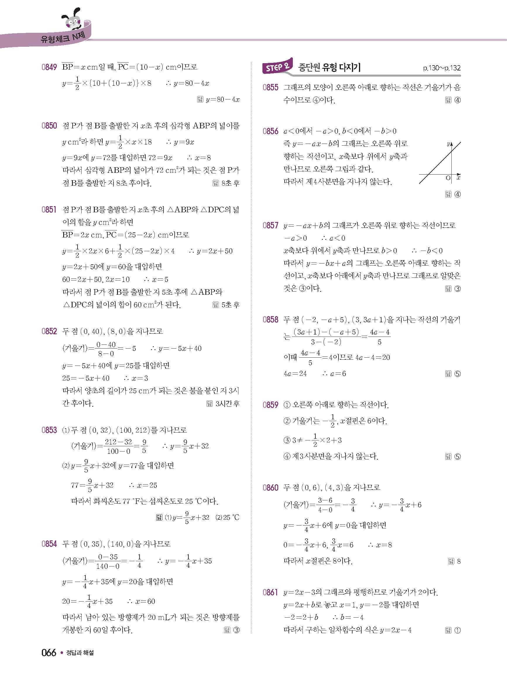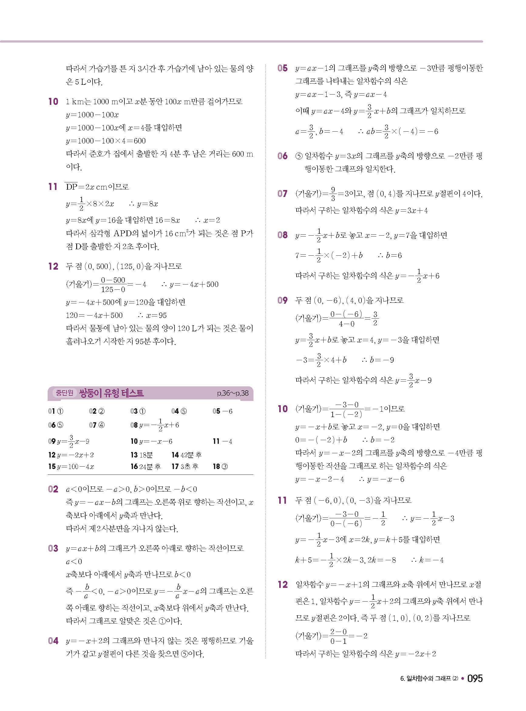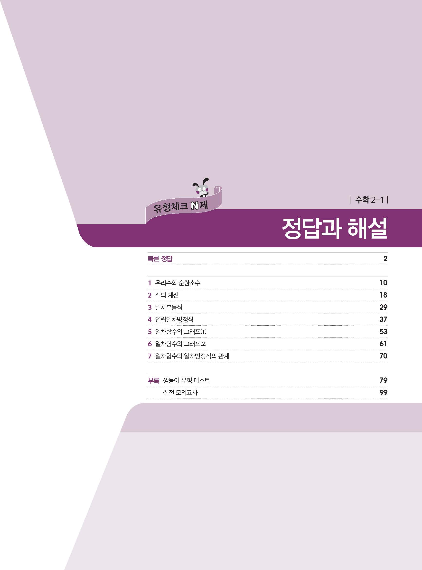 체크체크 중등수학 유형엔제 중2상 2-1 답지 해설 사진답지 빠른답지 모바일최적화
