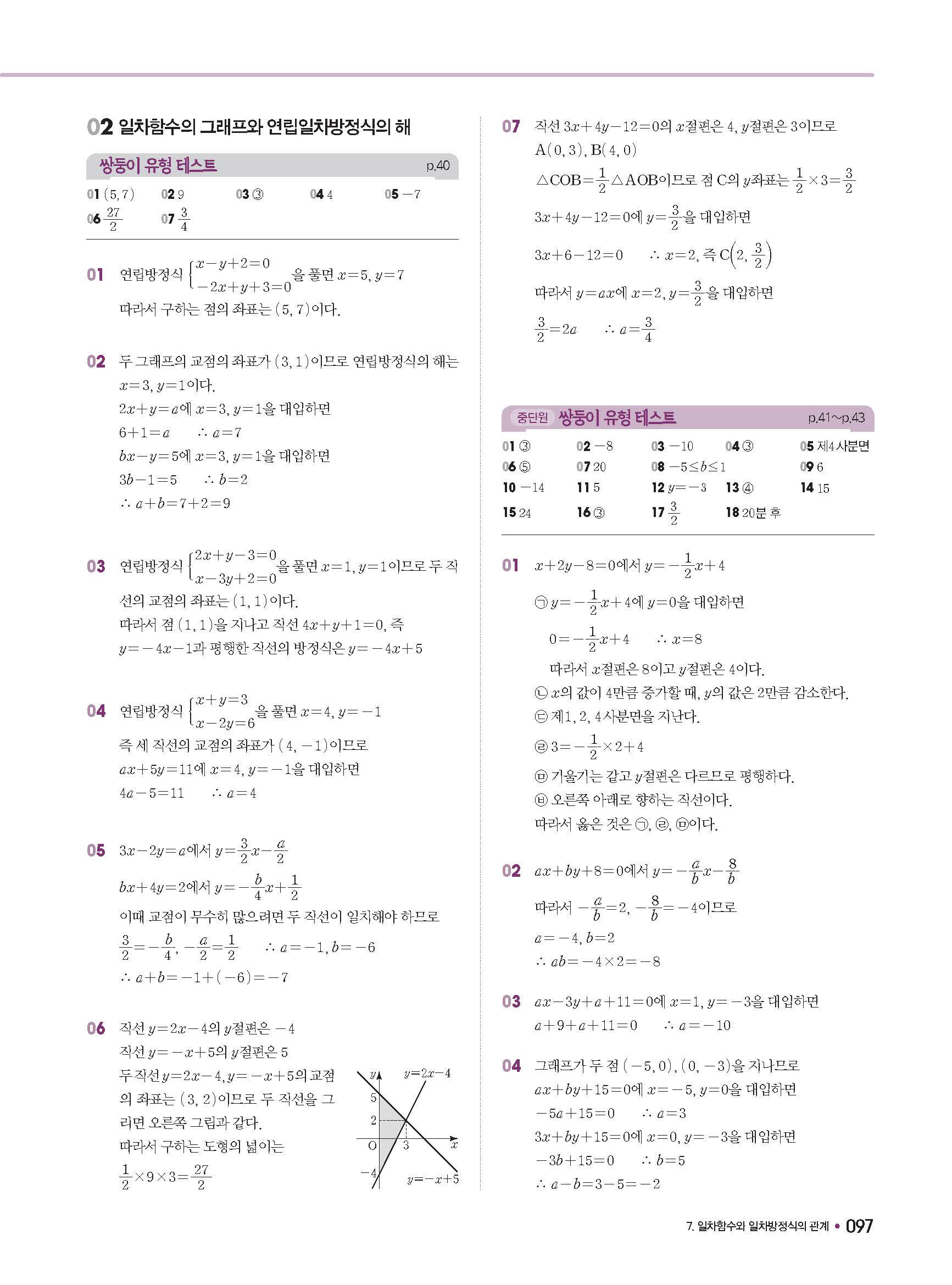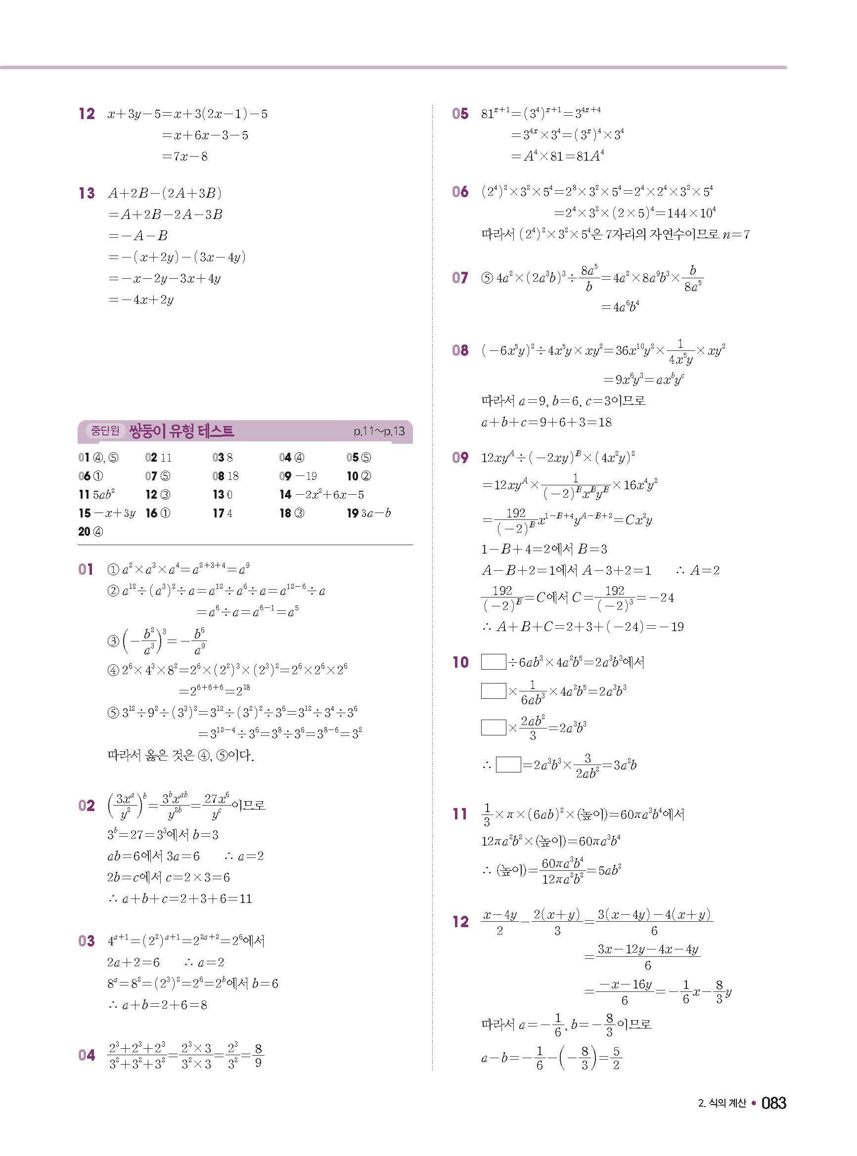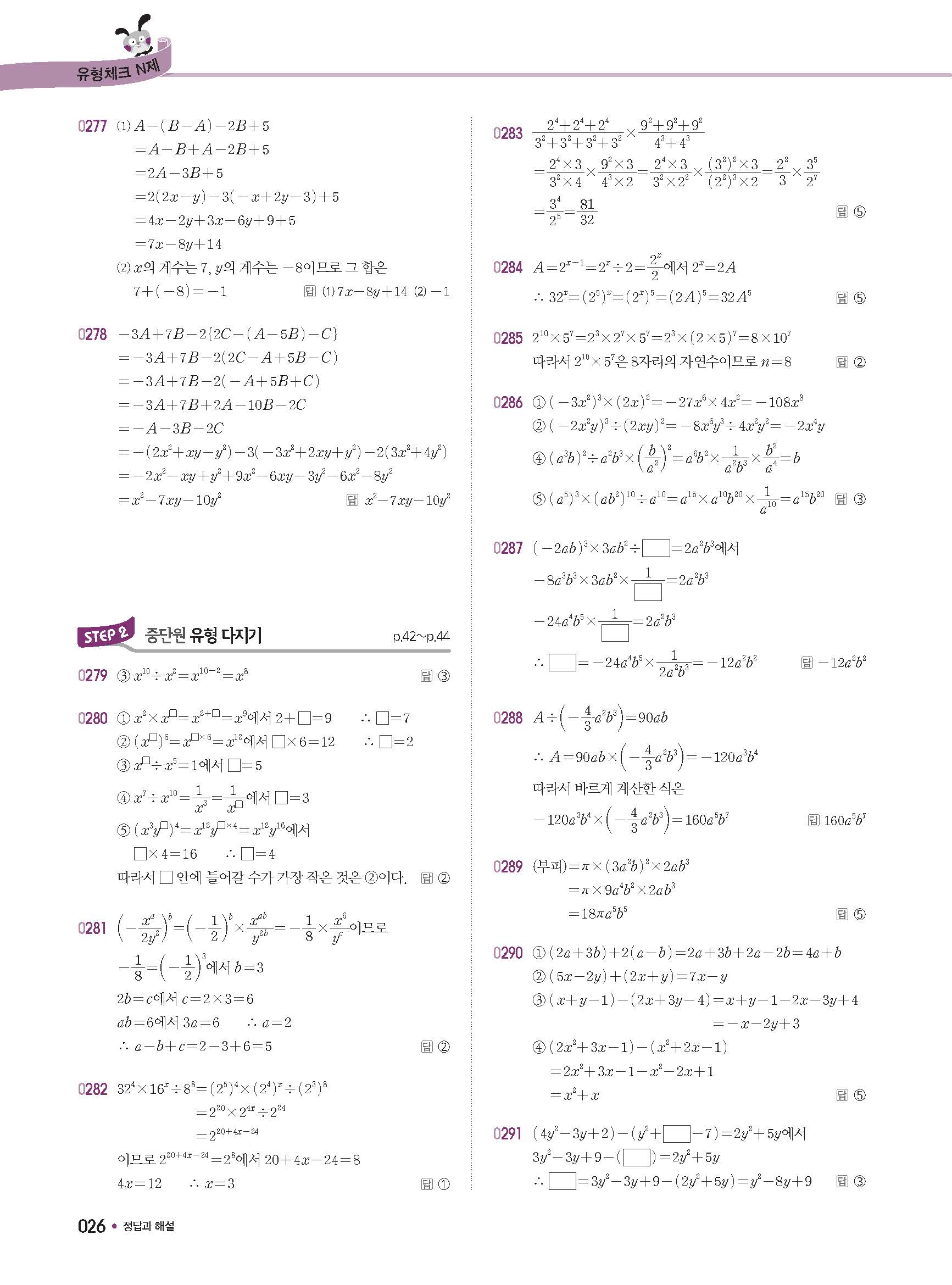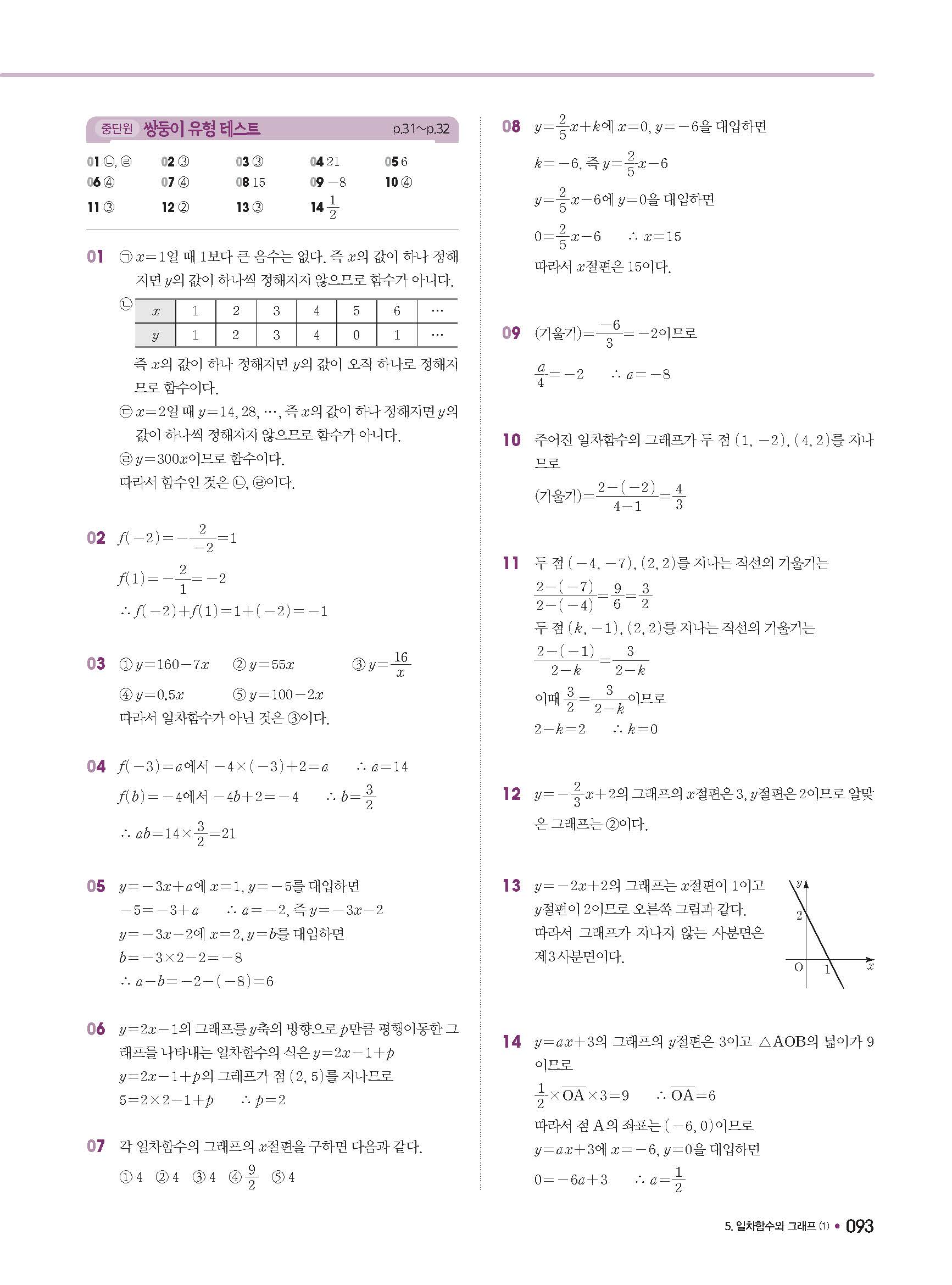 체크체크 중등수학 유형엔제 중2상 2-1 답지 해설 사진답지 빠른답지 모바일최적화