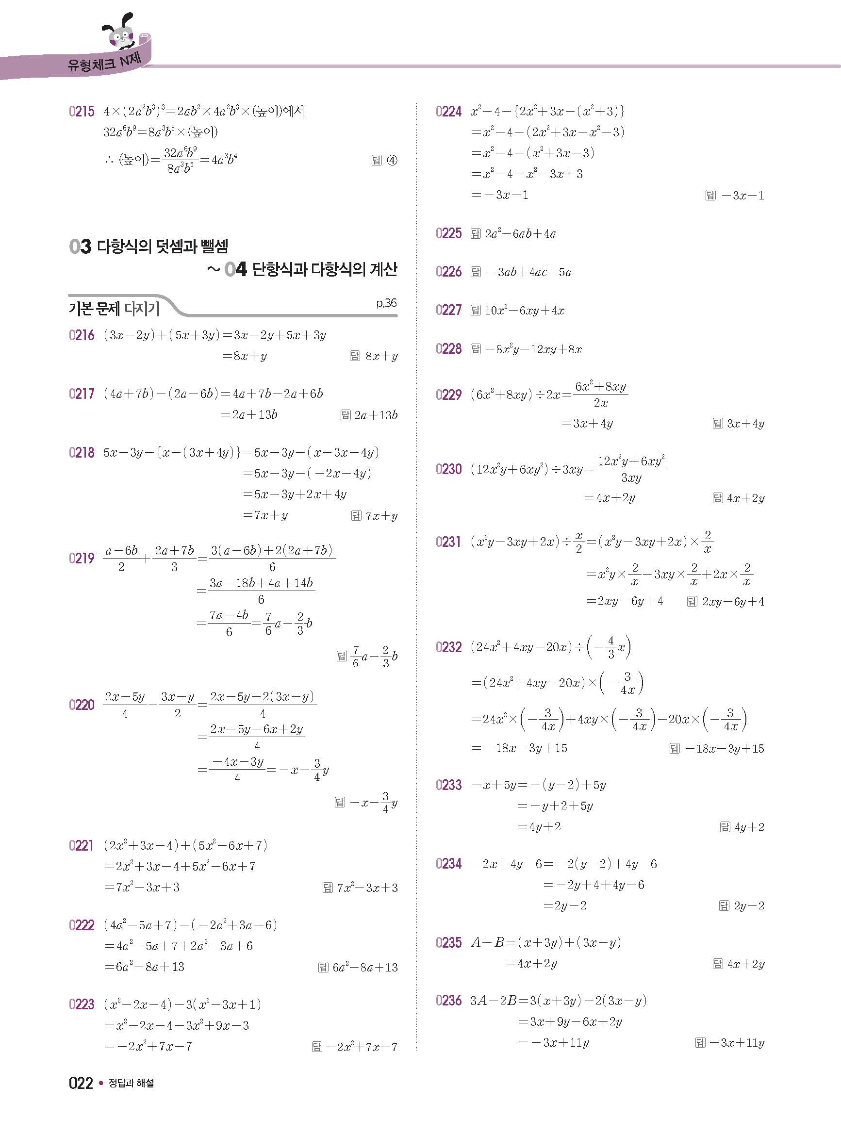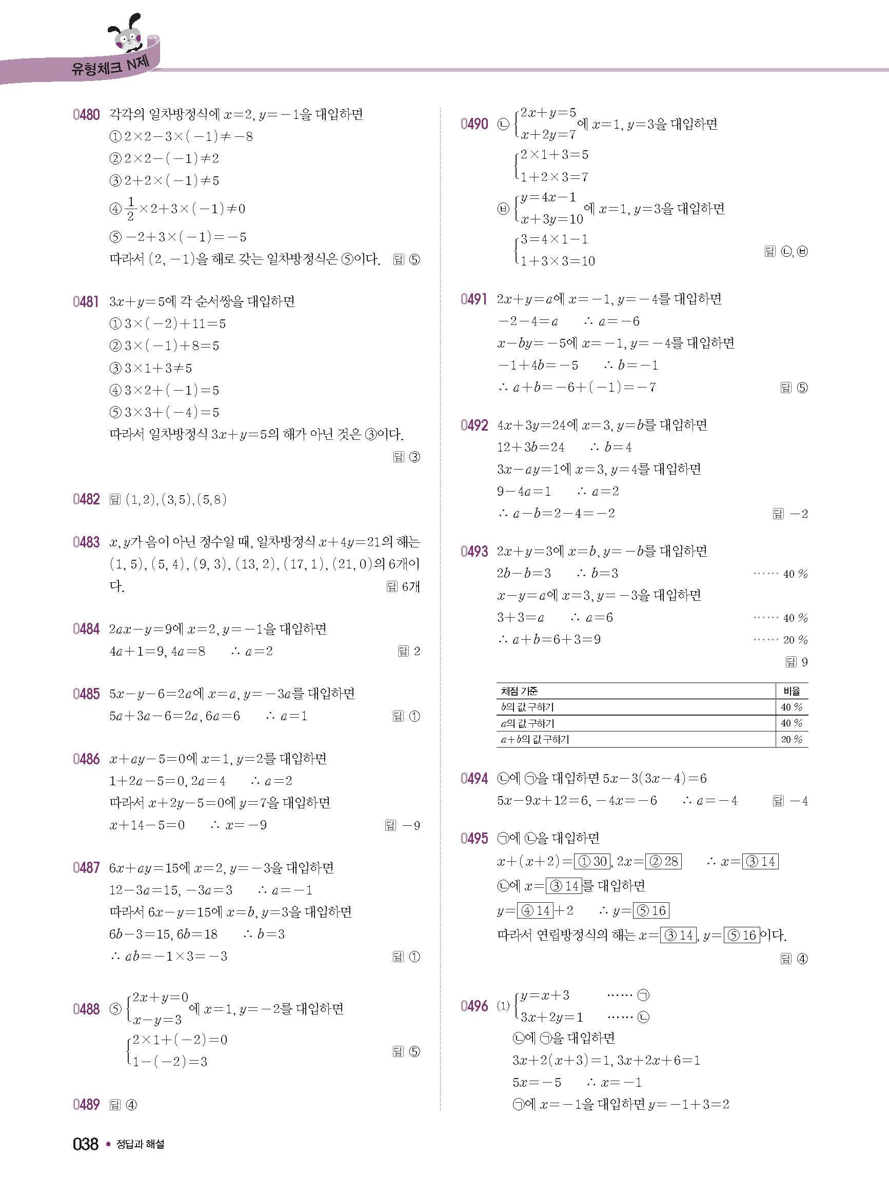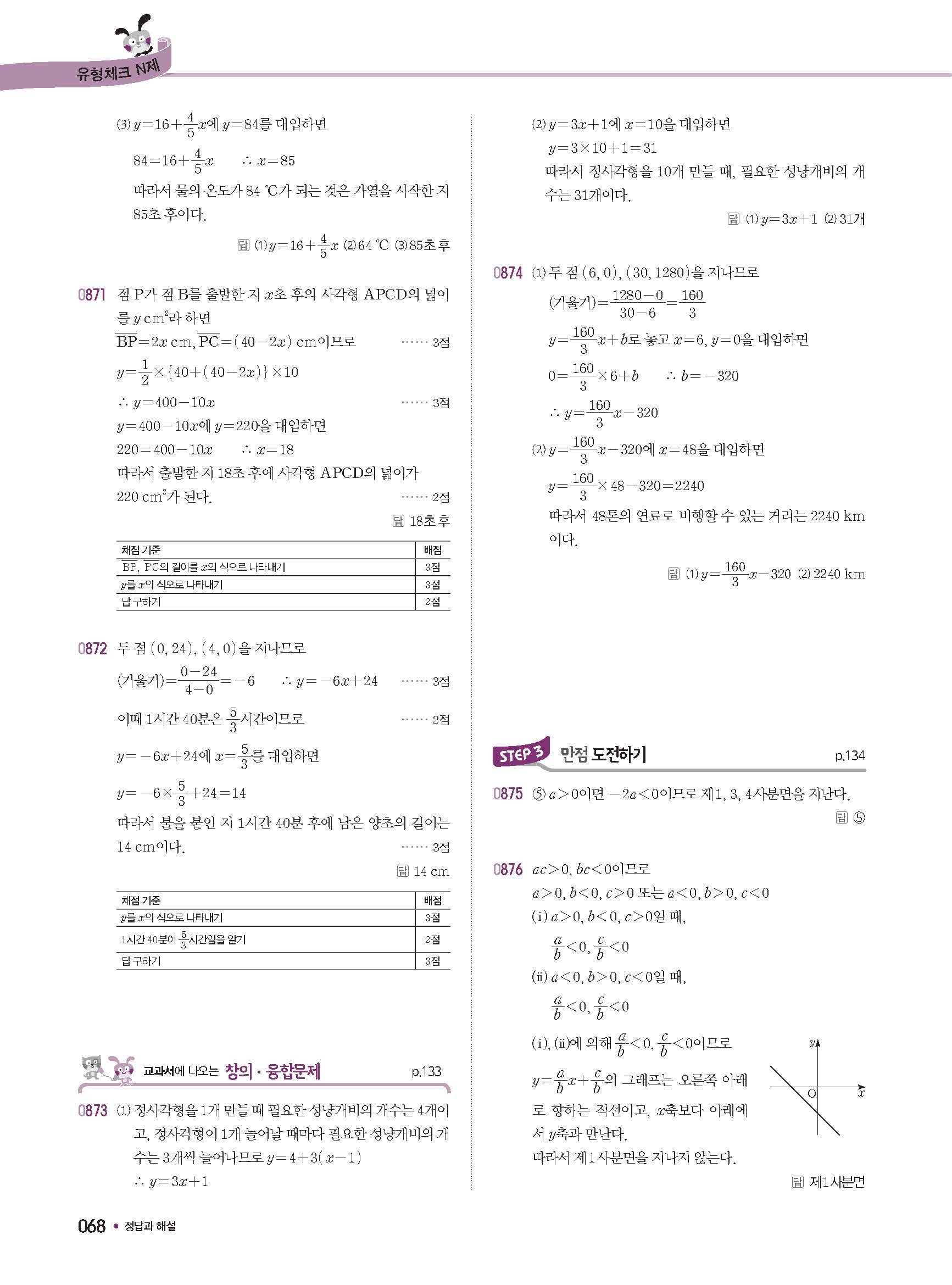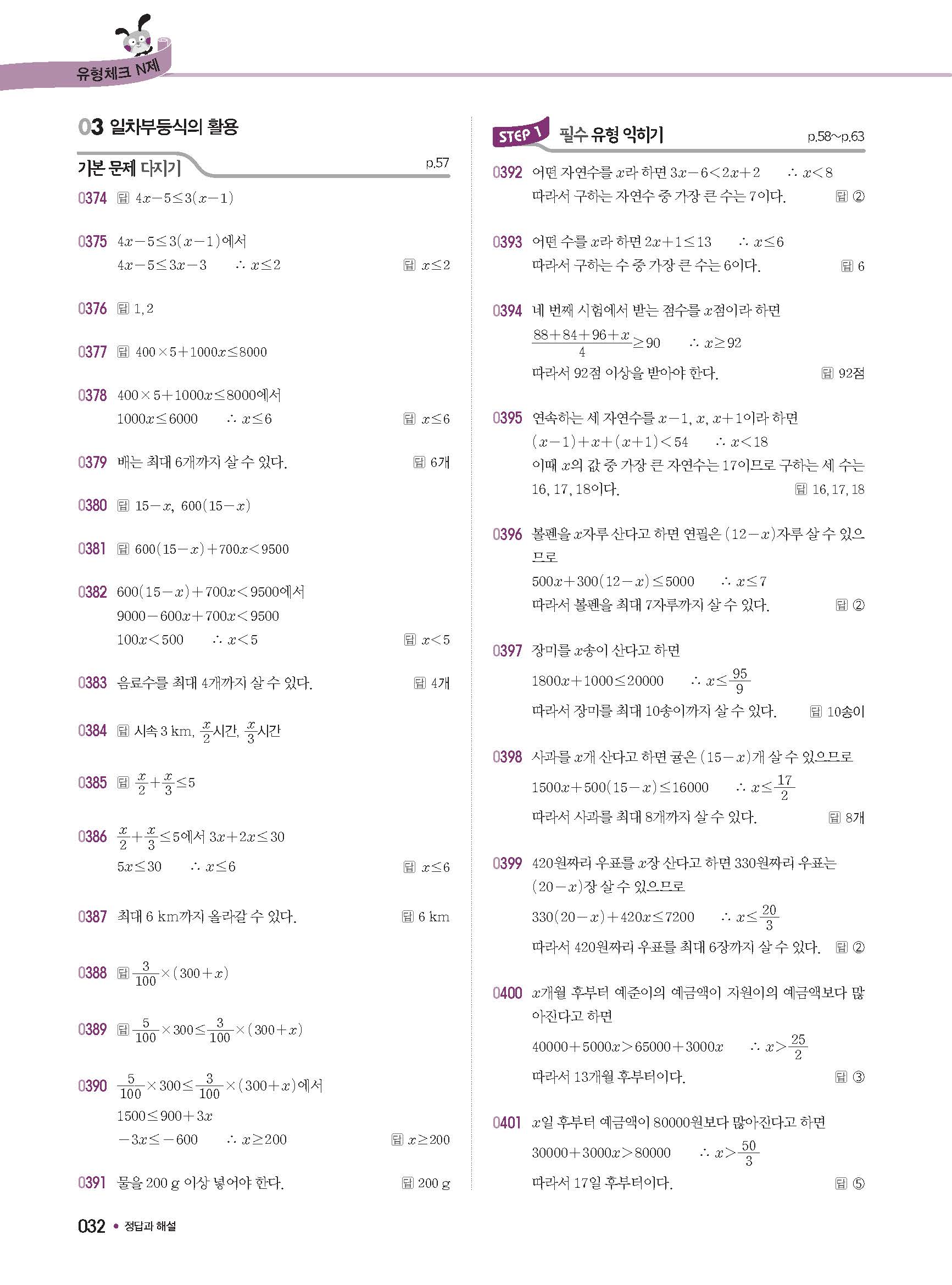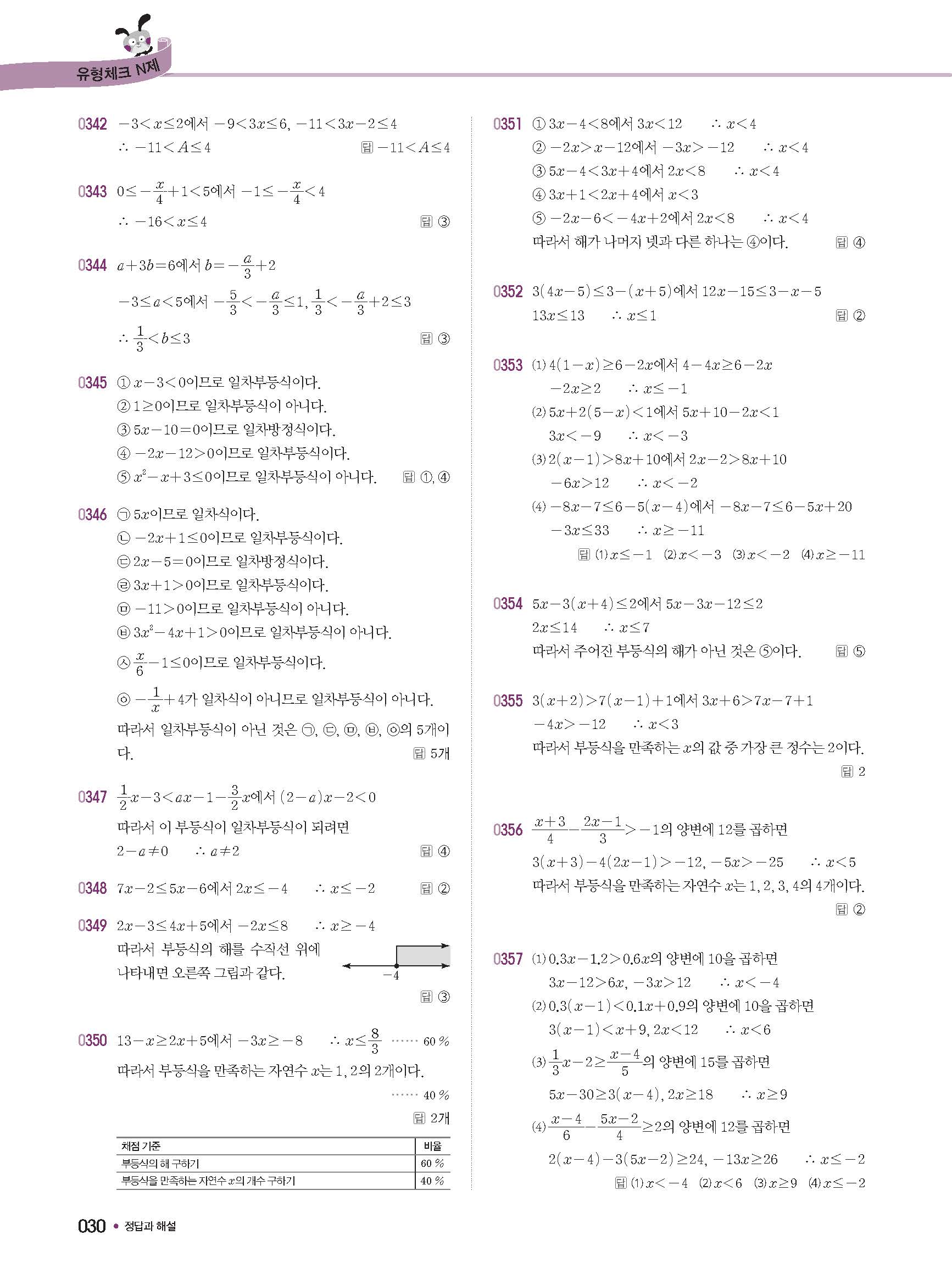 체크체크 중등수학 유형엔제 중2상 2-1 답지 해설 사진답지 빠른답지 모바일최적화
