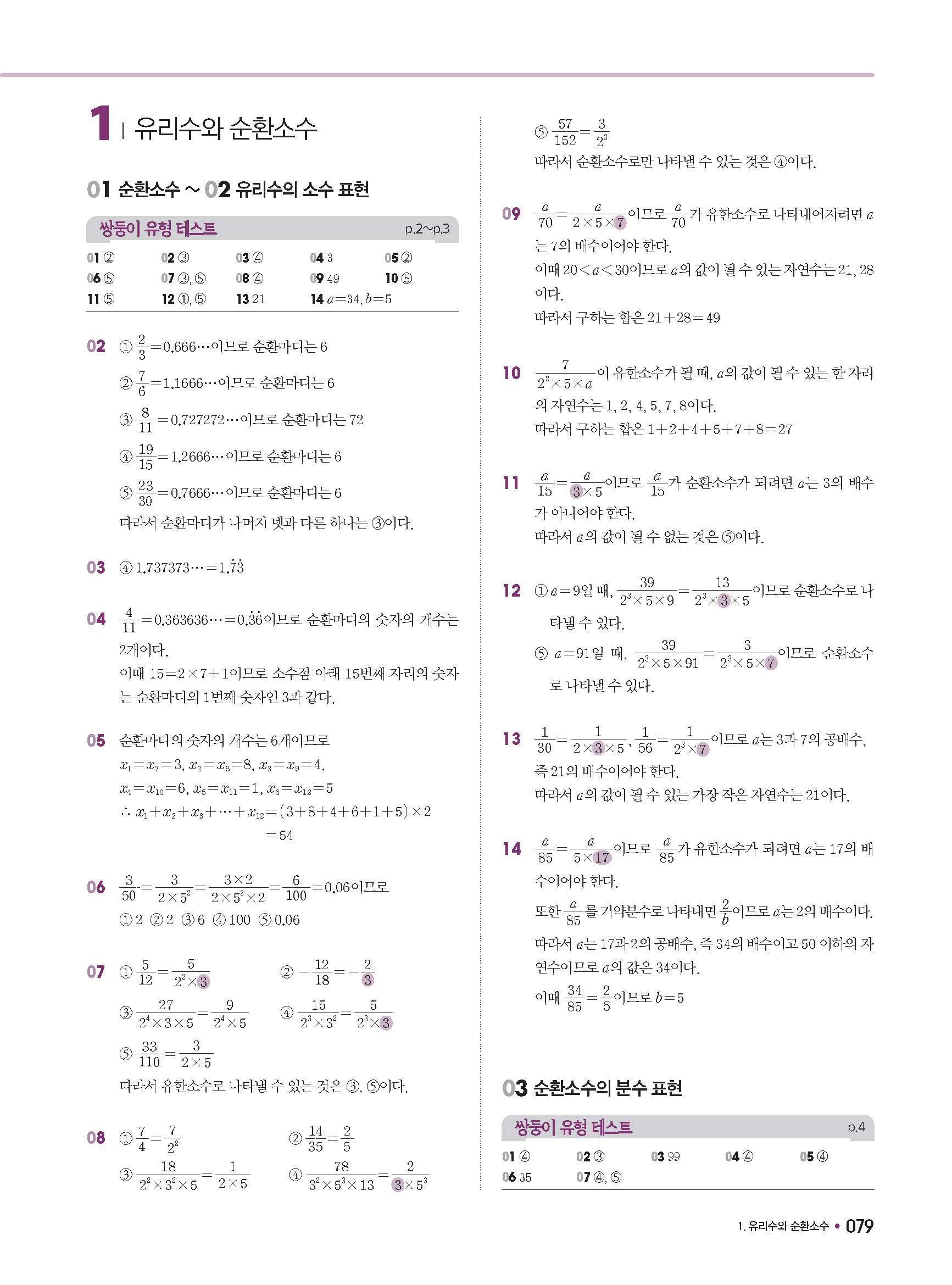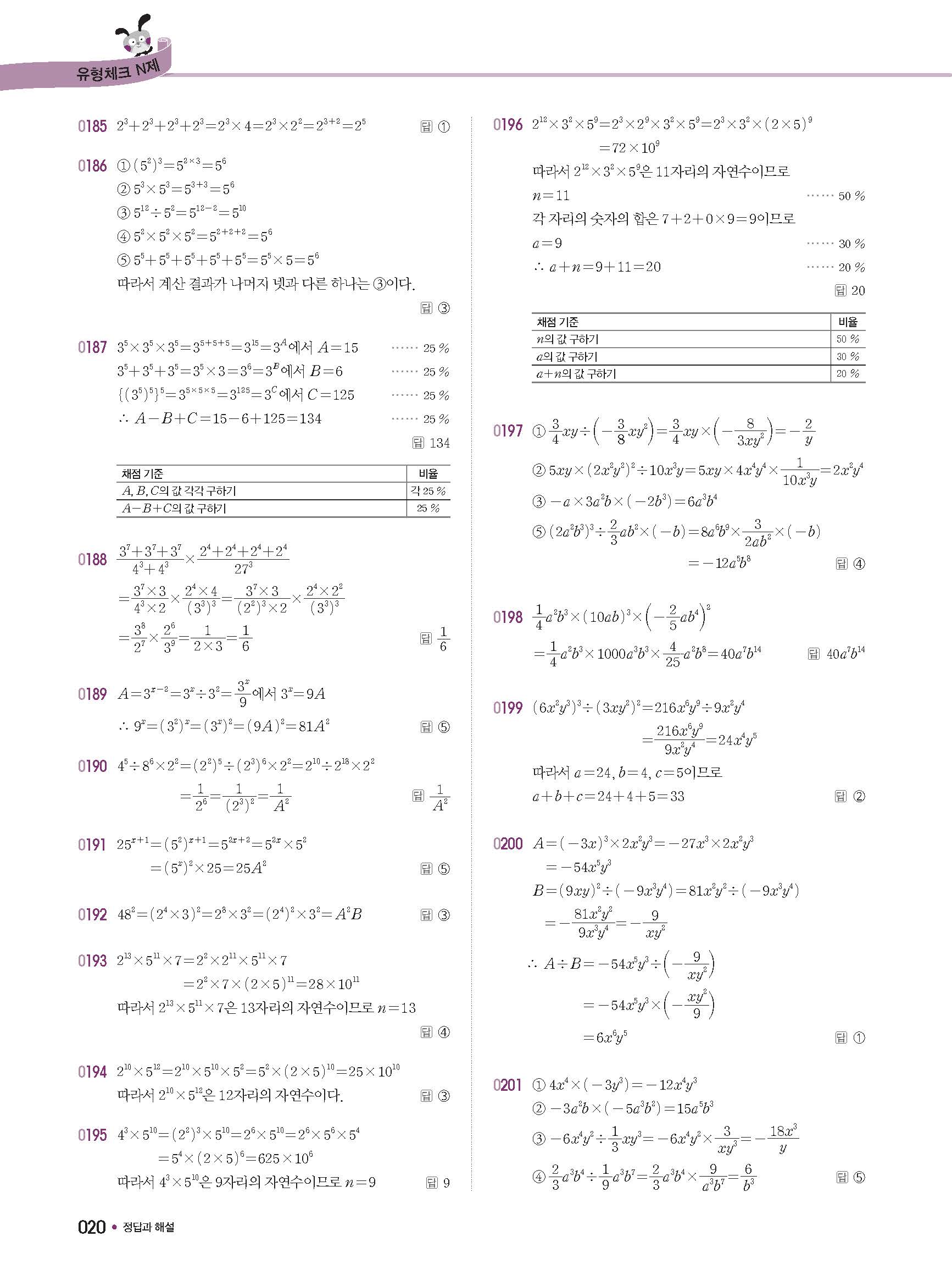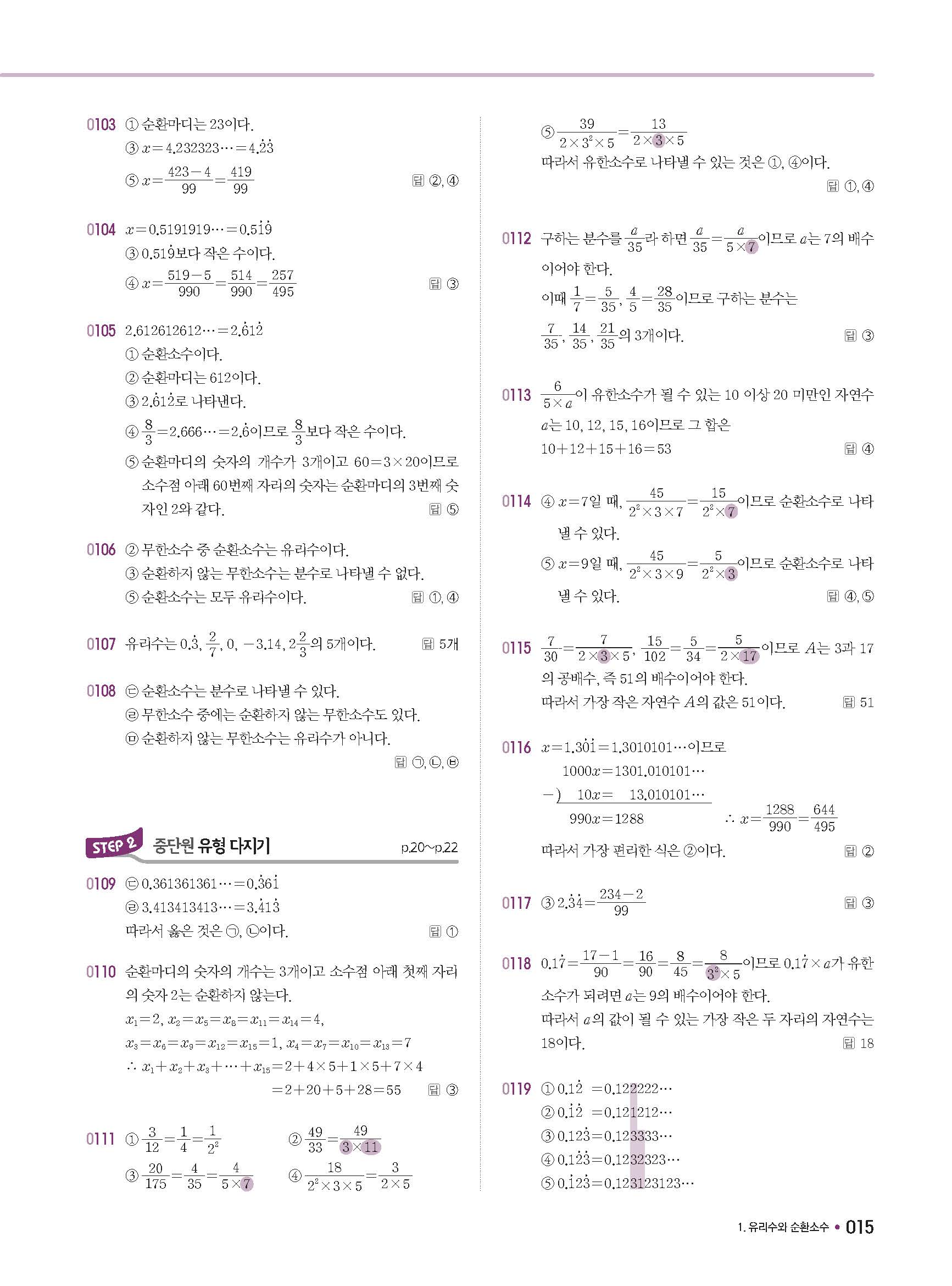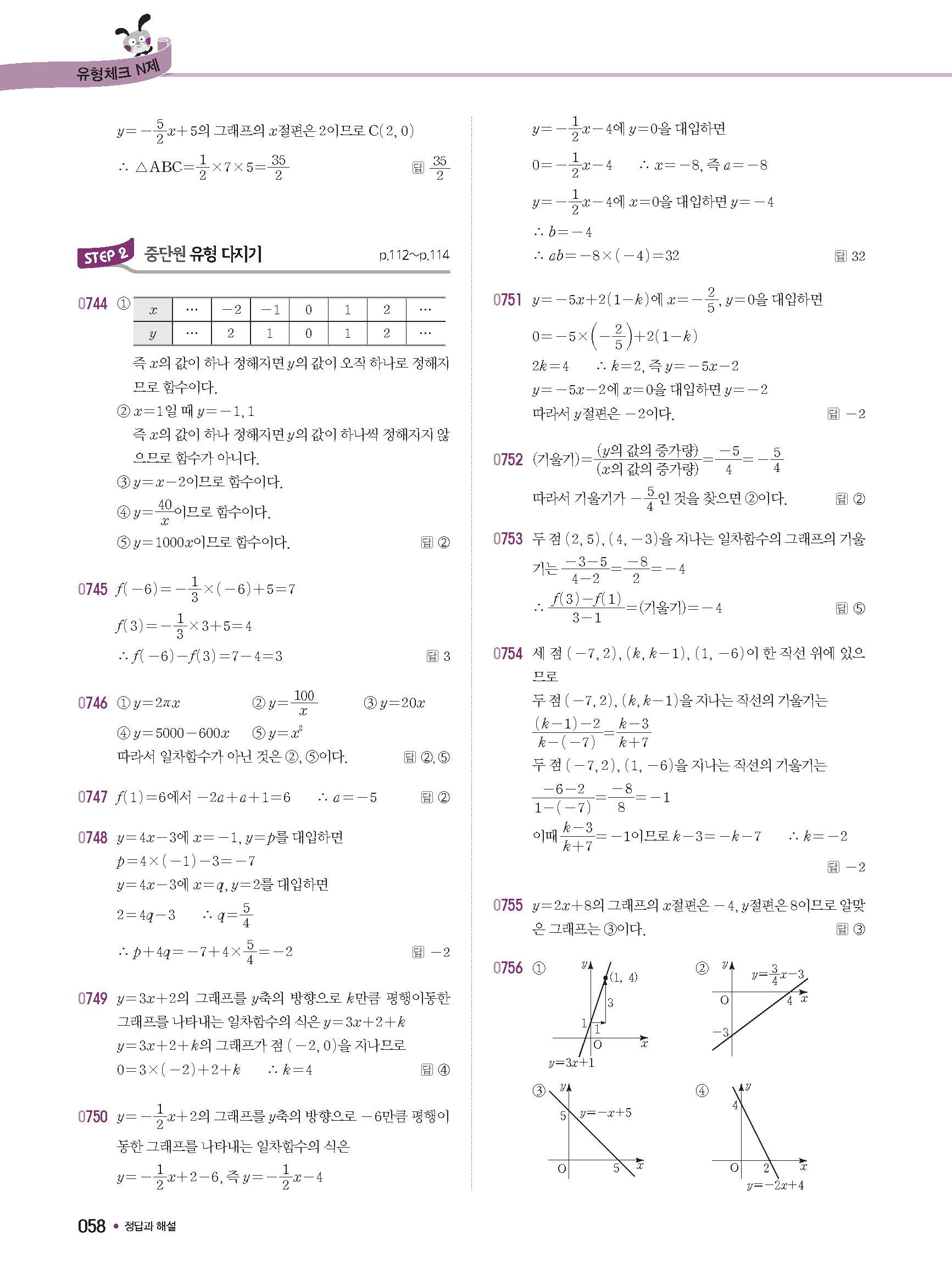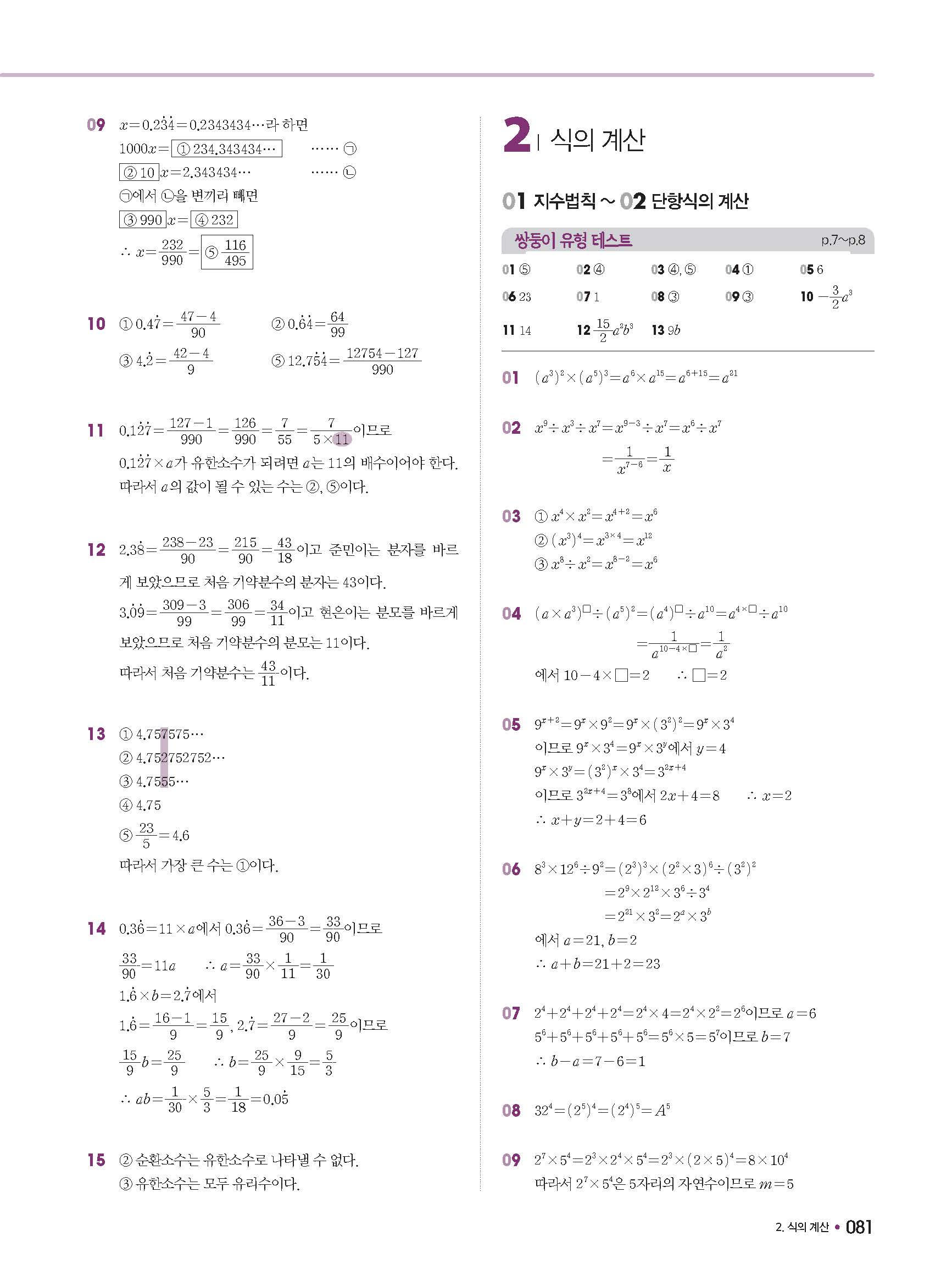 체크체크 중등수학 유형엔제 중2상 2-1 답지 해설 사진답지 빠른답지 모바일최적화