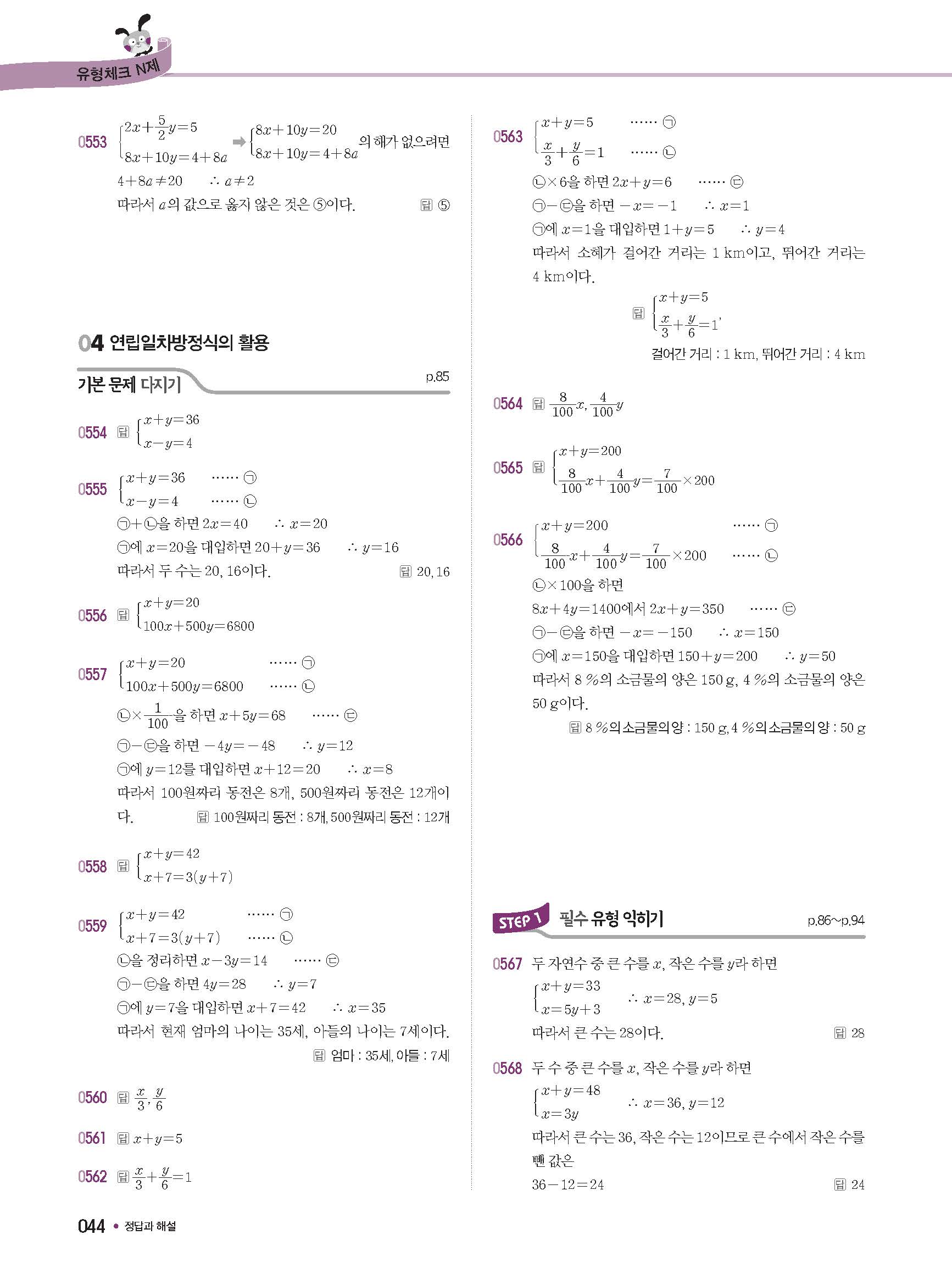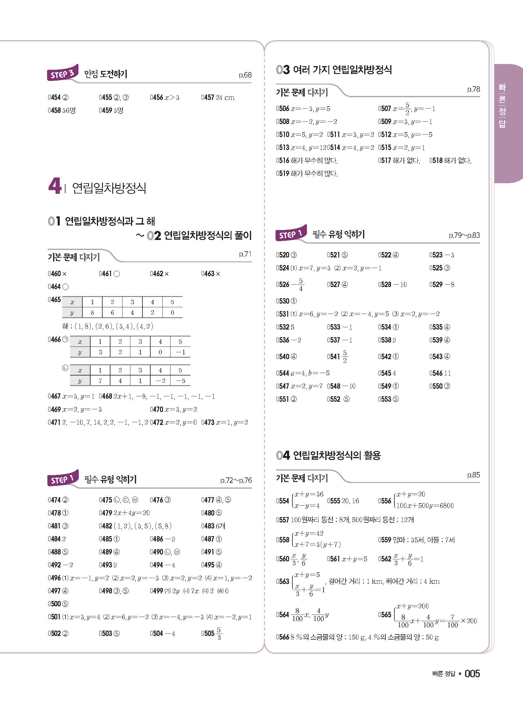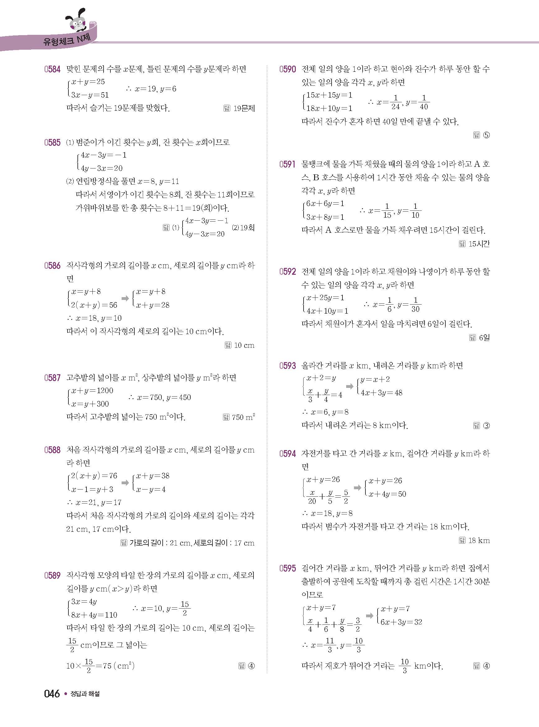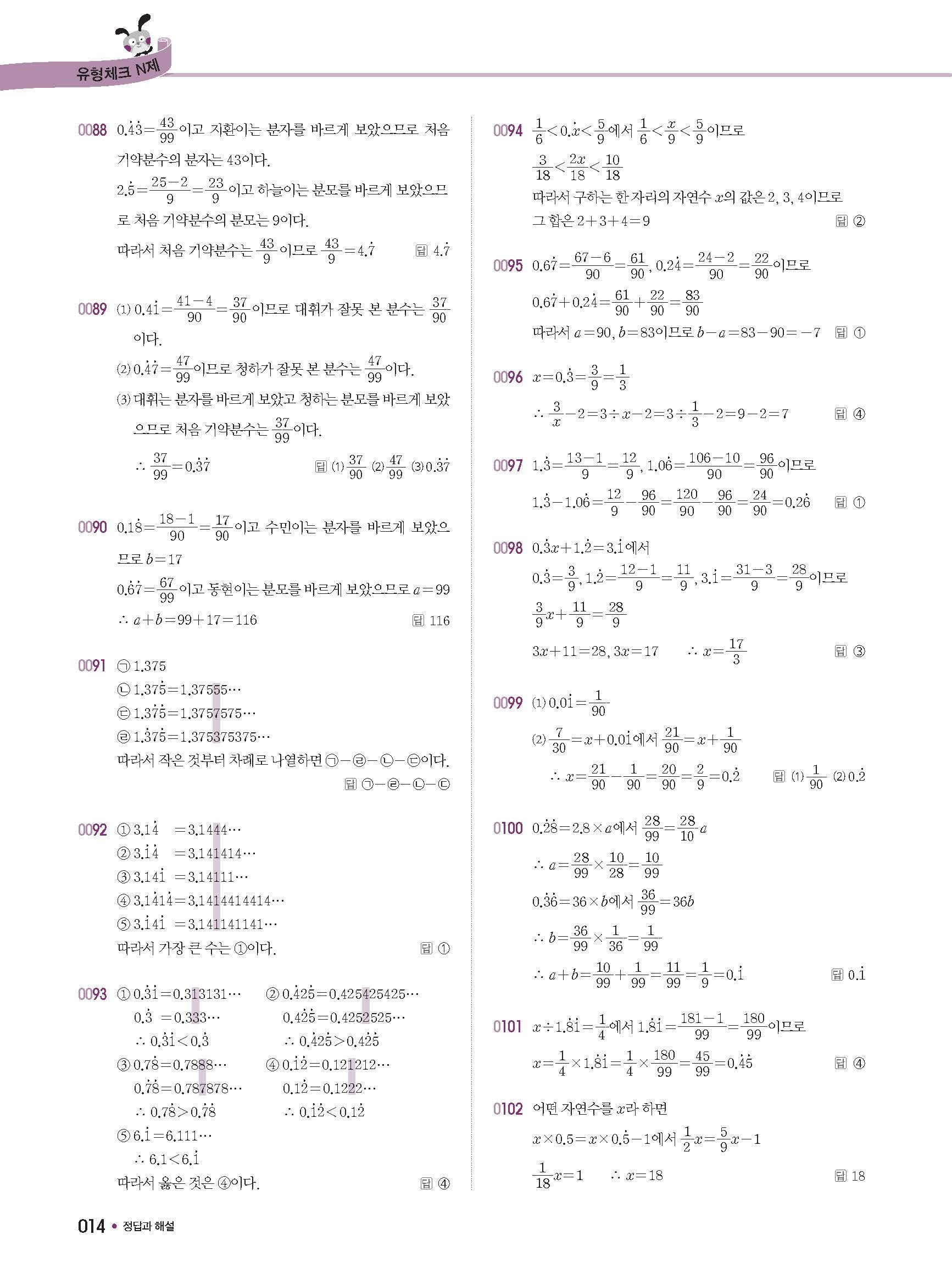 체크체크 중등수학 유형엔제 중2상 2-1 답지 해설 사진답지 빠른답지 모바일최적화