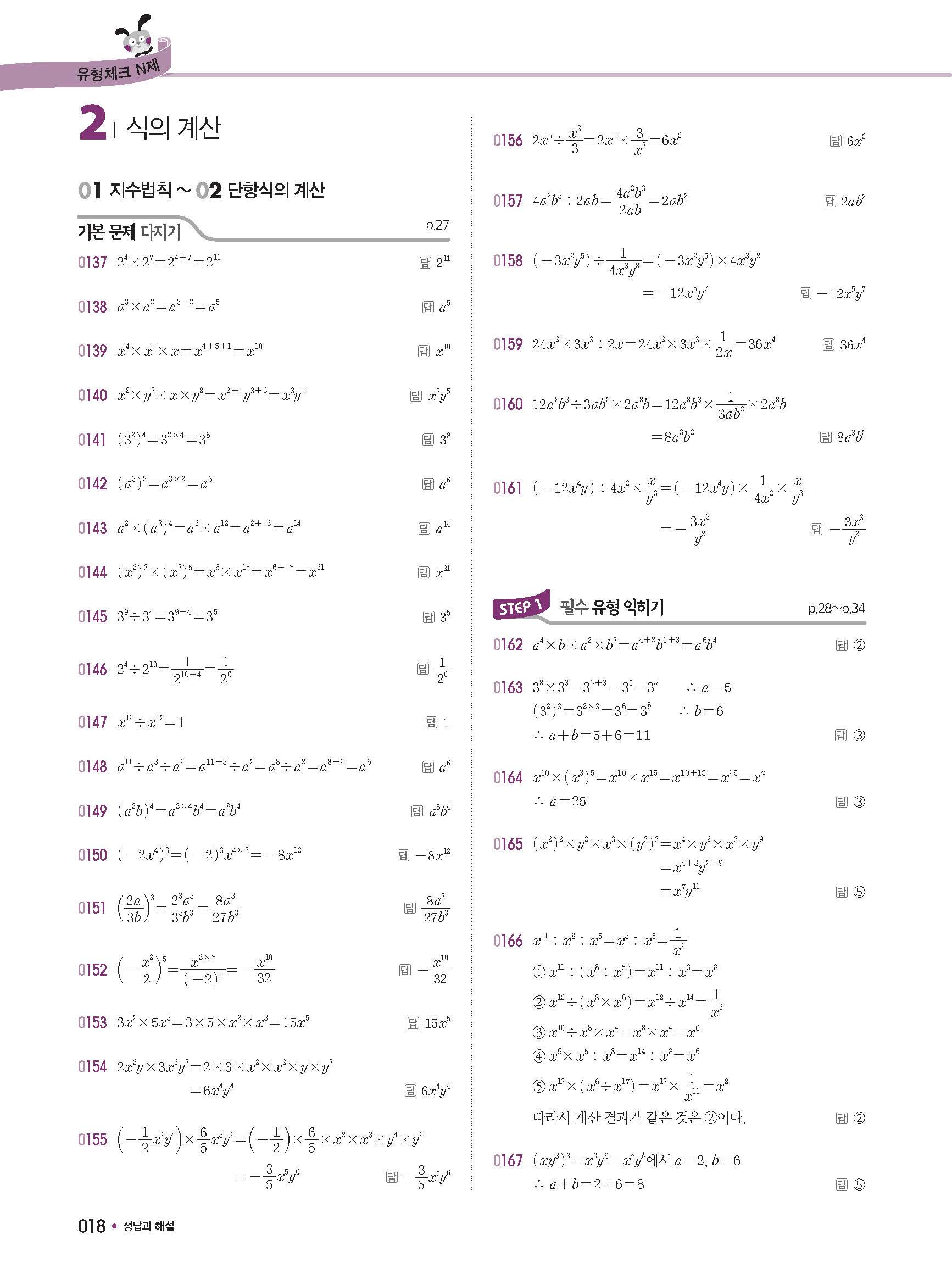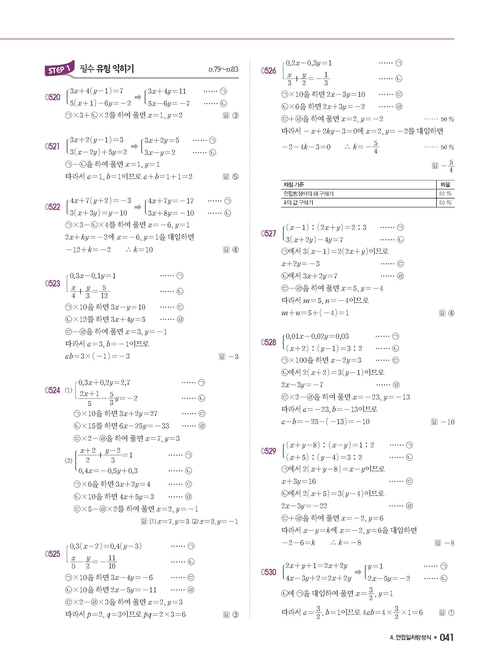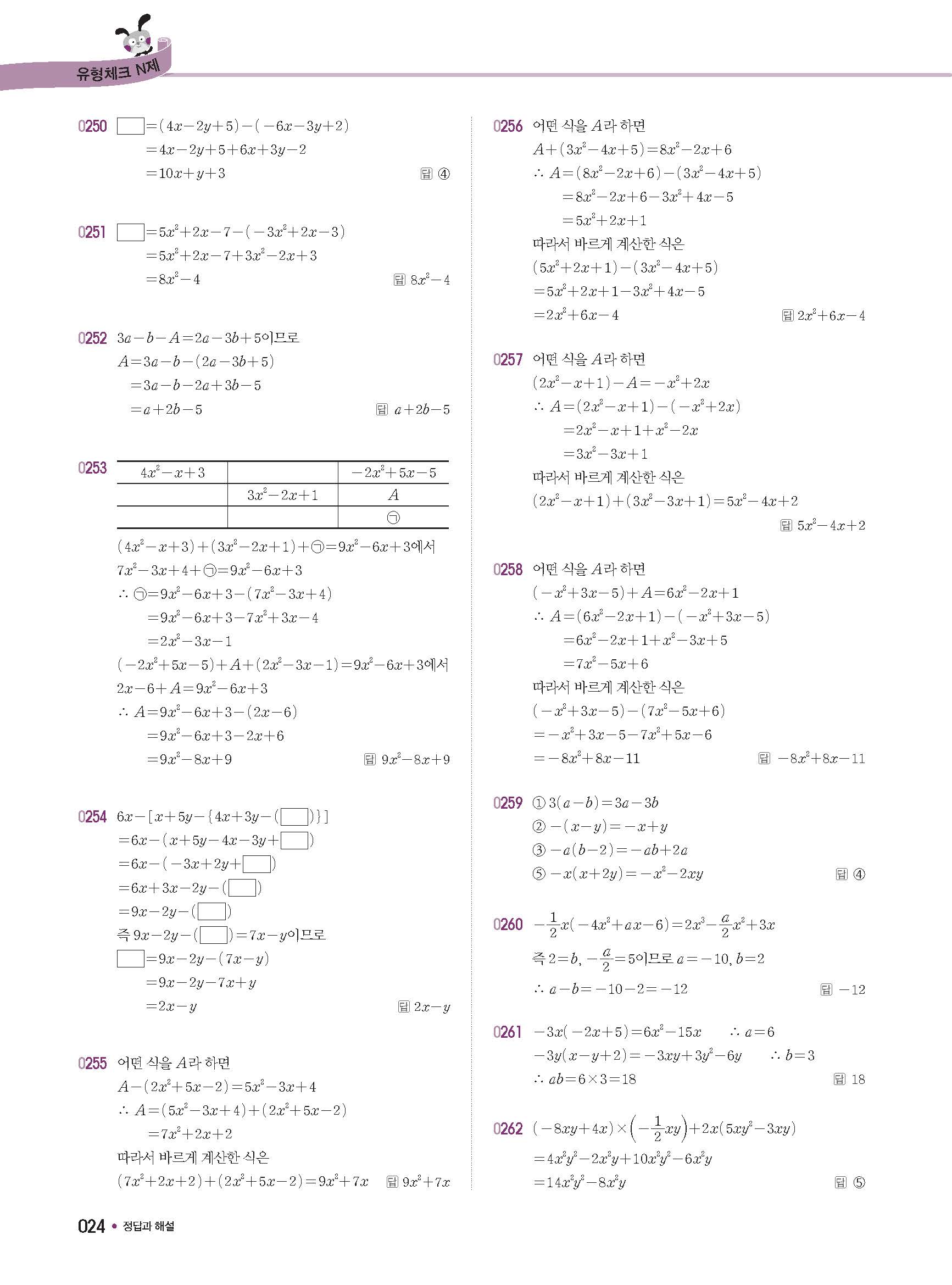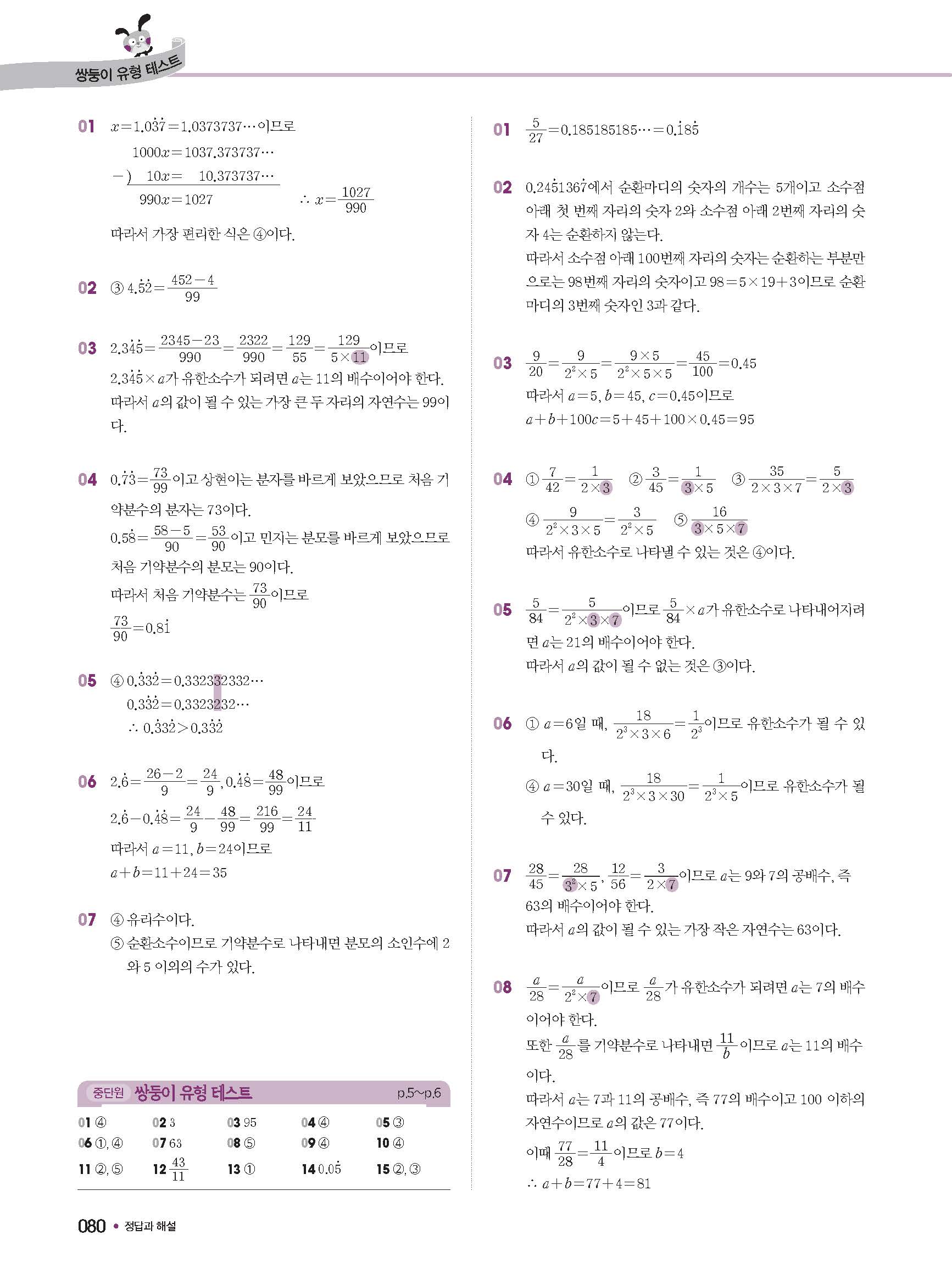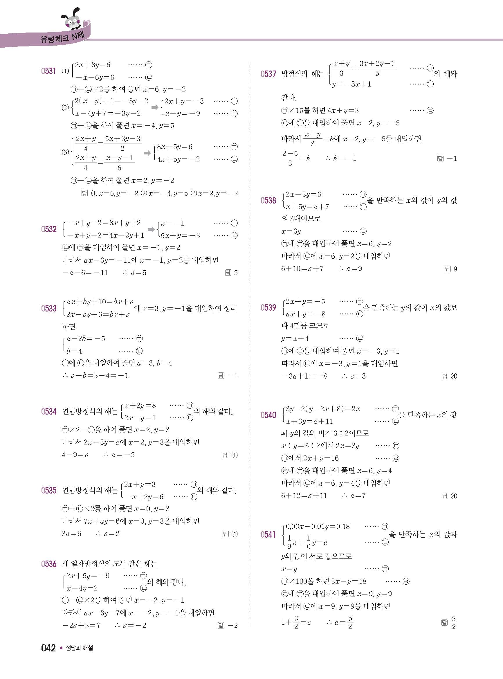 체크체크 중등수학 유형엔제 중2상 2-1 답지 해설 사진답지 빠른답지 모바일최적화
