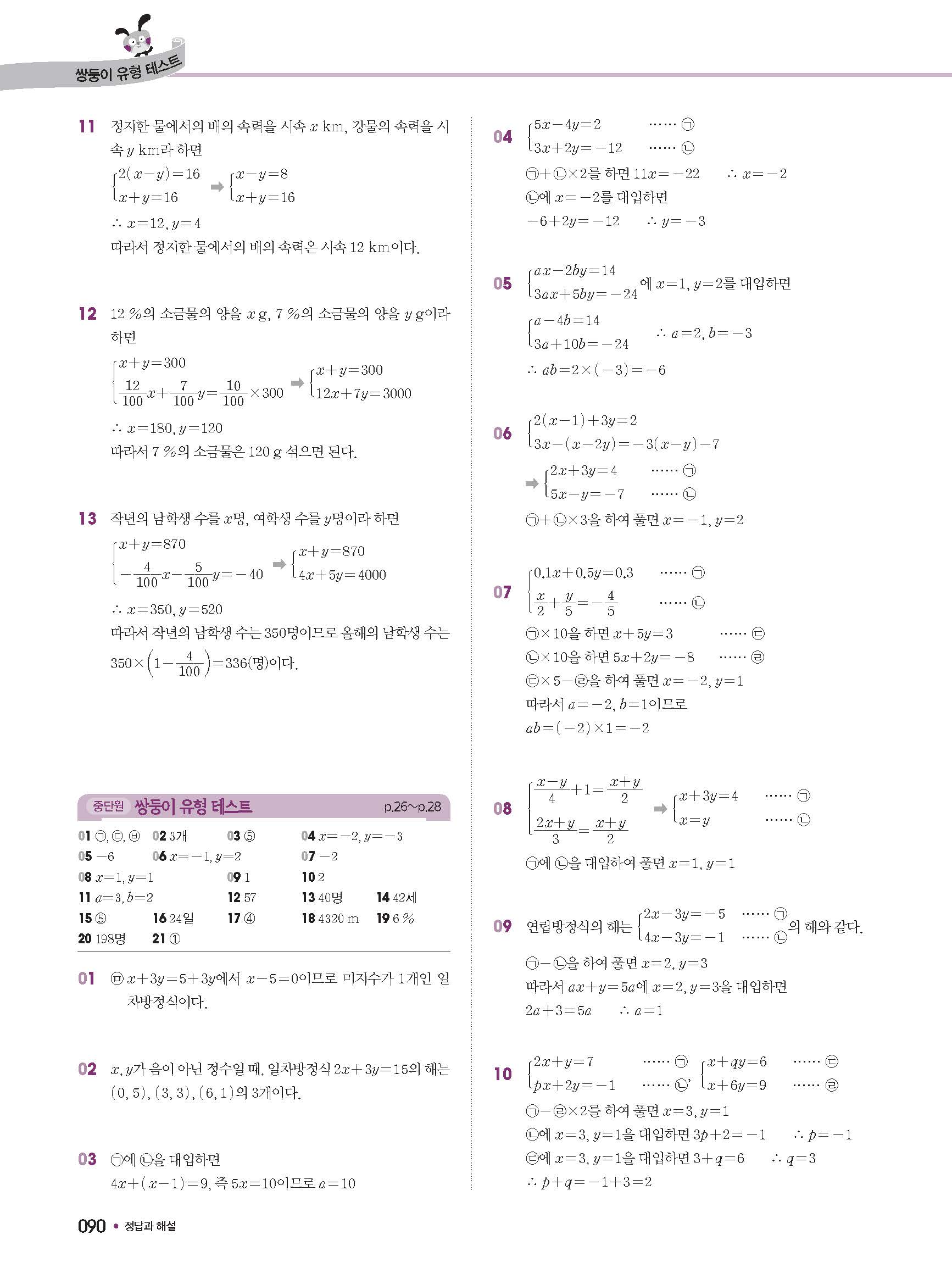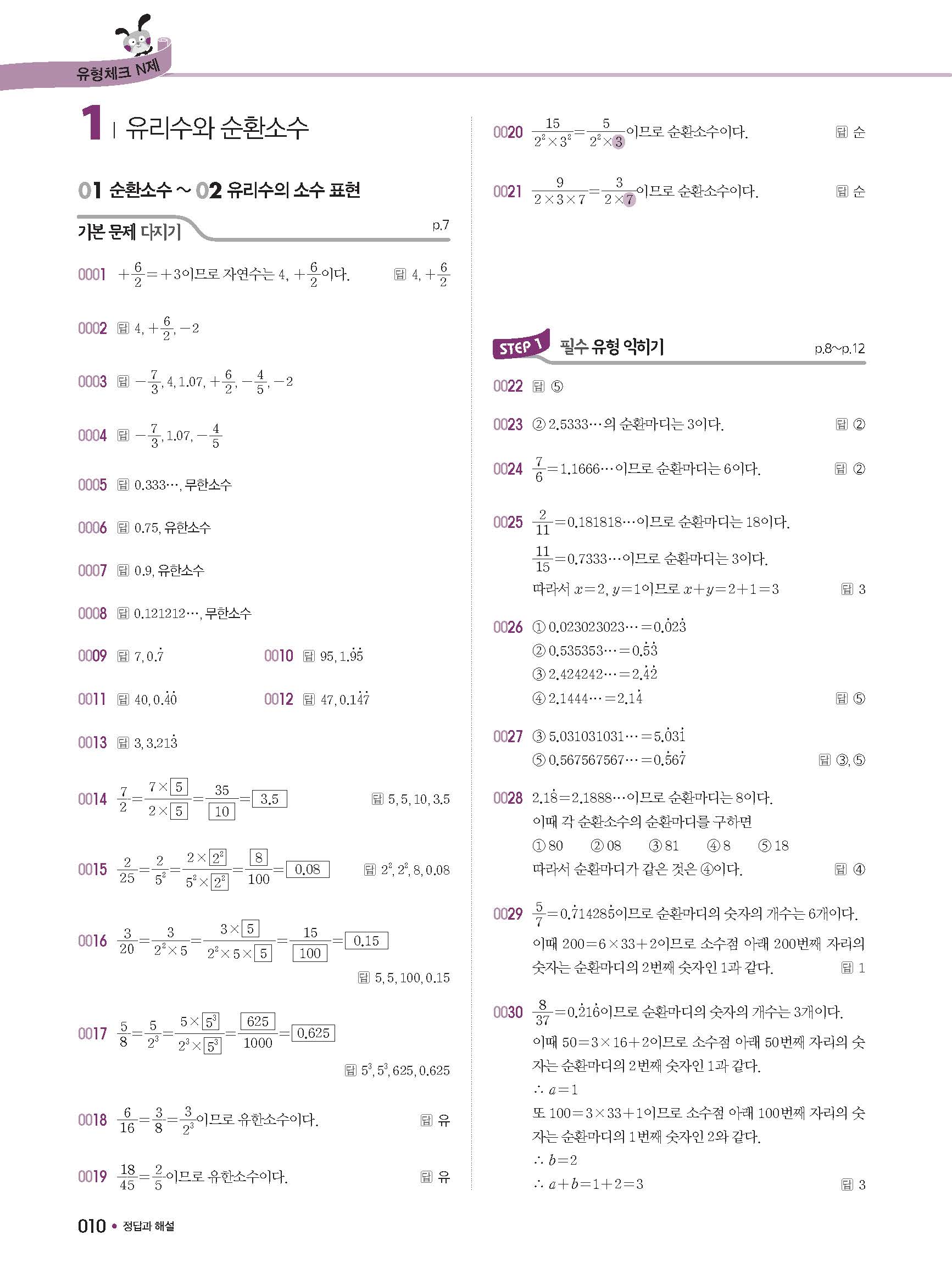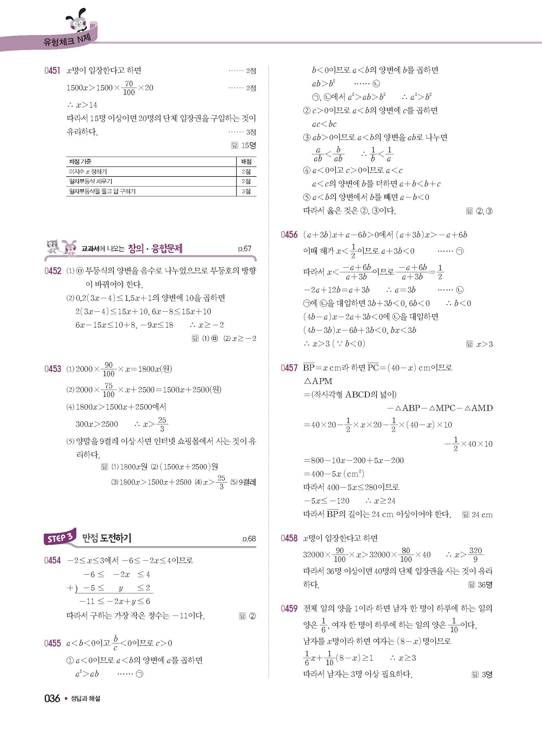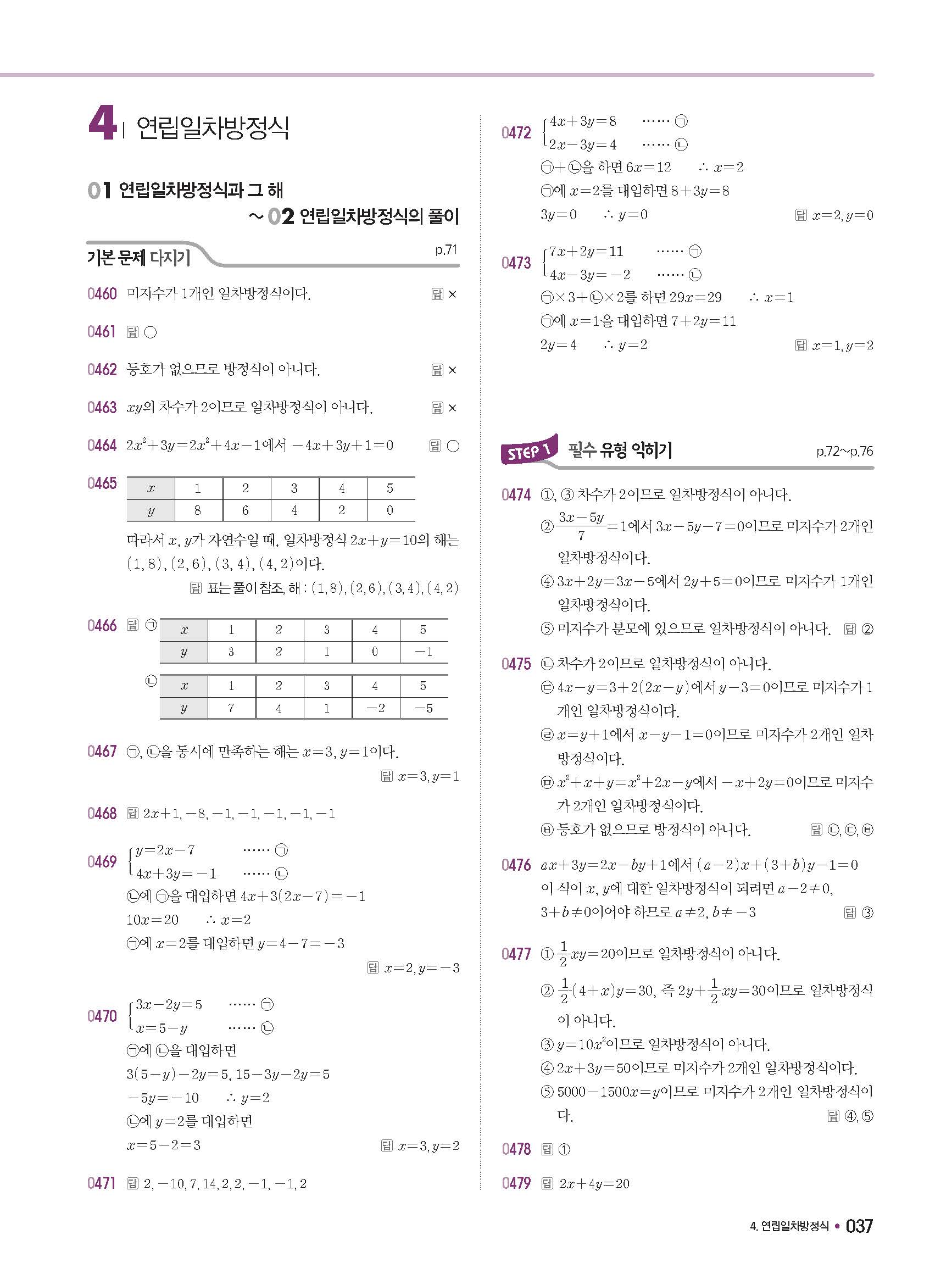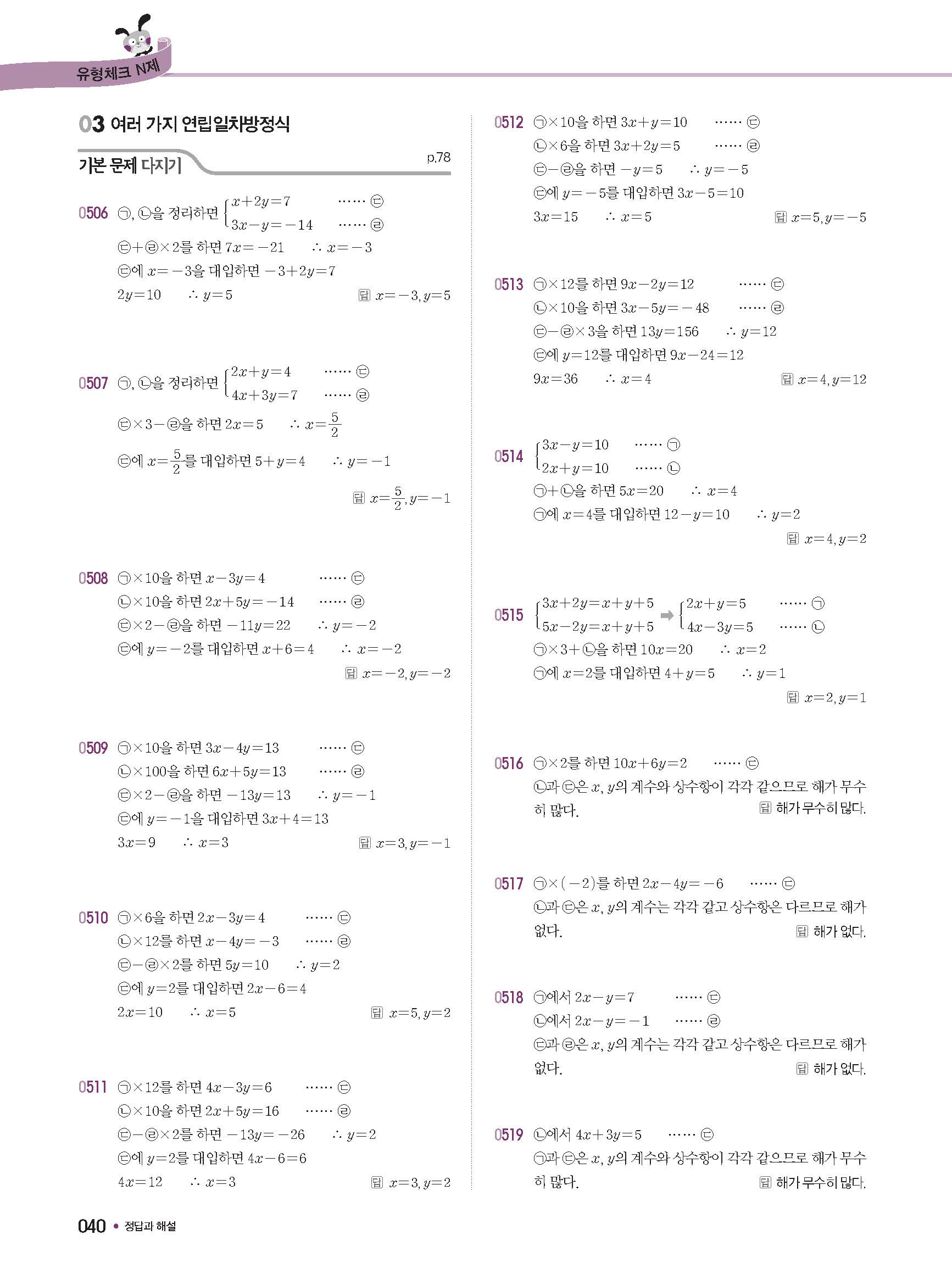 체크체크 중등수학 유형엔제 중2상 2-1 답지 해설 사진답지 빠른답지 모바일최적화