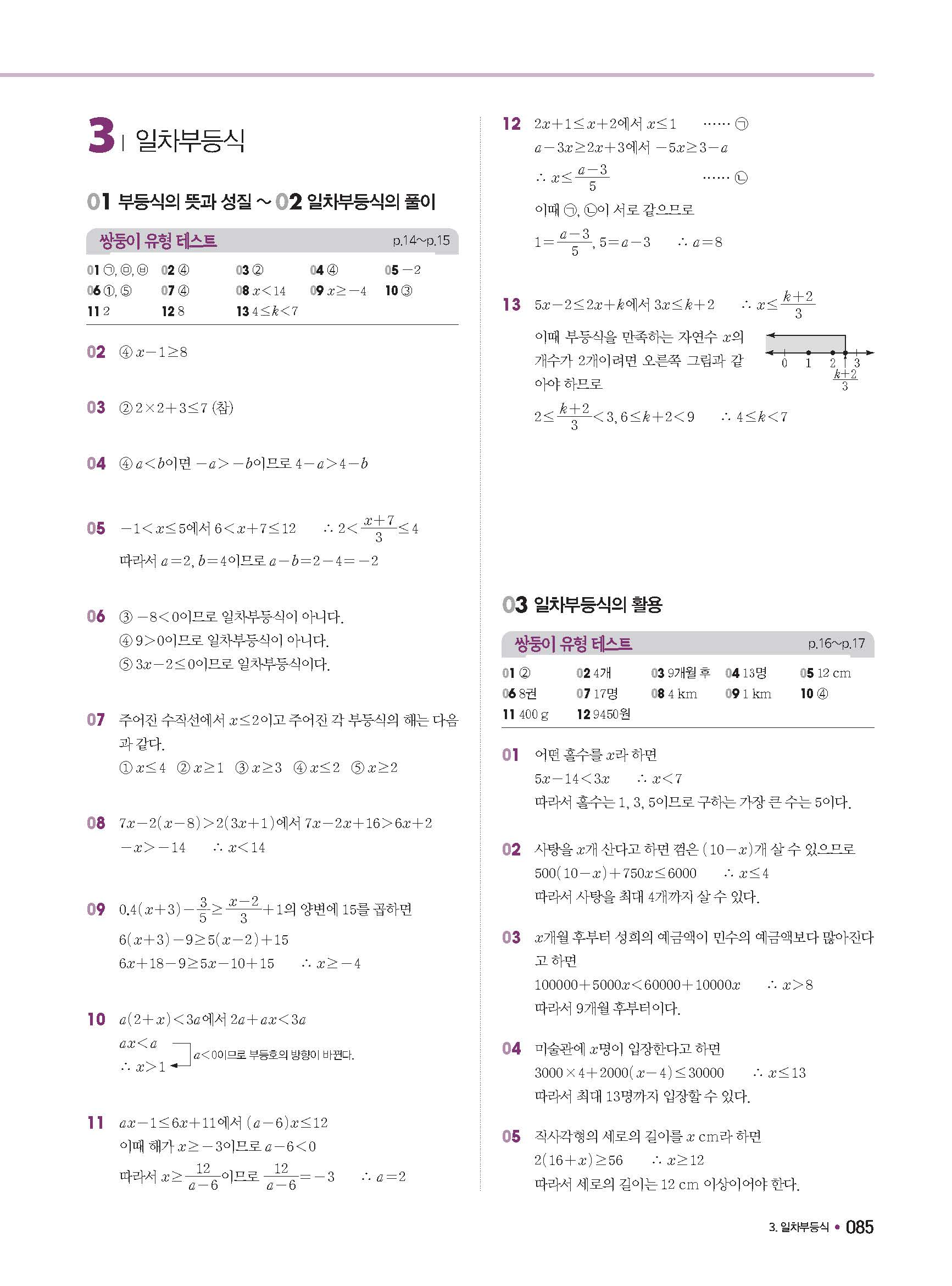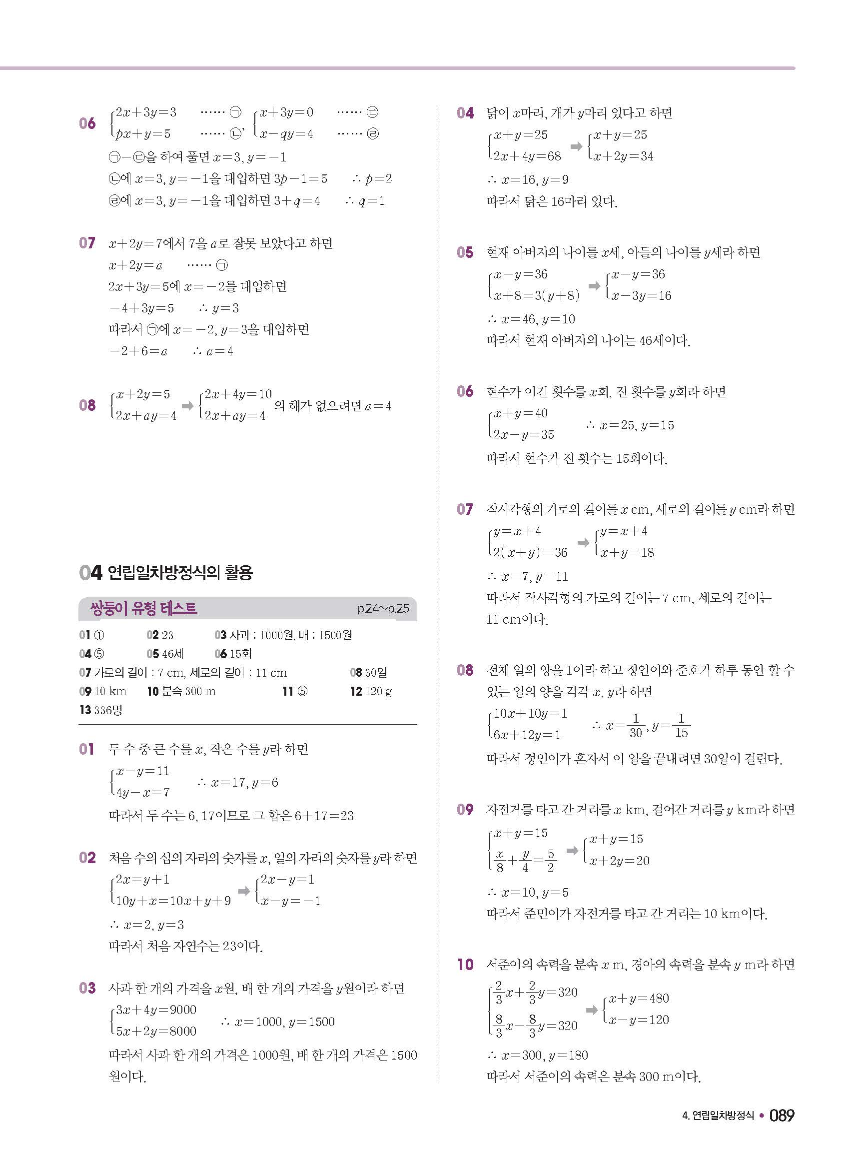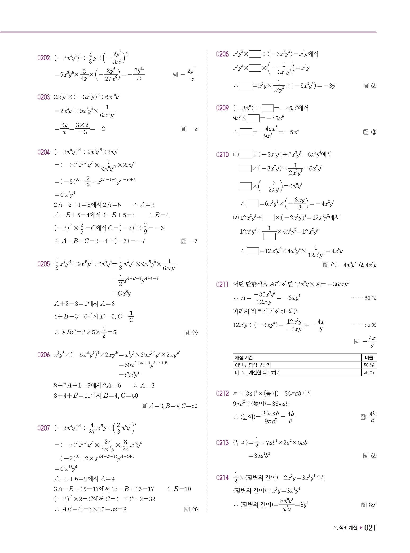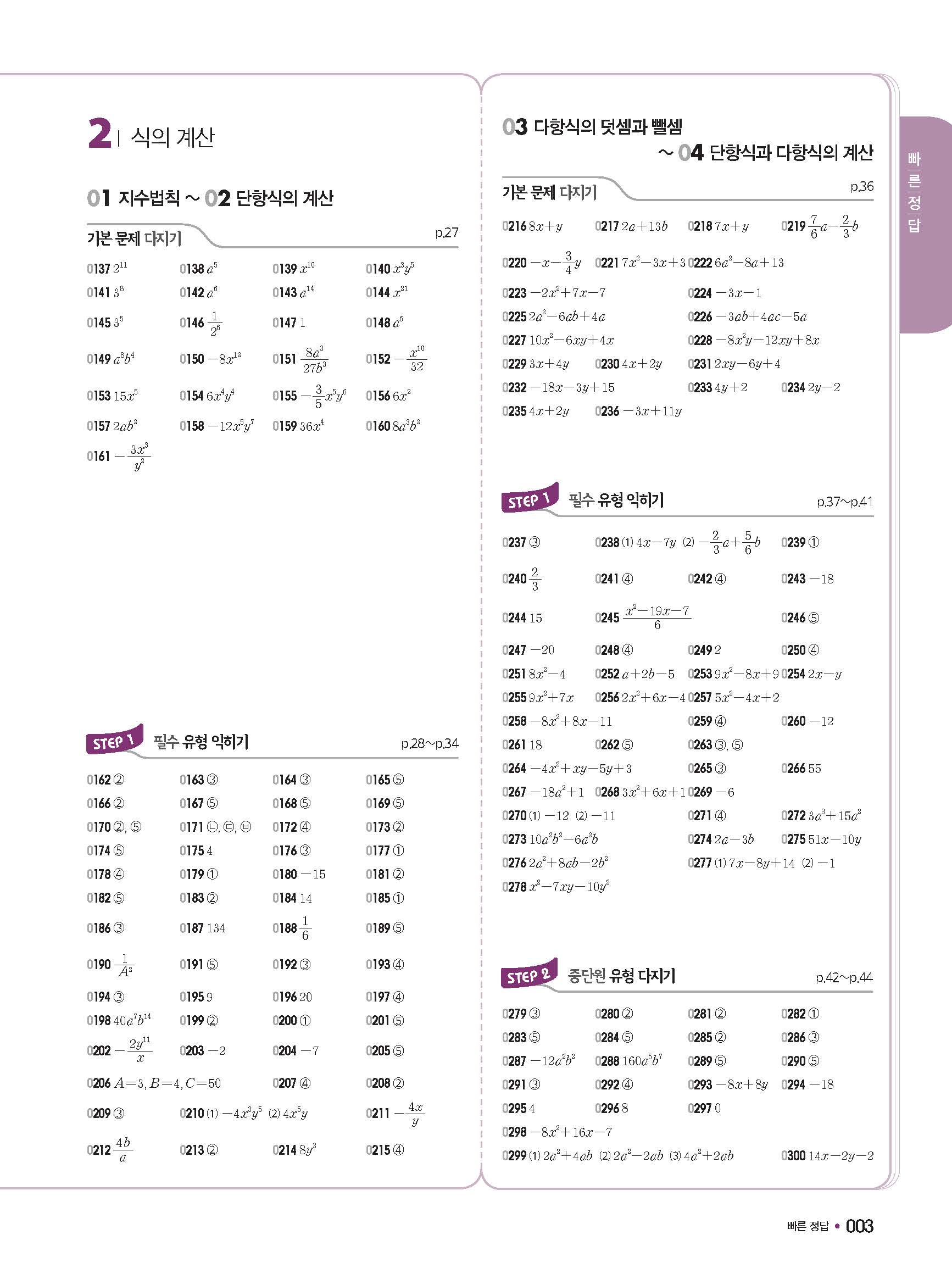 체크체크 중등수학 유형엔제 중2상 2-1 답지 해설 사진답지 빠른답지 모바일최적화
