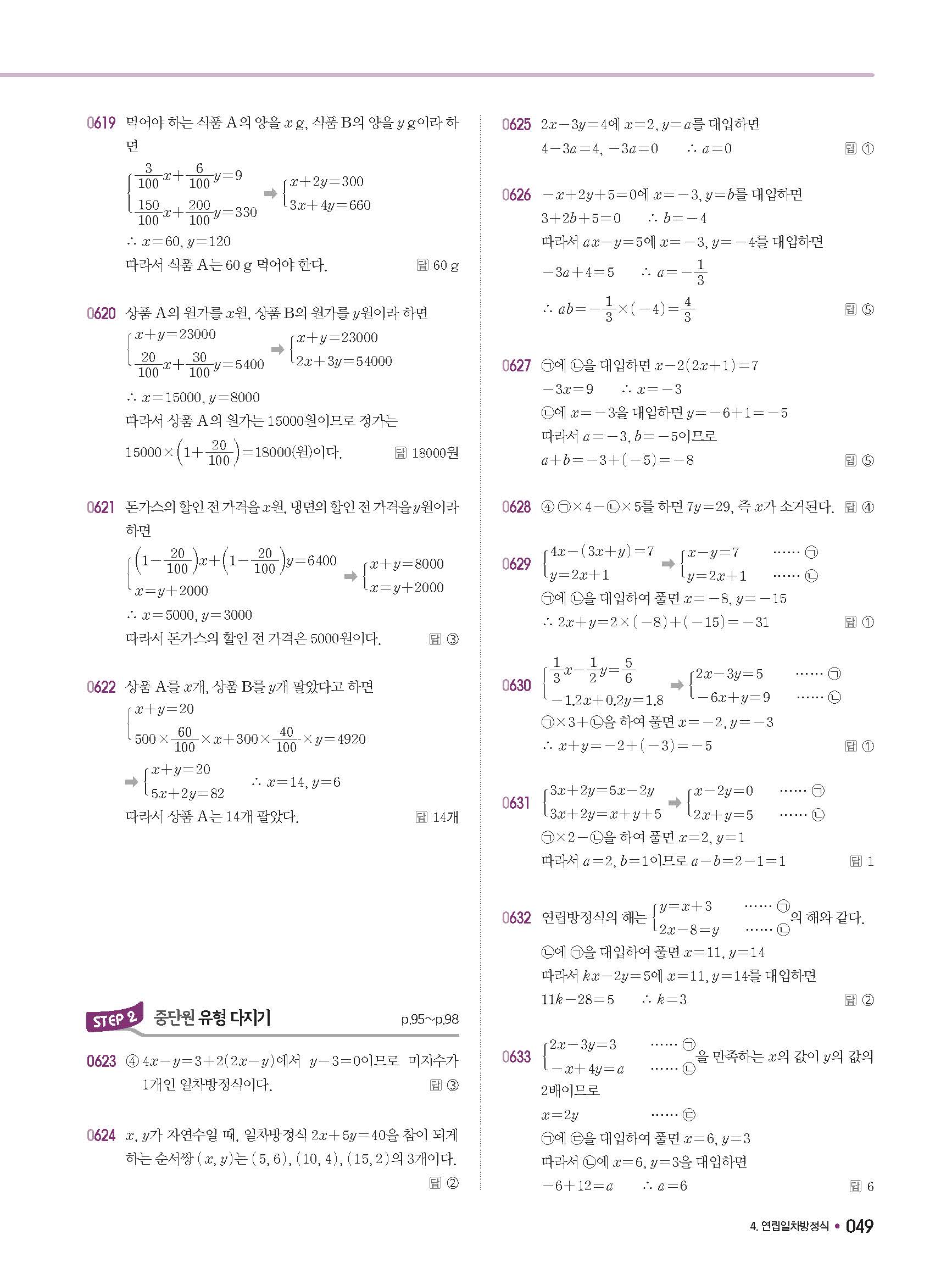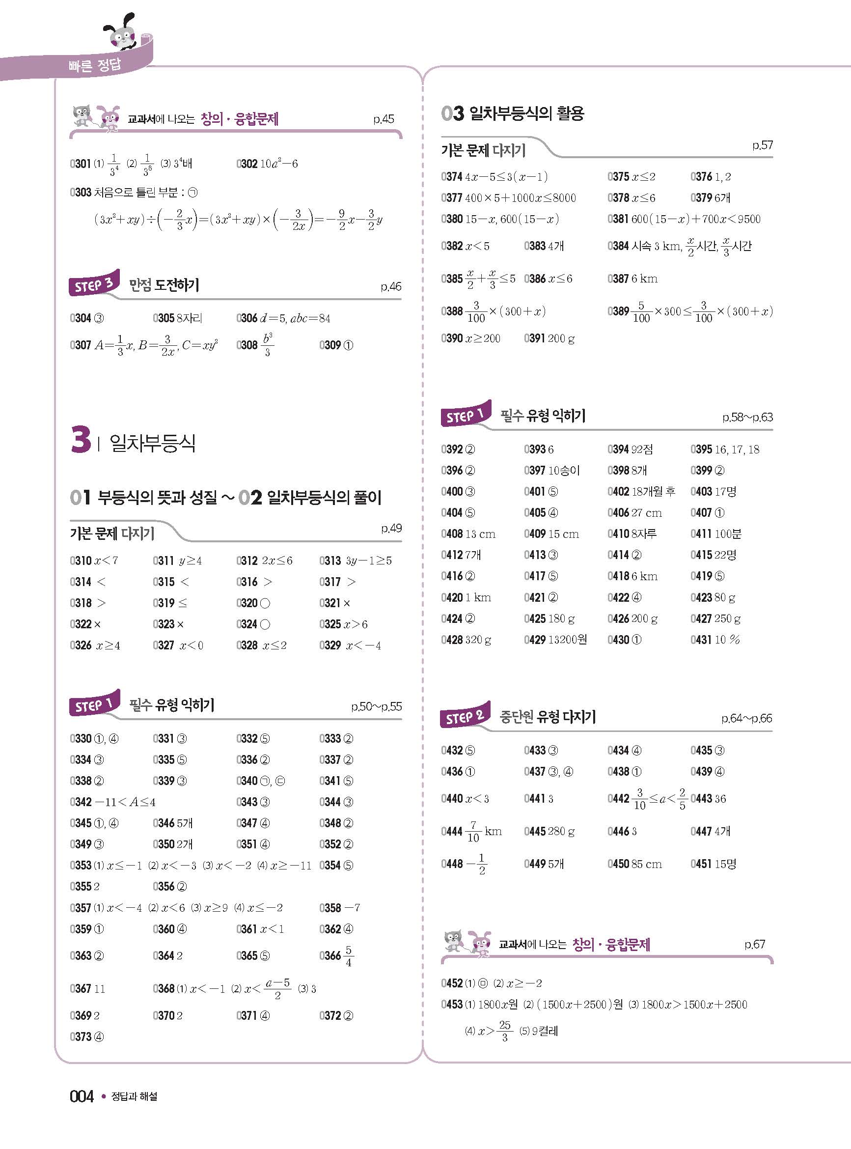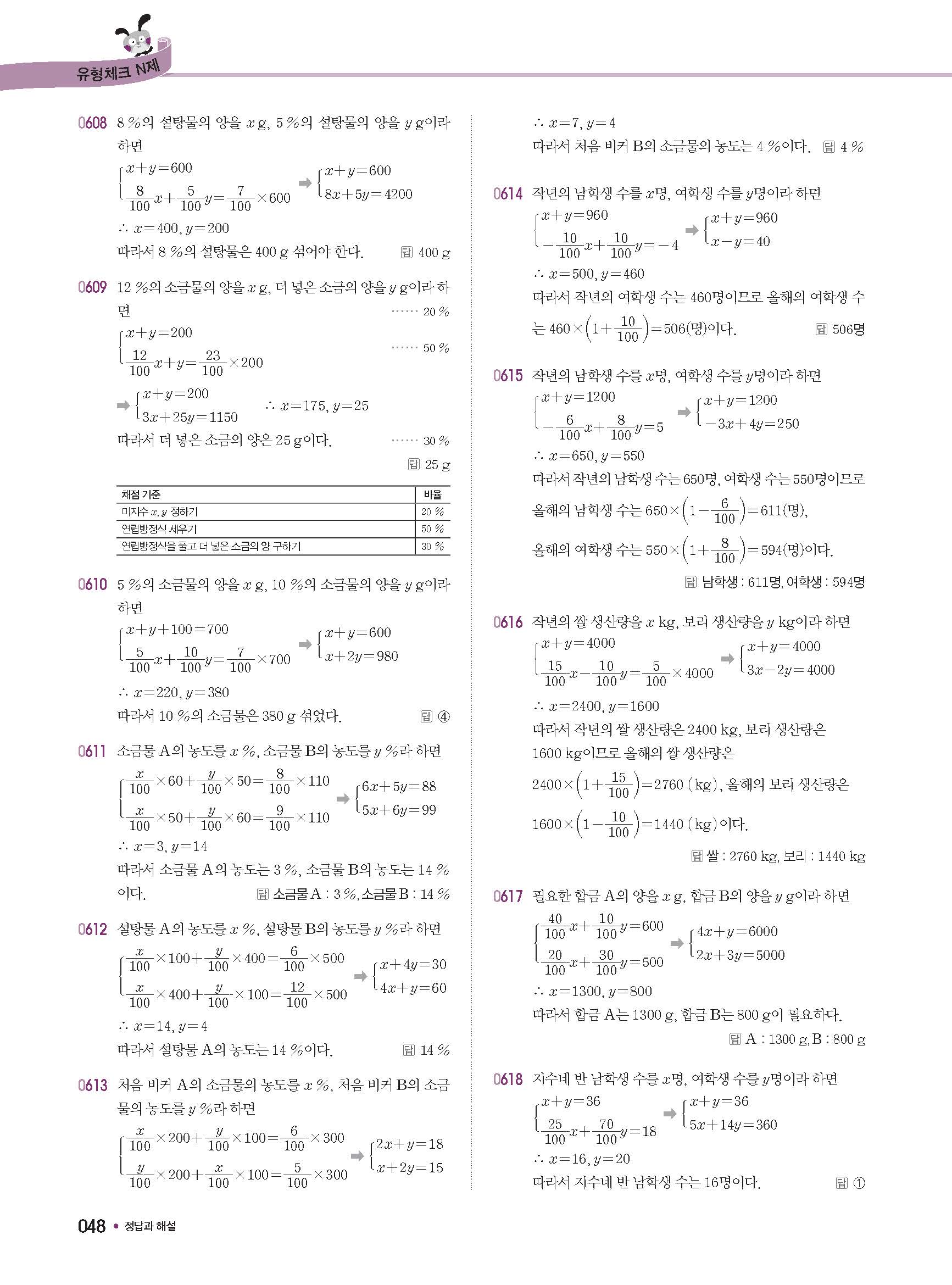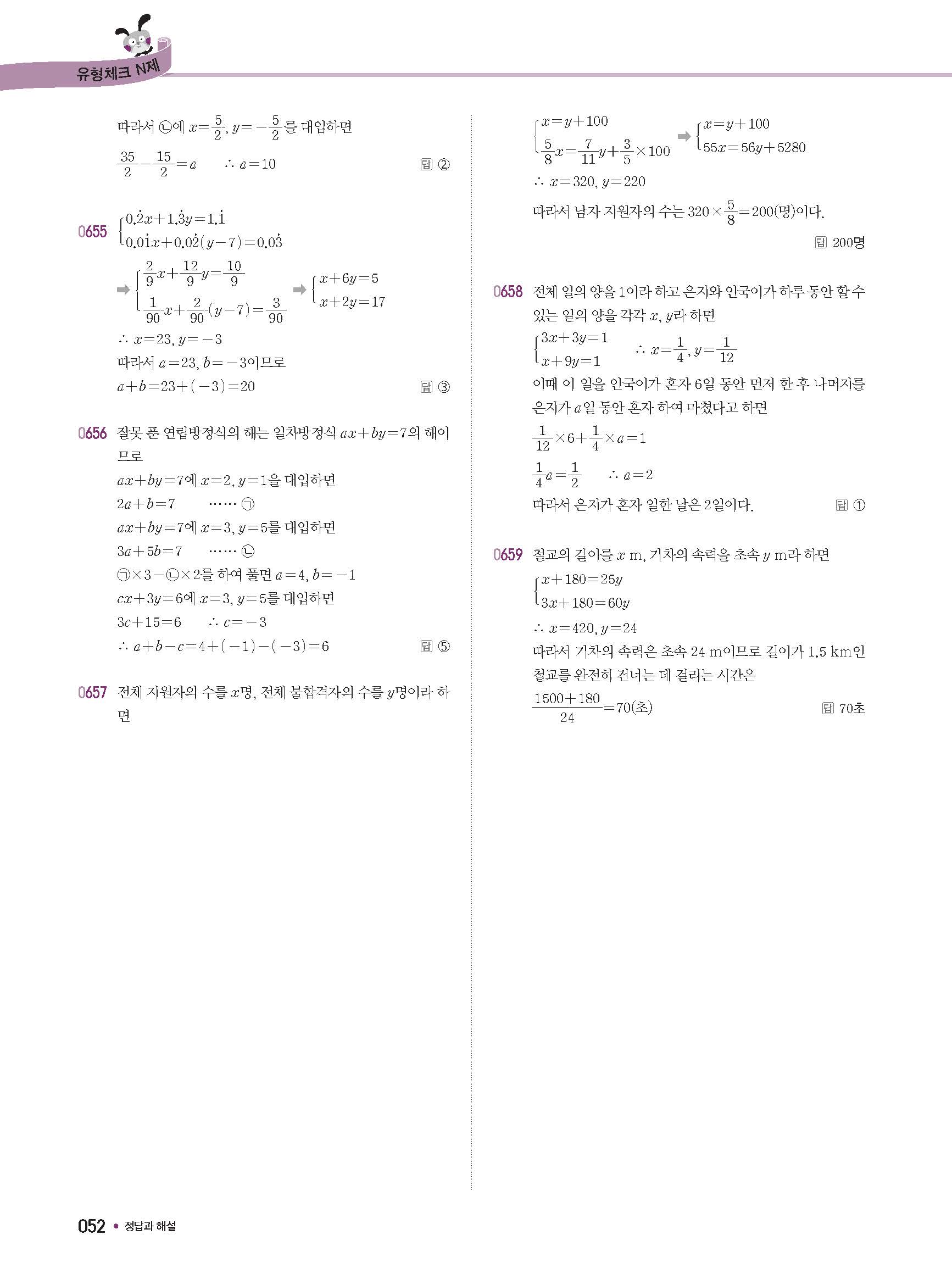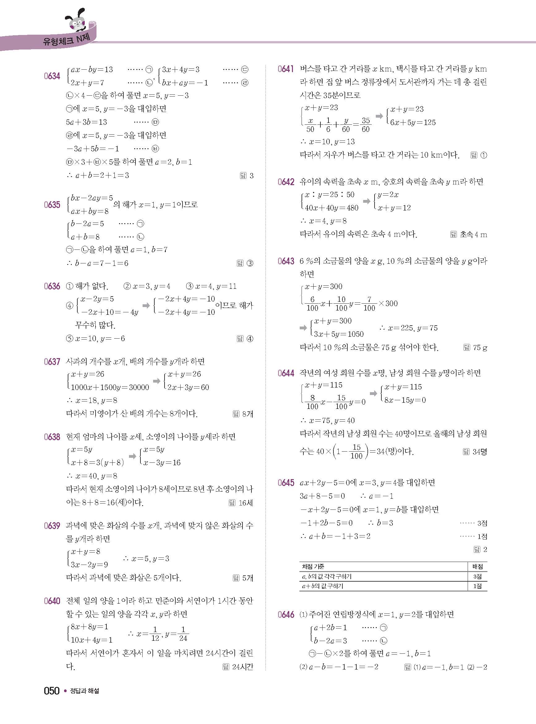 체크체크 중등수학 유형엔제 중2상 2-1 답지 해설 사진답지 빠른답지 모바일최적화