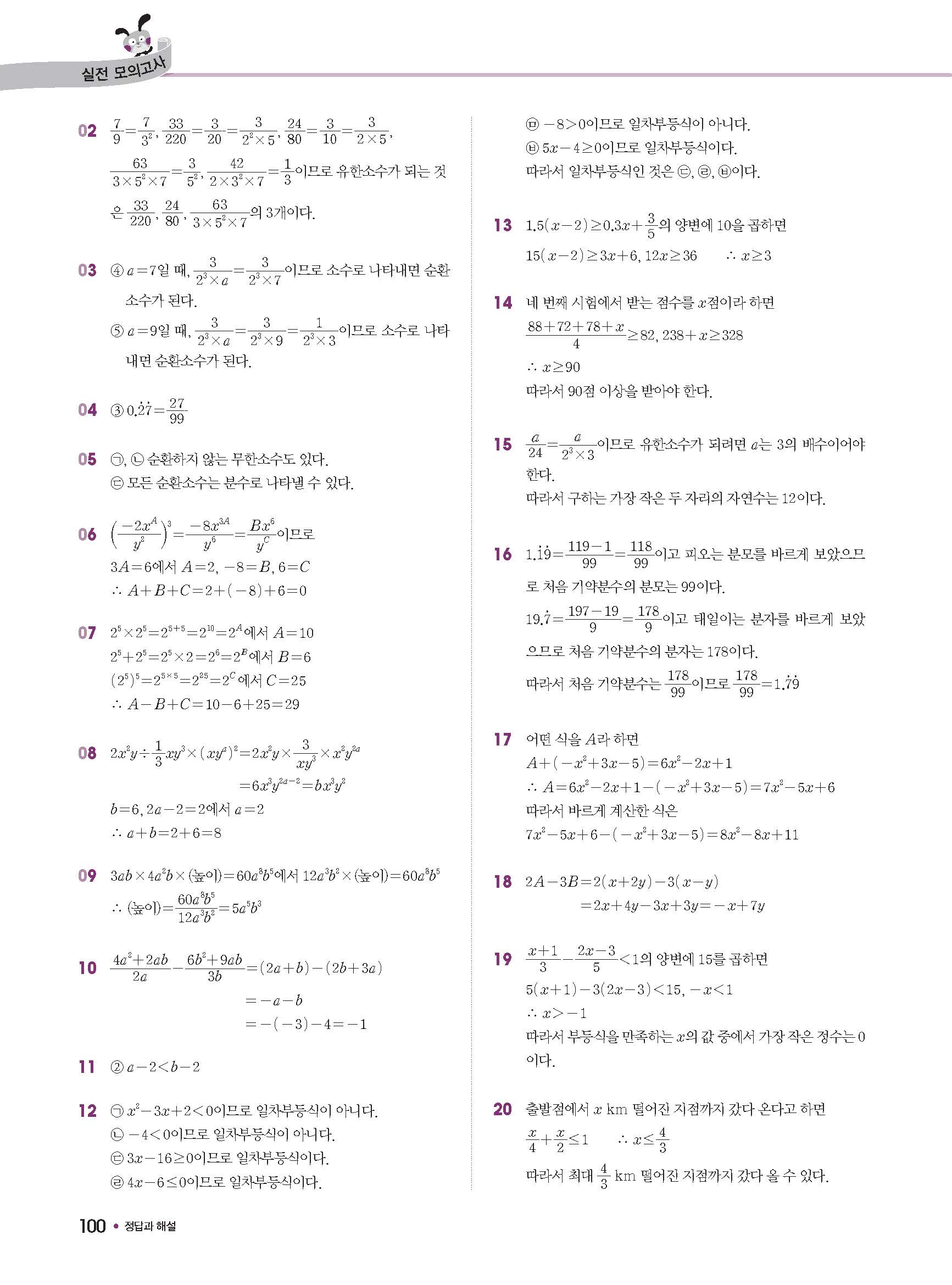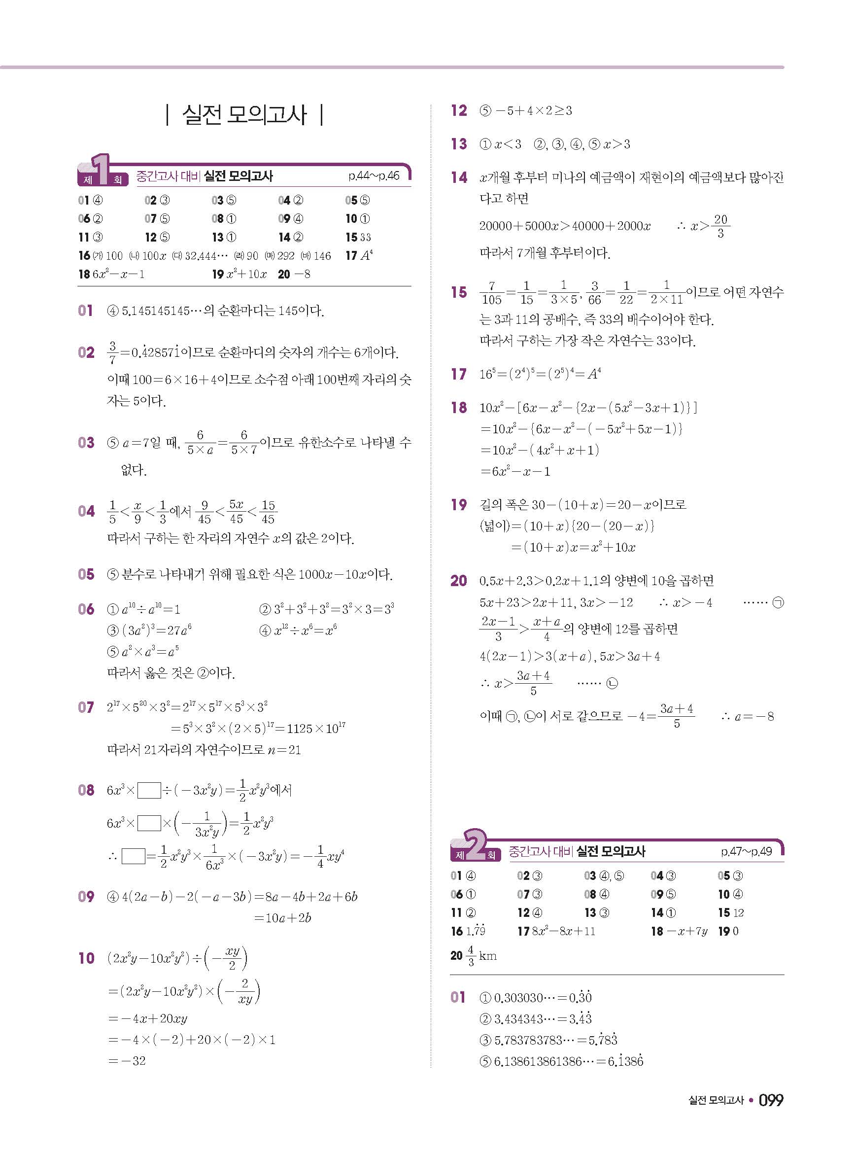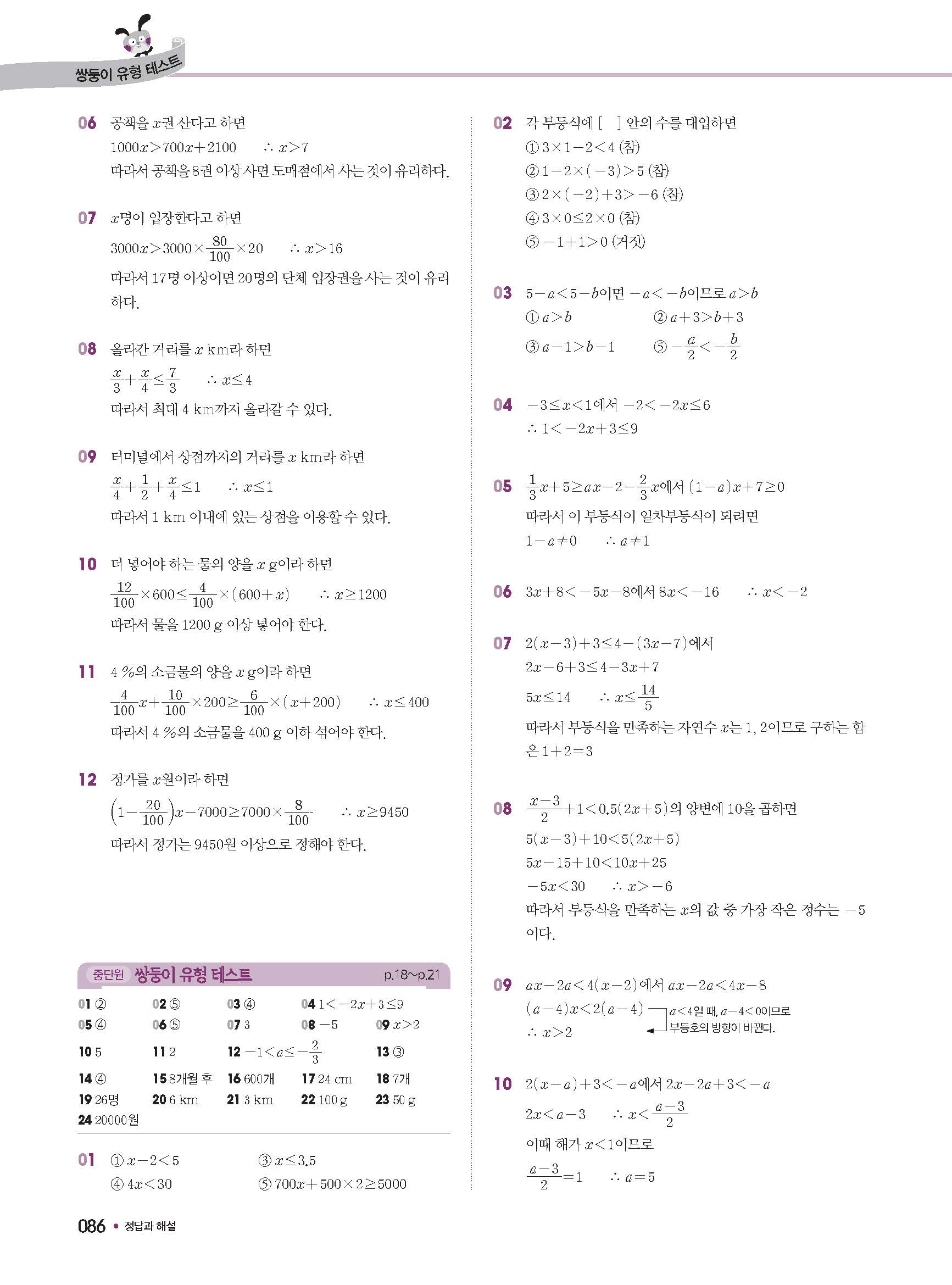 수학문제집 답지