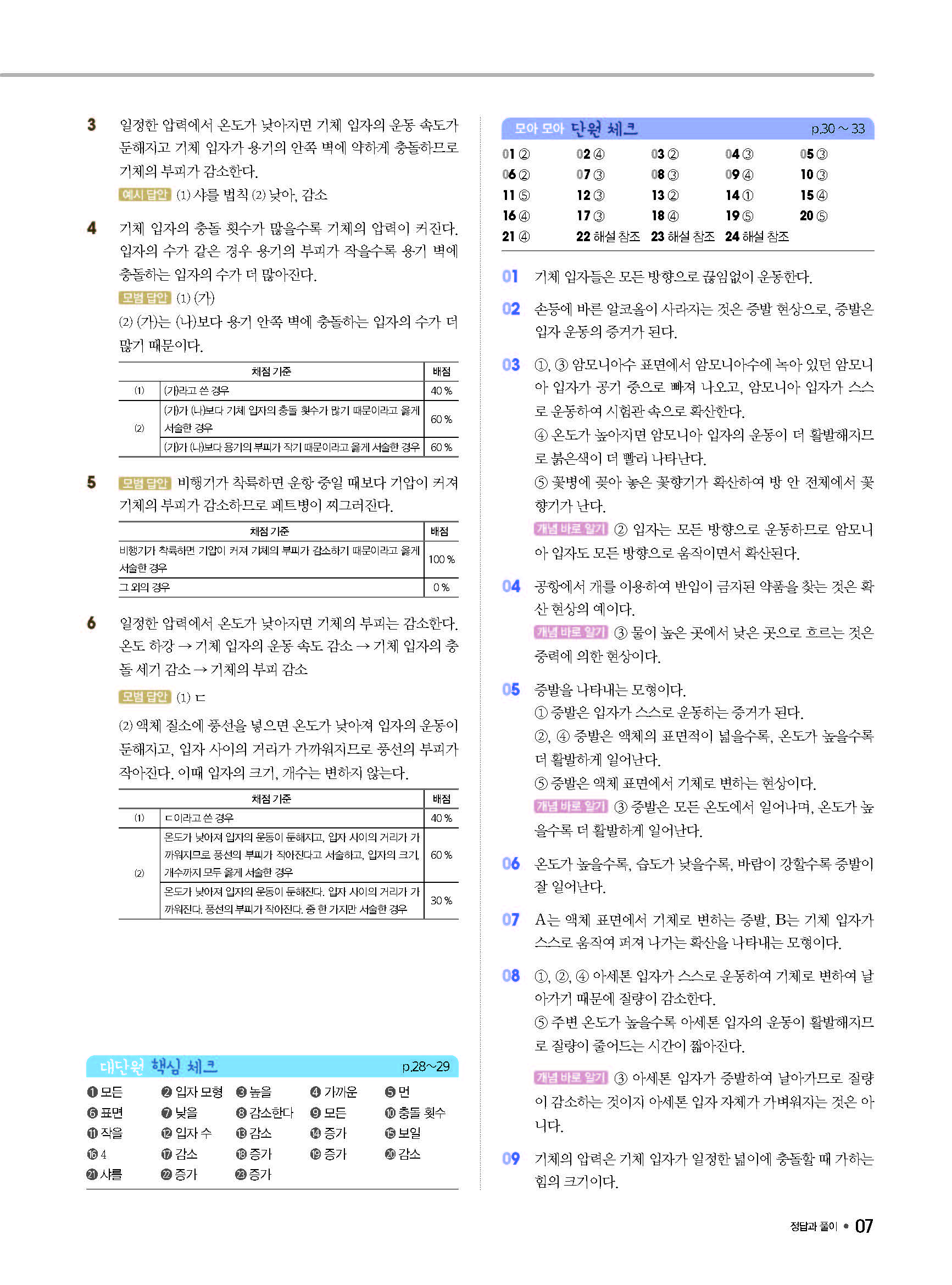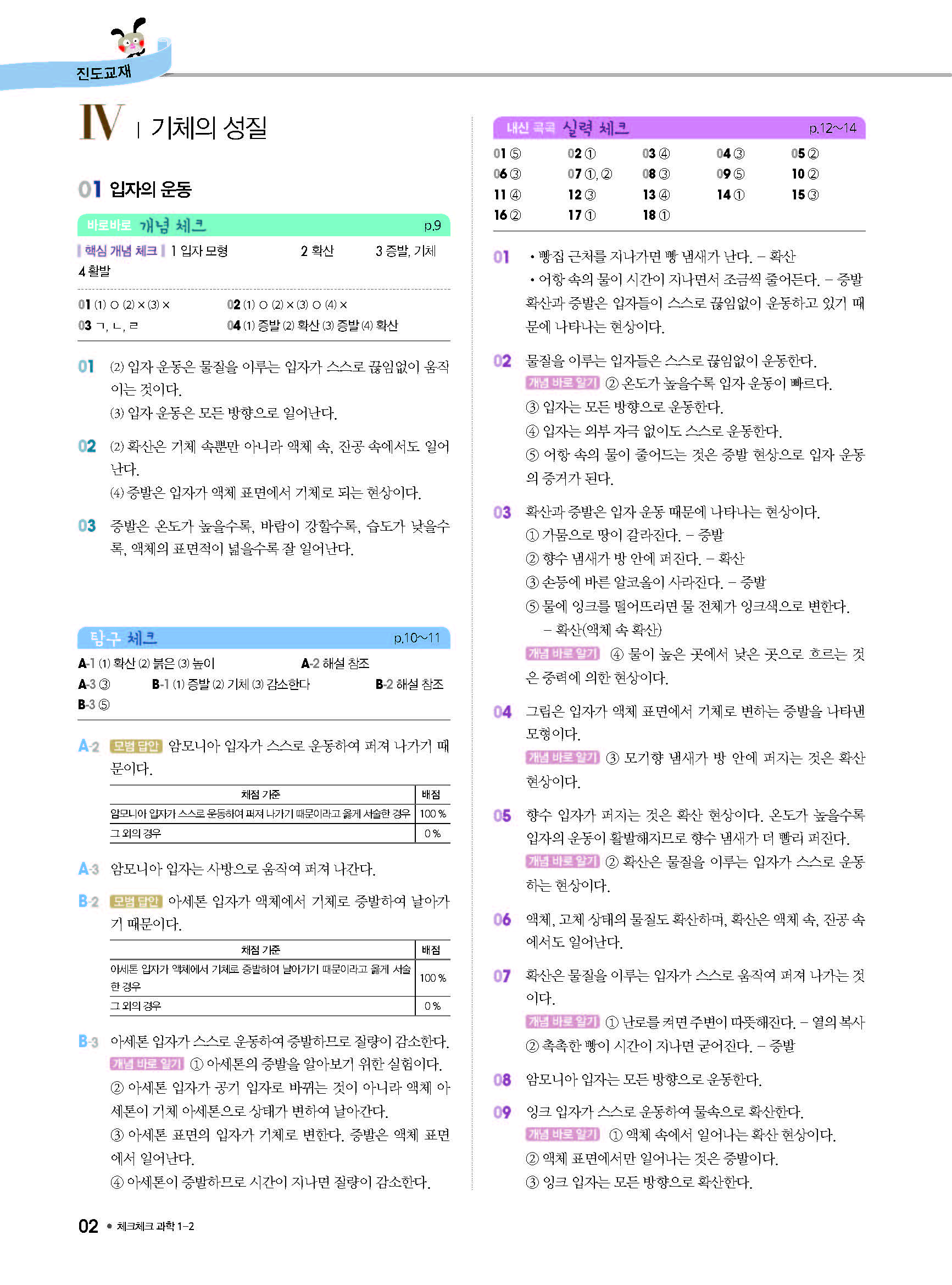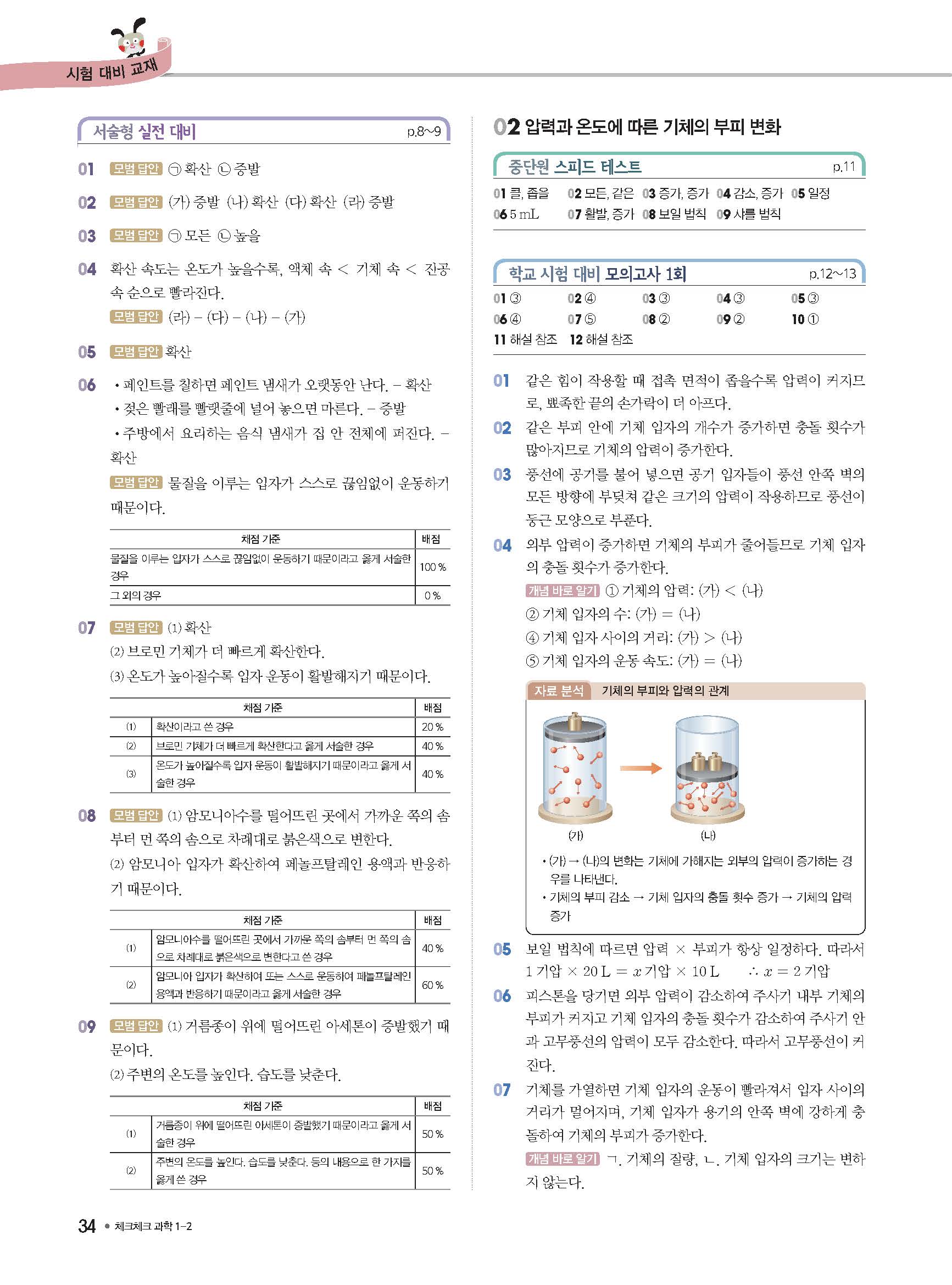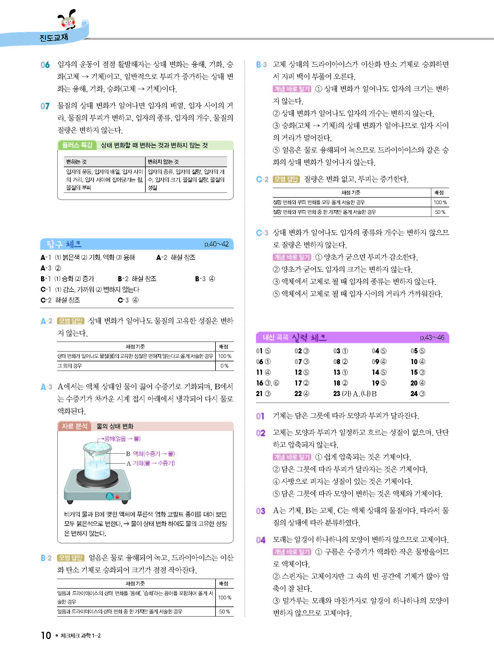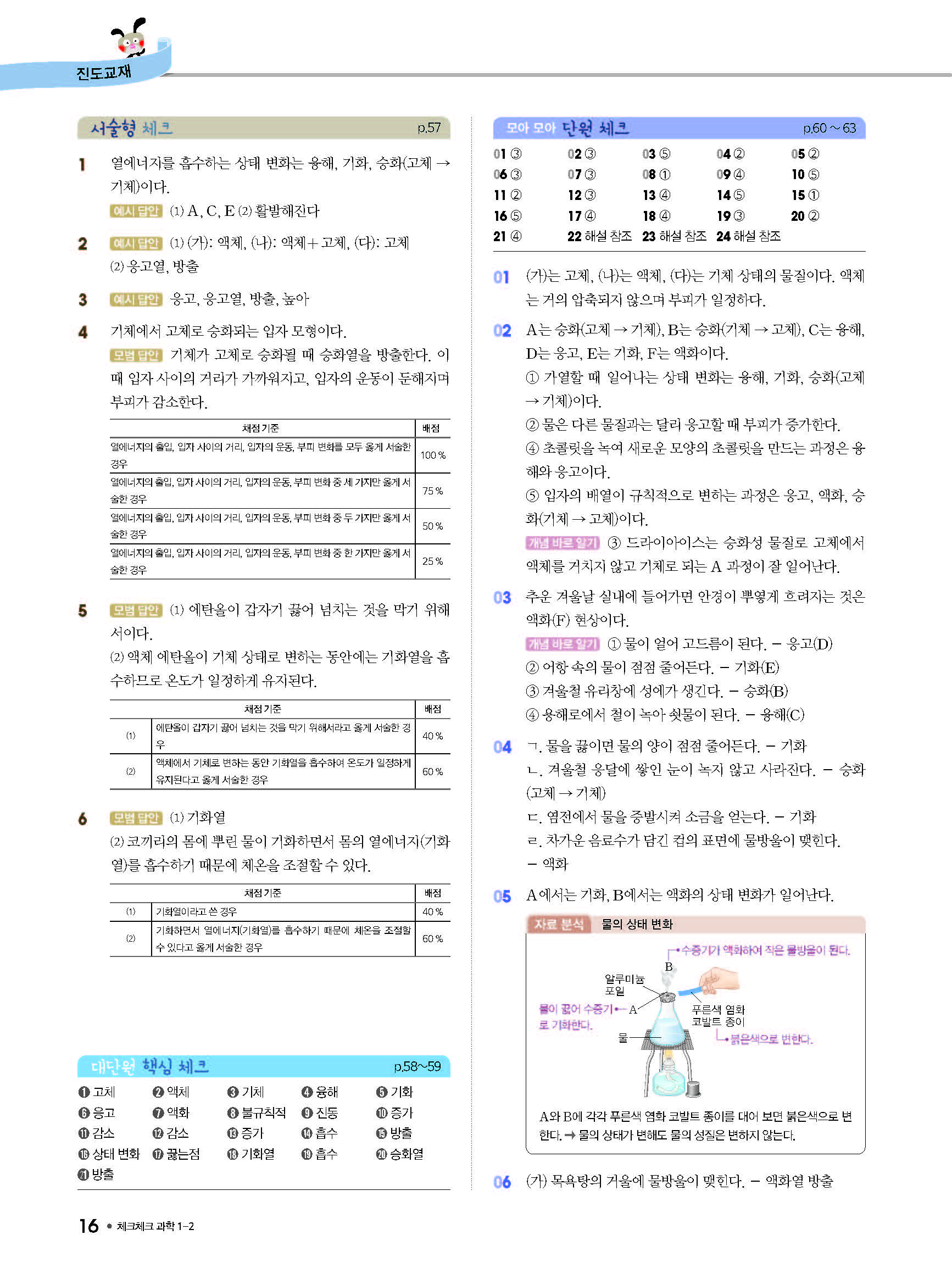 체크체크 중등과학 중1하 1-2 답지 해설 사진답지 빠른답지 모바일최적화