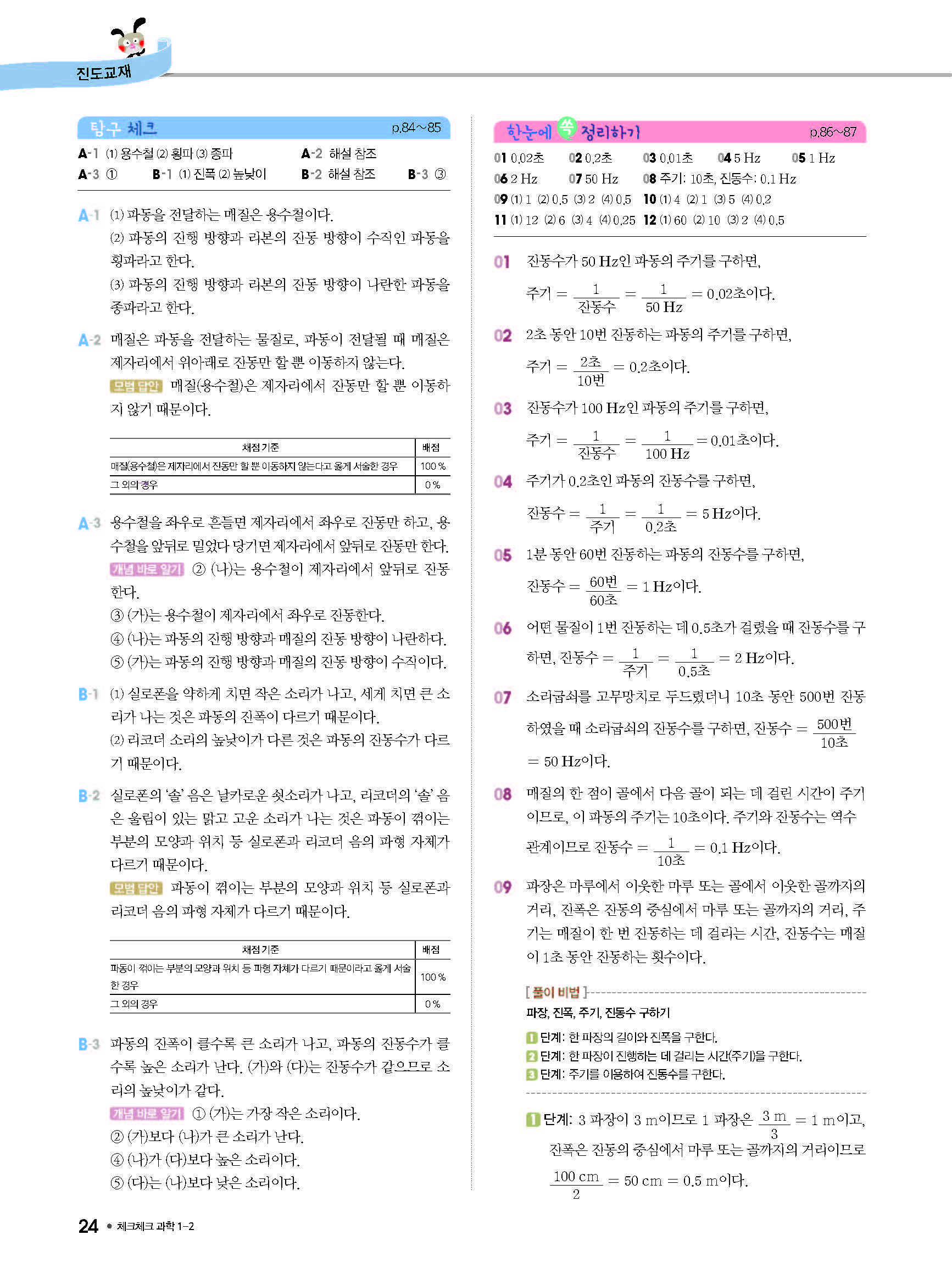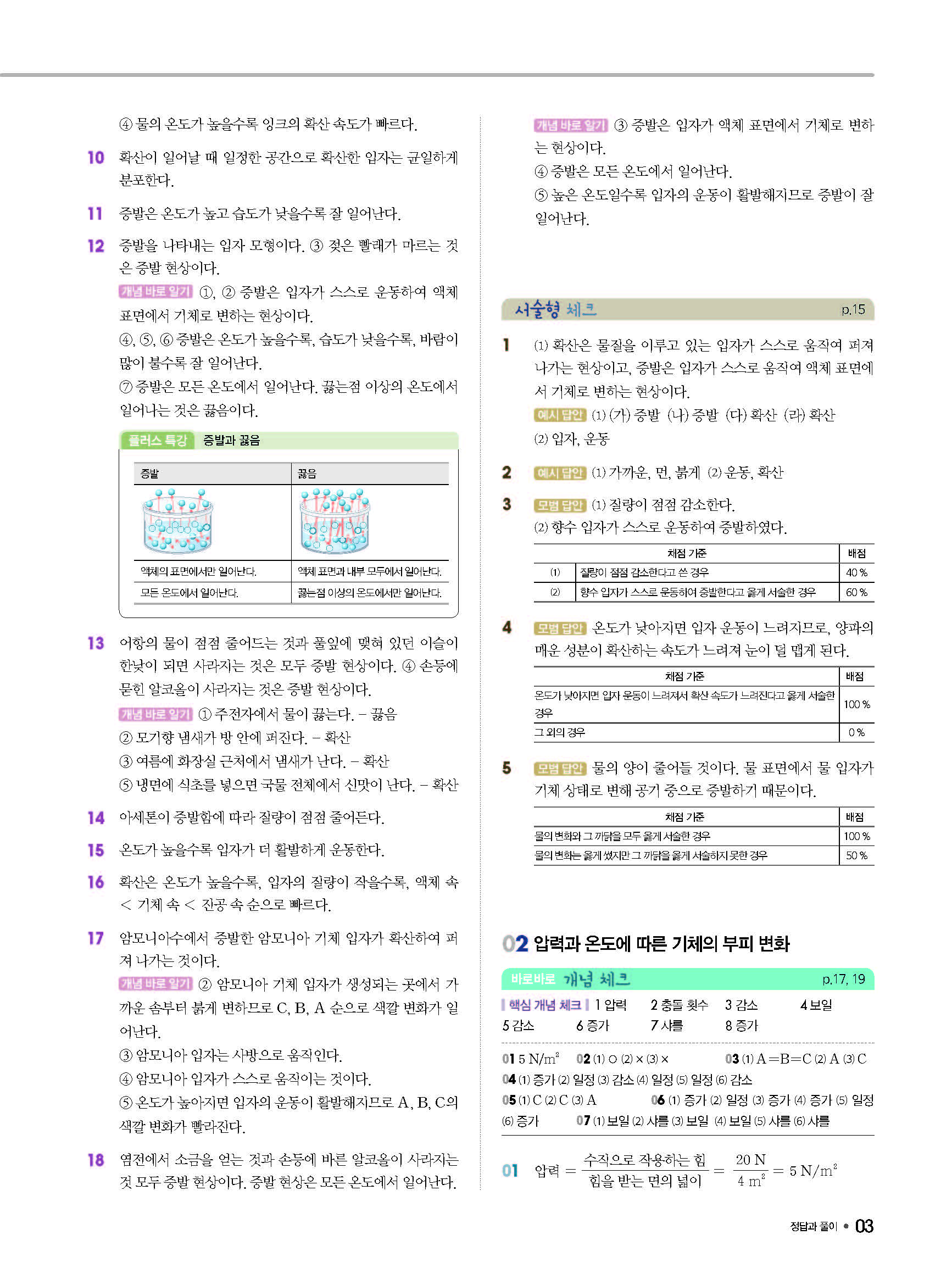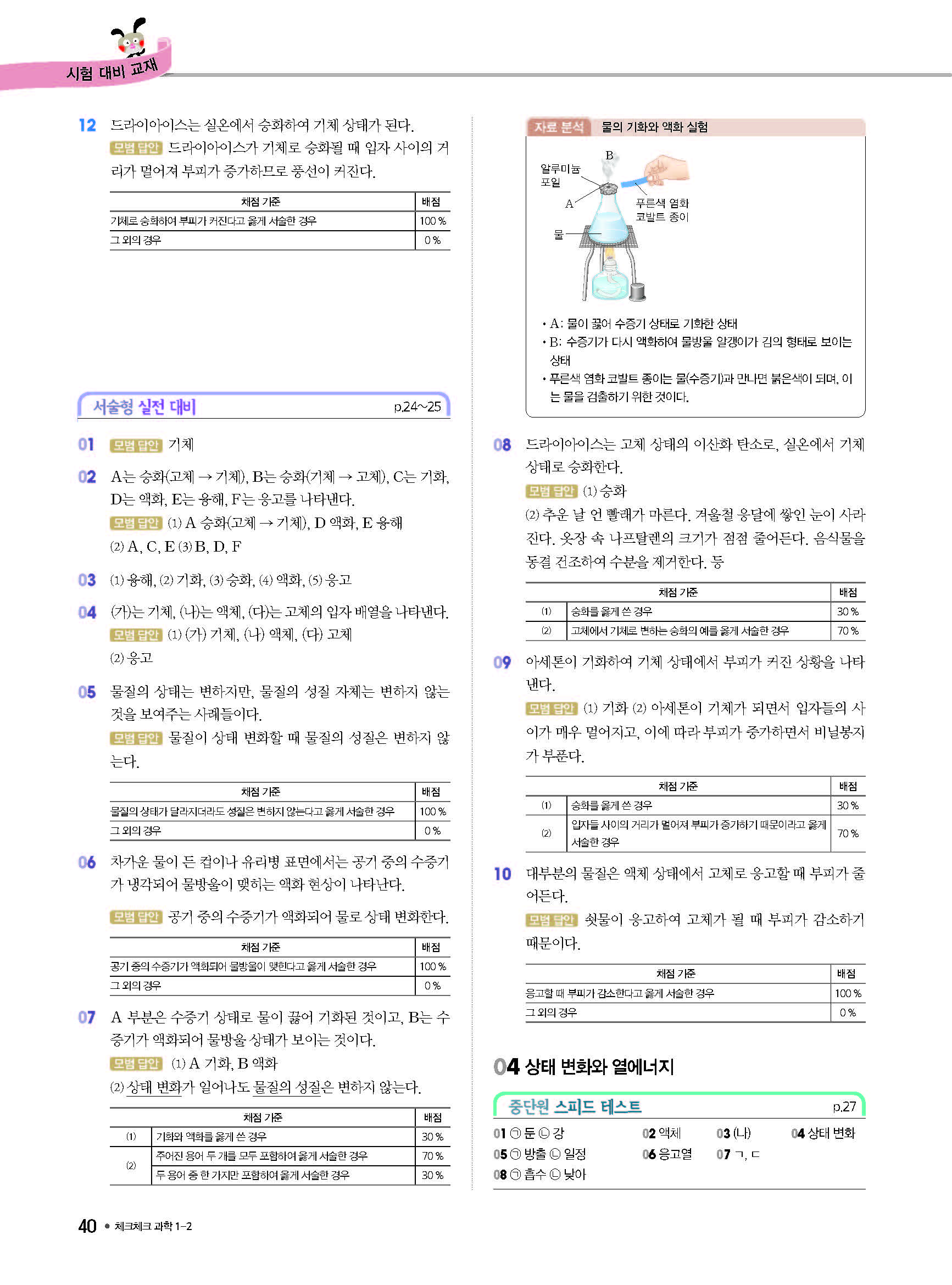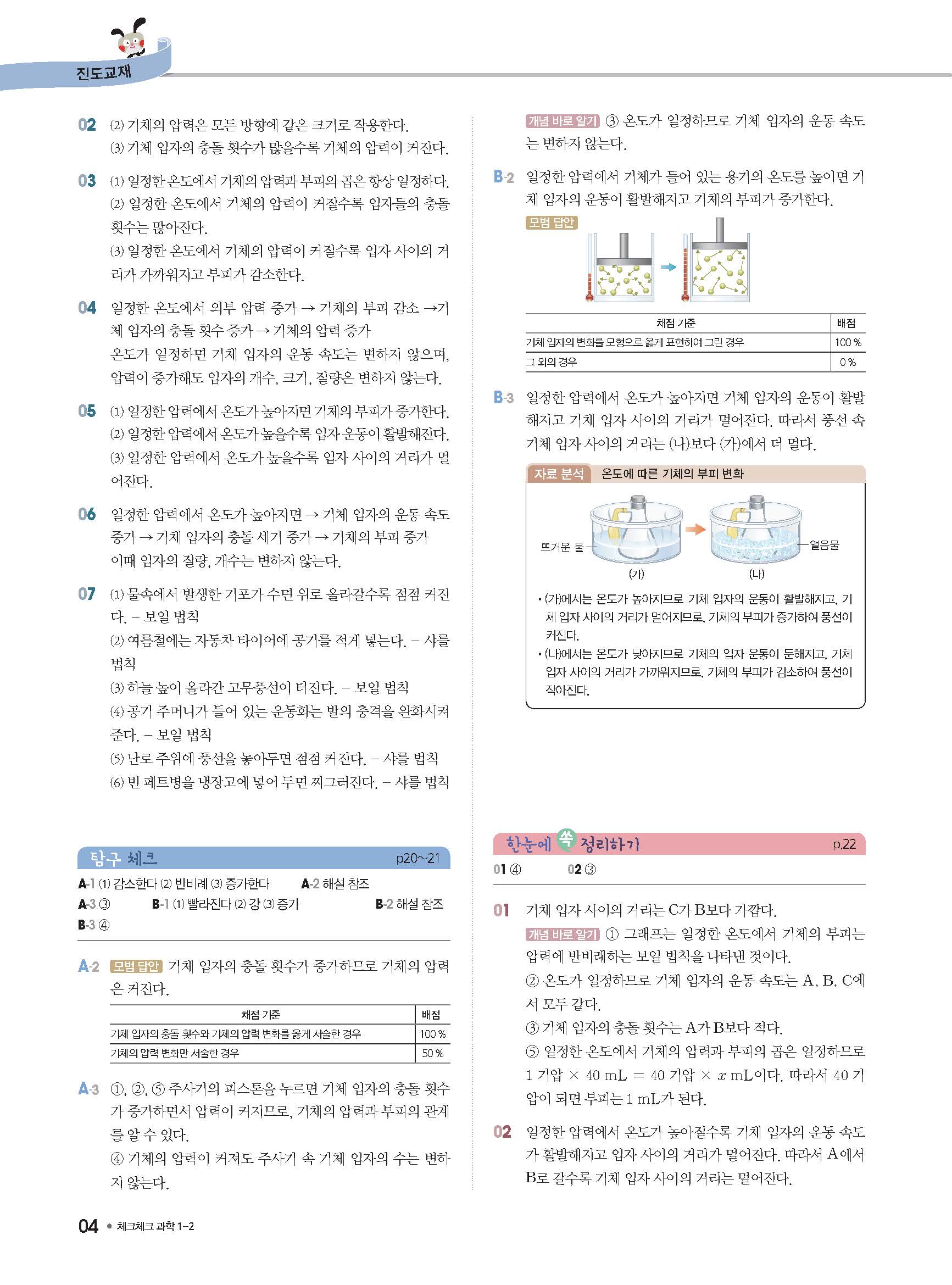 체크체크 중등과학 중1하 1-2 답지 해설 사진답지 빠른답지 모바일최적화