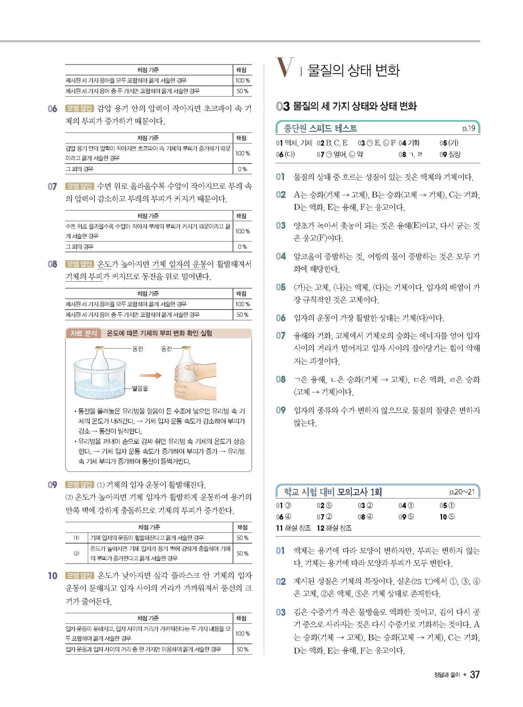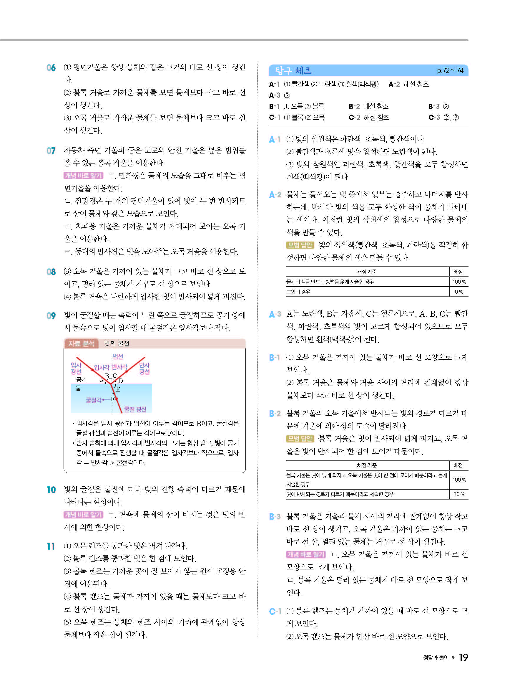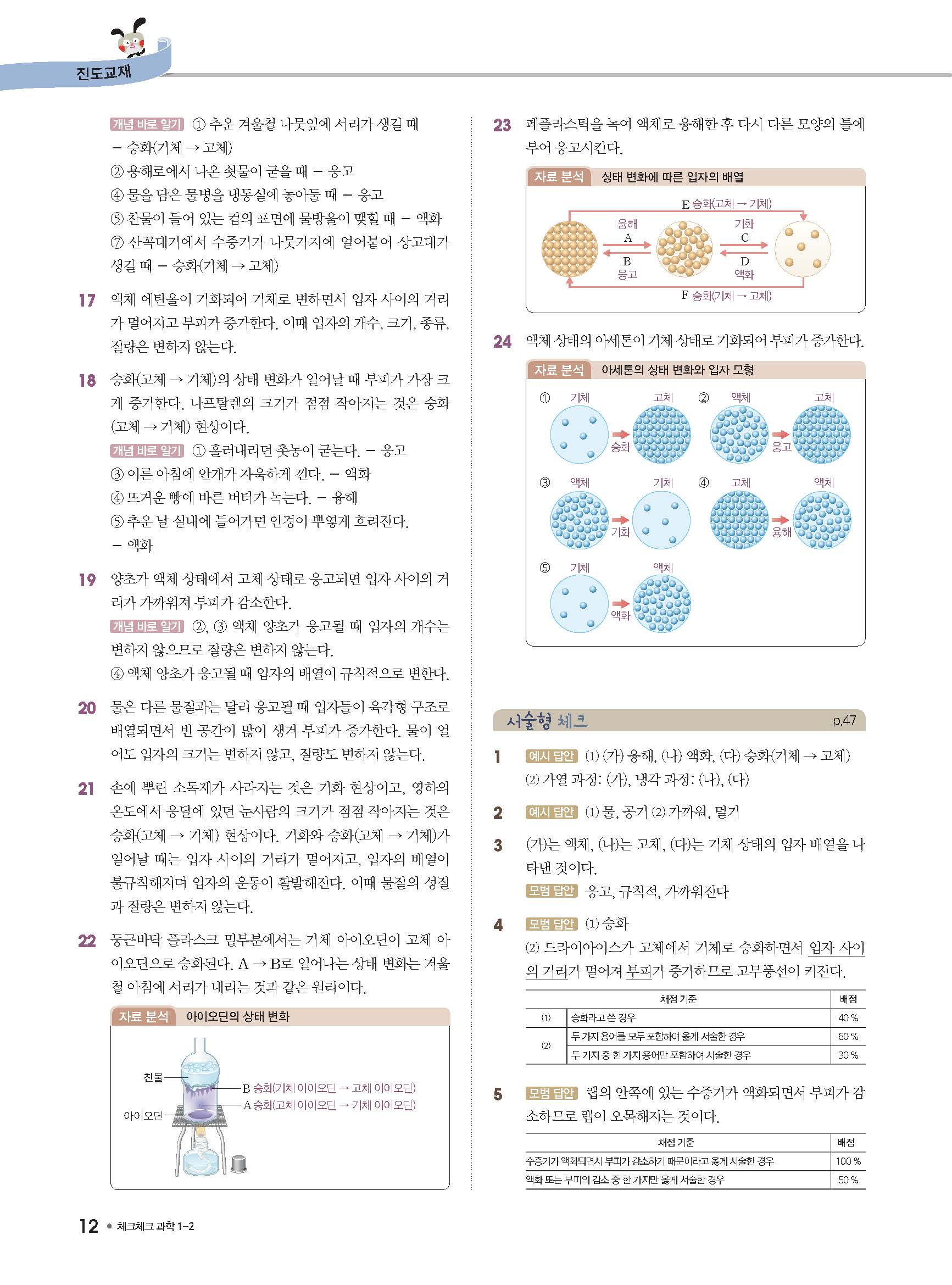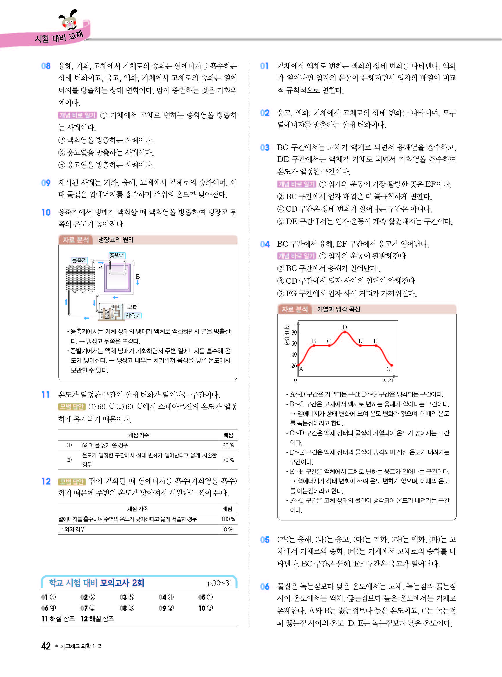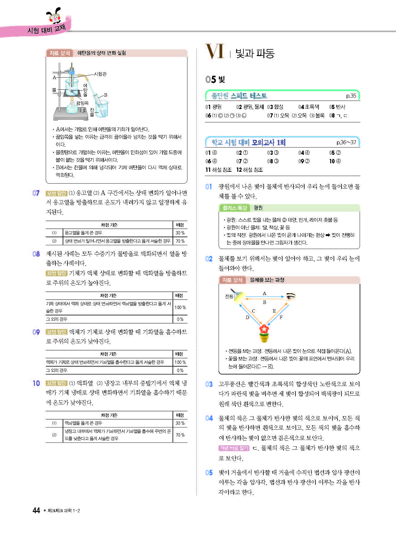 체크체크 중등과학 중1하 1-2 답지 해설 사진답지 빠른답지 모바일최적화