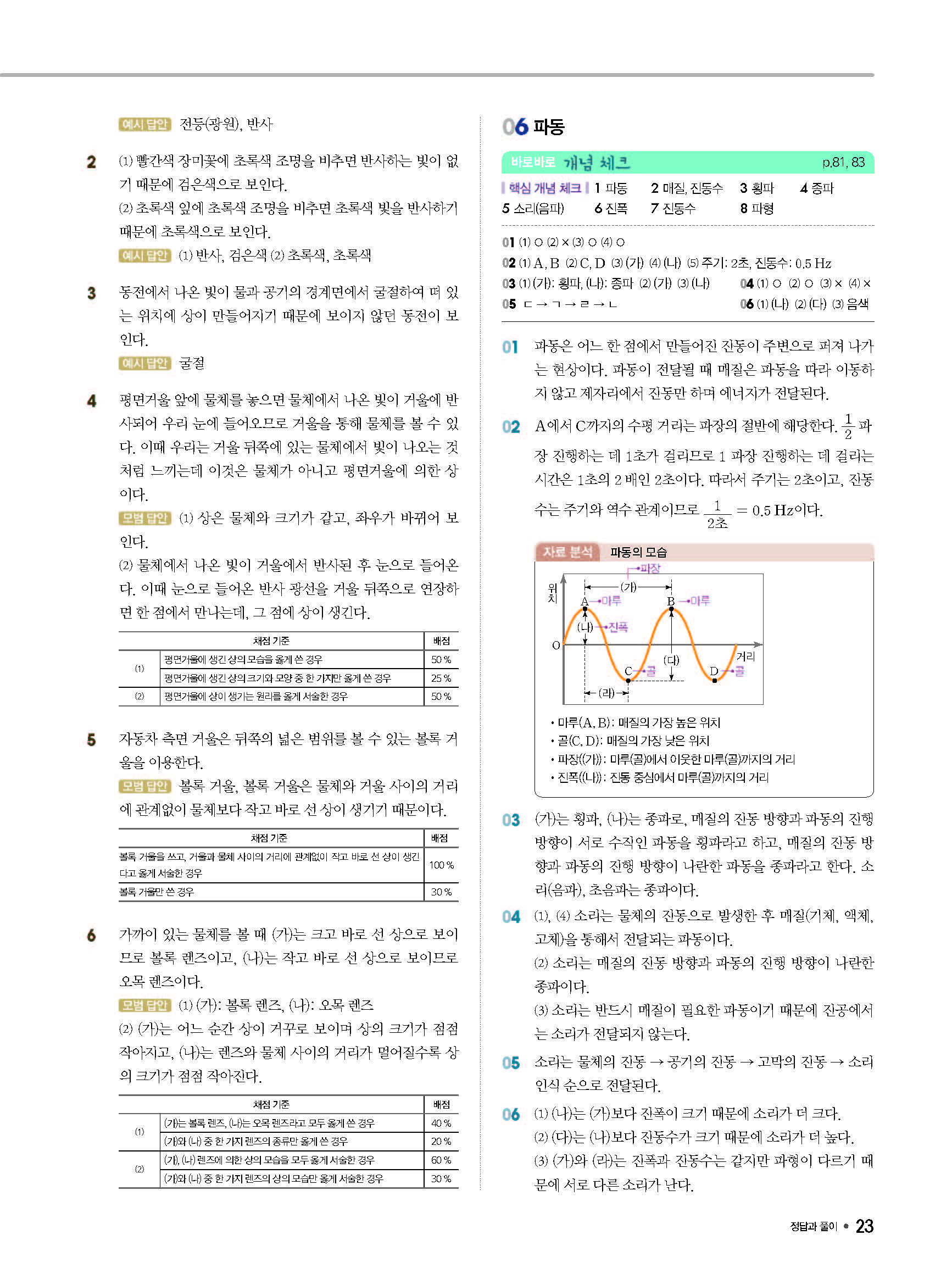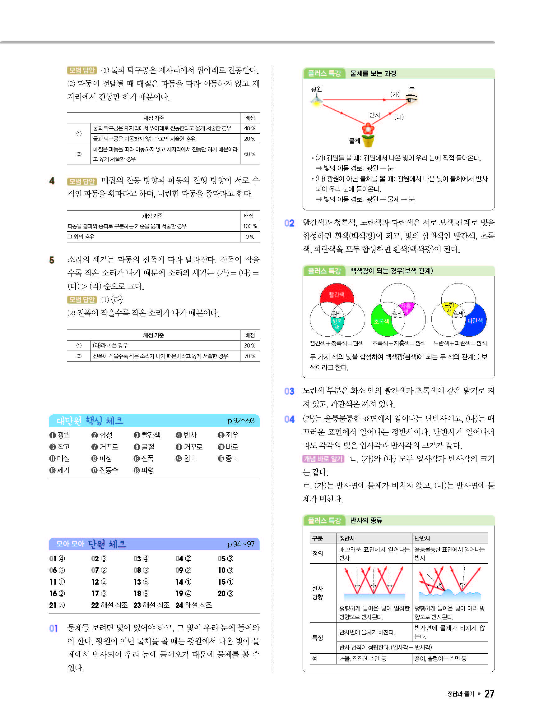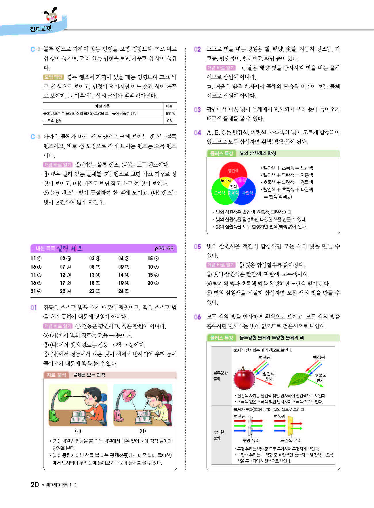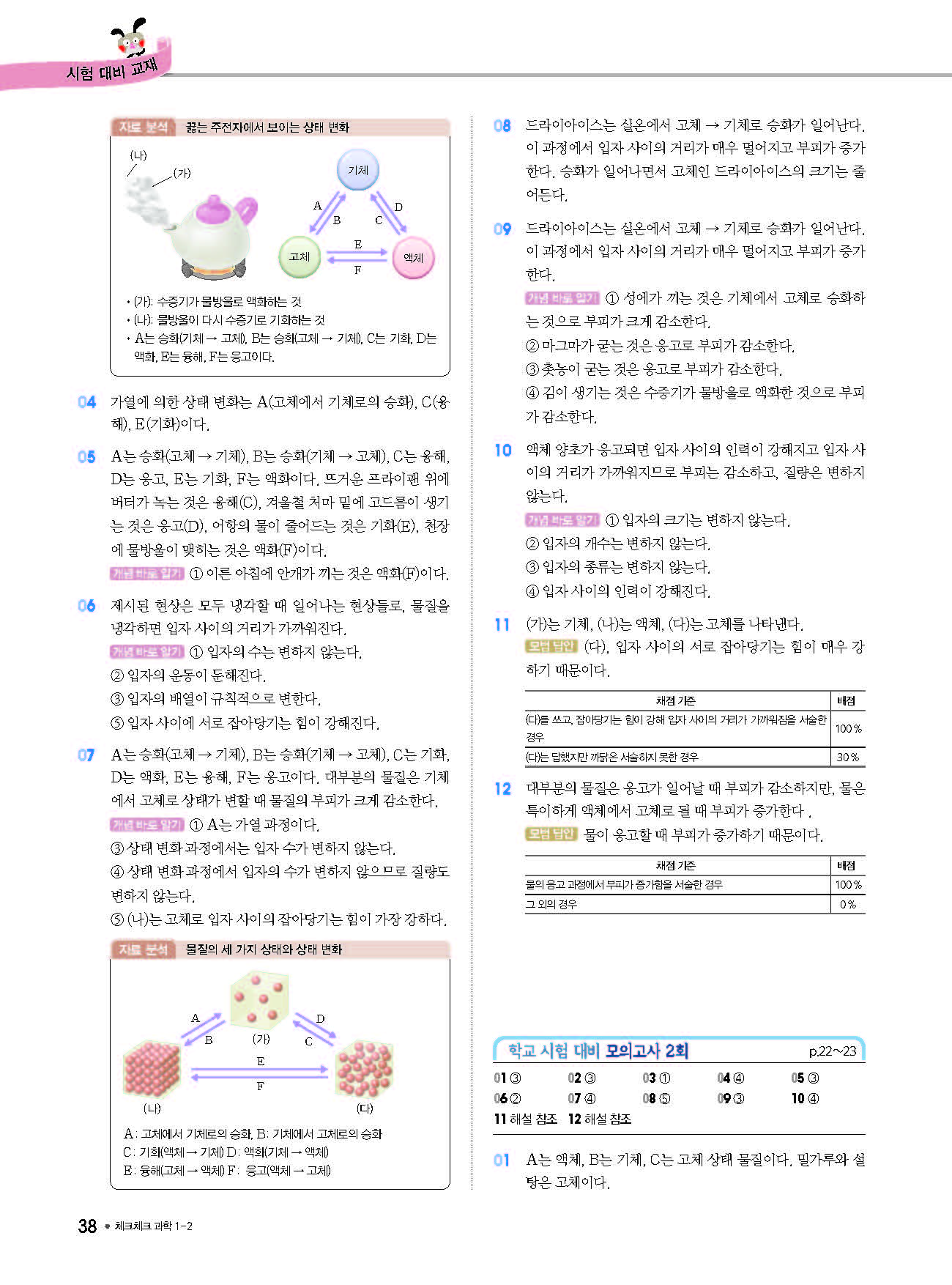 체크체크 중등과학 중1하 1-2 답지 해설 사진답지 빠른답지 모바일최적화