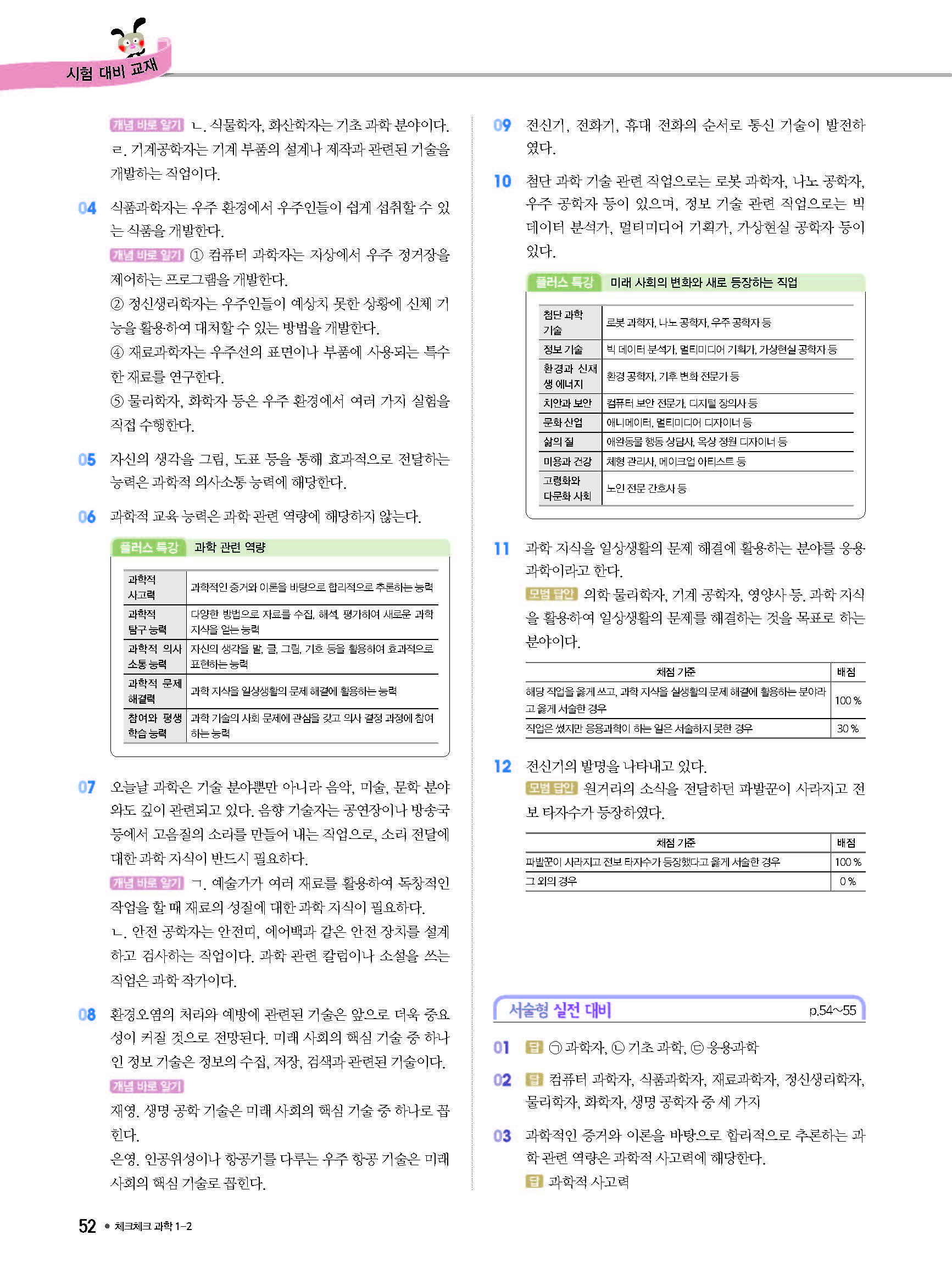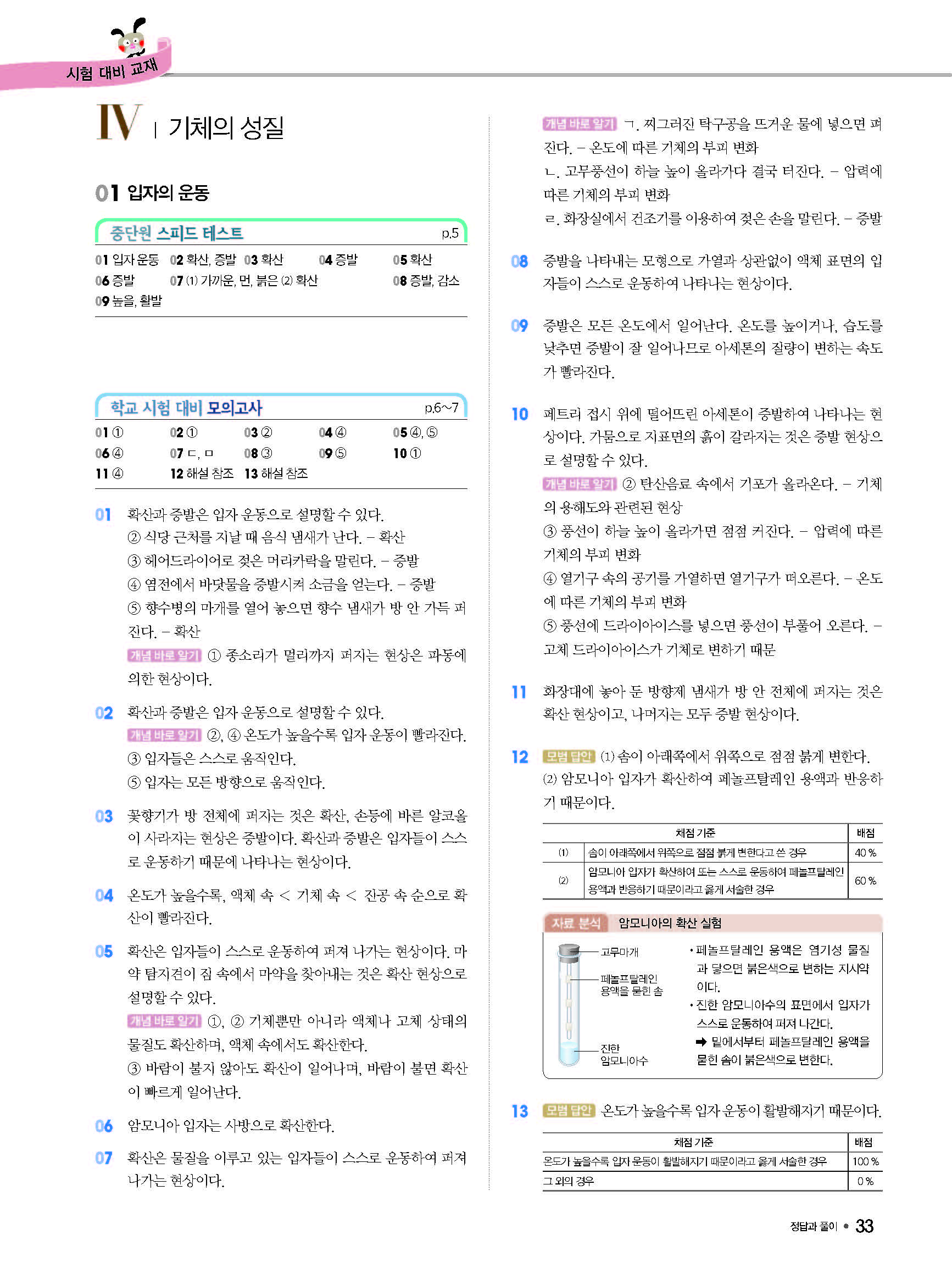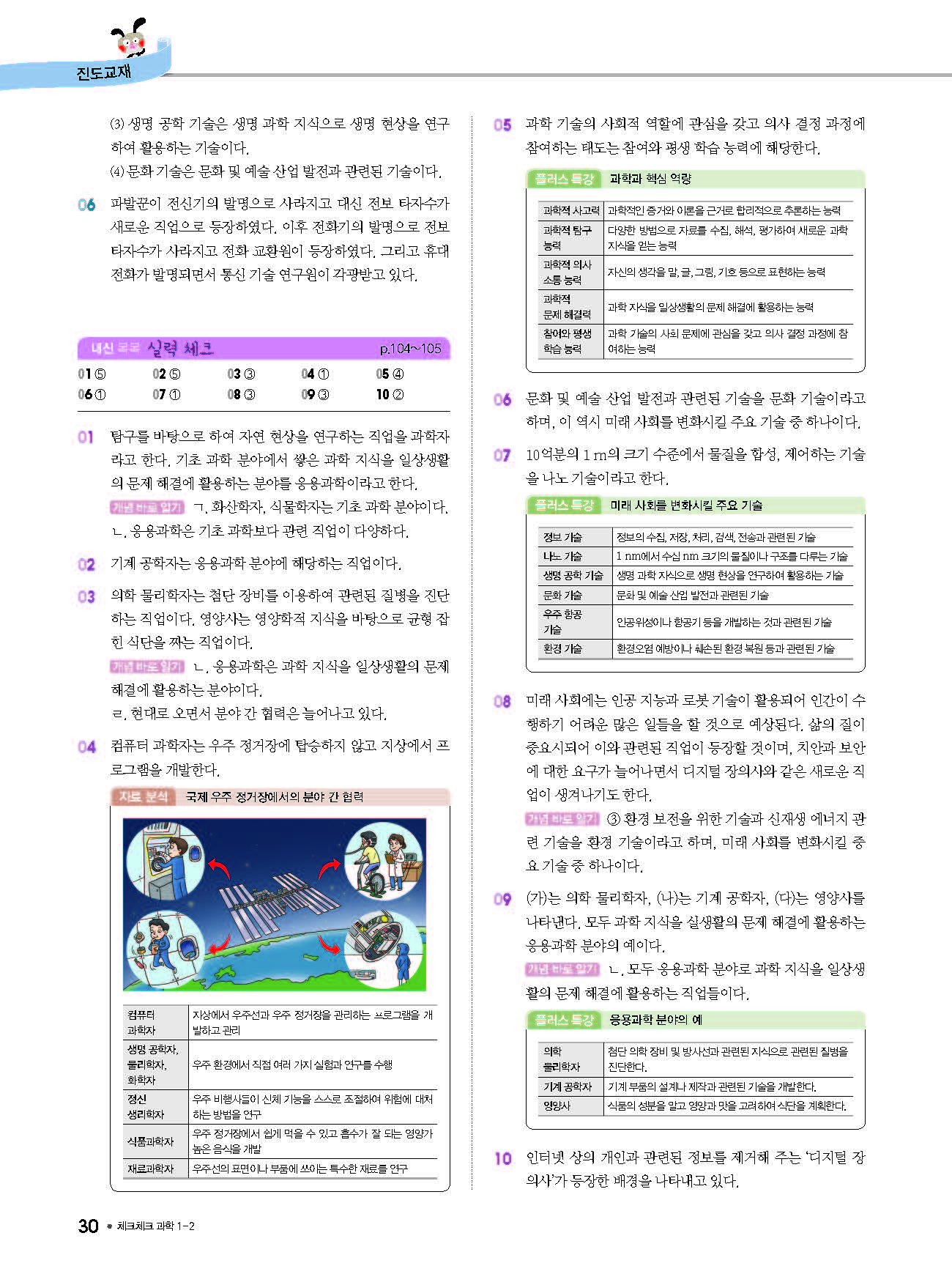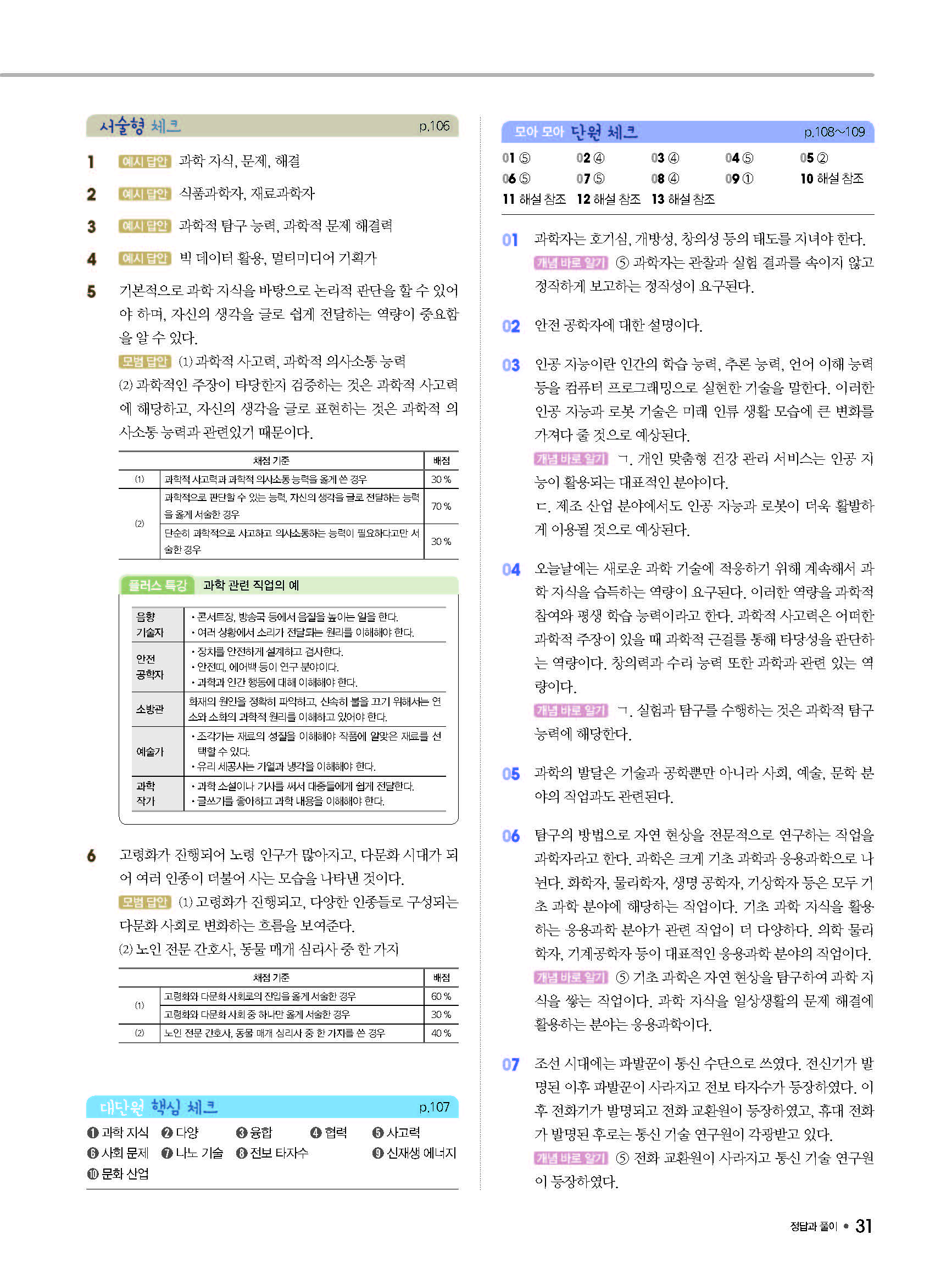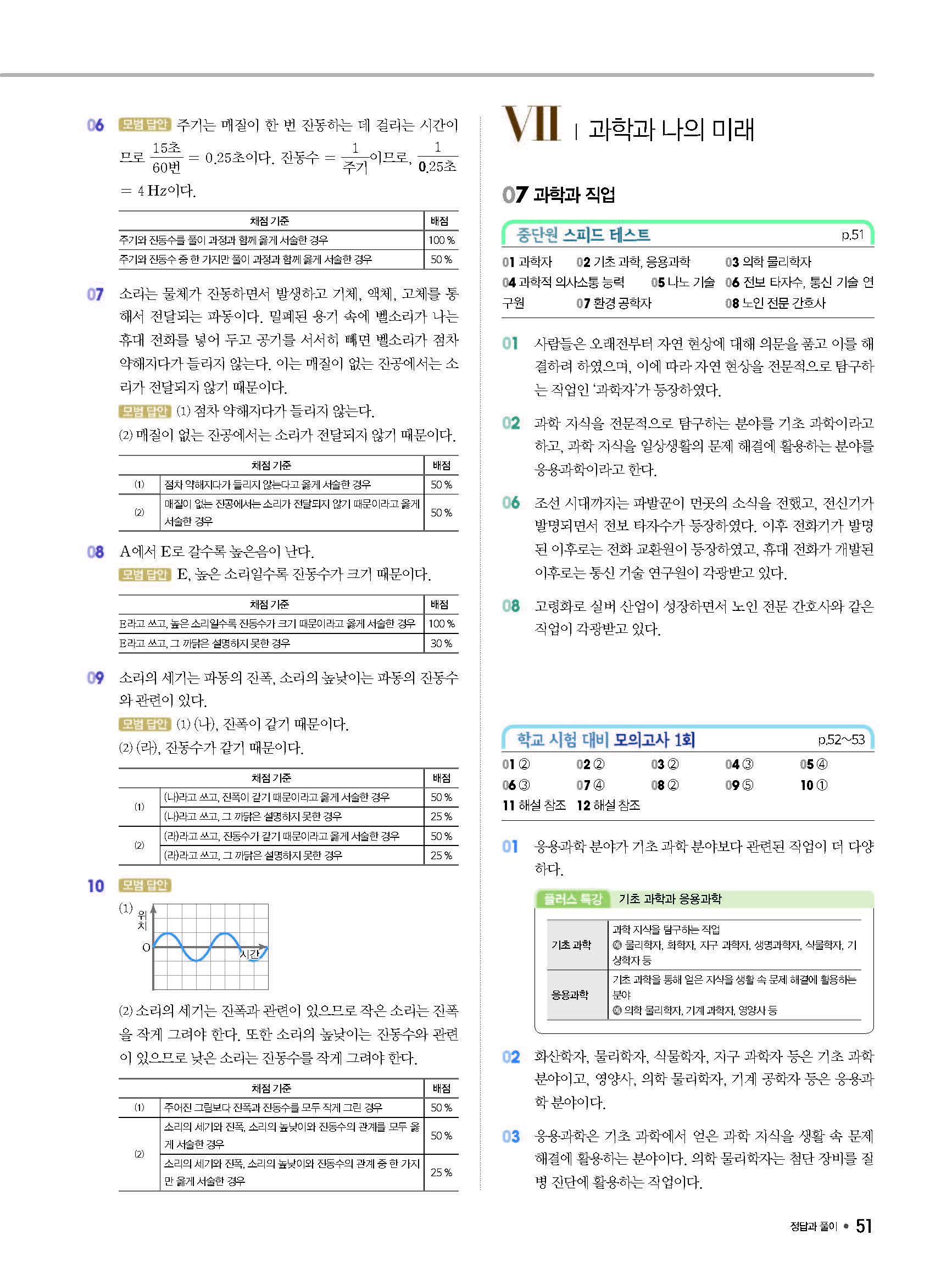 체크체크 중등과학 중1하 1-2 답지 해설 사진답지 빠른답지 모바일최적화