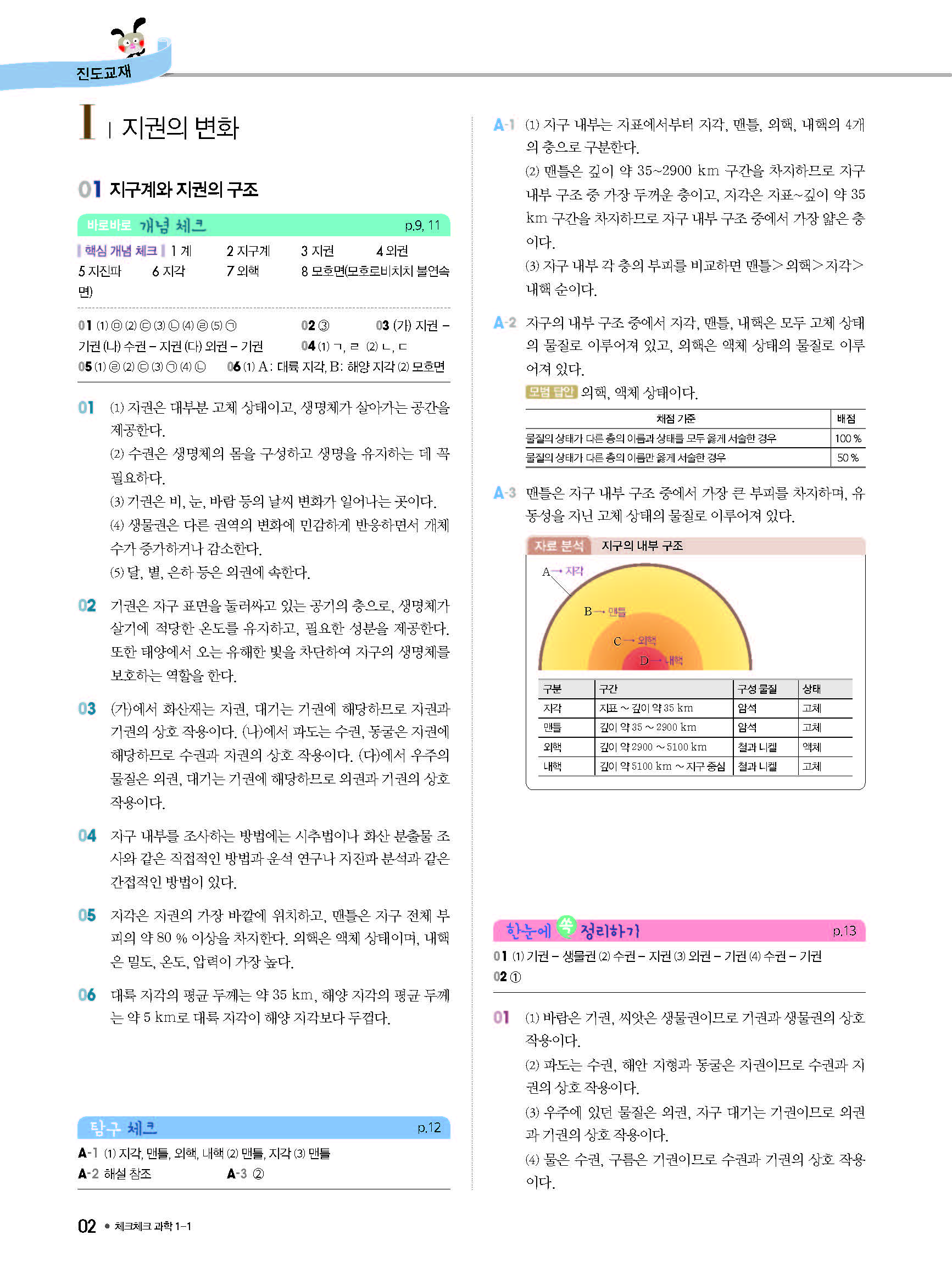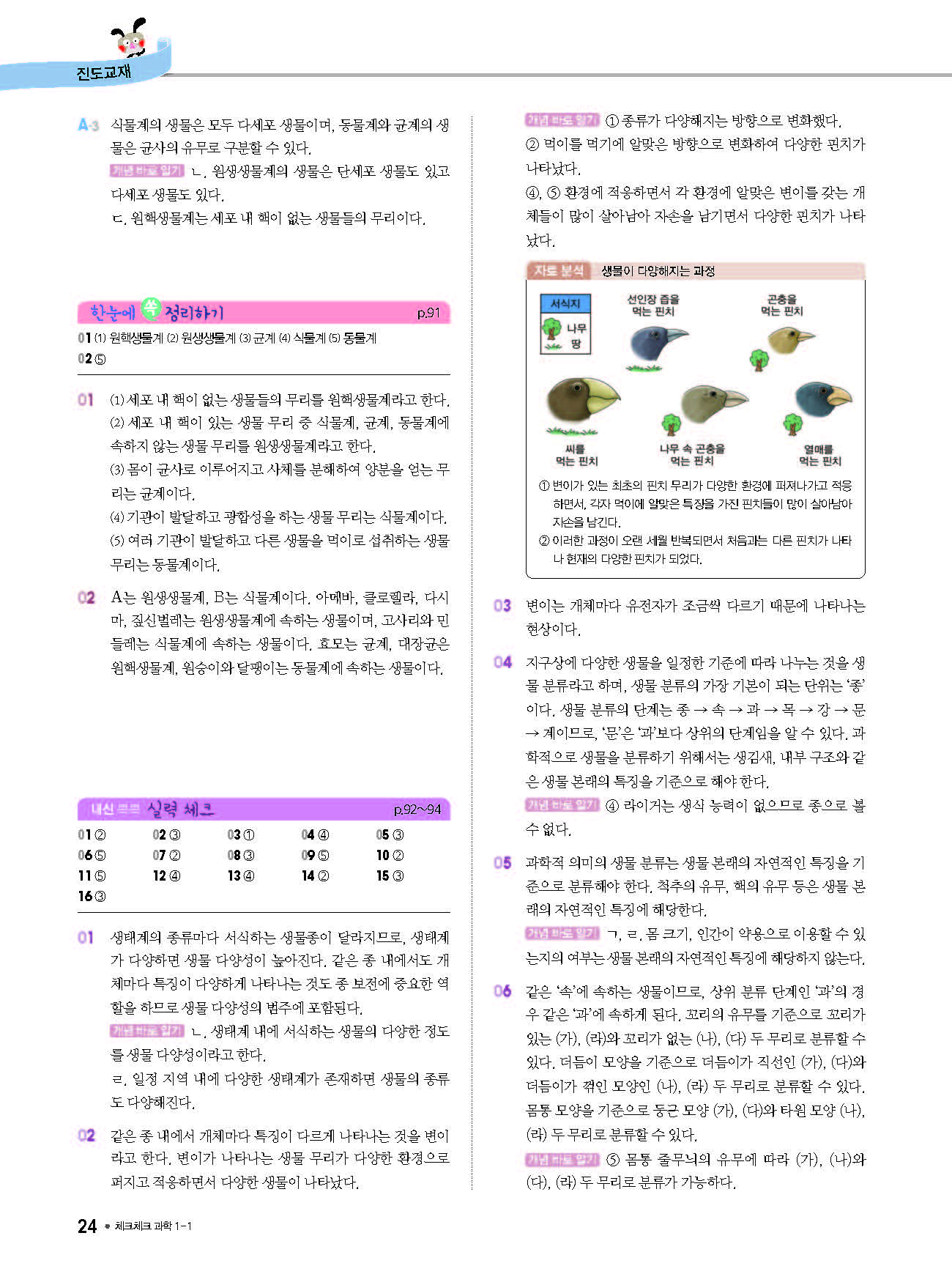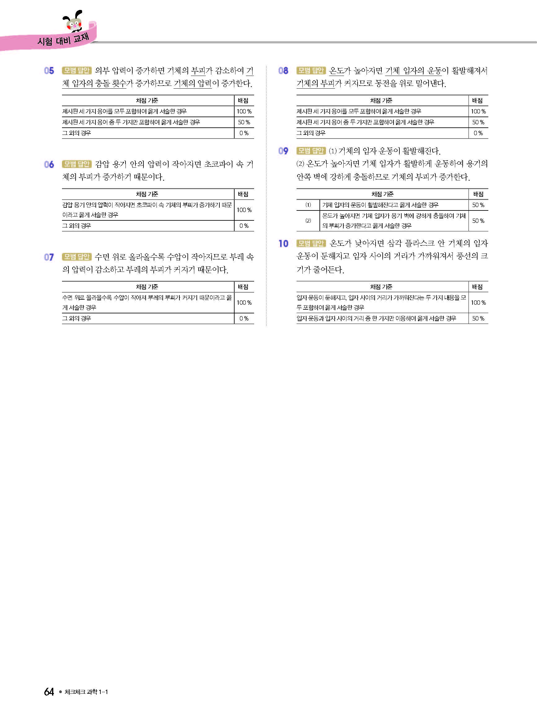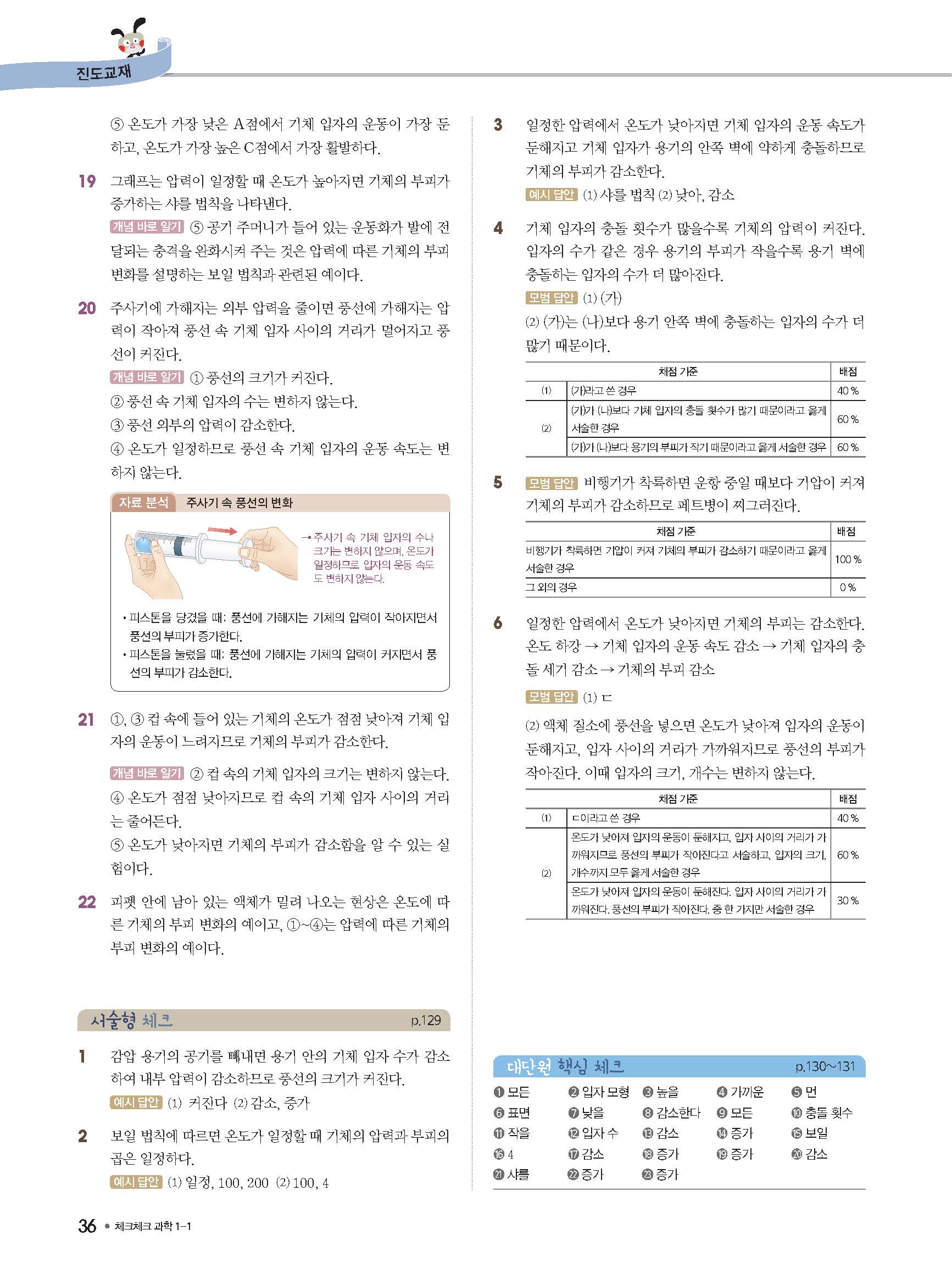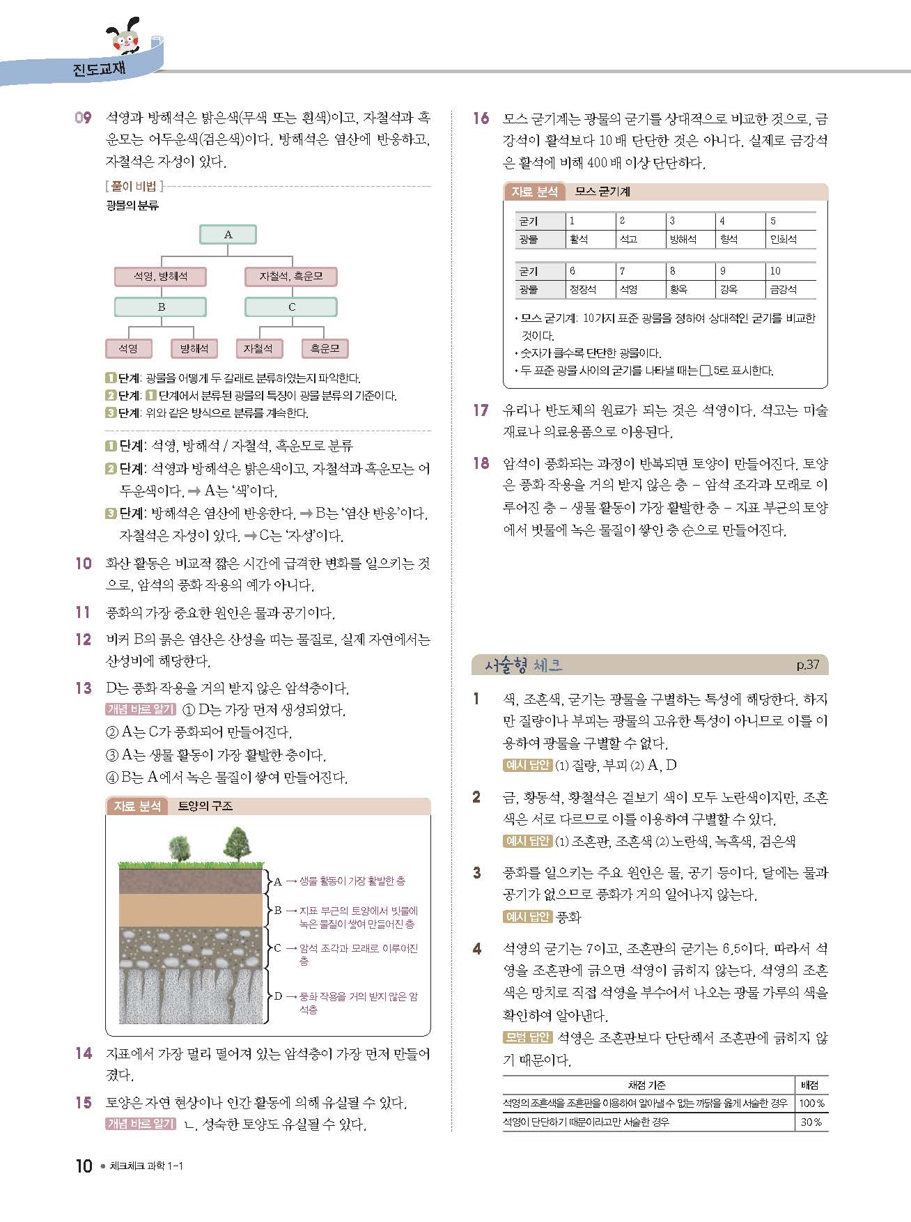 체크체크 중등과학 중1상 1-1 답지 해설 사진답지 빠른답지 모바일최적화
