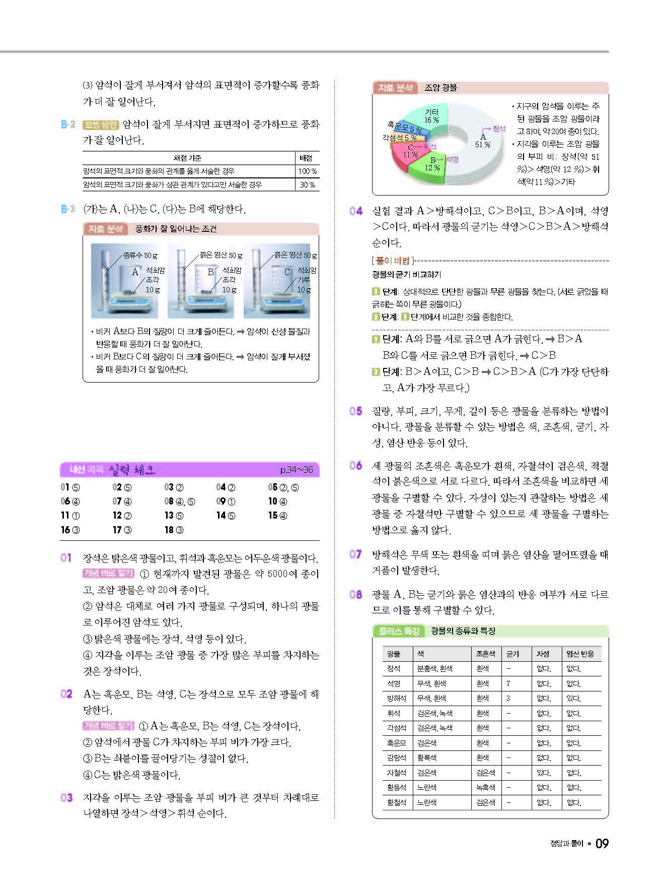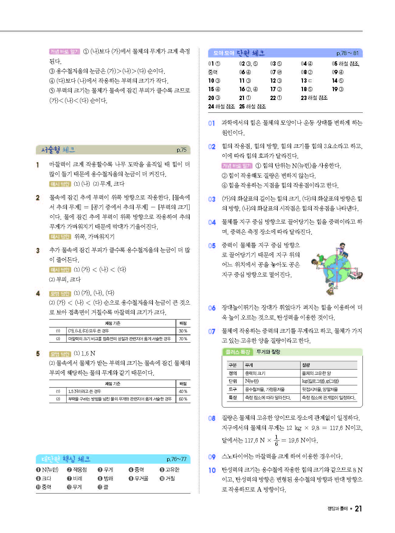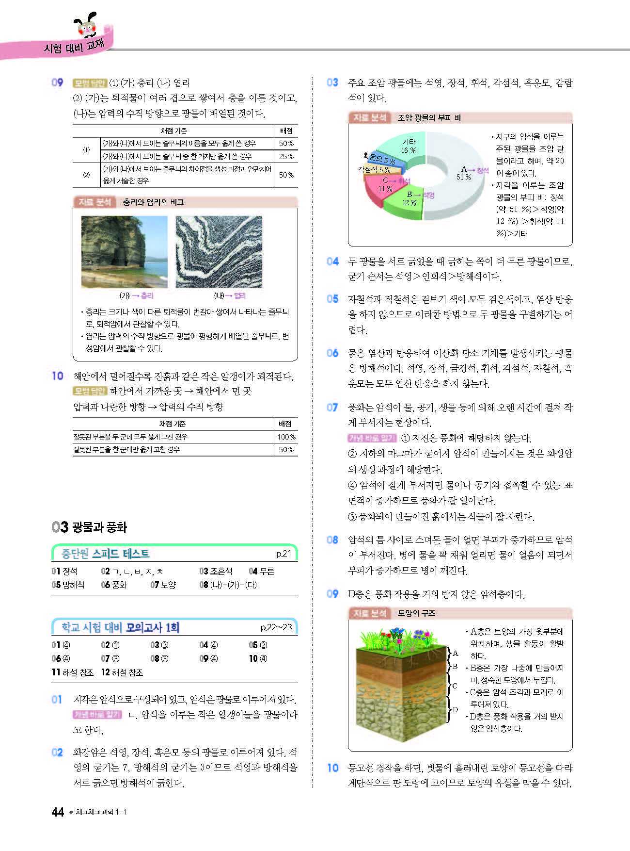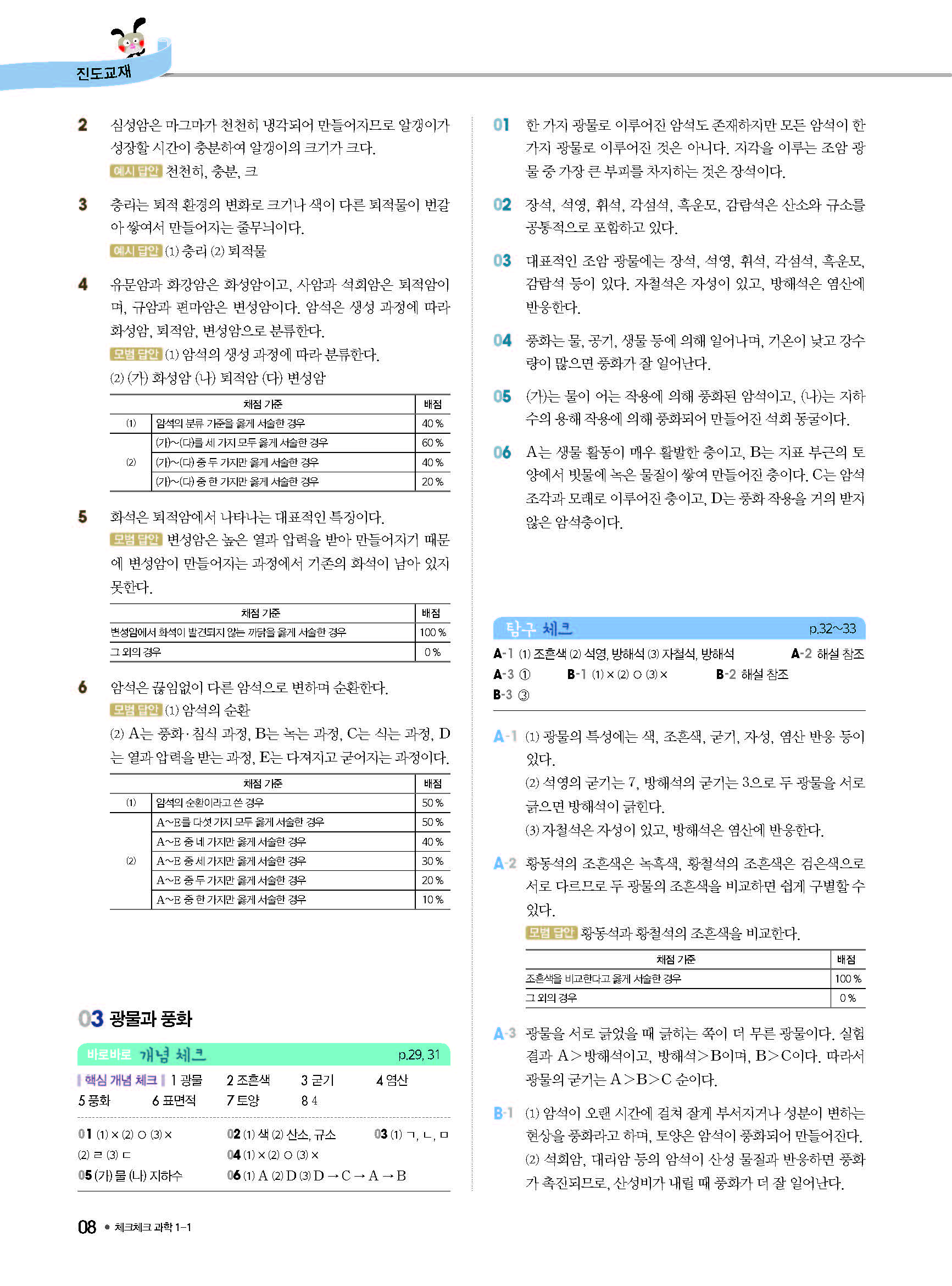 체크체크 중등과학 중1상 1-1 답지 해설 사진답지 빠른답지 모바일최적화