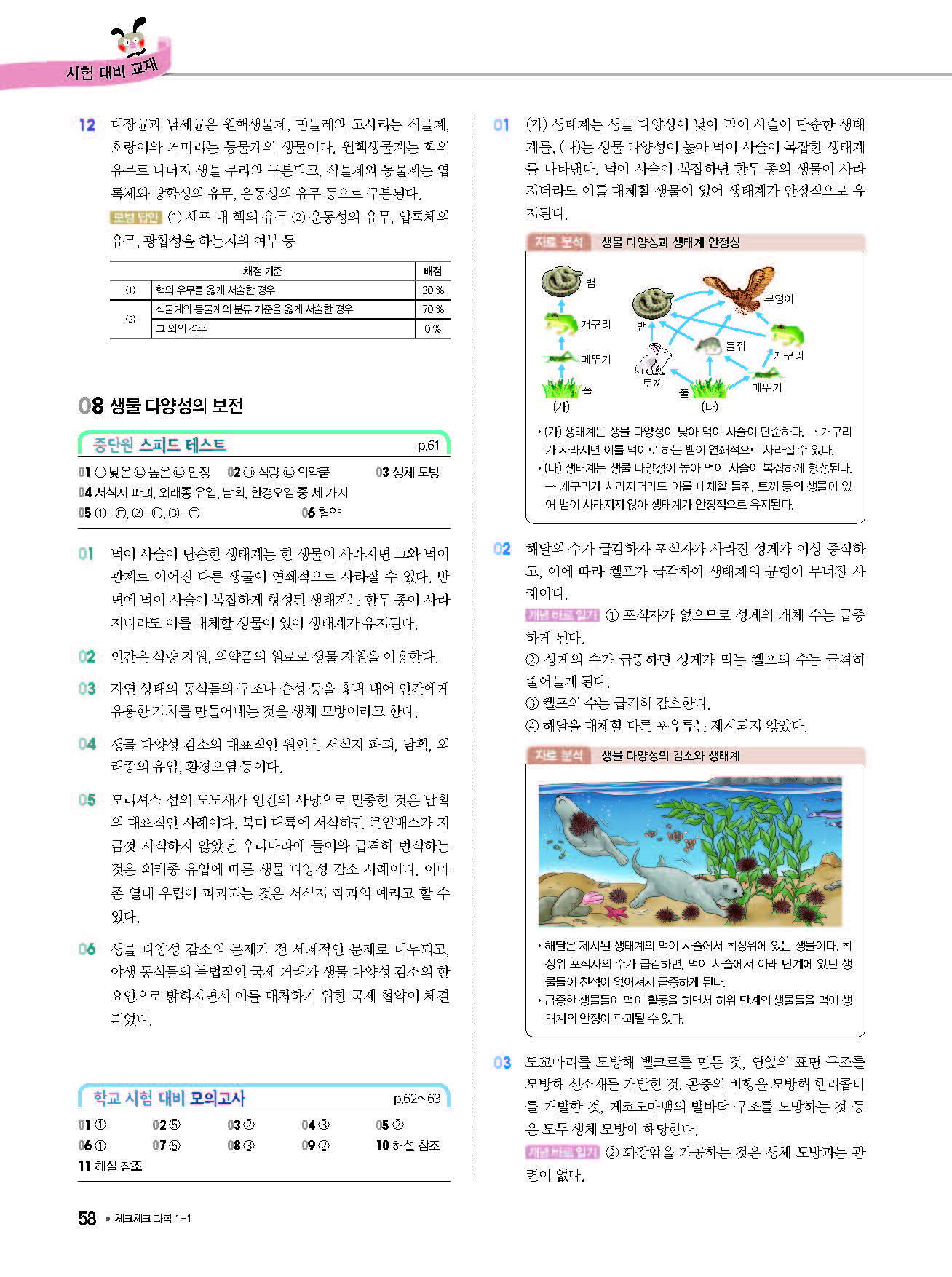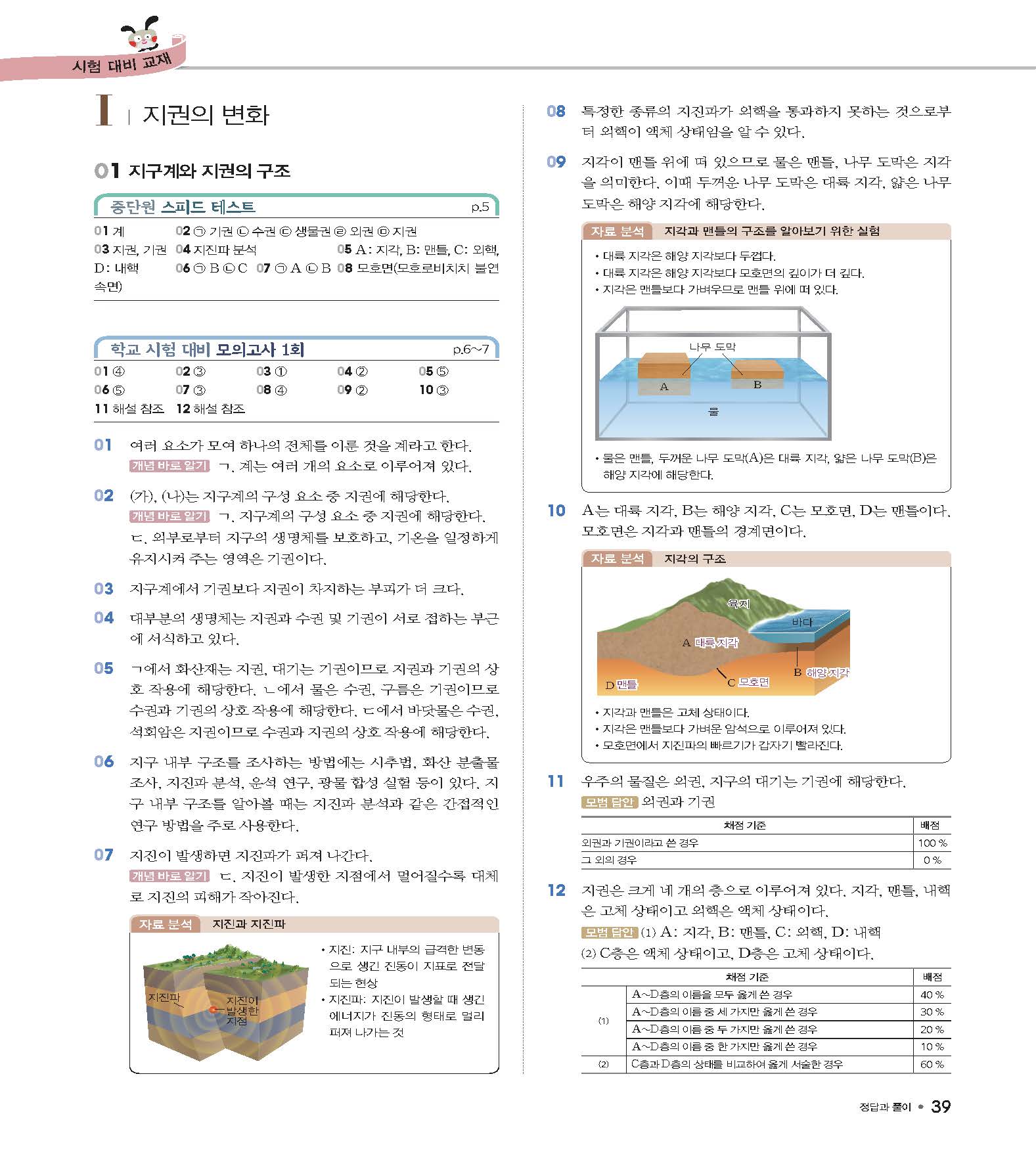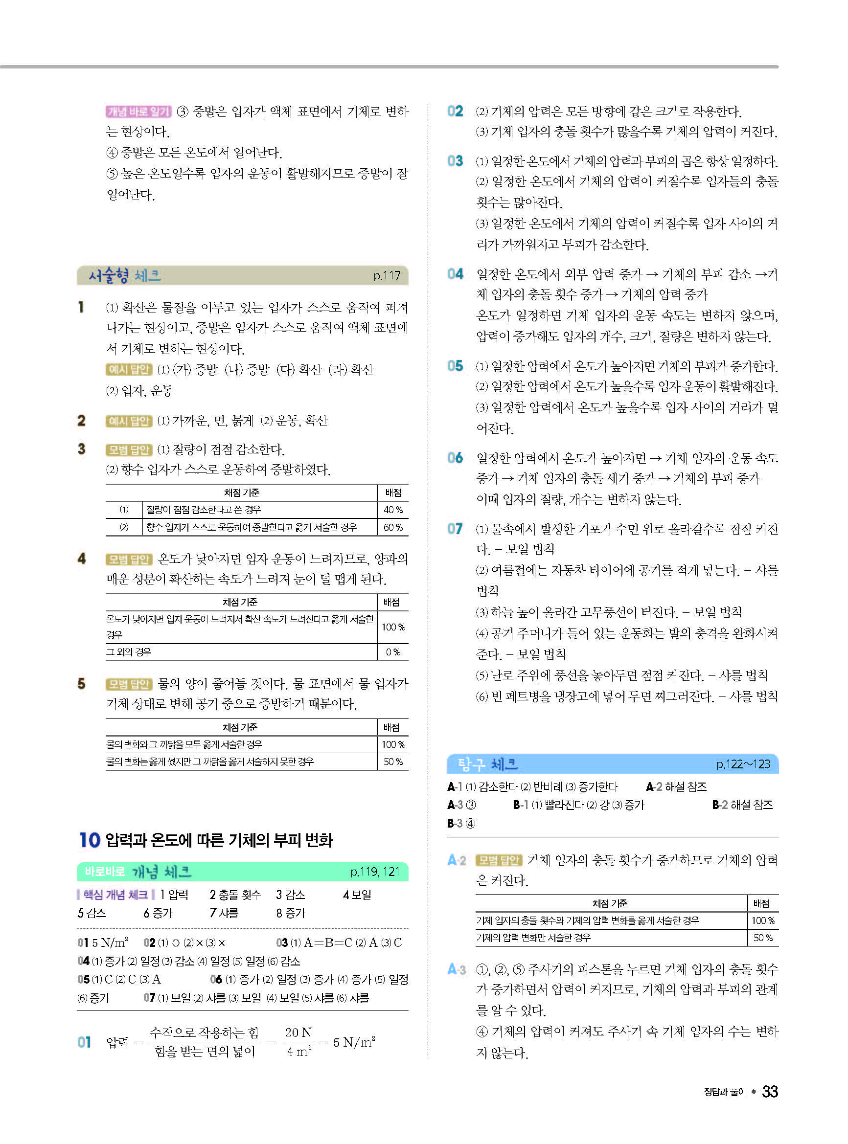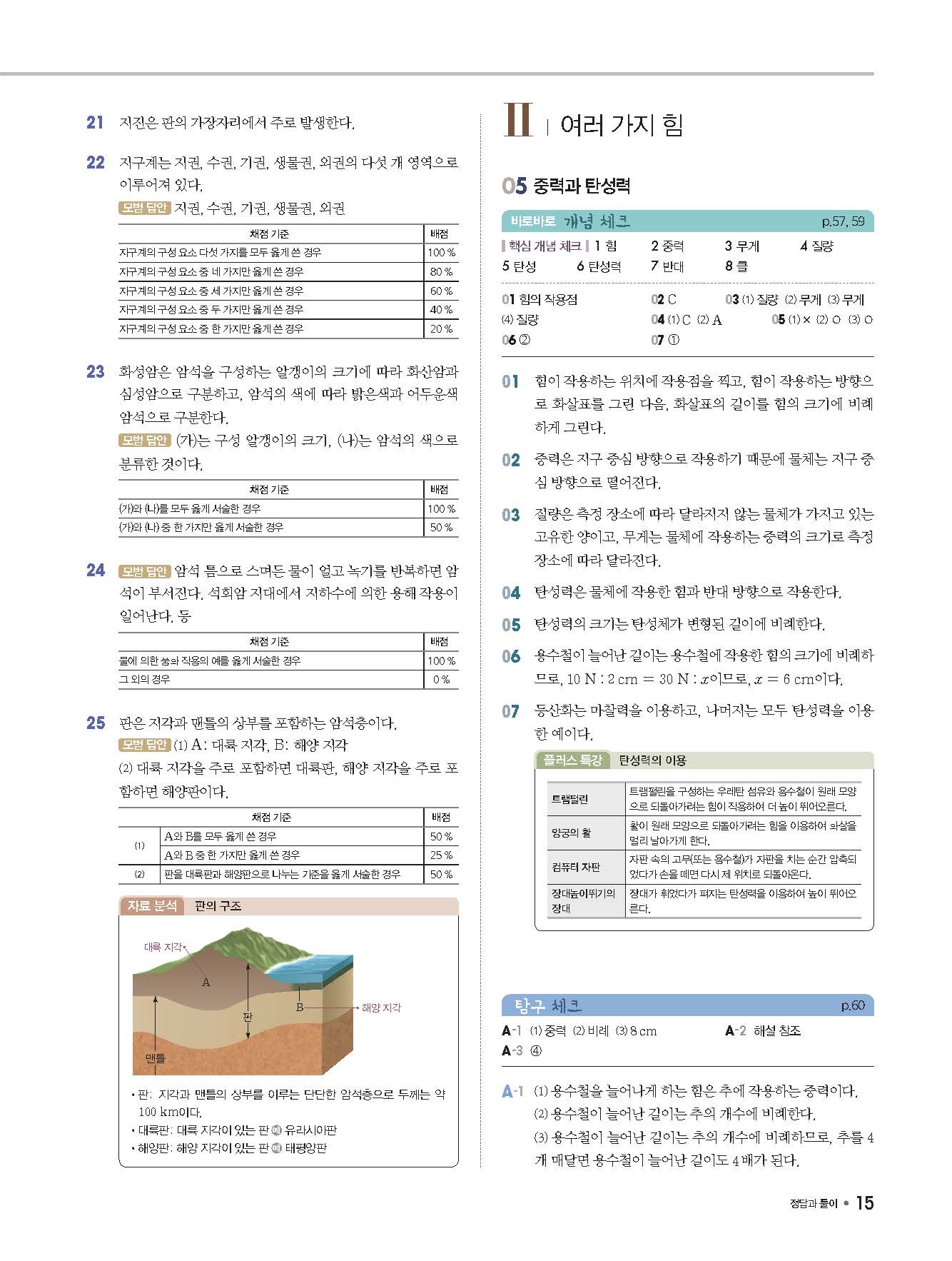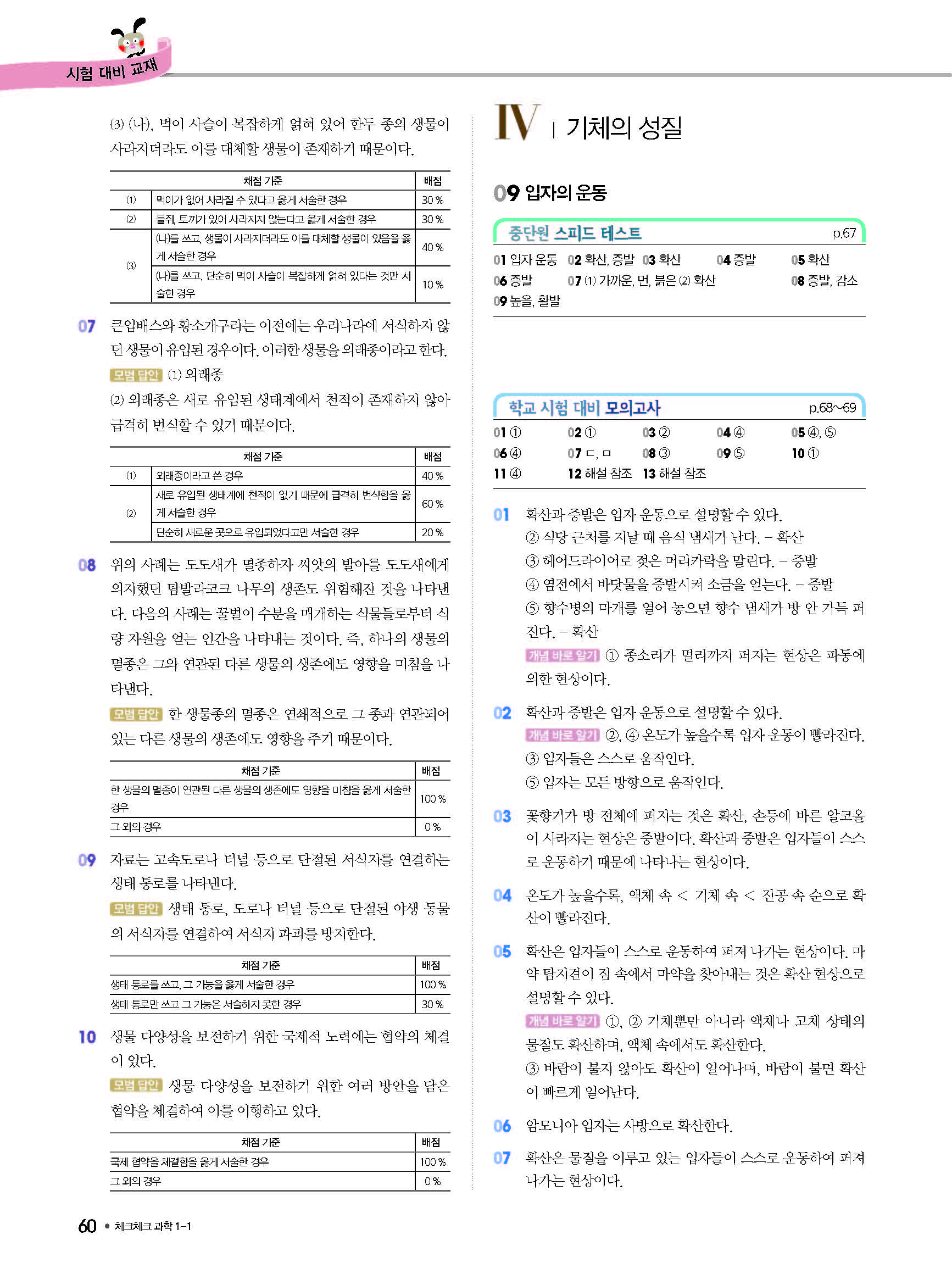 체크체크 중등과학 중1상 1-1 답지 해설 사진답지 빠른답지 모바일최적화