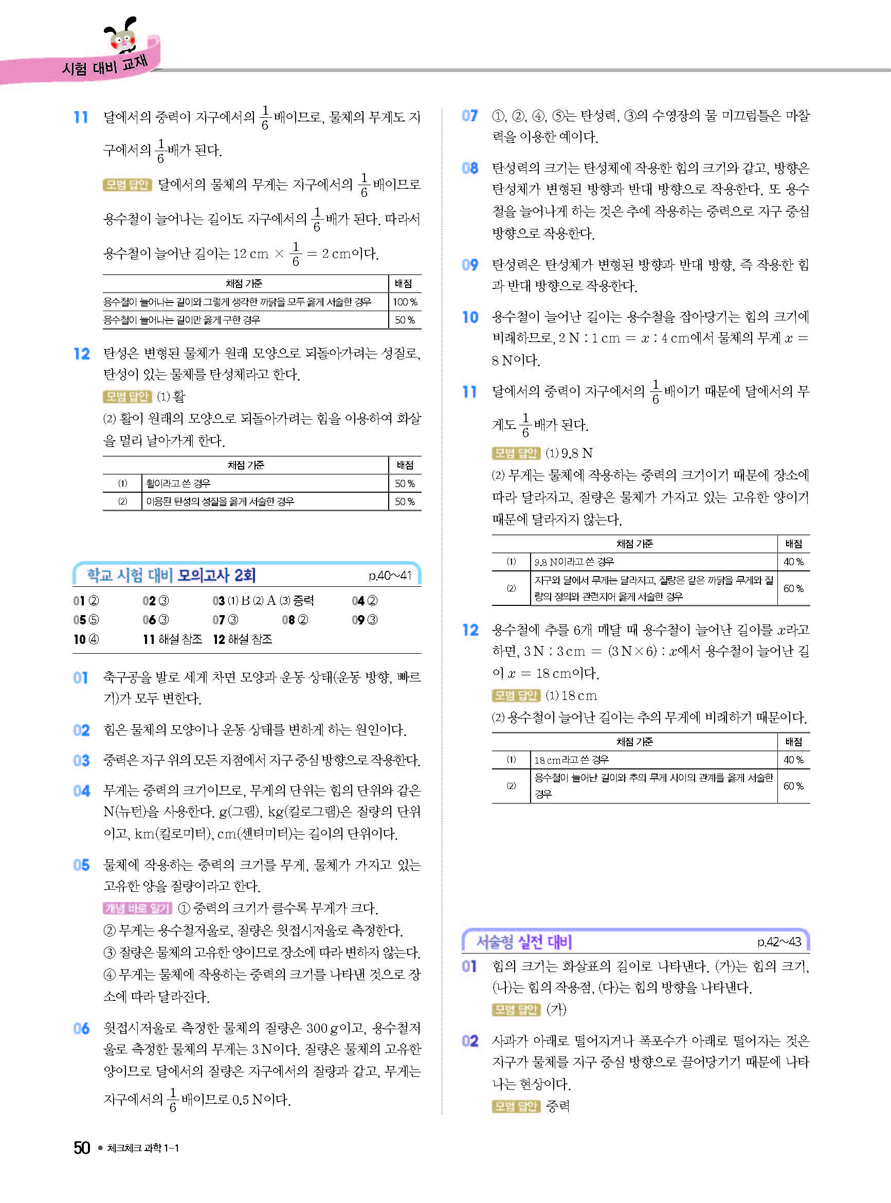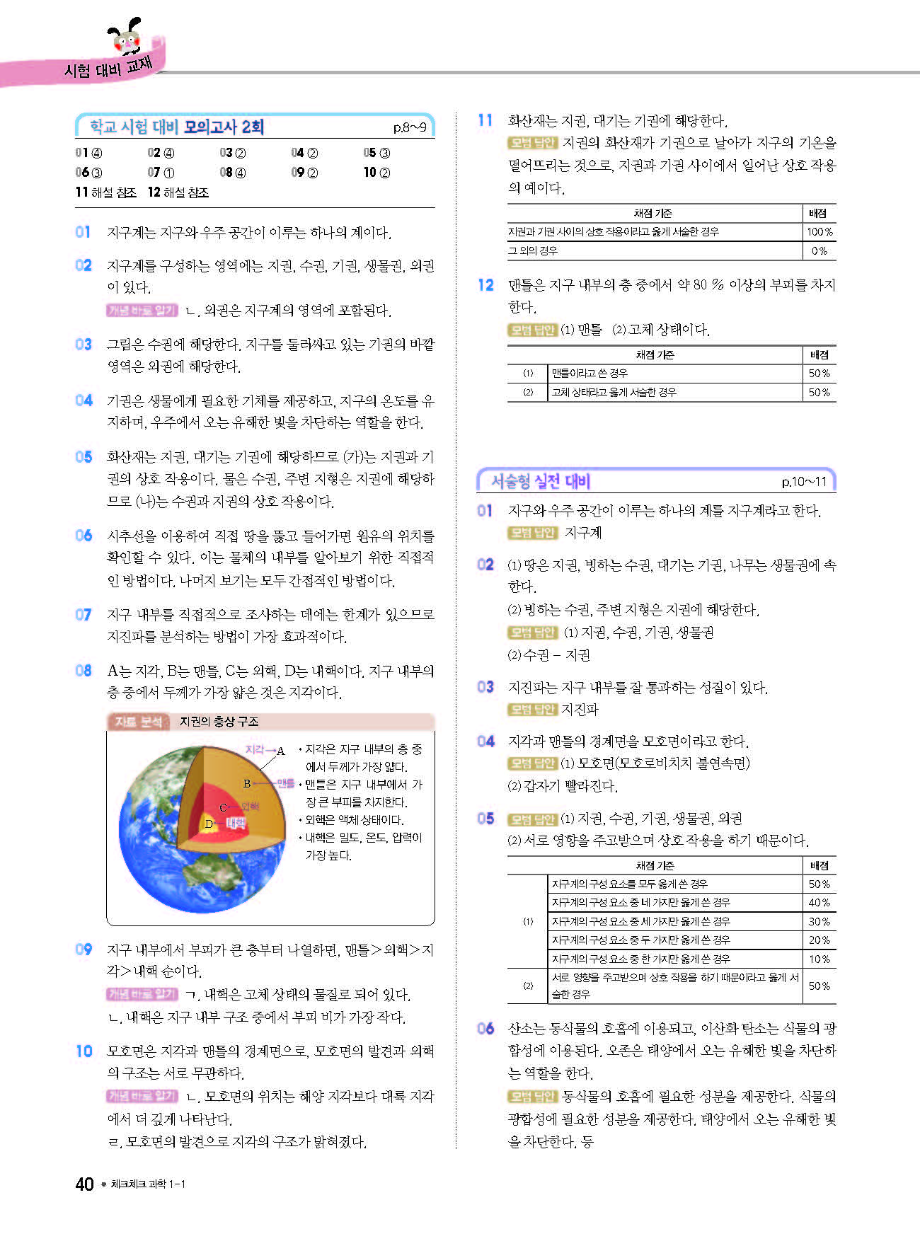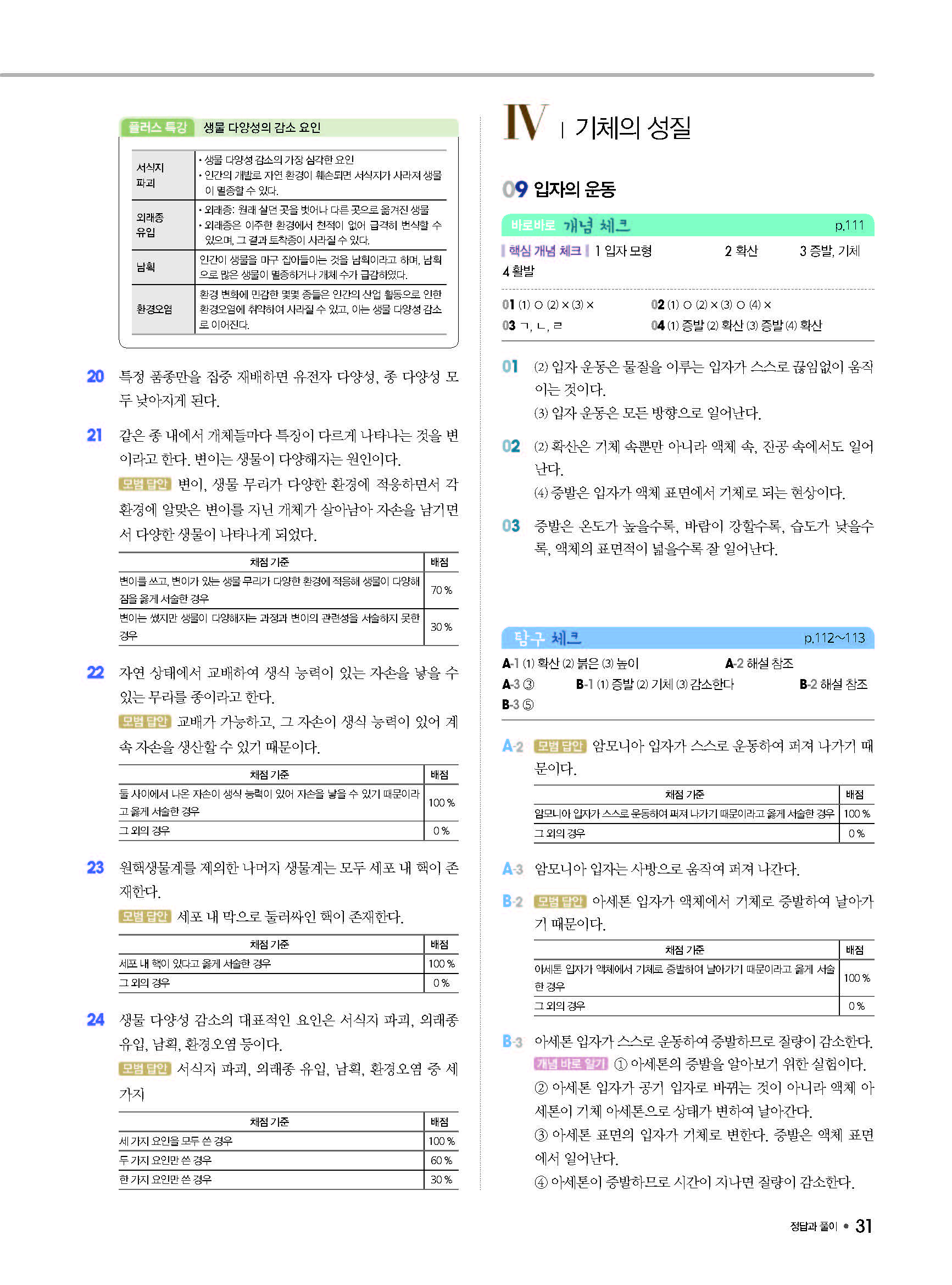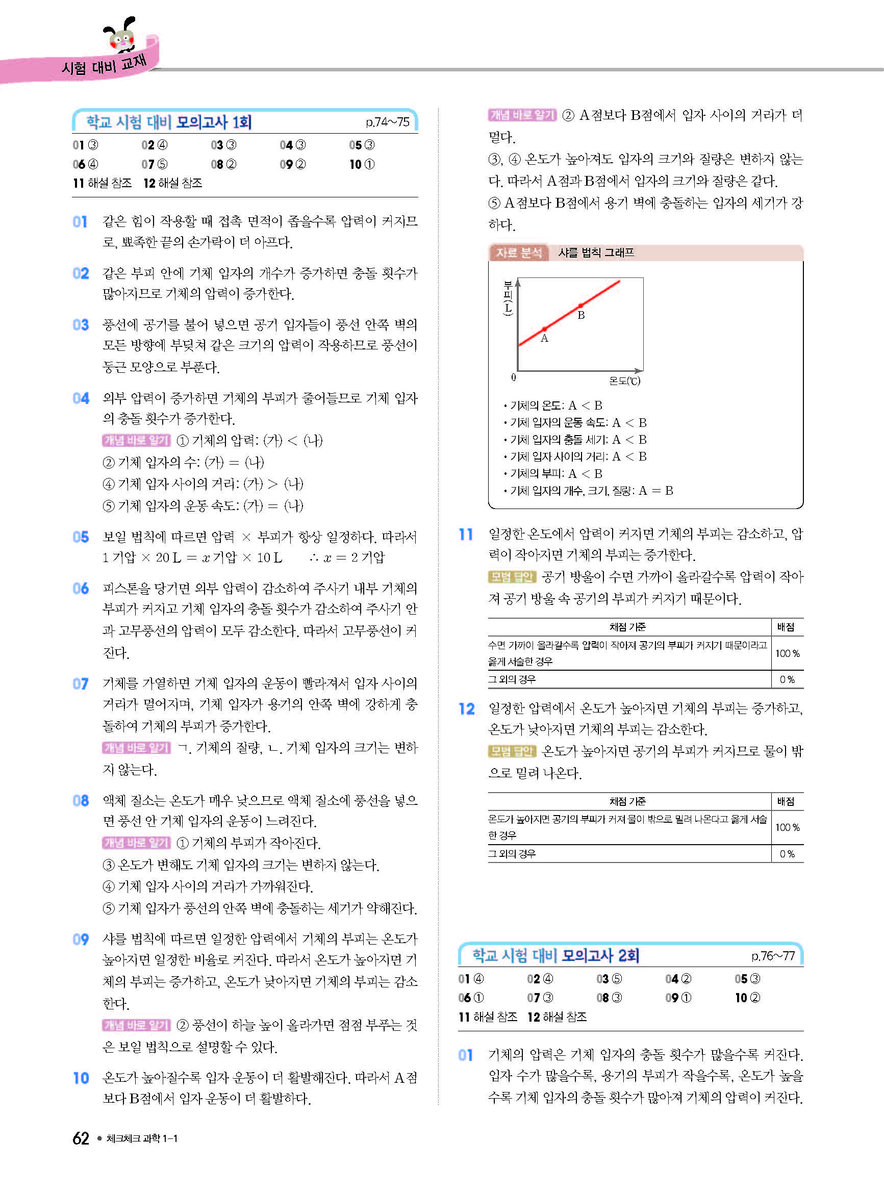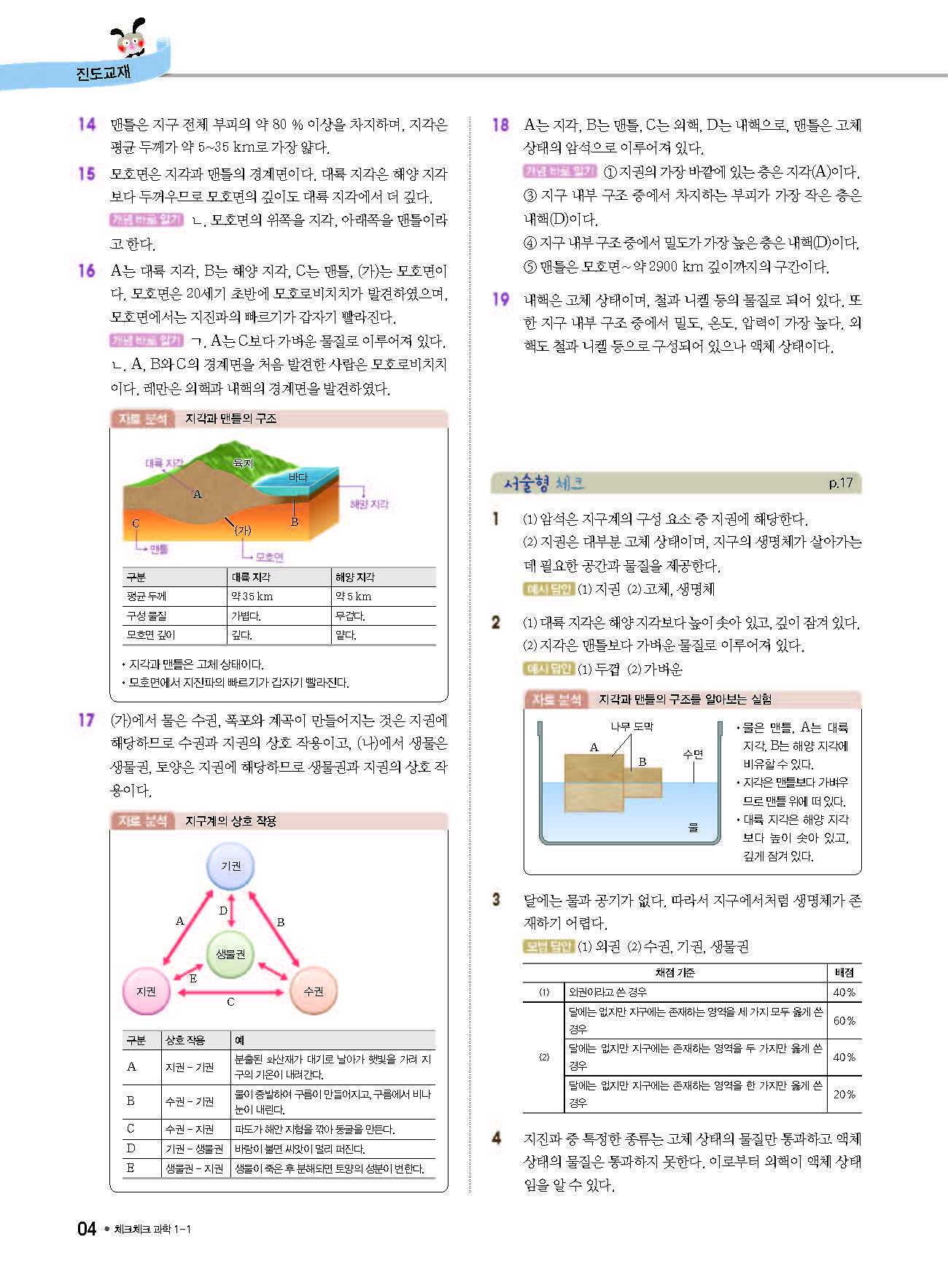 체크체크 중등과학 중1상 1-1 답지 해설 사진답지 빠른답지 모바일최적화