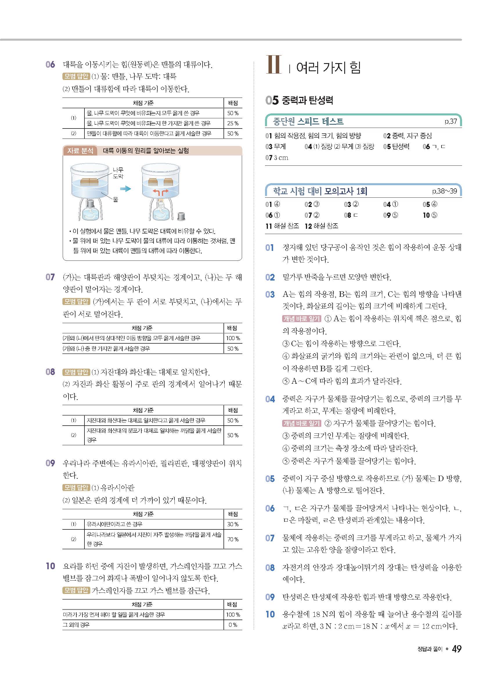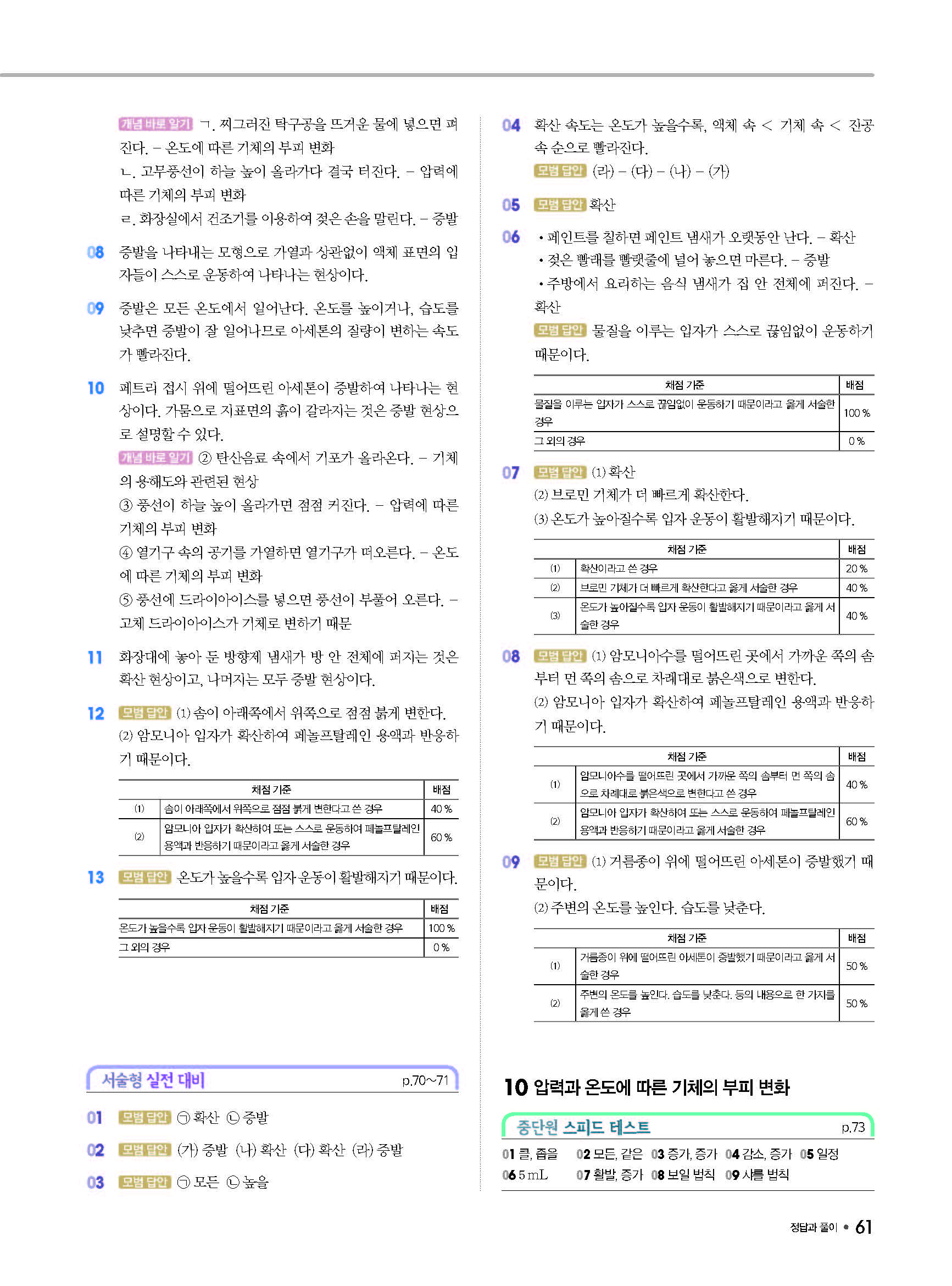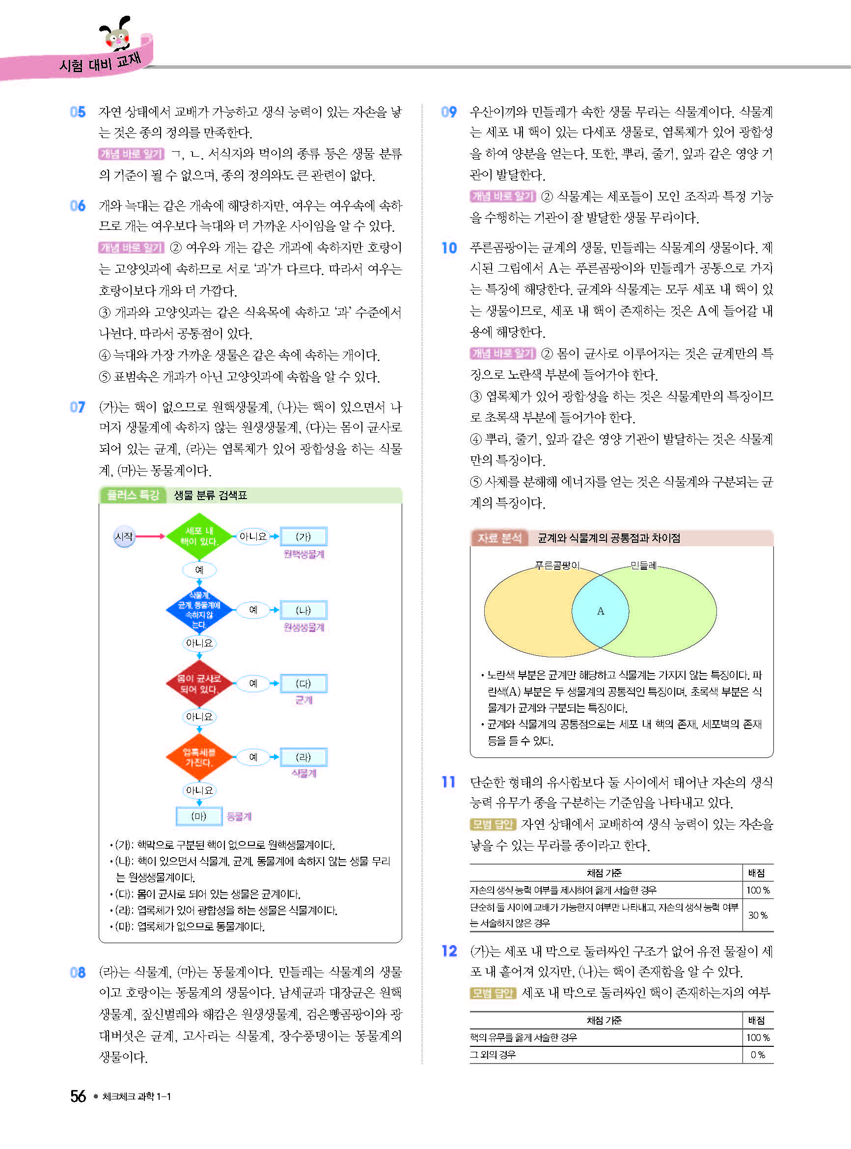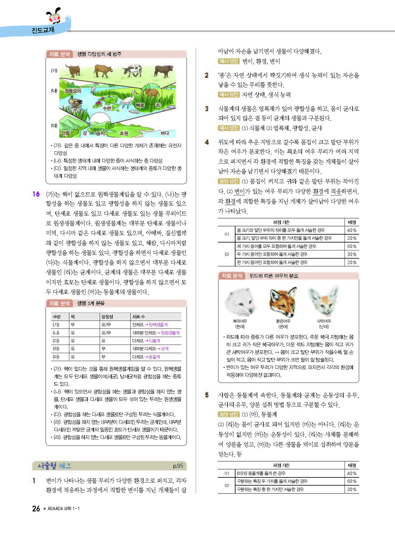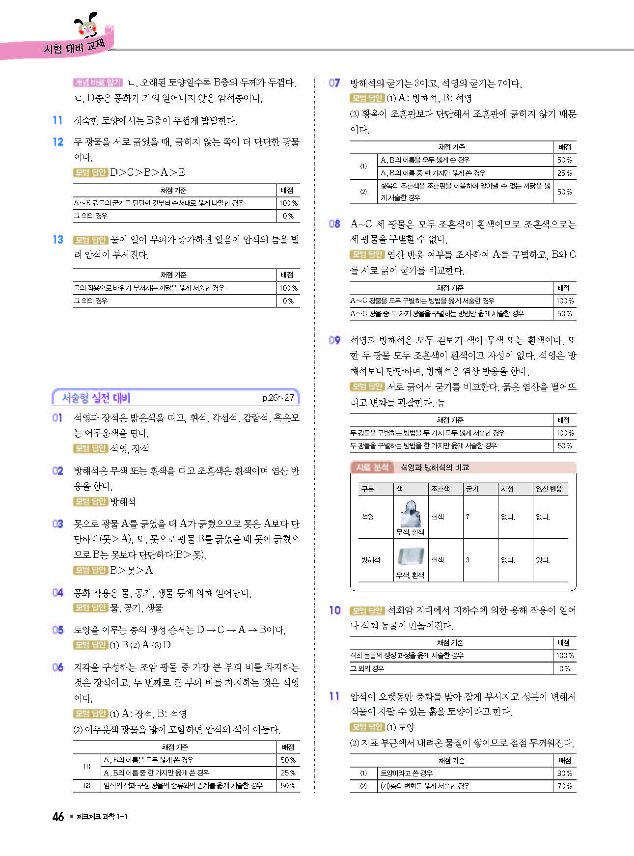 체크체크 중등과학 중1상 1-1 답지 해설 사진답지 빠른답지 모바일최적화