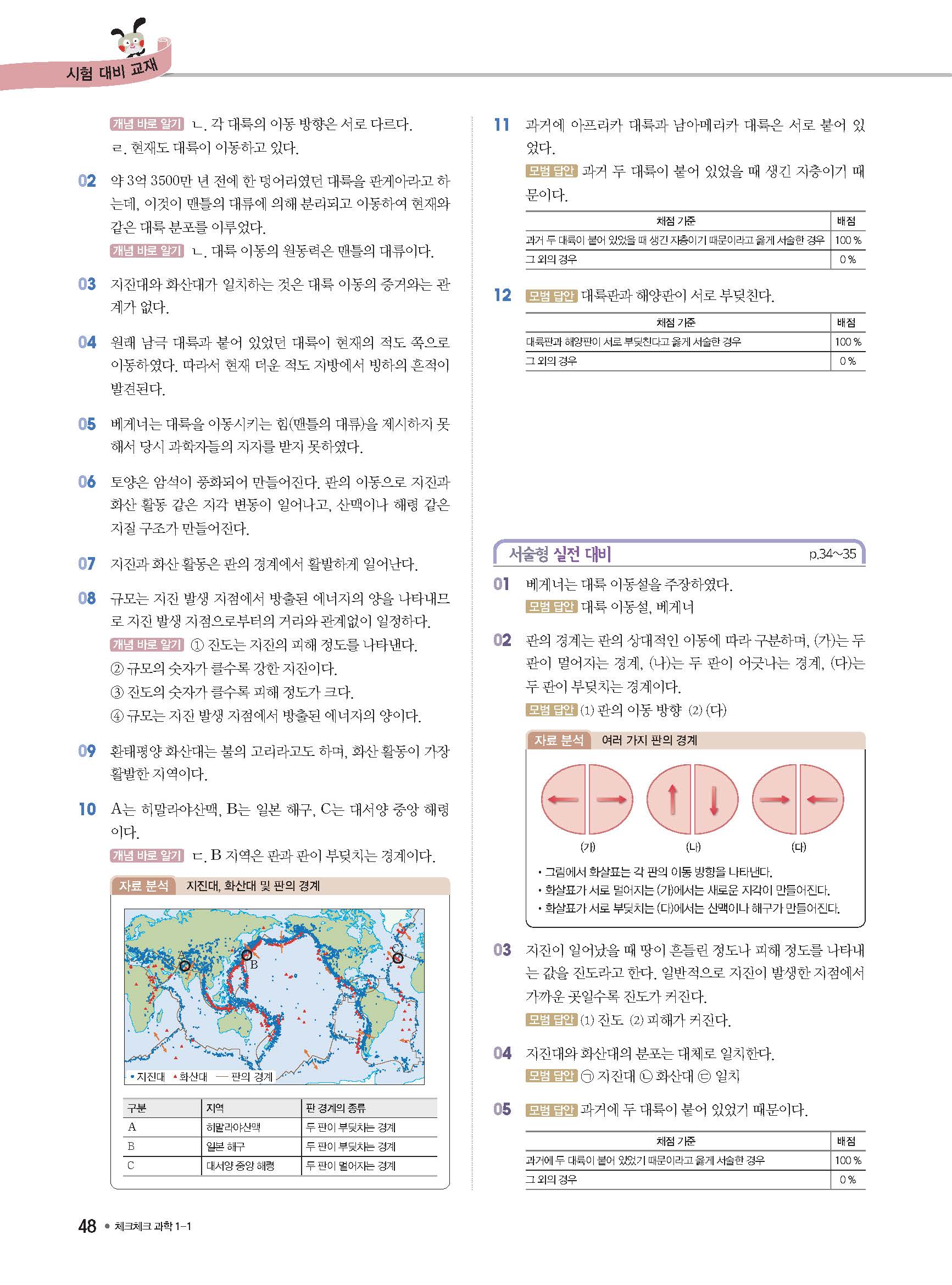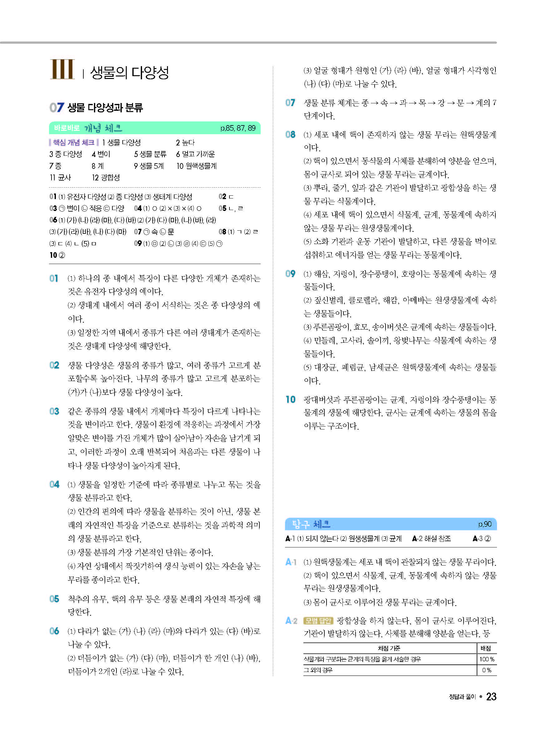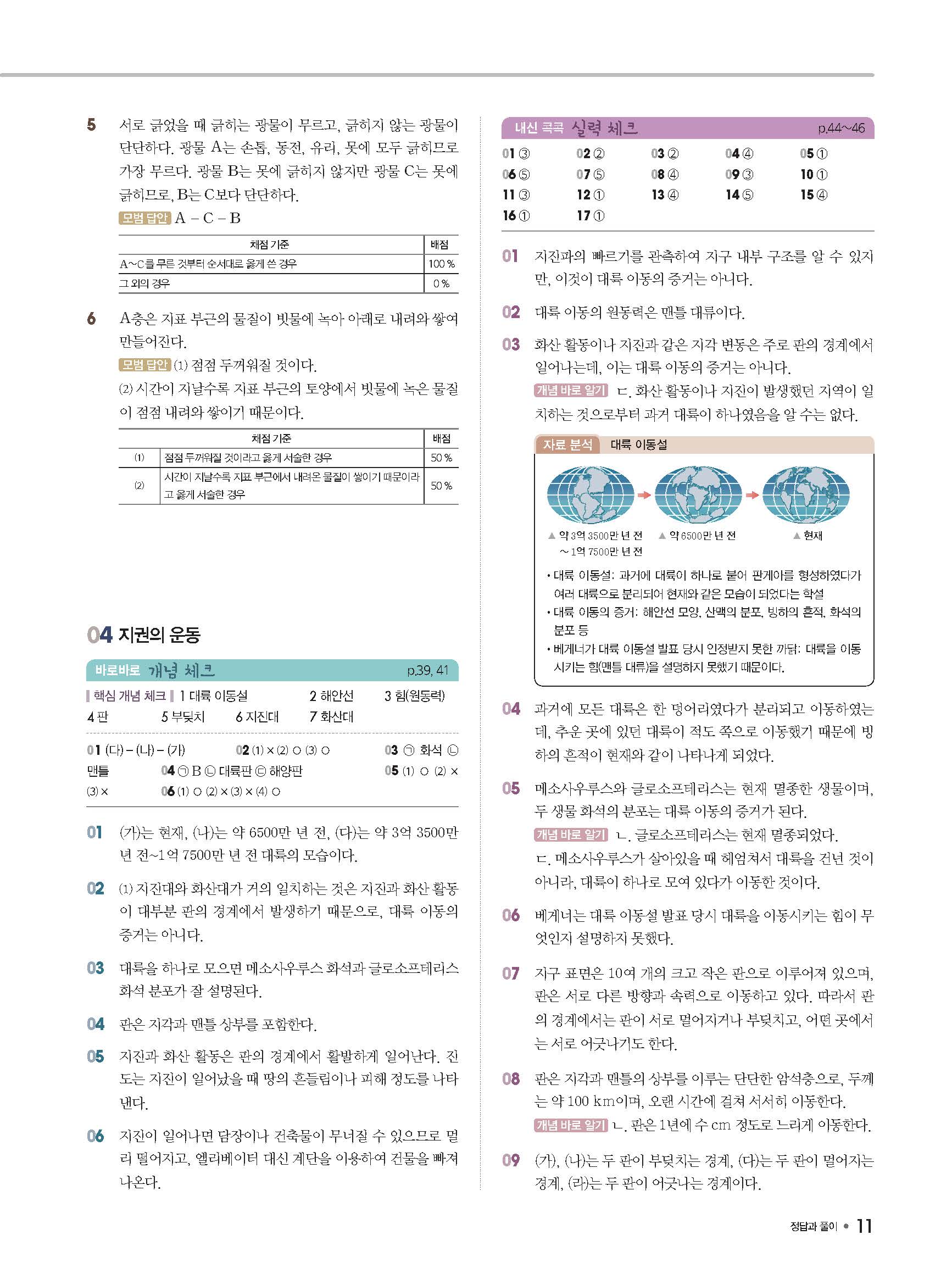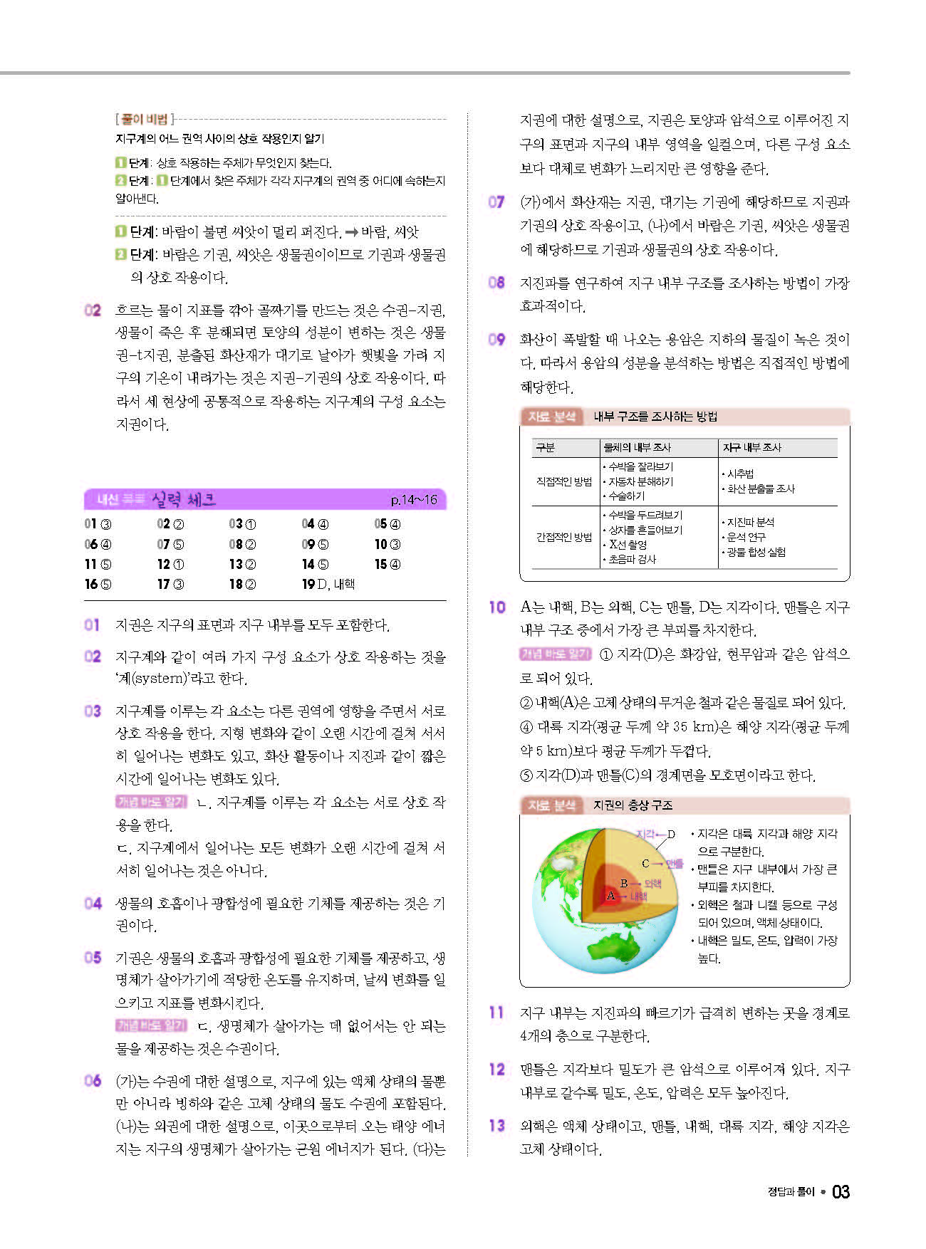 체크체크 중등과학 중1상 1-1 답지 해설 사진답지 빠른답지 모바일최적화