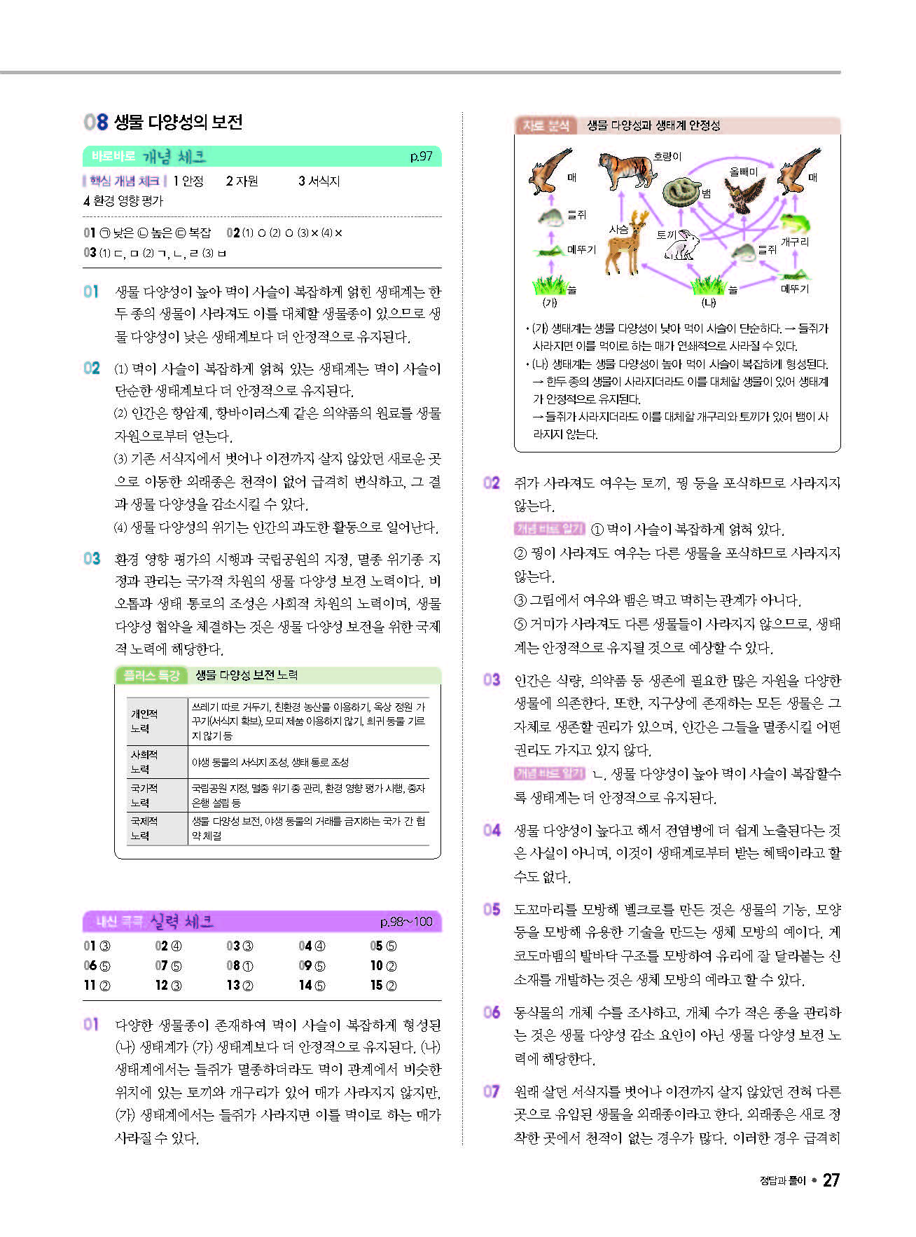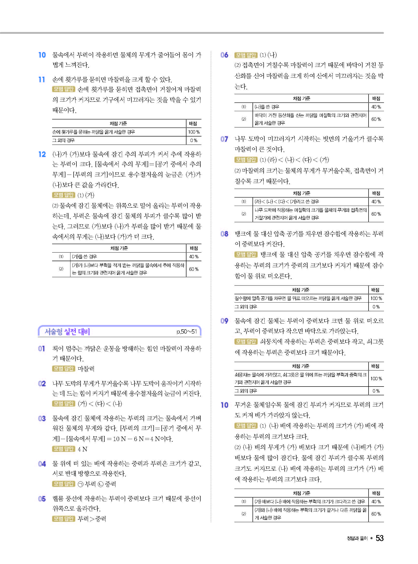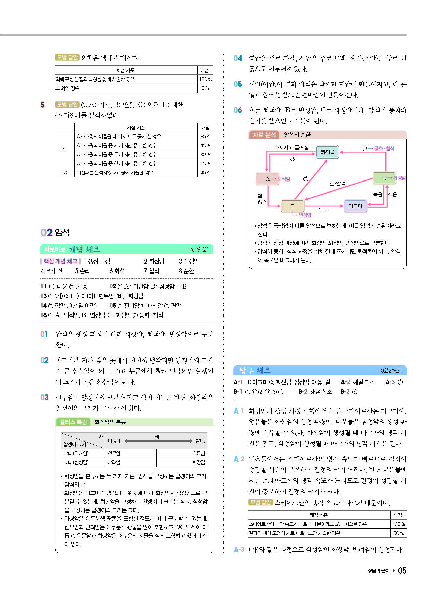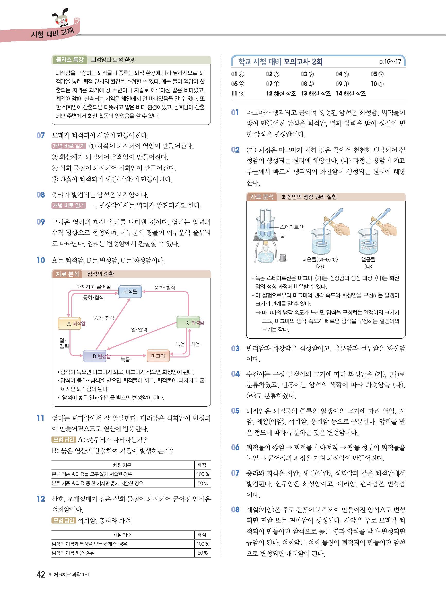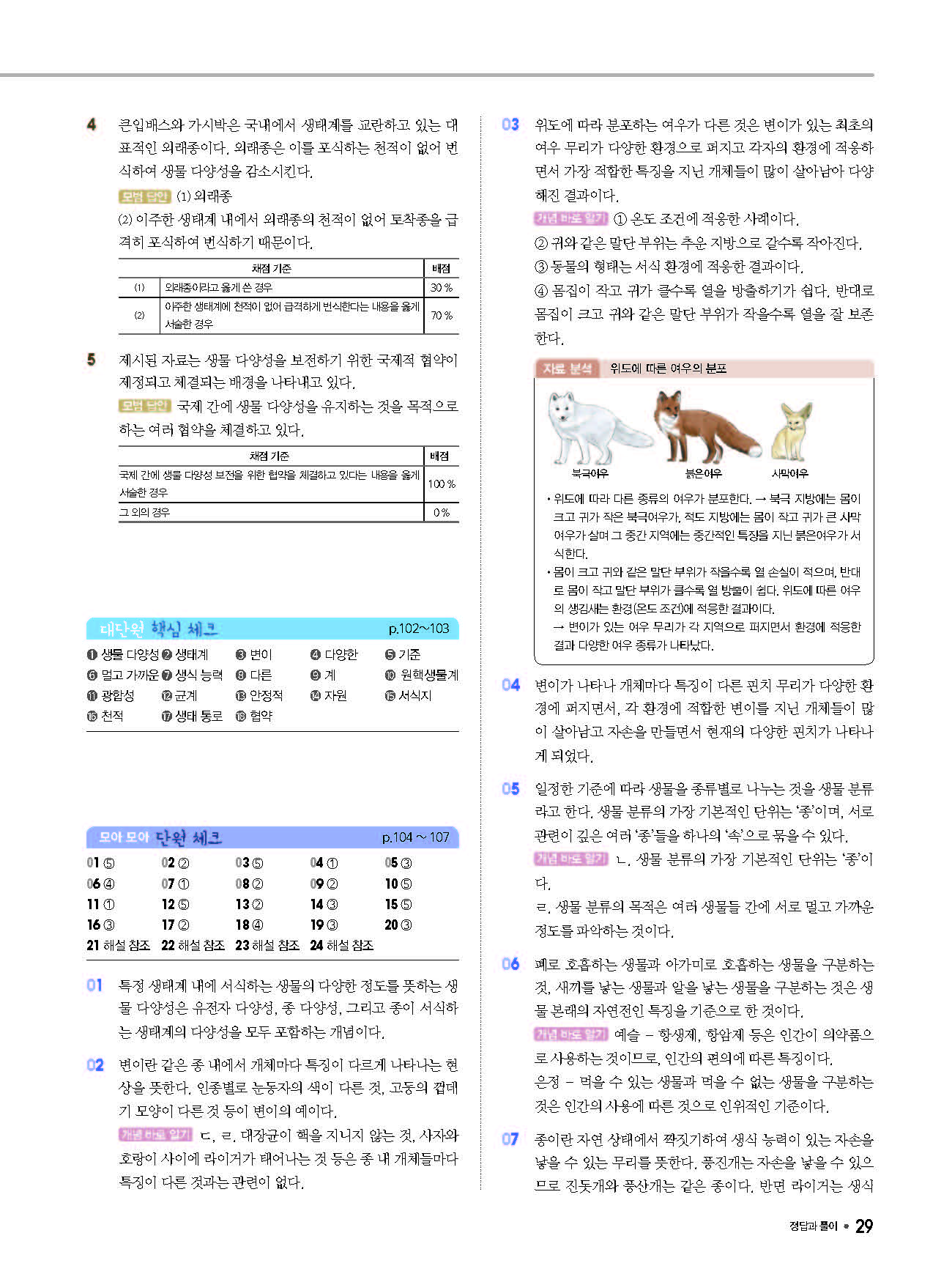 체크체크 중등과학 중1상 1-1 답지 해설 사진답지 빠른답지 모바일최적화