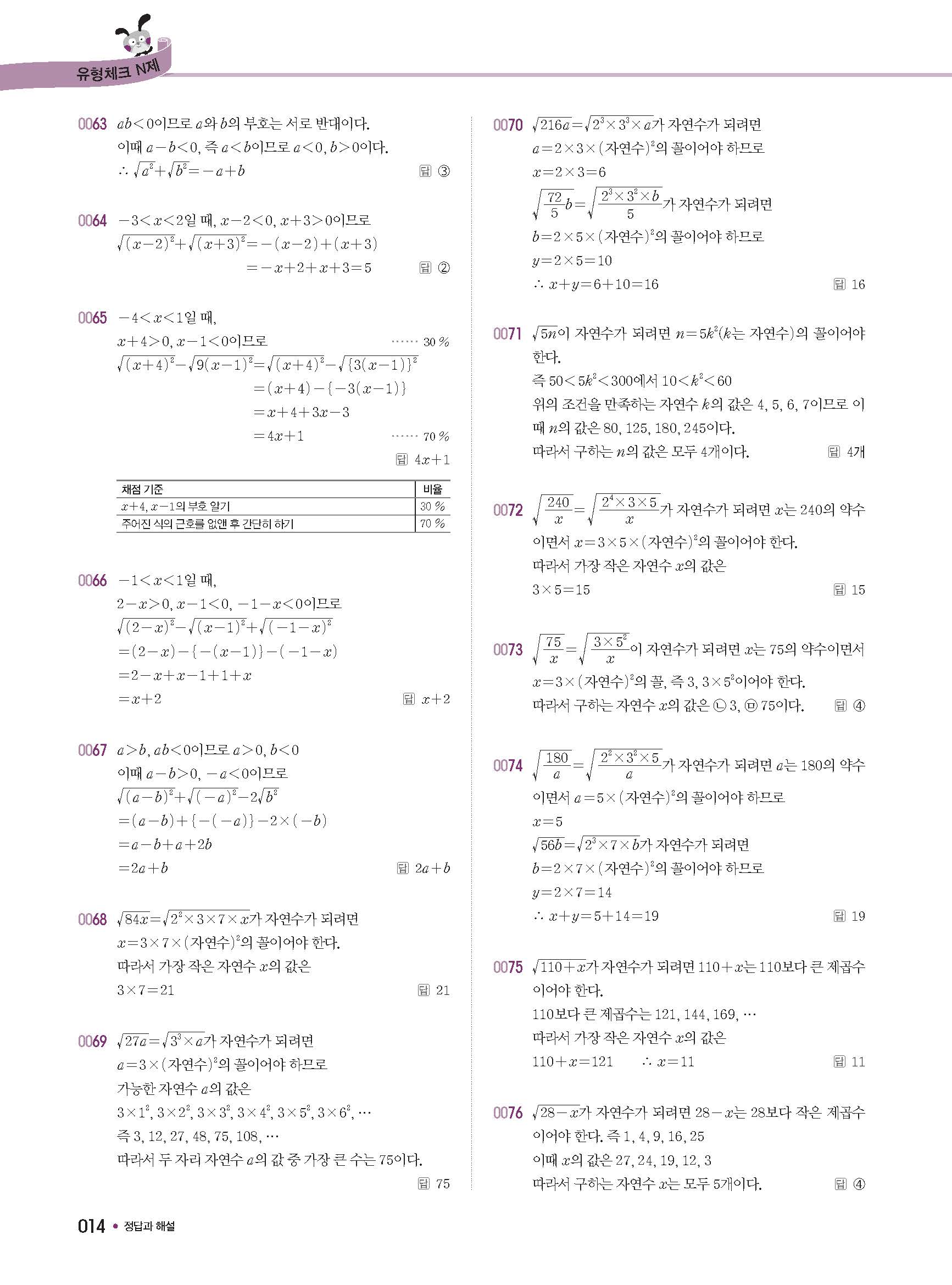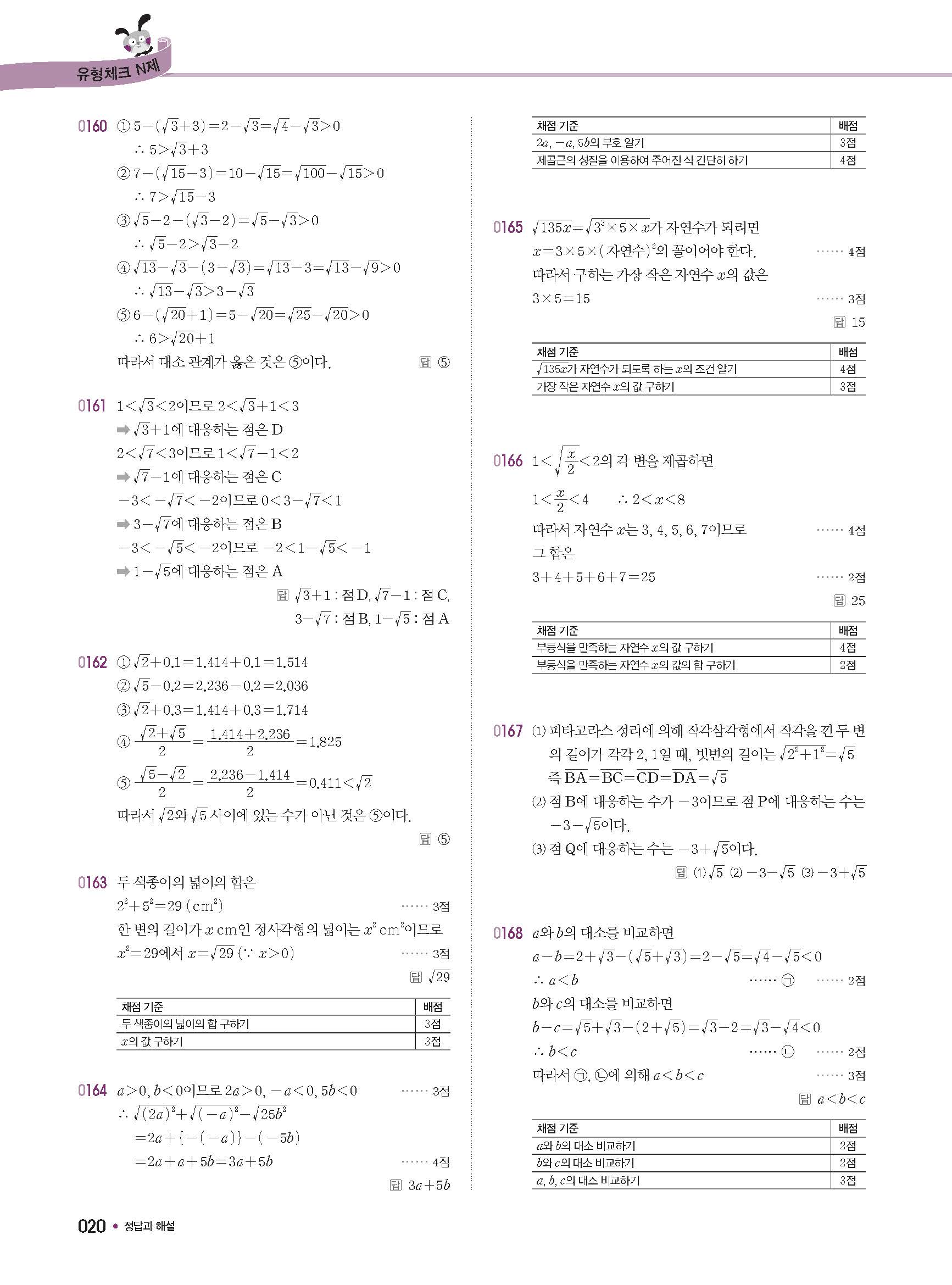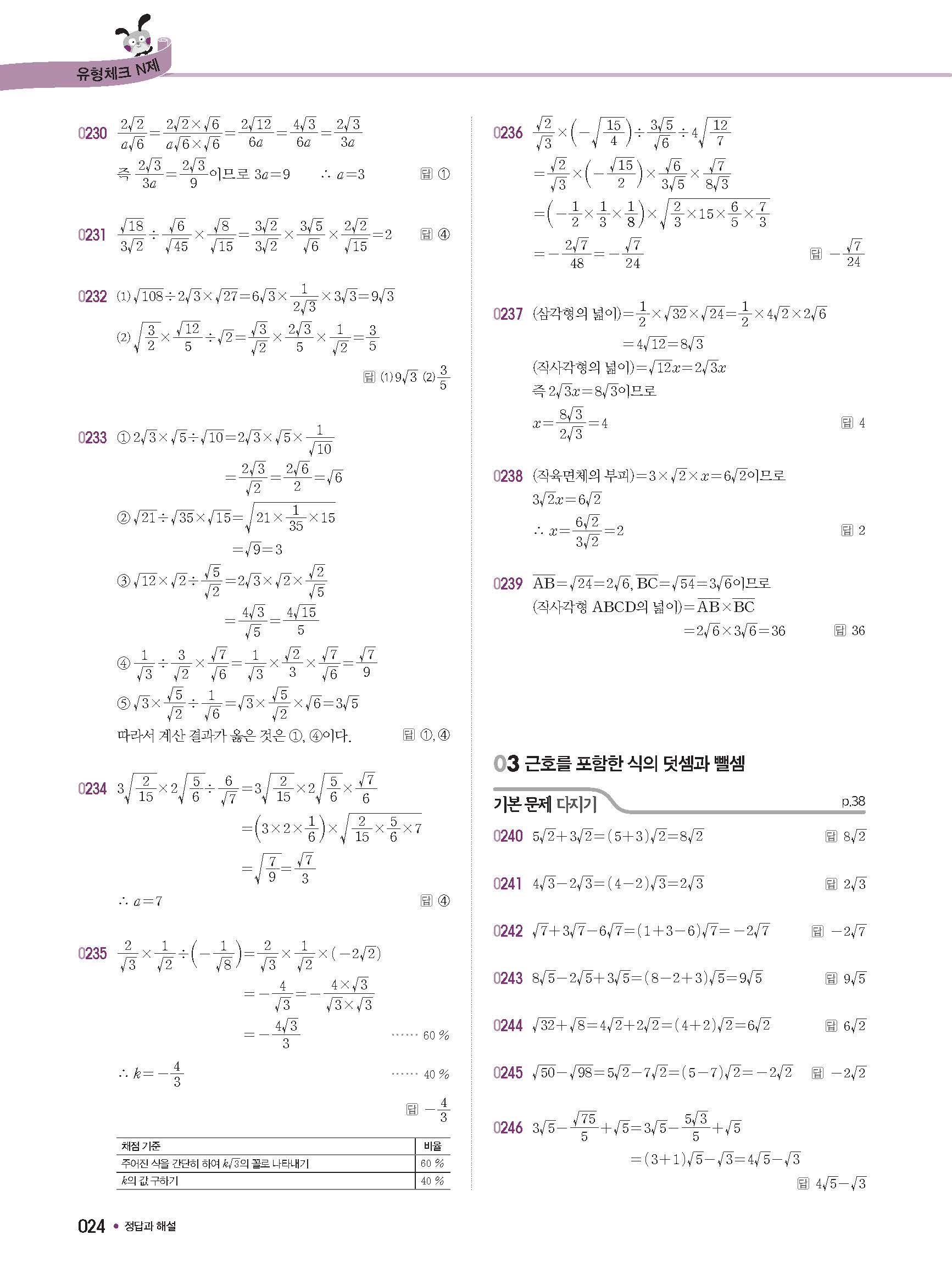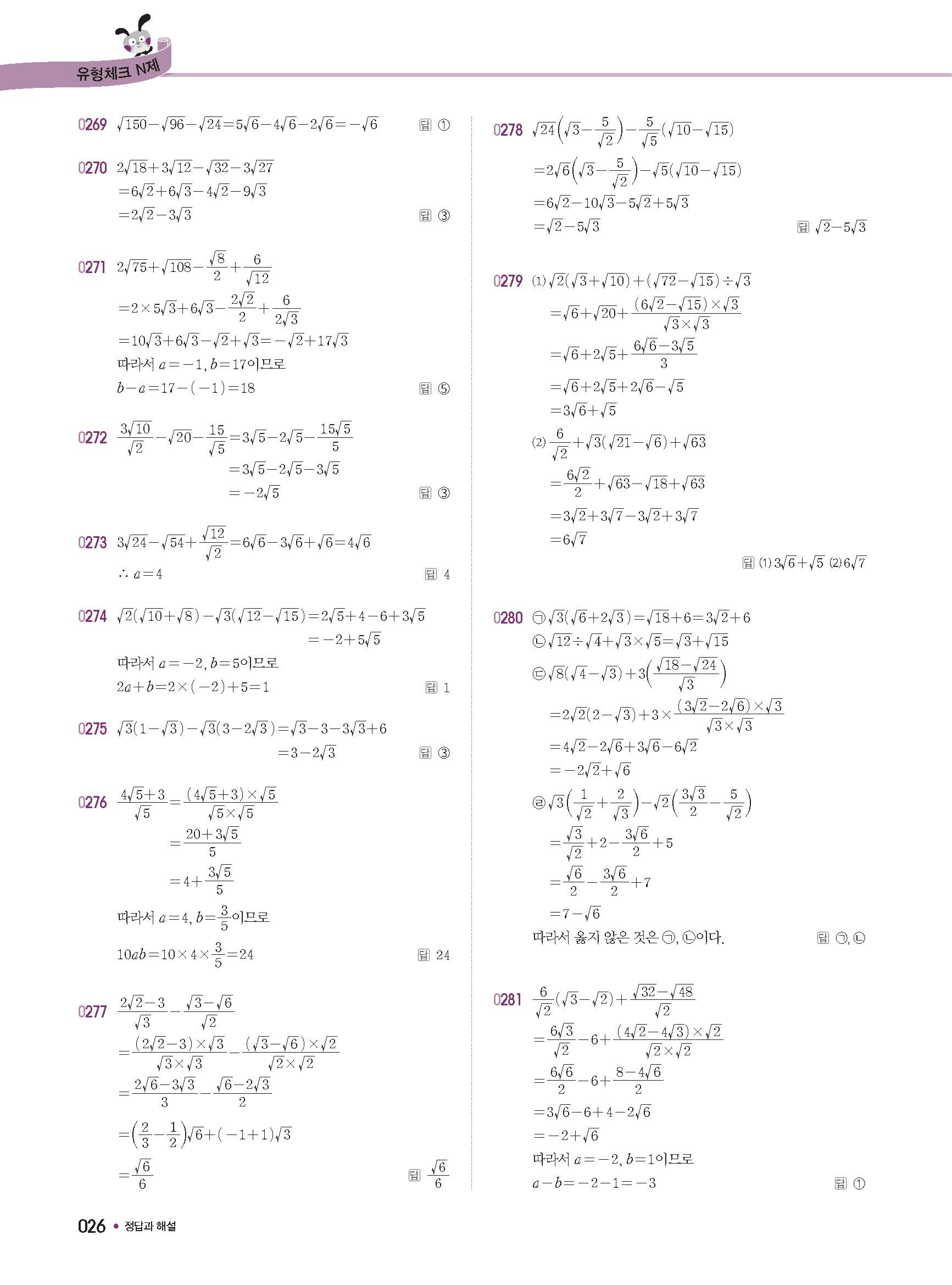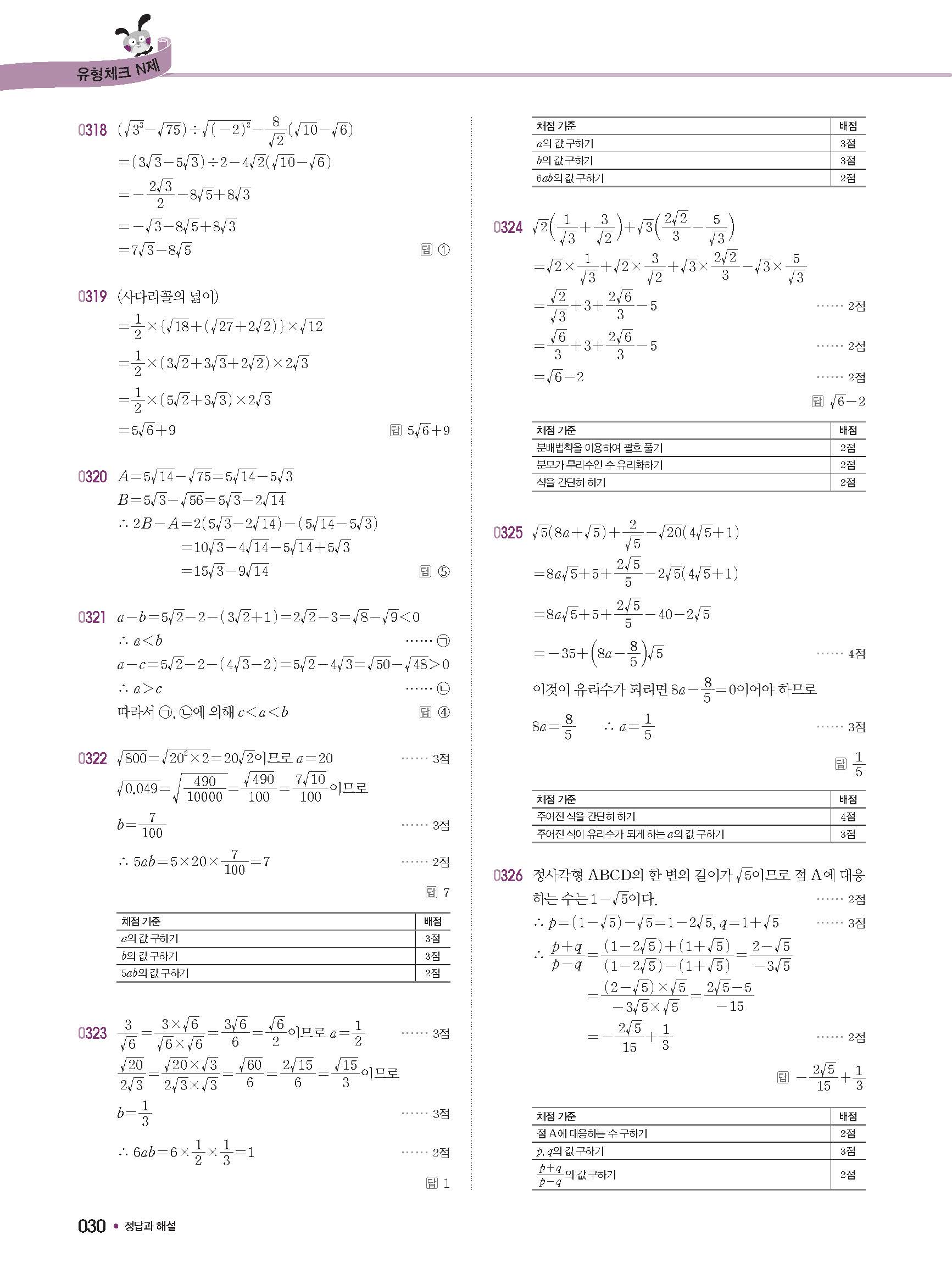 체크체크 중등수학 유형엔제 중3상 3-1 답지 해설 사진답지 빠른답지 모바일최적화