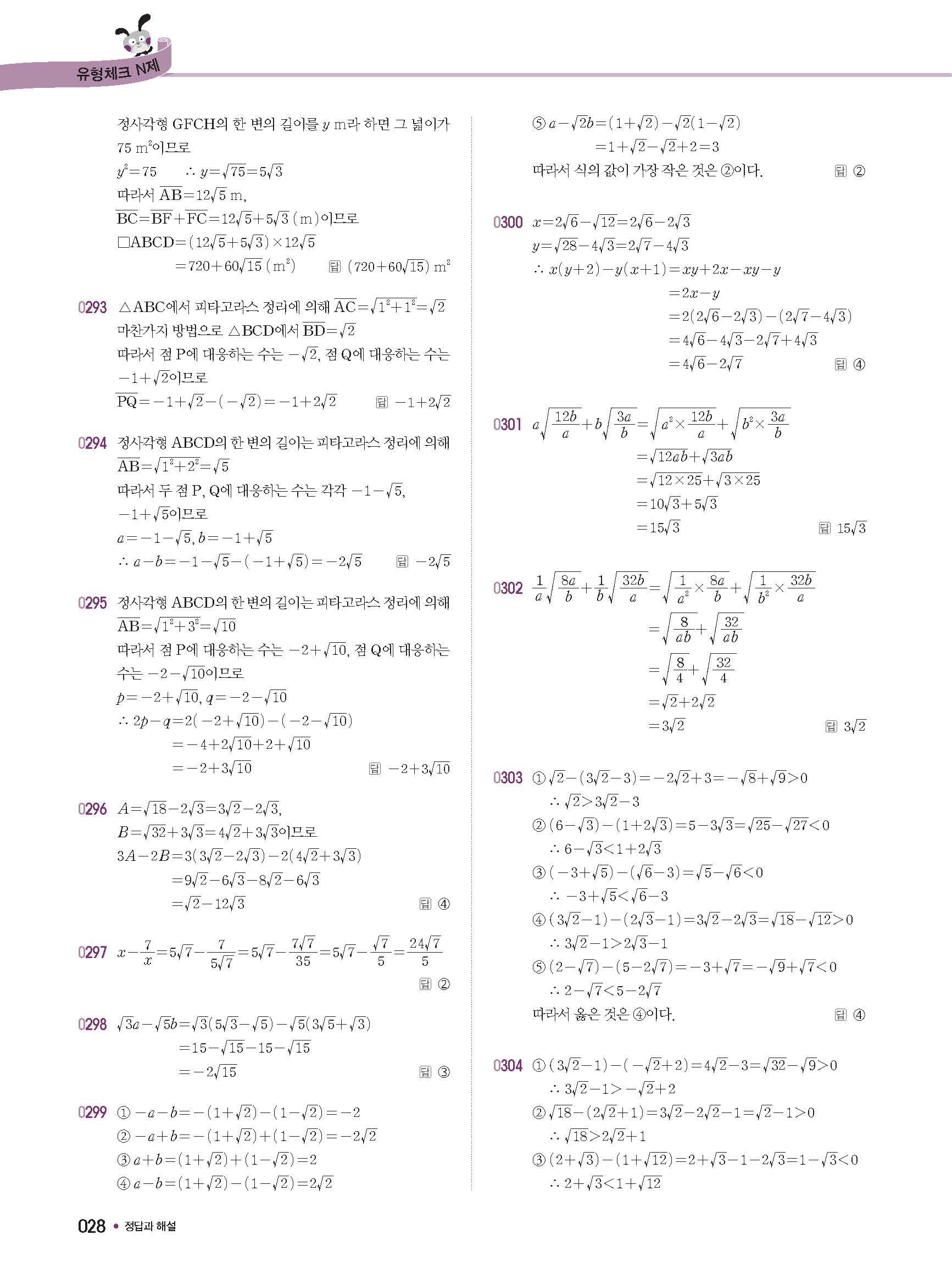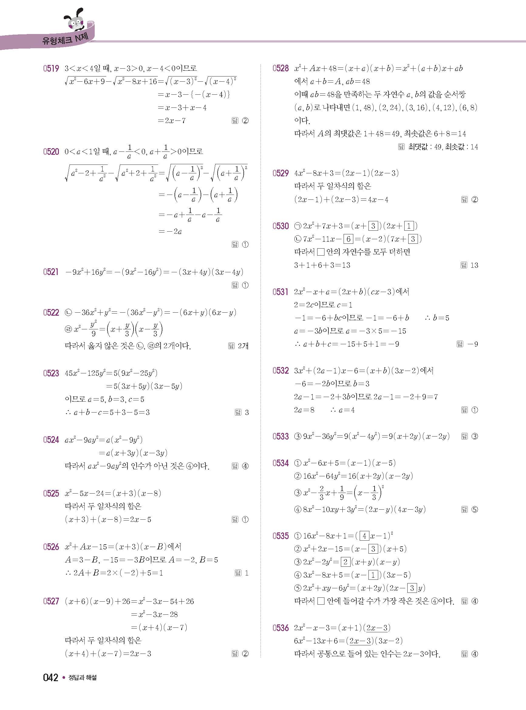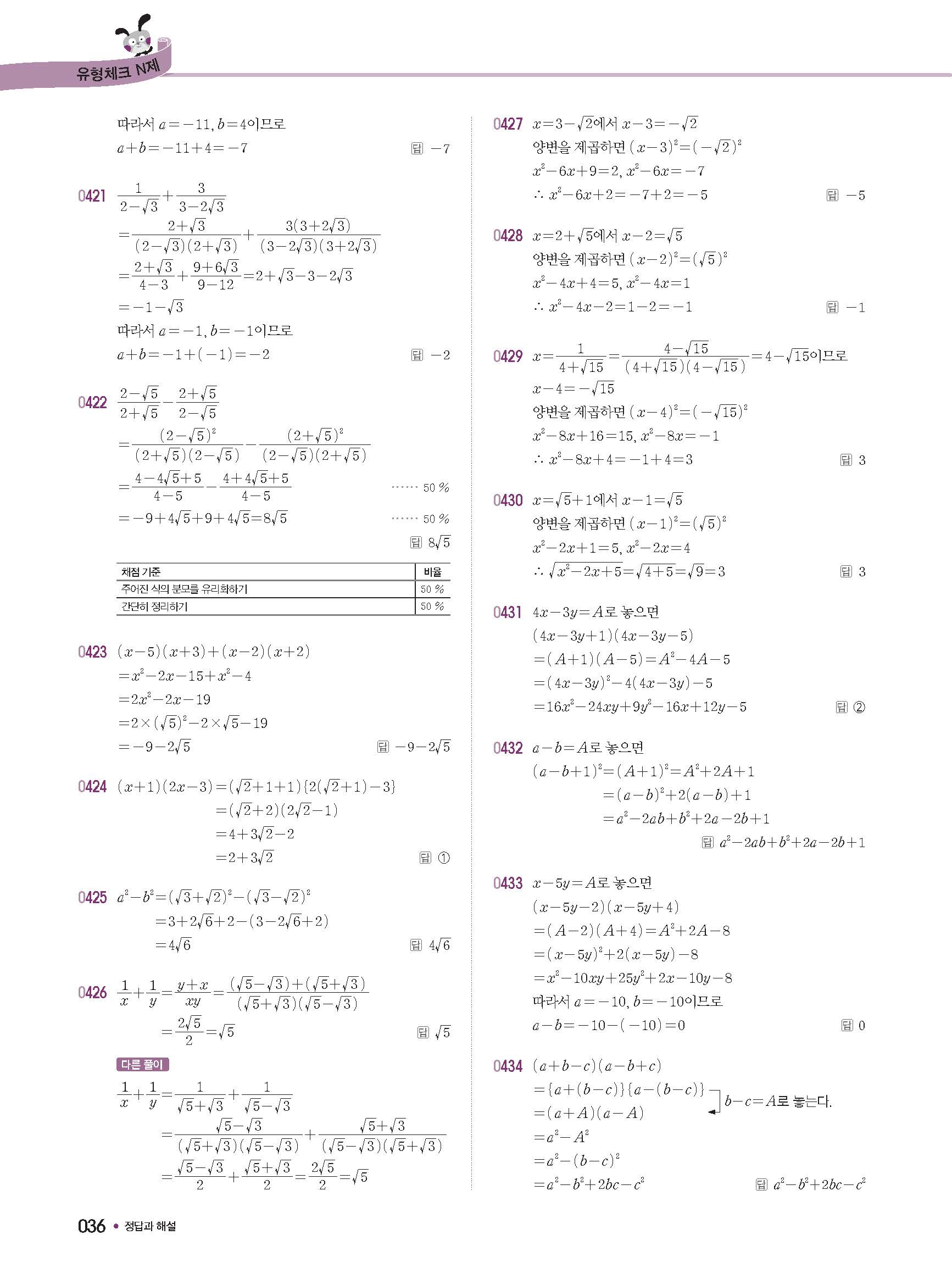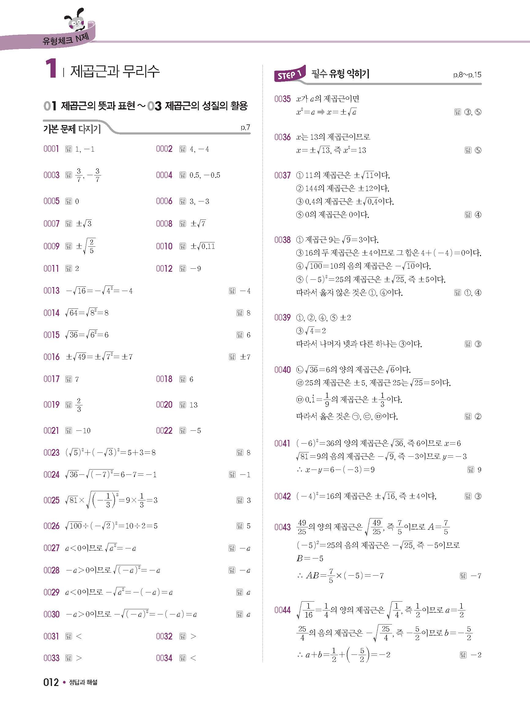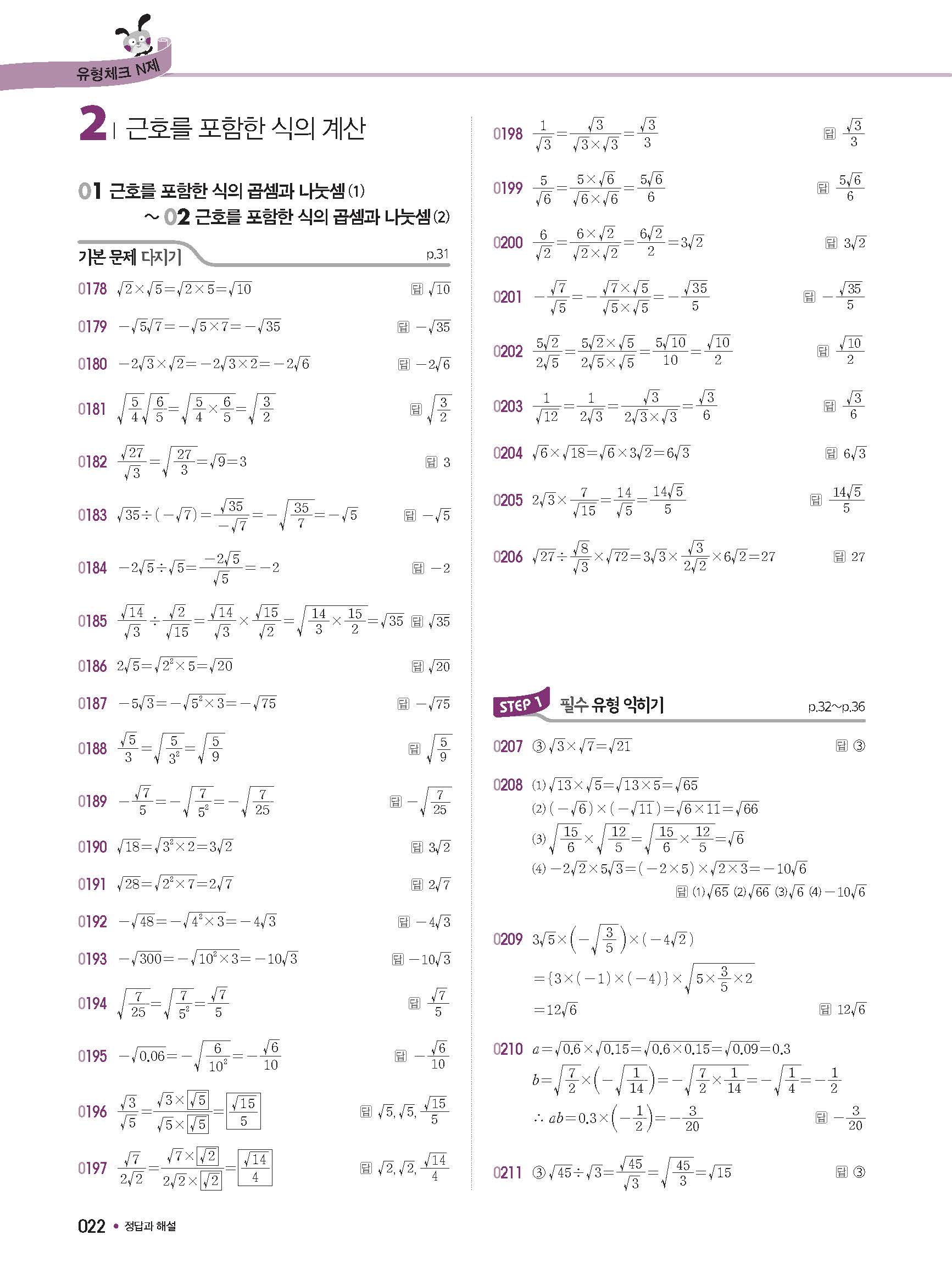 체크체크 중등수학 유형엔제 중3상 3-1 답지 해설 사진답지 빠른답지 모바일최적화