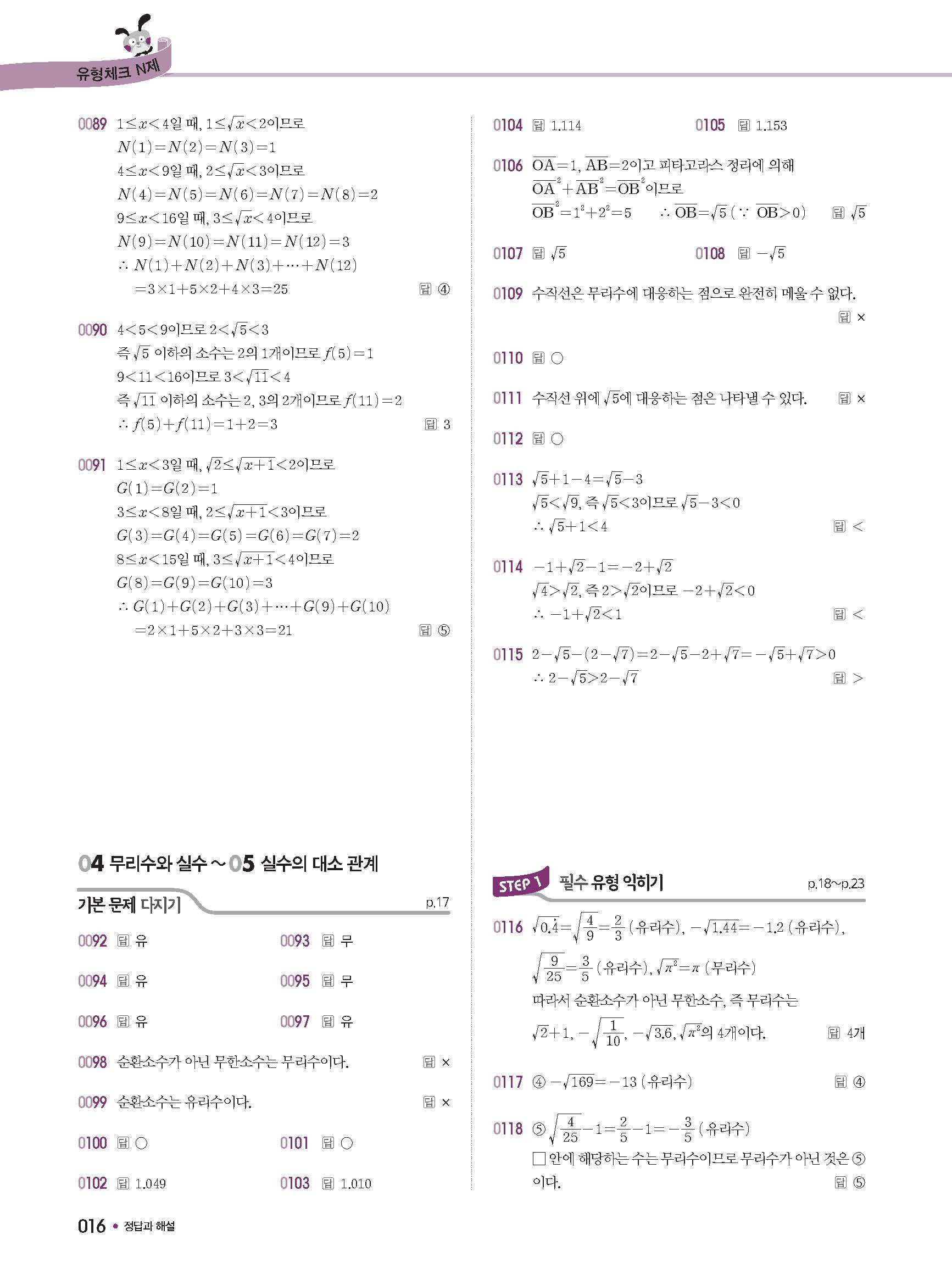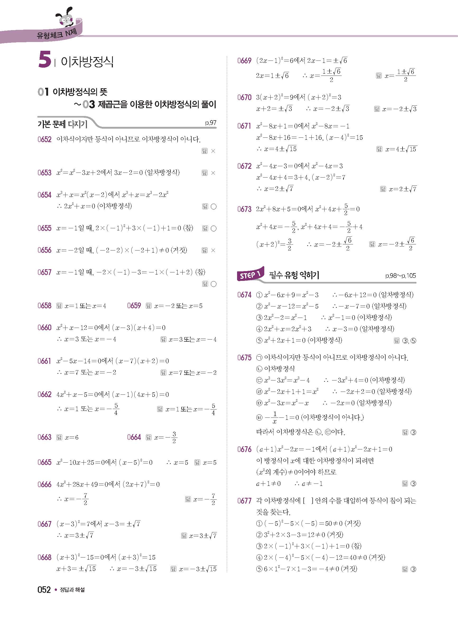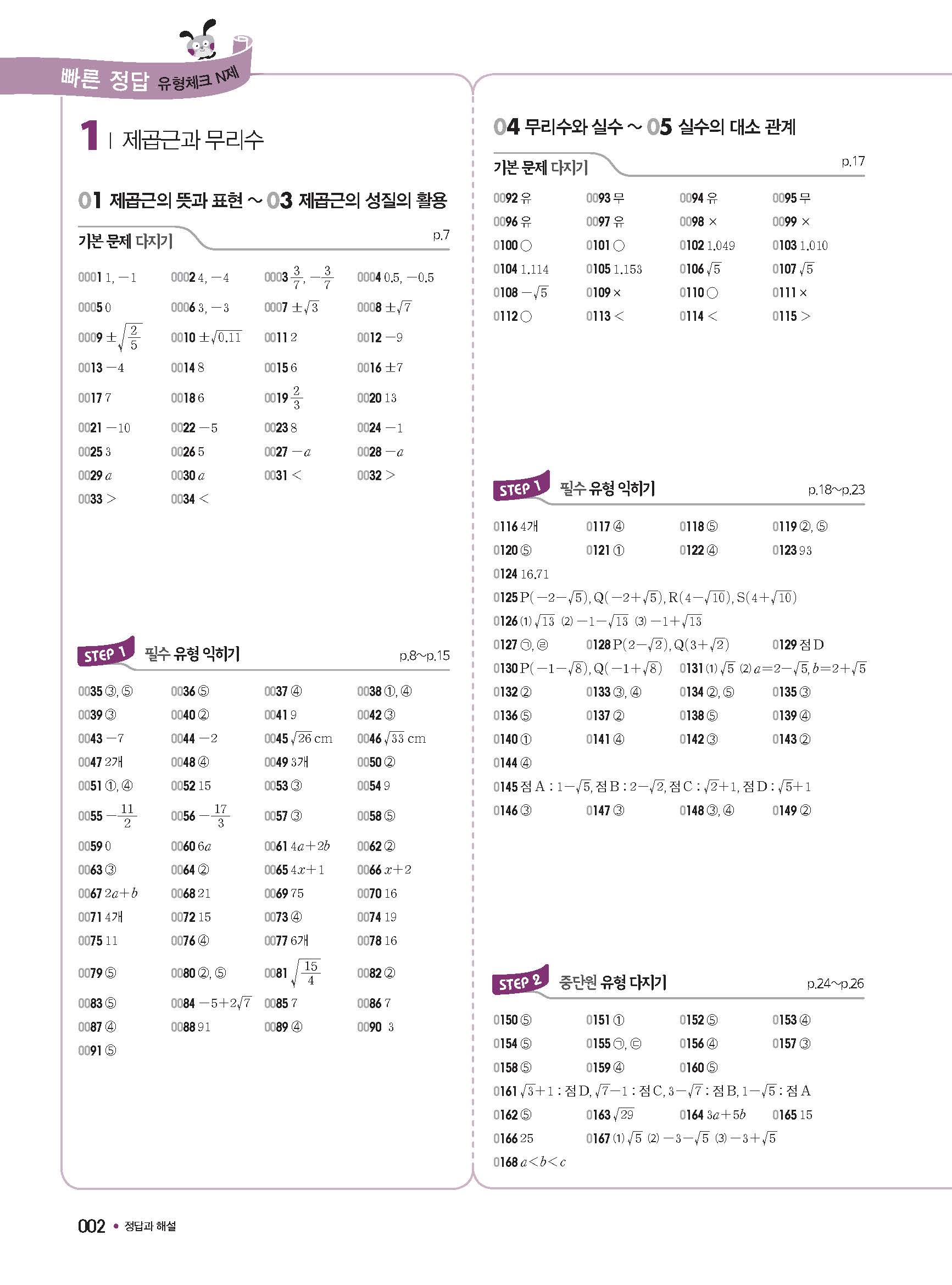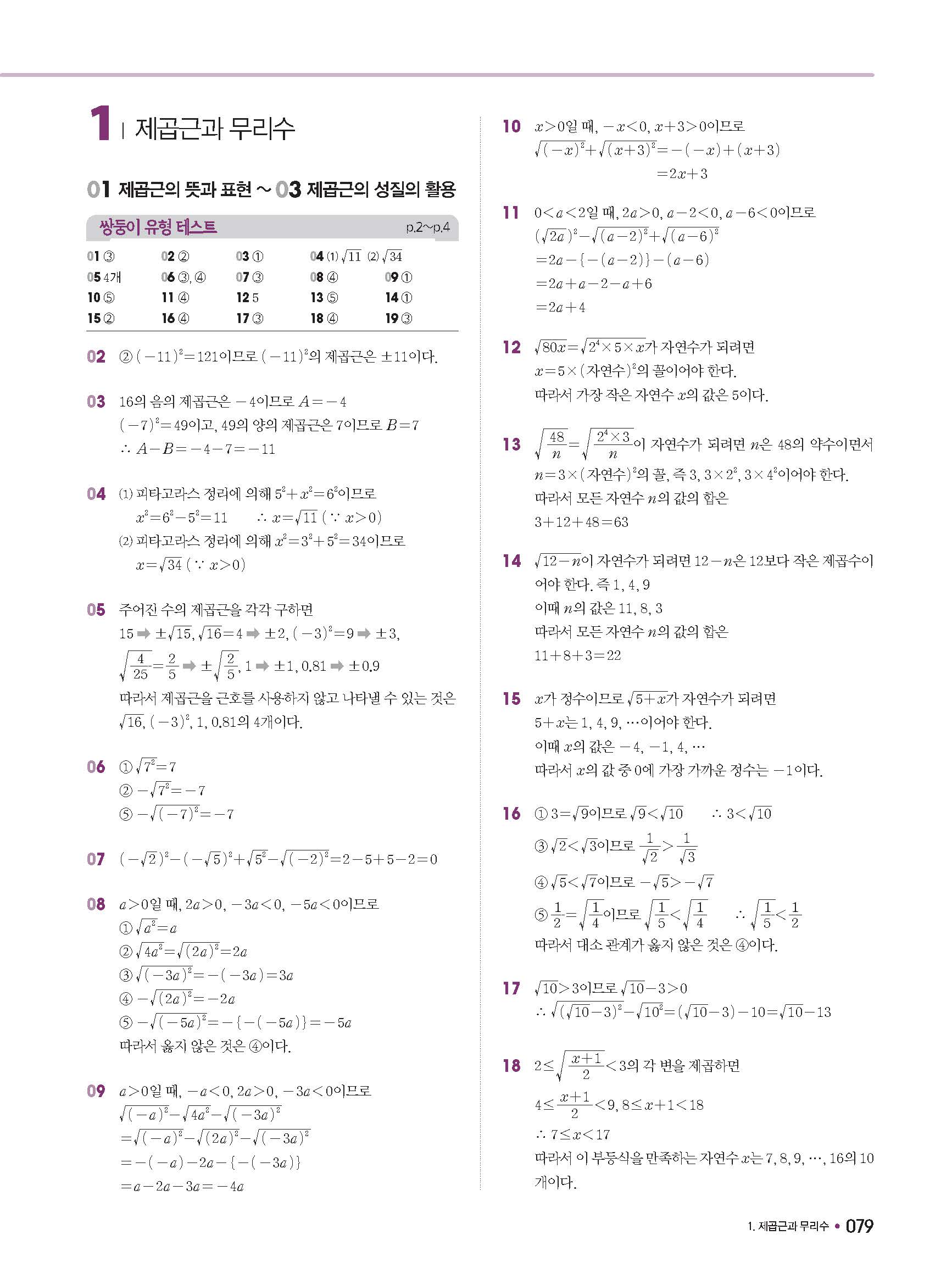 체크체크 중등수학 유형엔제 중3상 3-1 답지 해설 사진답지 빠른답지 모바일최적화