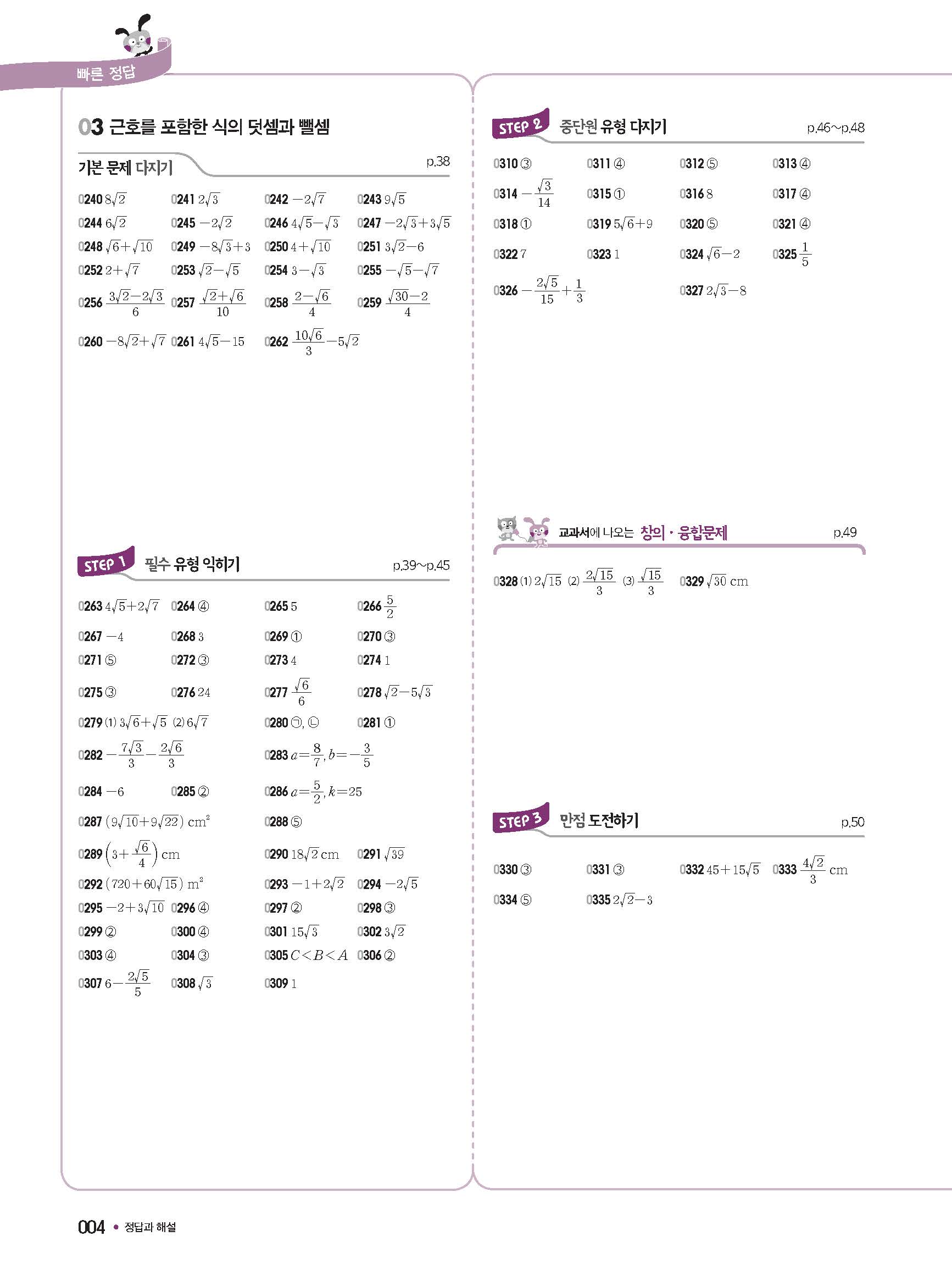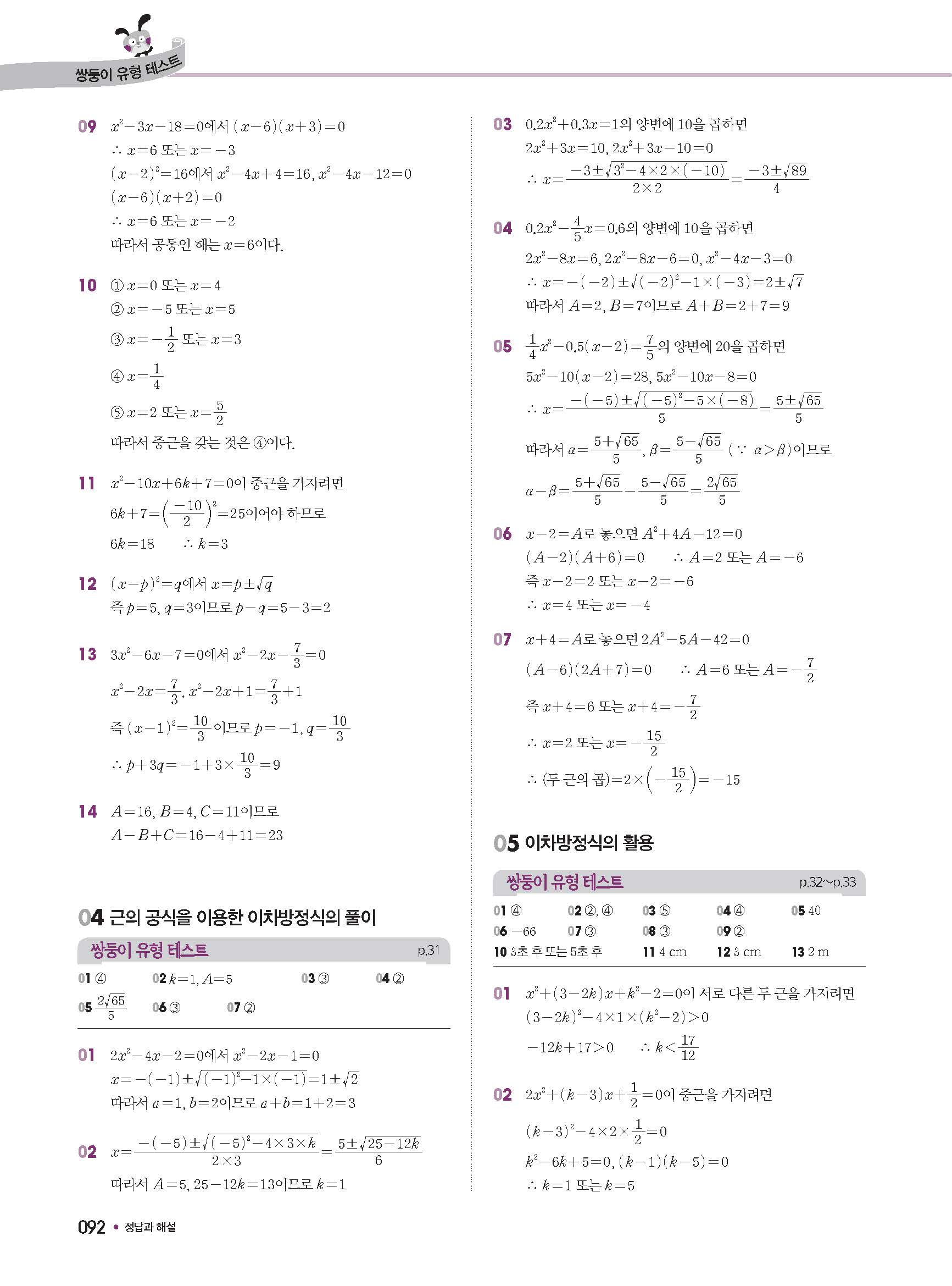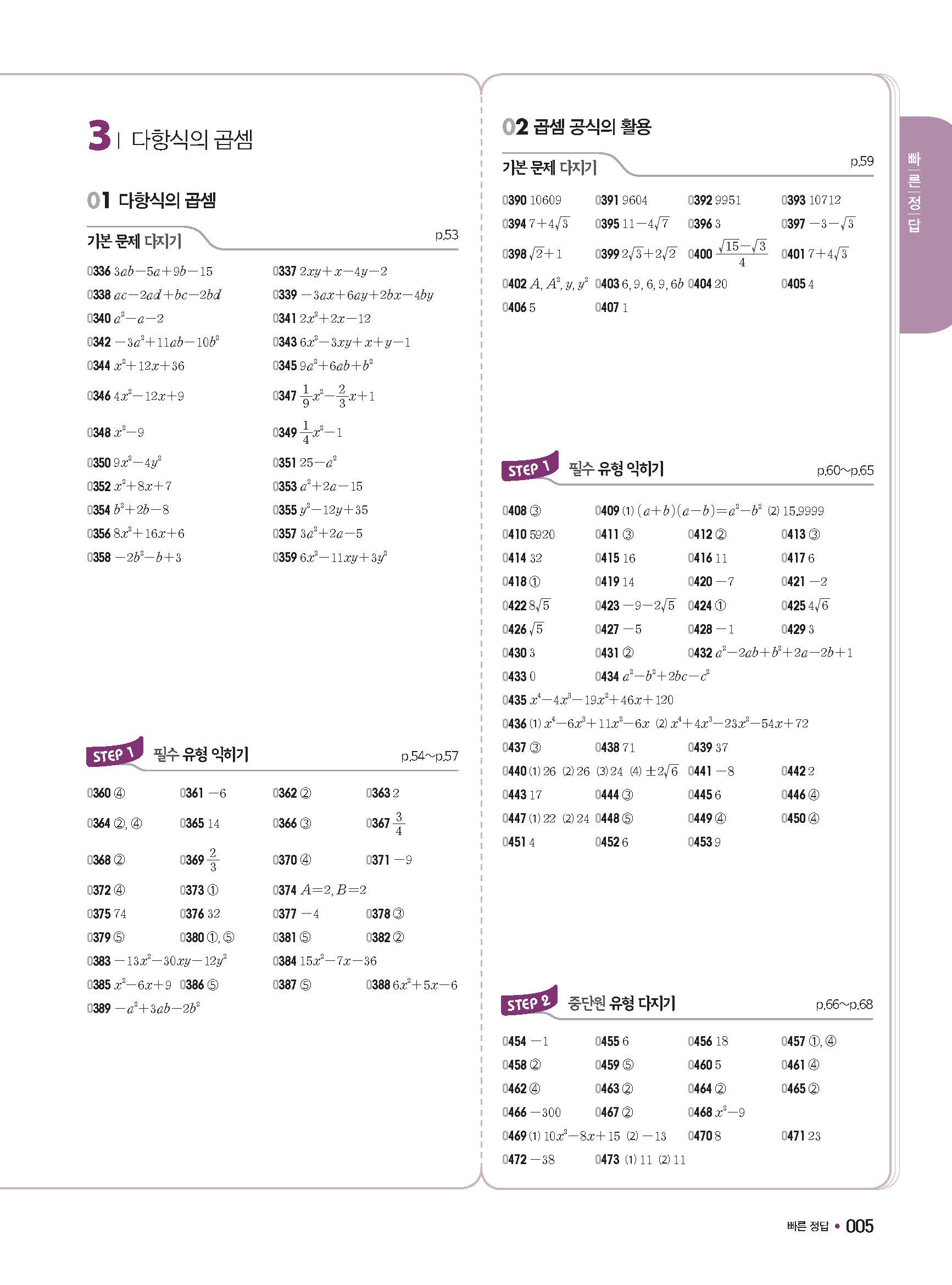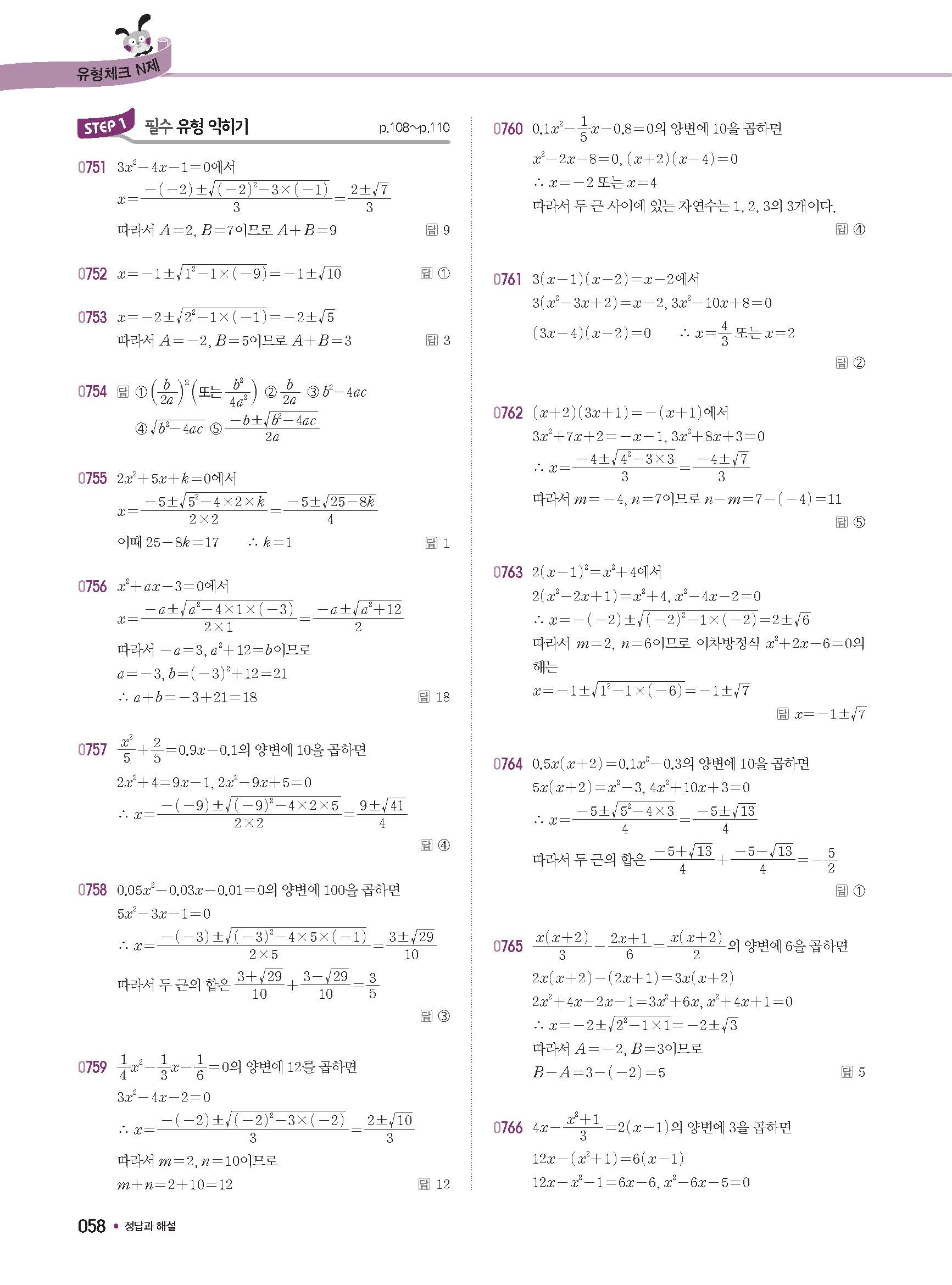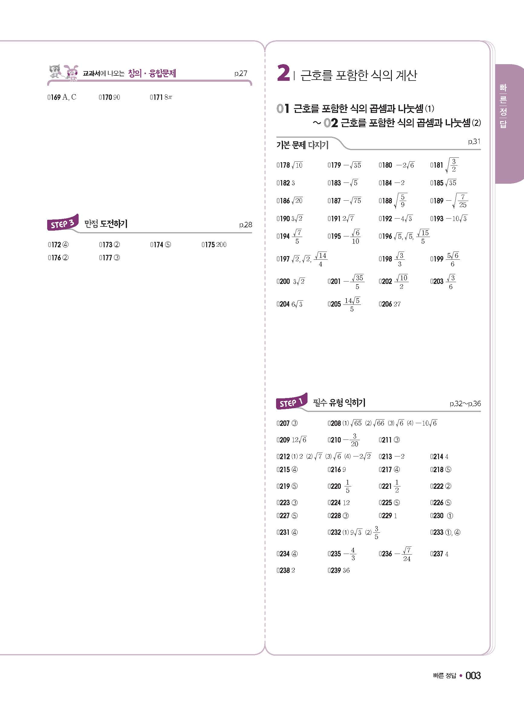체크체크 중등수학 유형엔제 중3상 3-1 답지 해설 사진답지 빠른답지 모바일최적화
