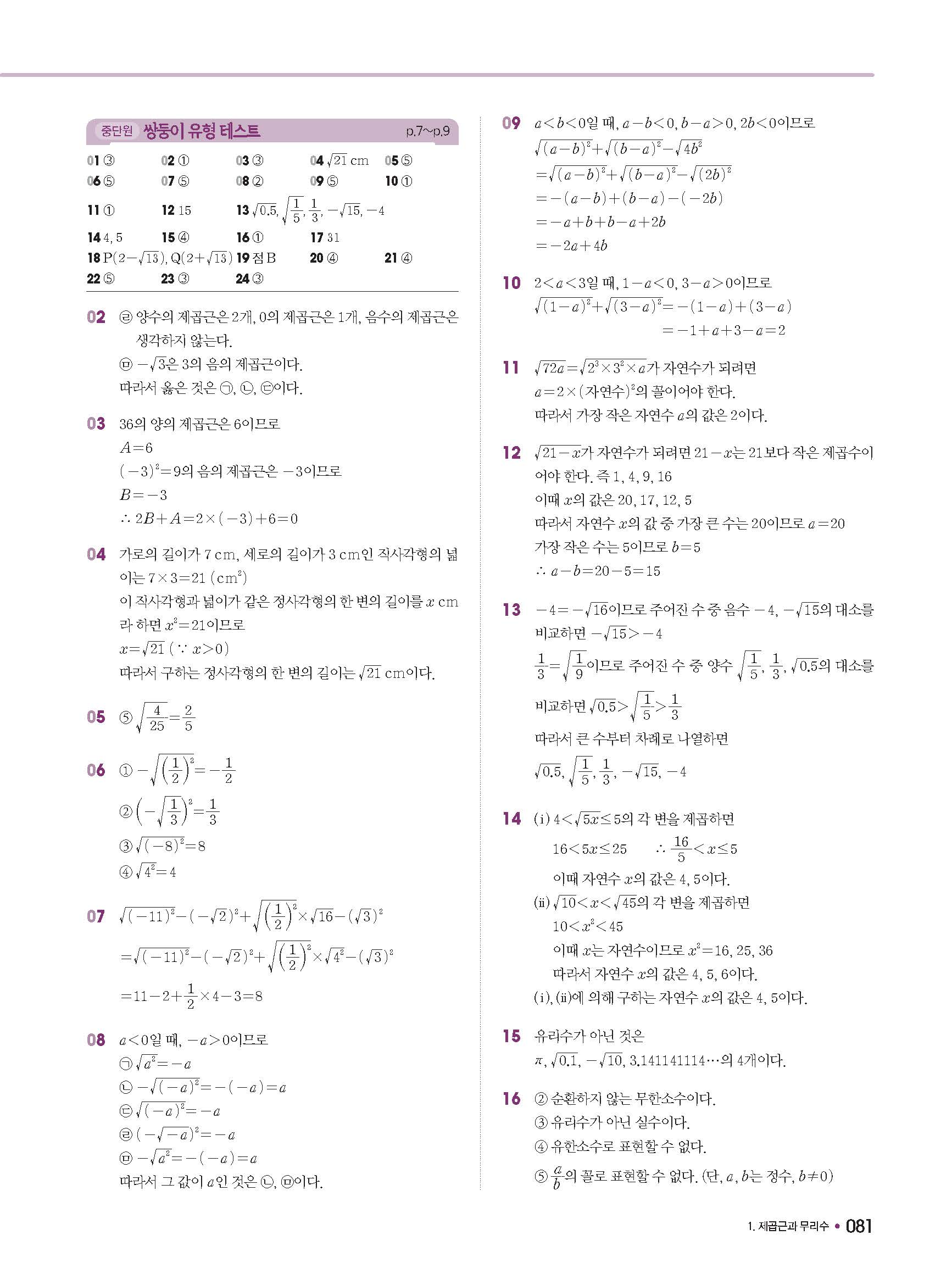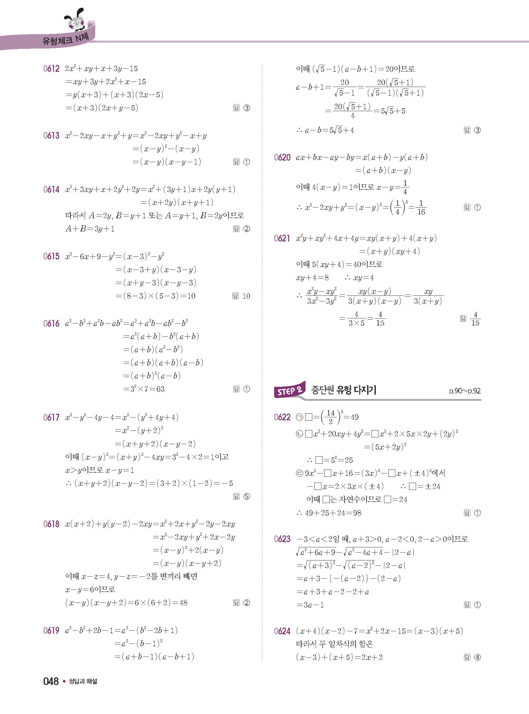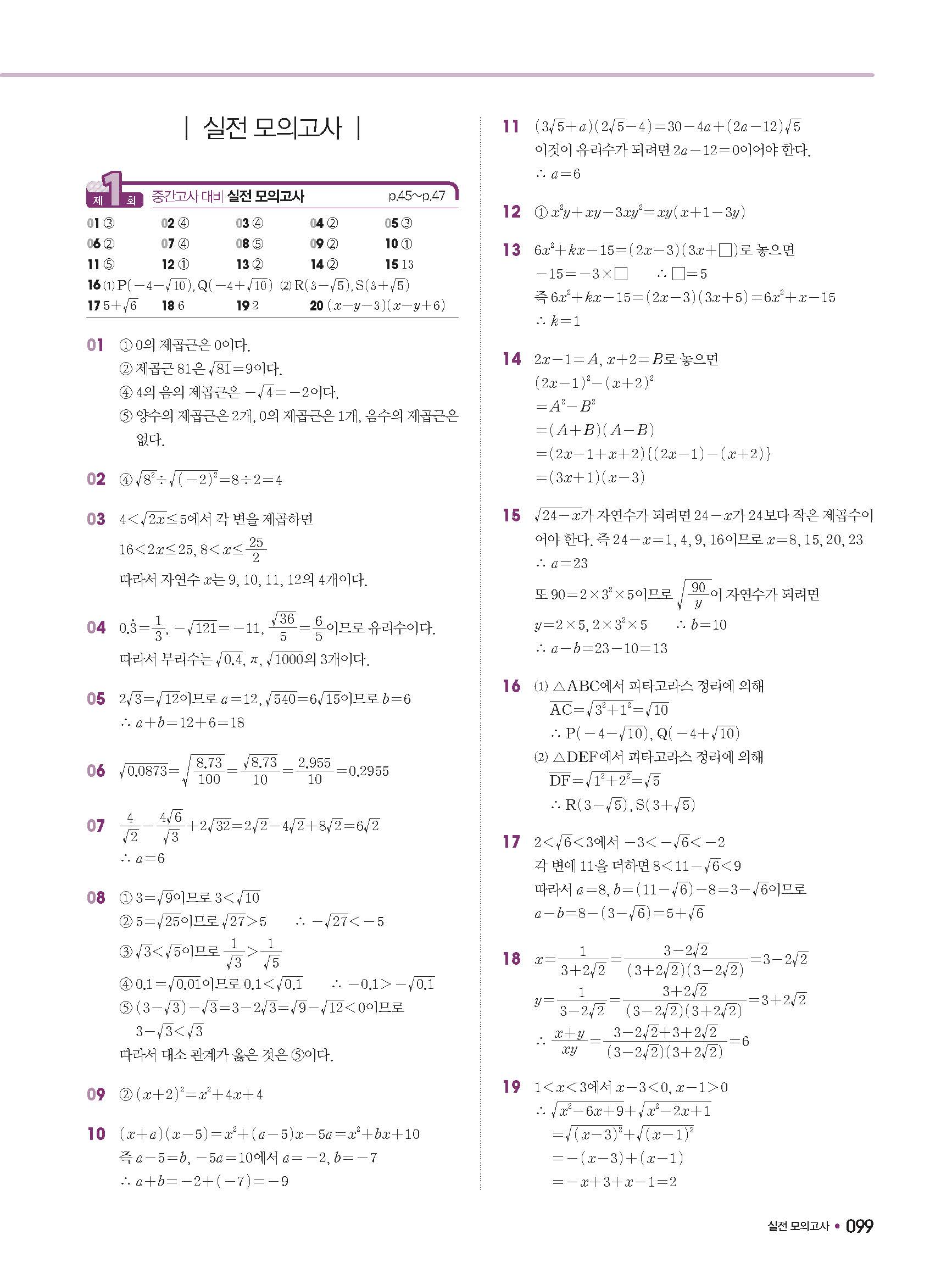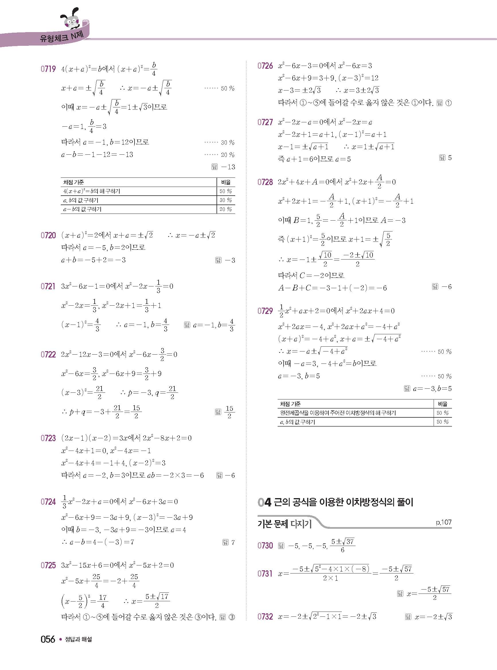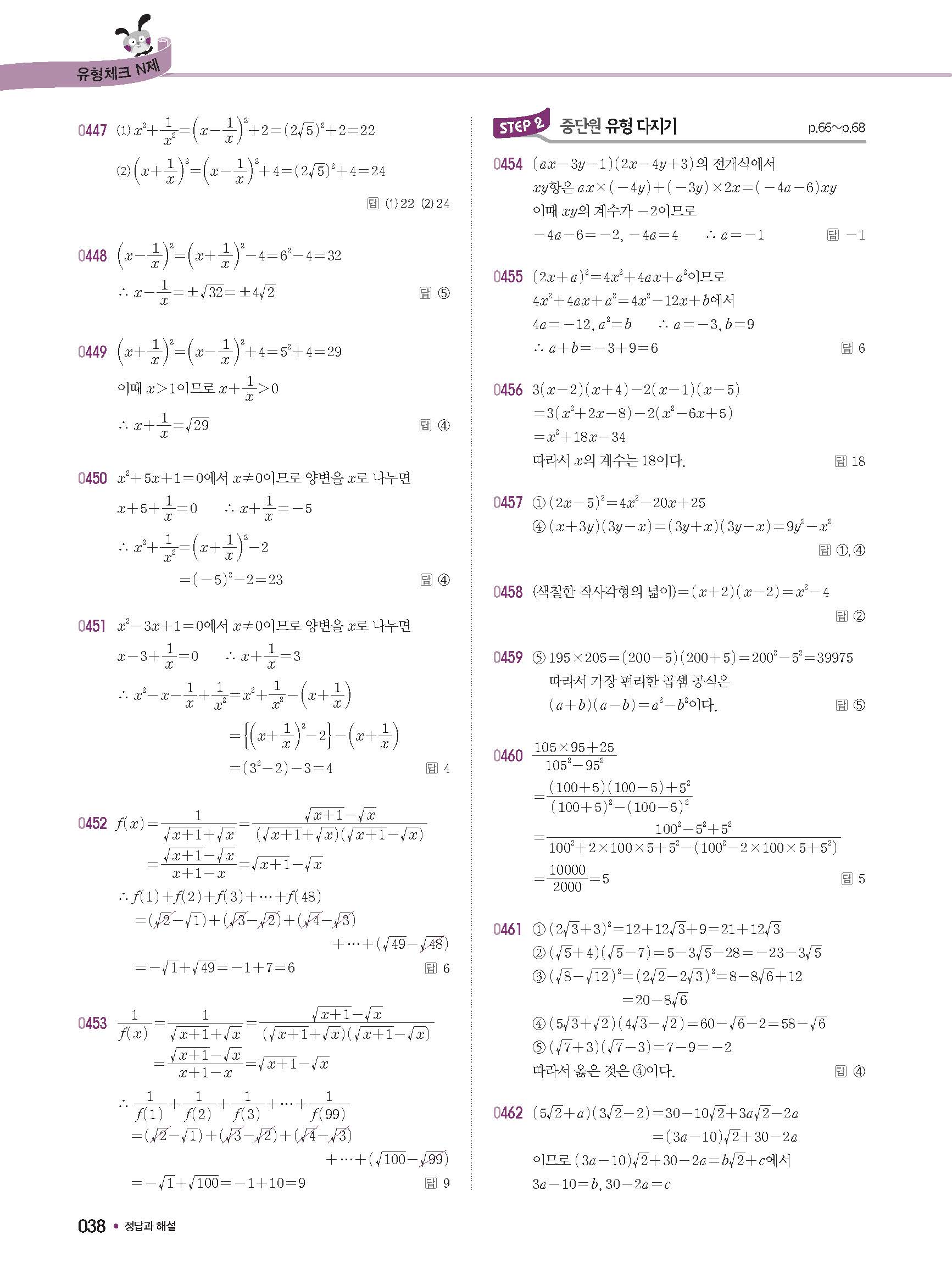 체크체크 중등수학 유형엔제 중3상 3-1 답지 해설 사진답지 빠른답지 모바일최적화