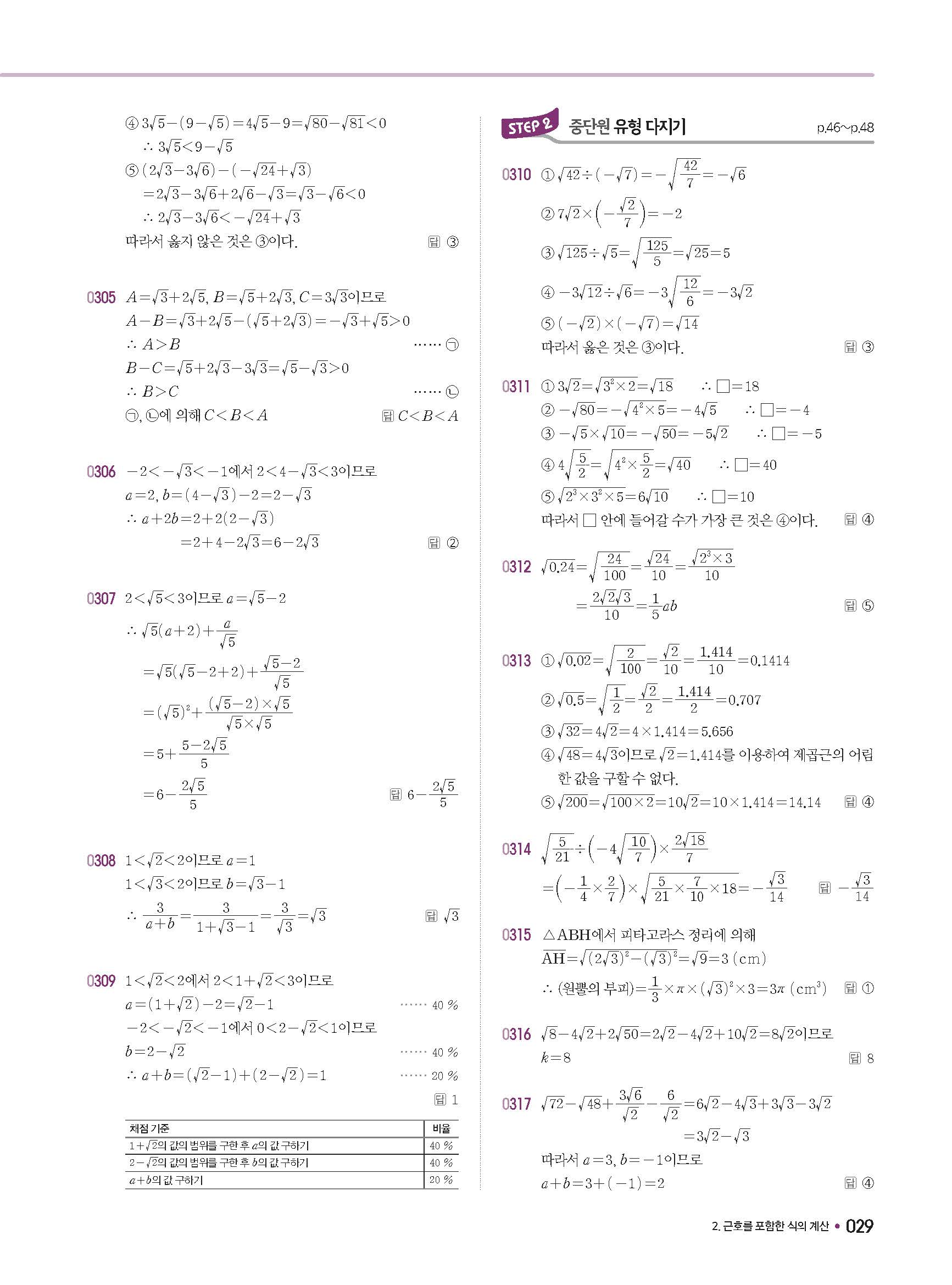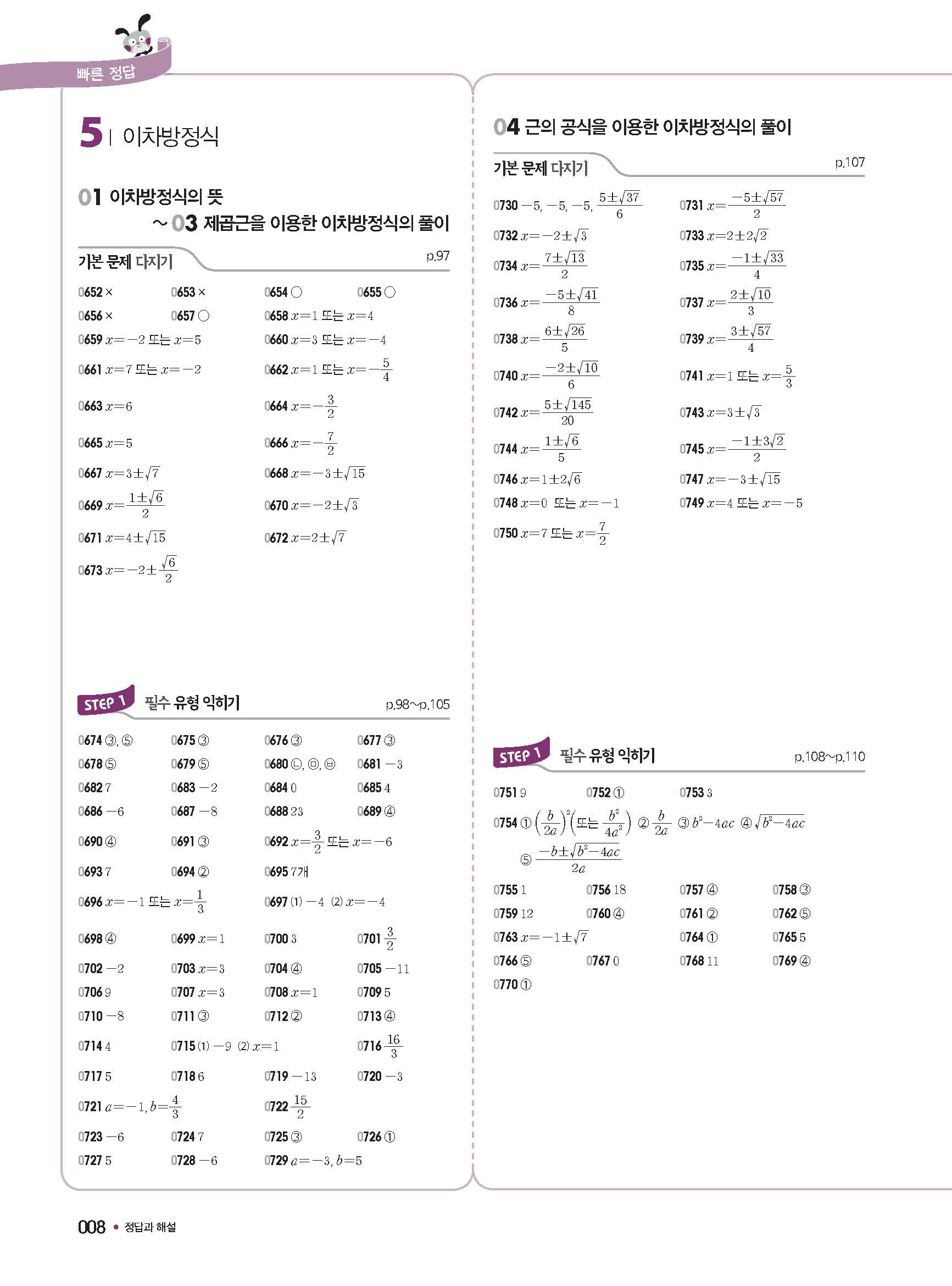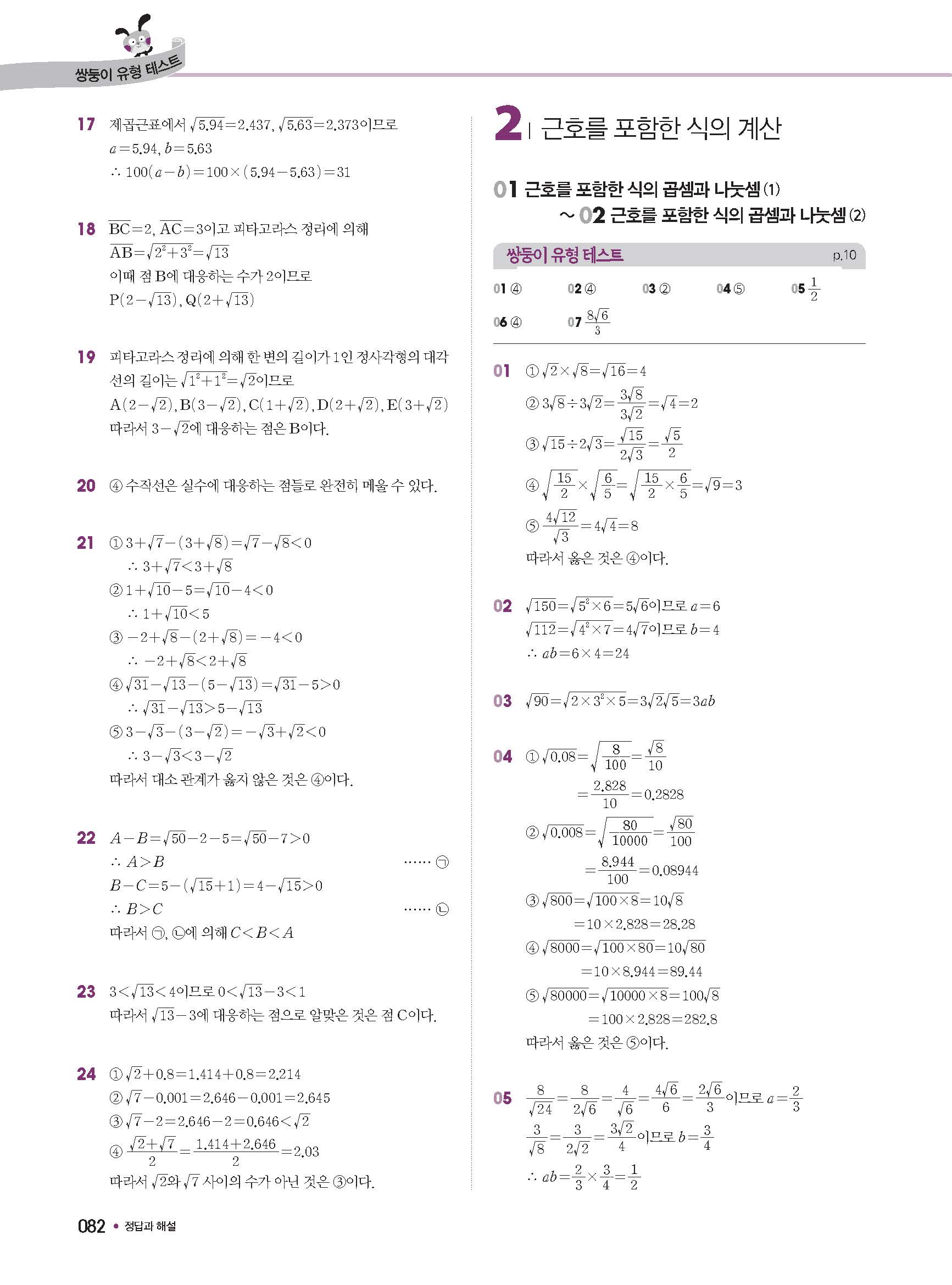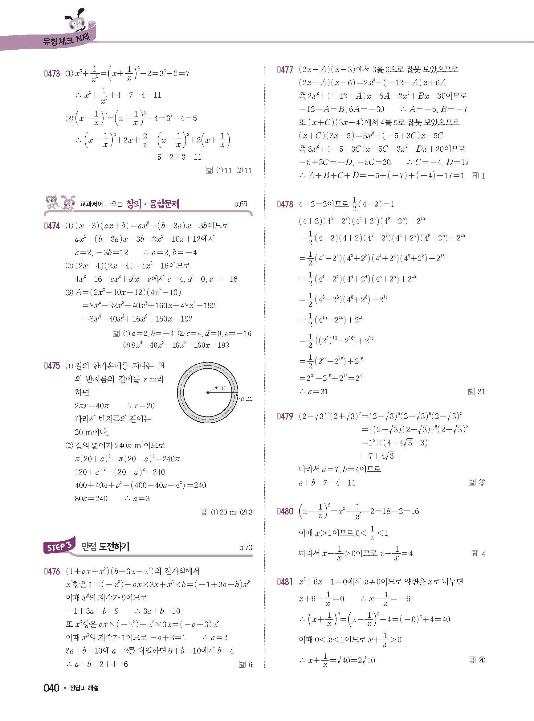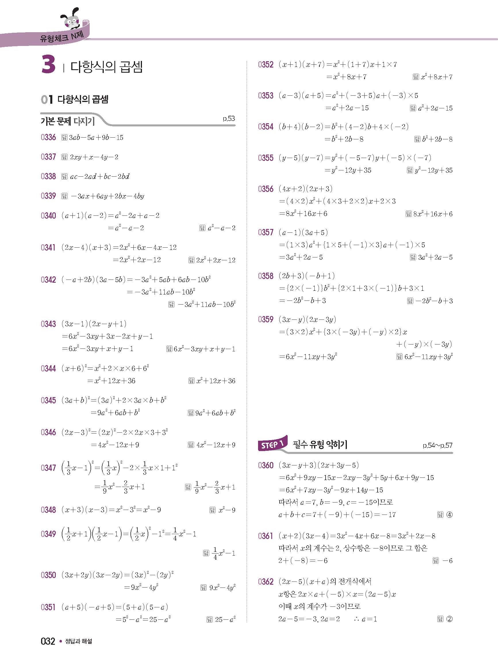 체크체크 중등수학 유형엔제 중3상 3-1 답지 해설 사진답지 빠른답지 모바일최적화