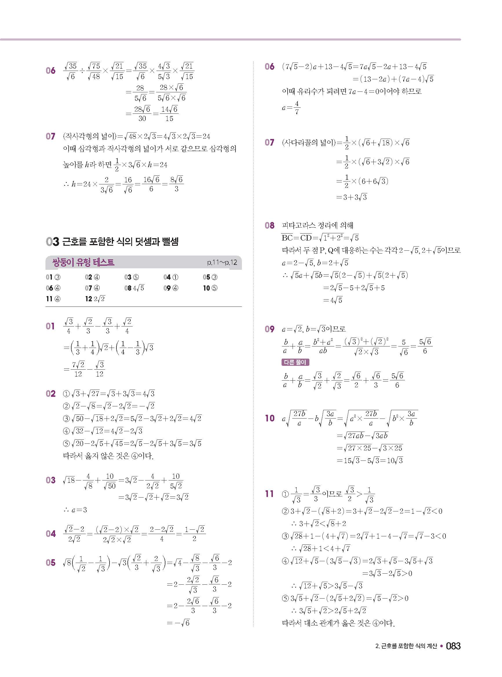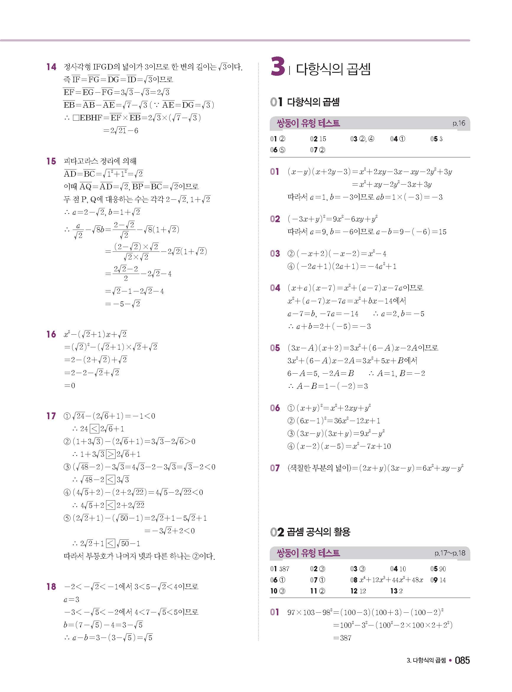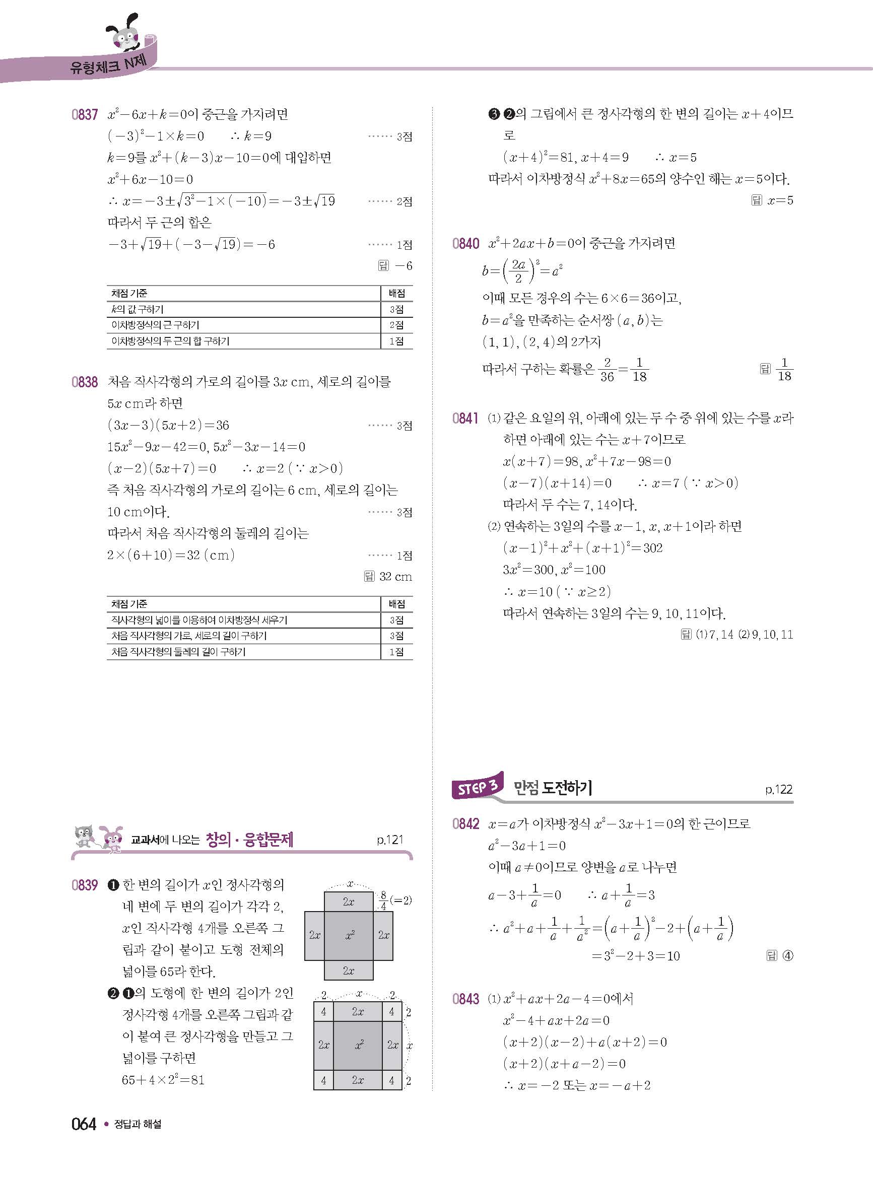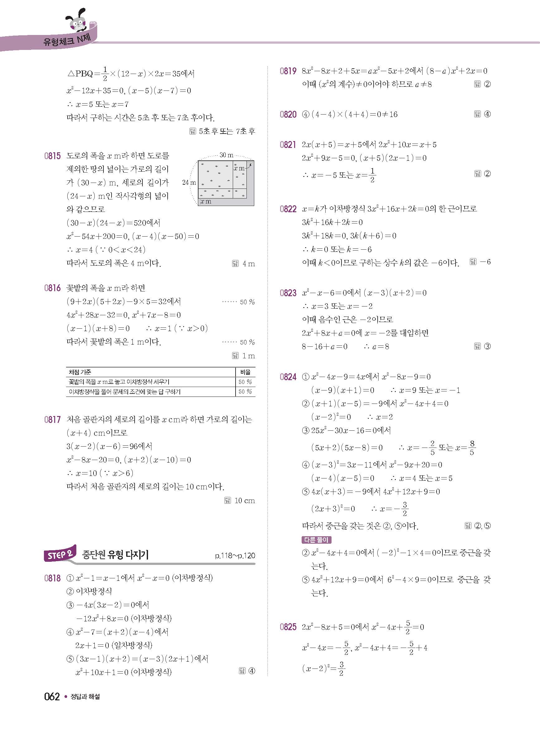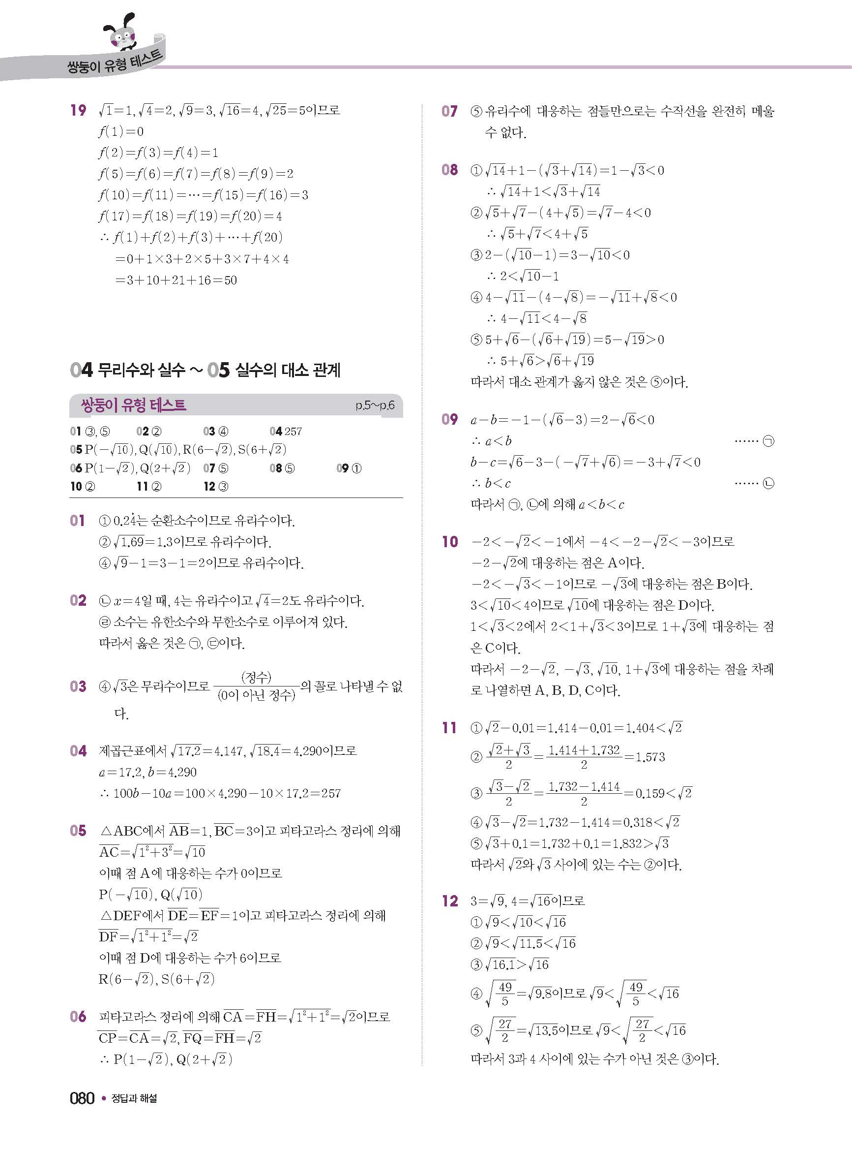 체크체크 중등수학 유형엔제 중3상 3-1 답지 해설 사진답지 빠른답지 모바일최적화