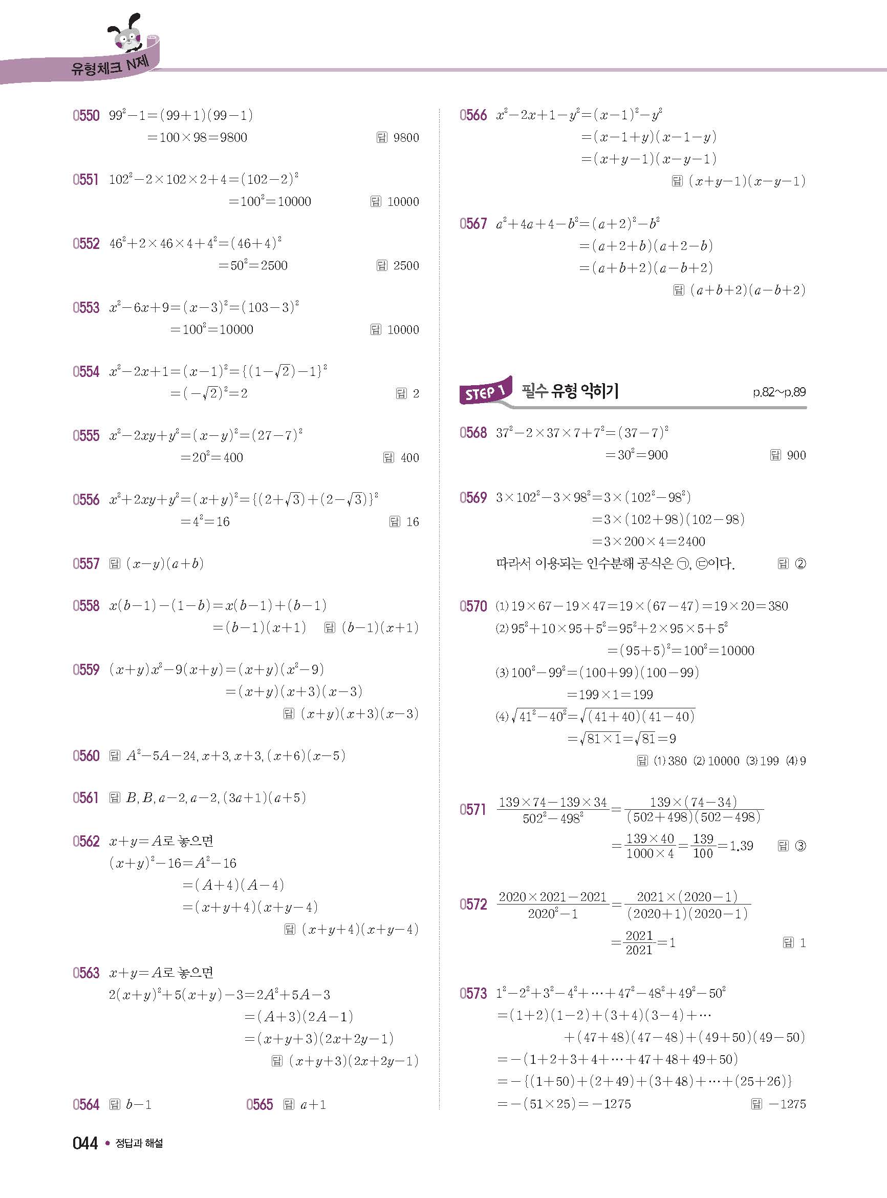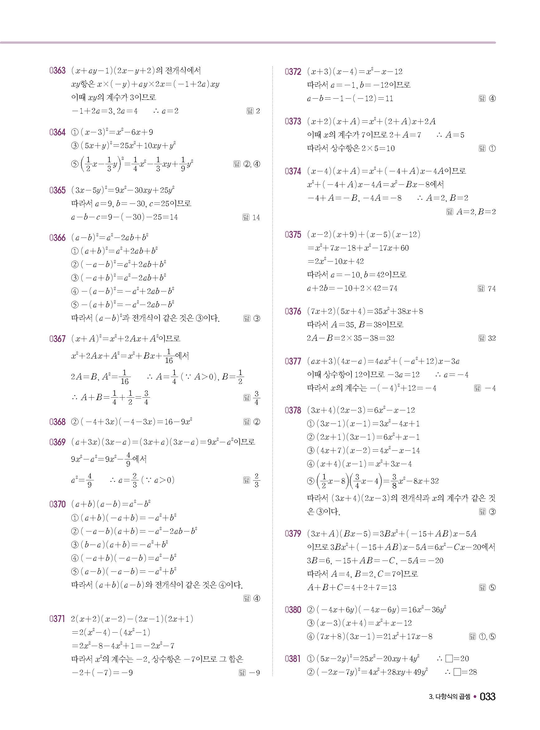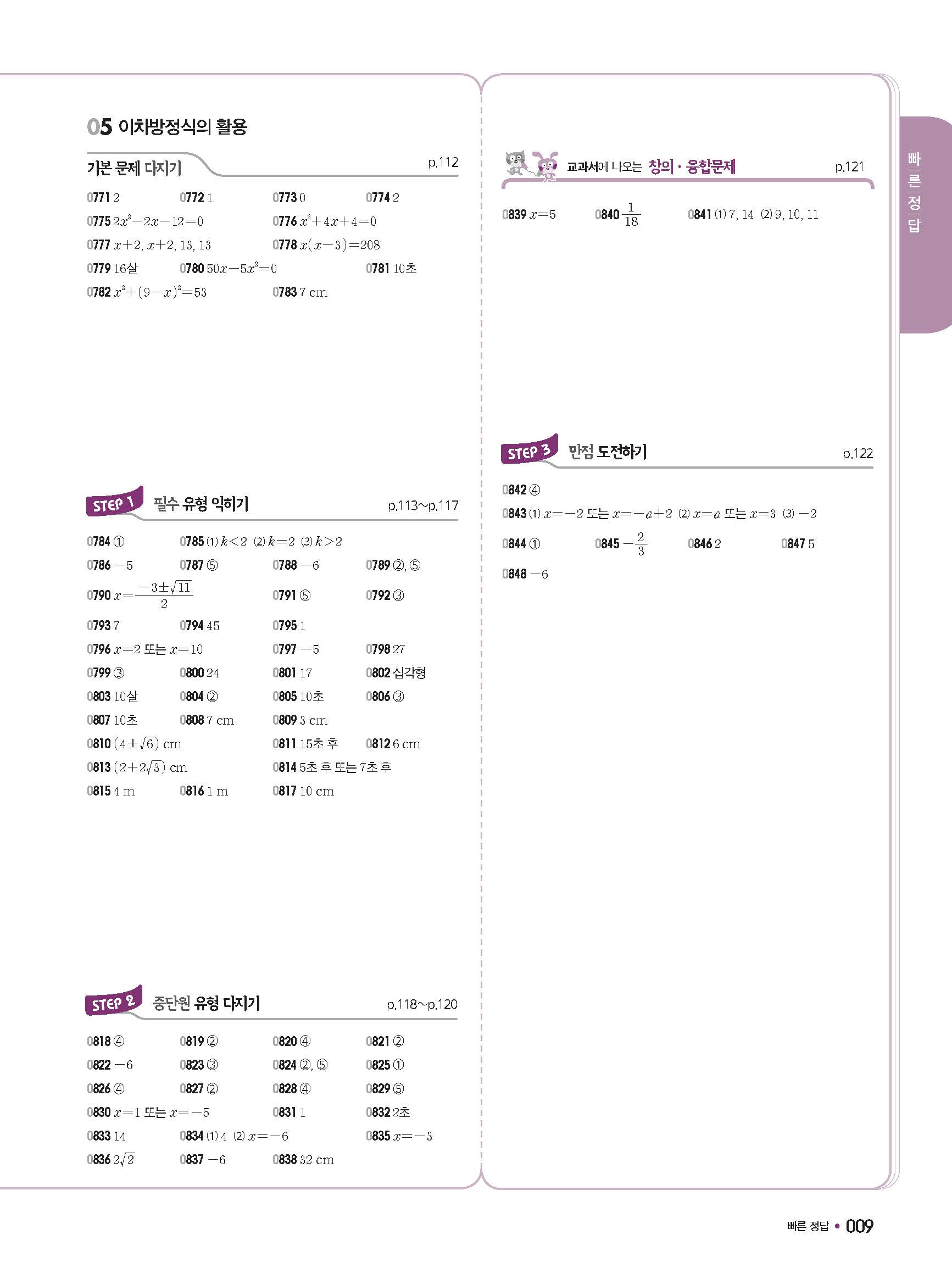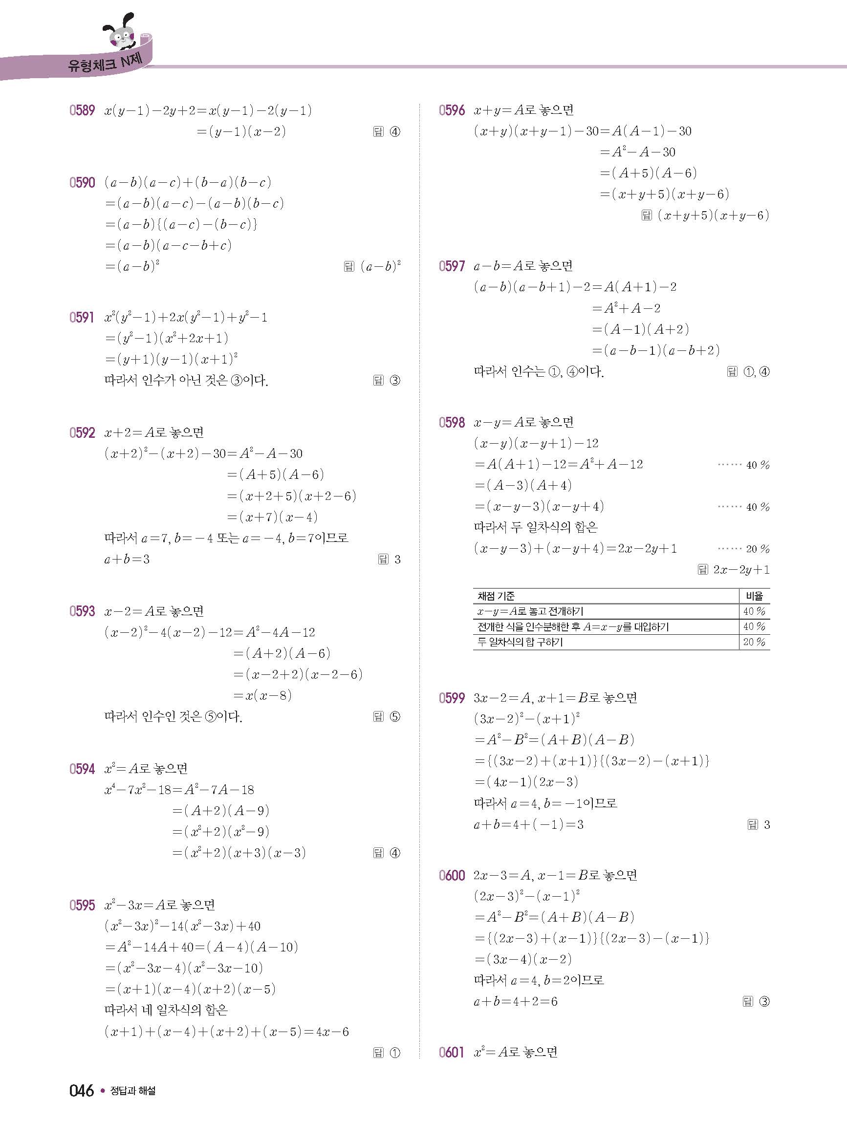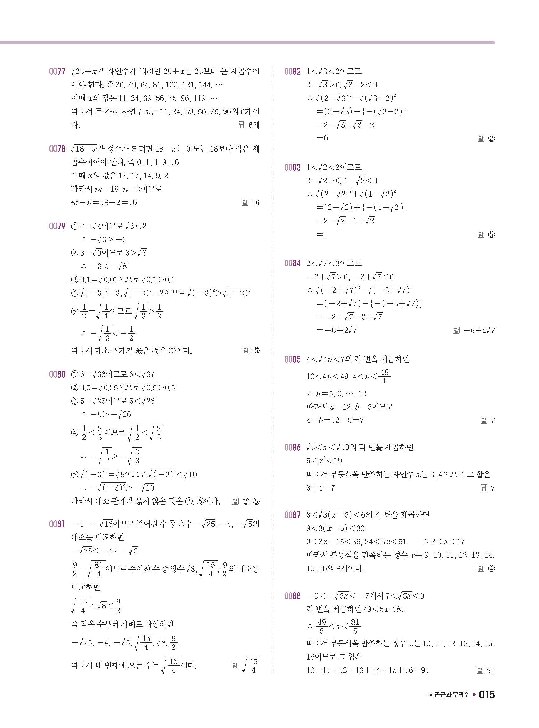 체크체크 중등수학 유형엔제 중3상 3-1 답지 해설 사진답지 빠른답지 모바일최적화