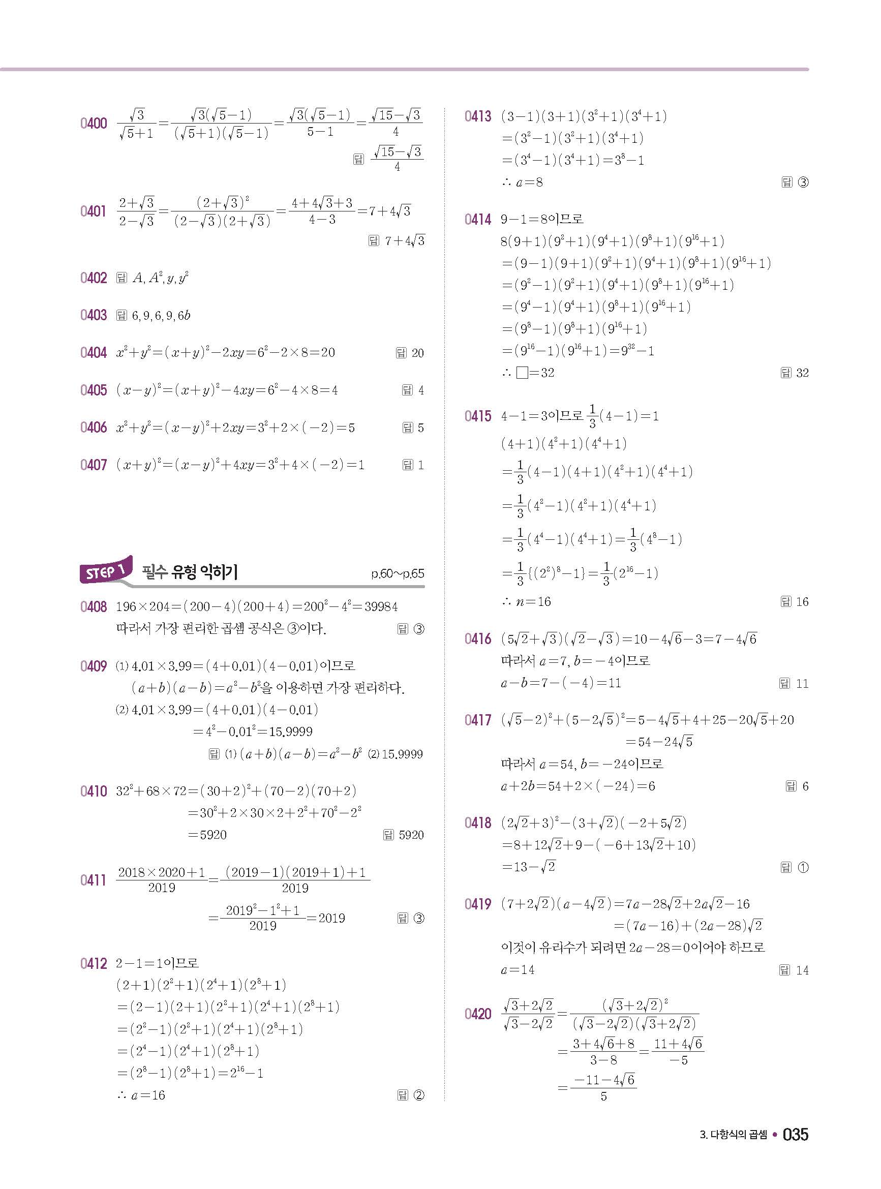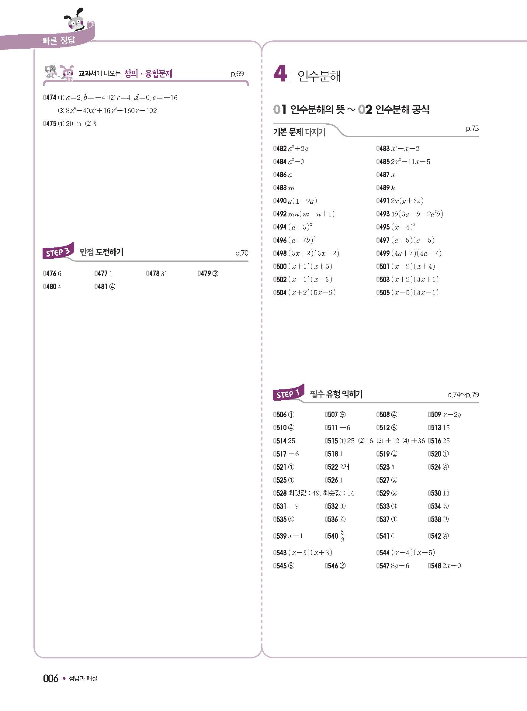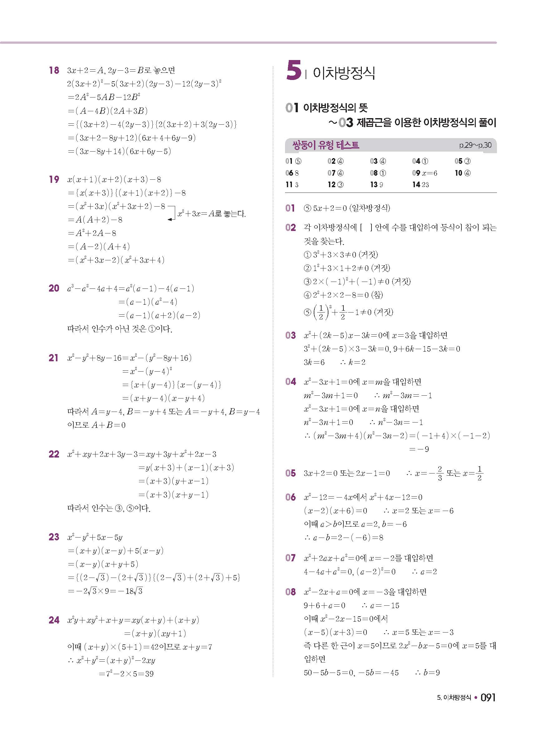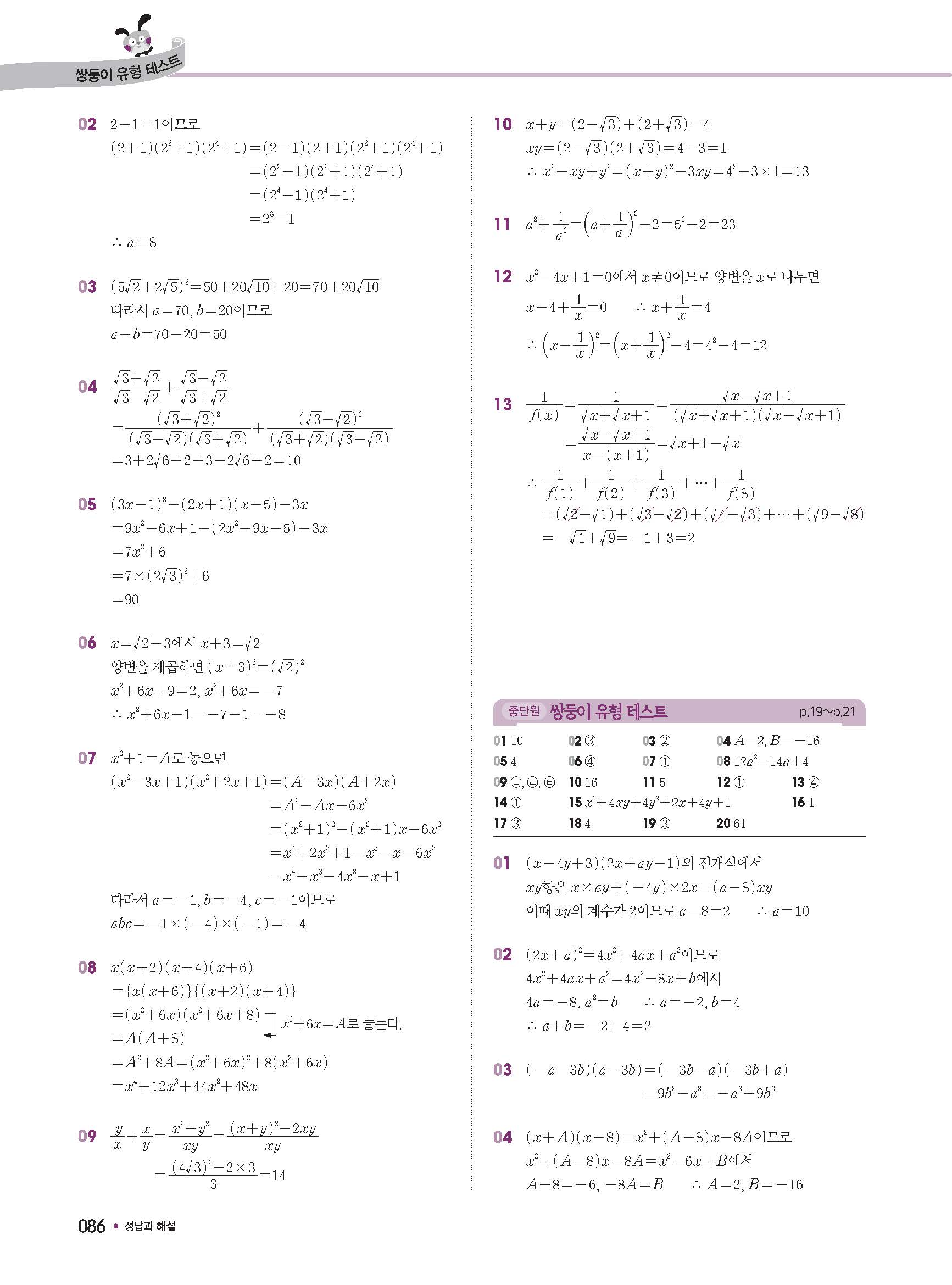 체크체크 중등수학 유형엔제 중3상 3-1 답지 해설 사진답지 빠른답지 모바일최적화