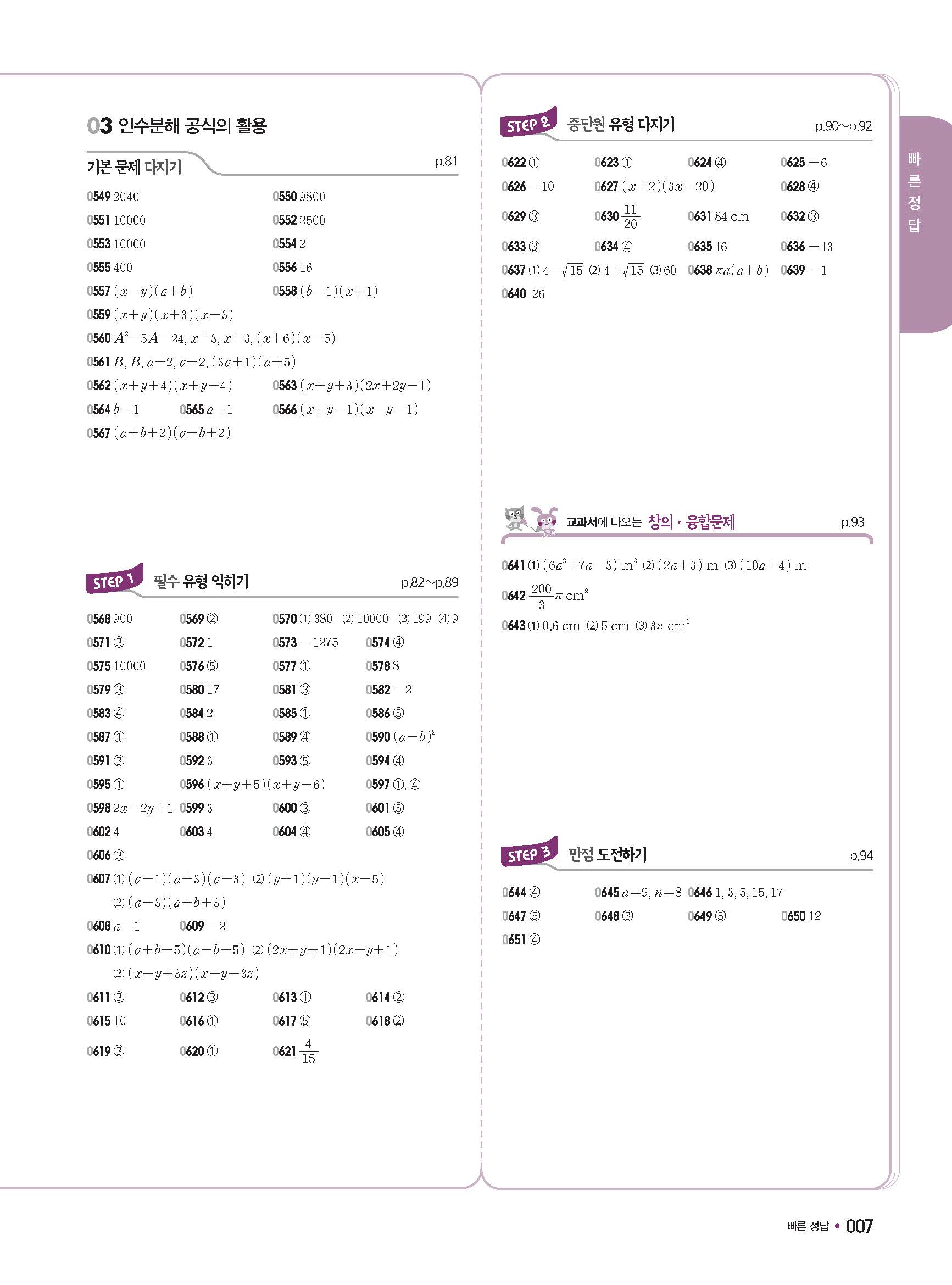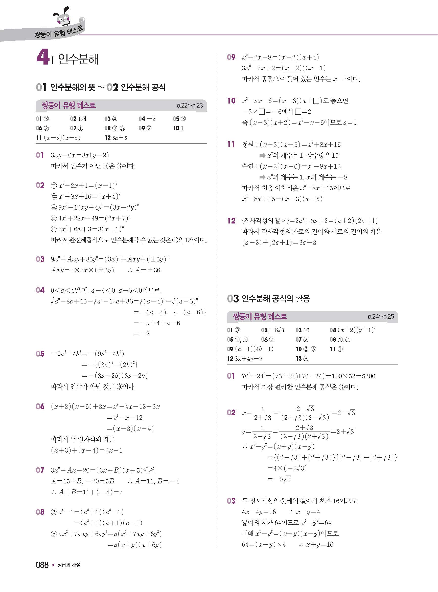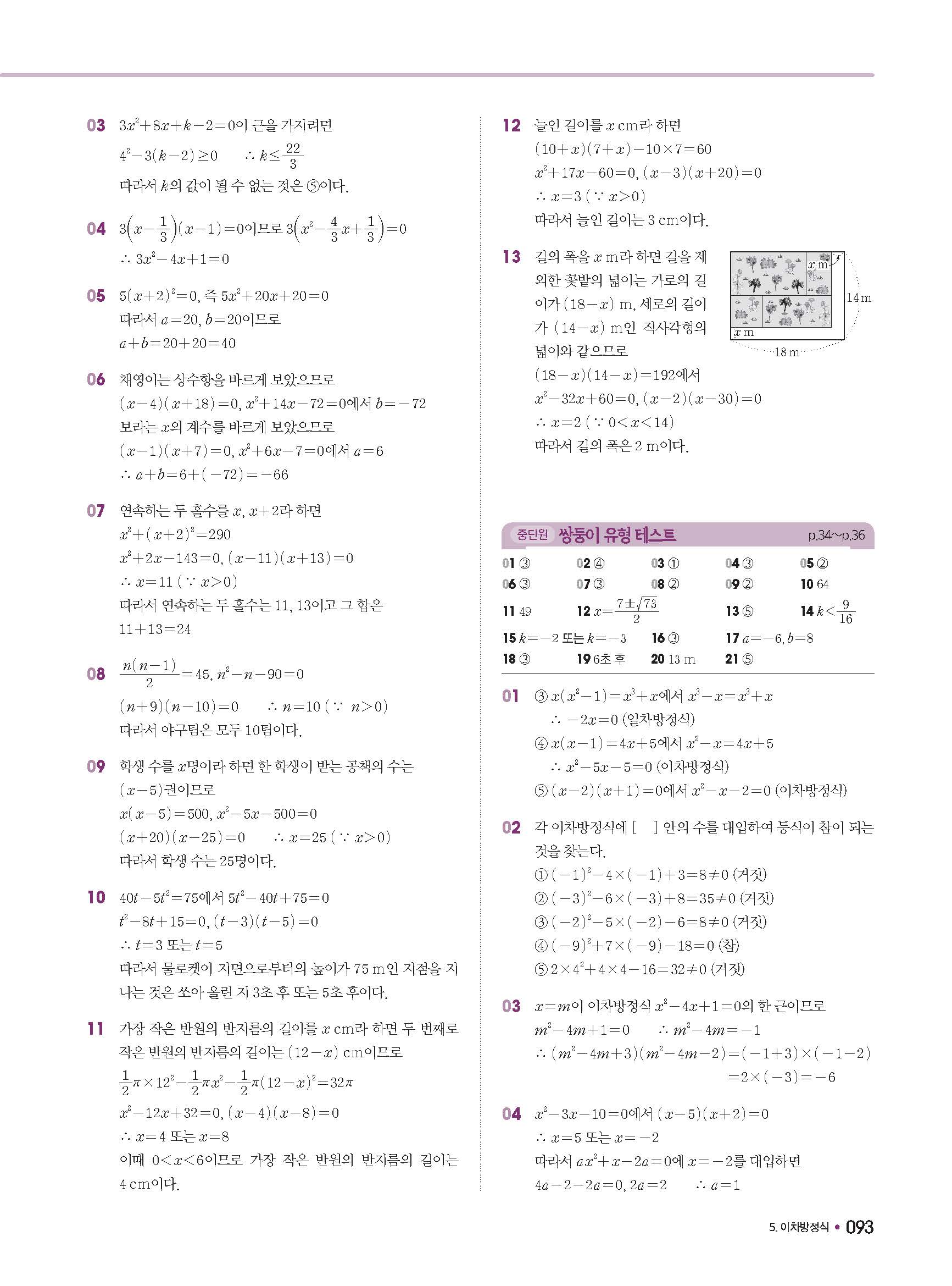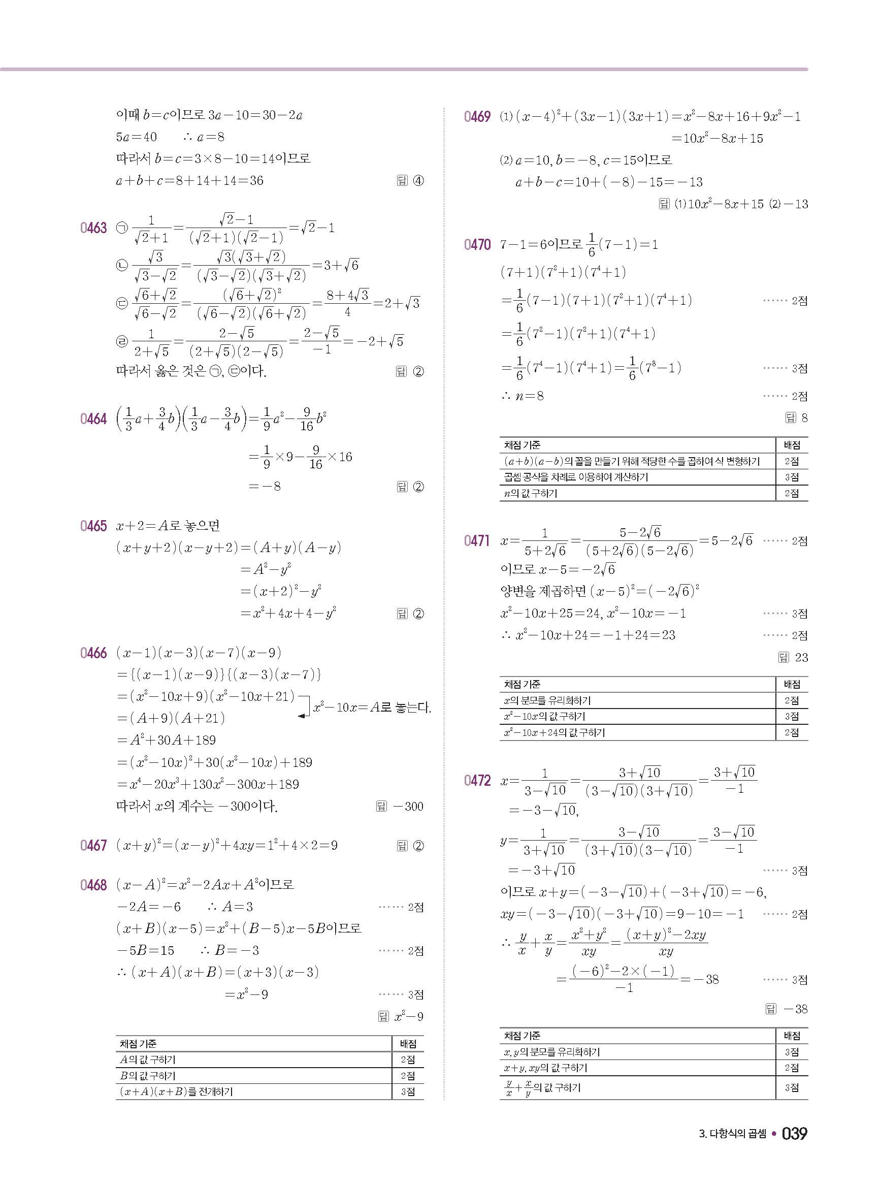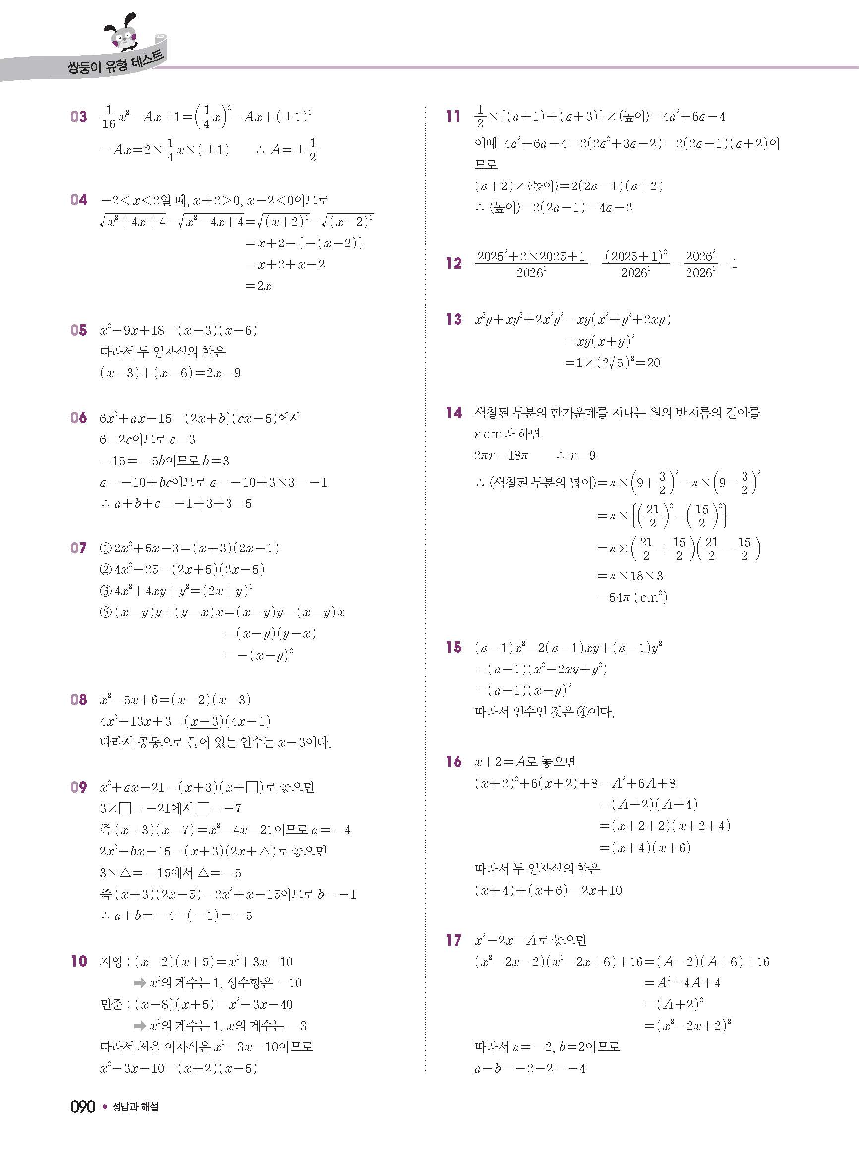 체크체크 중등수학 유형엔제 중3상 3-1 답지 해설 사진답지 빠른답지 모바일최적화