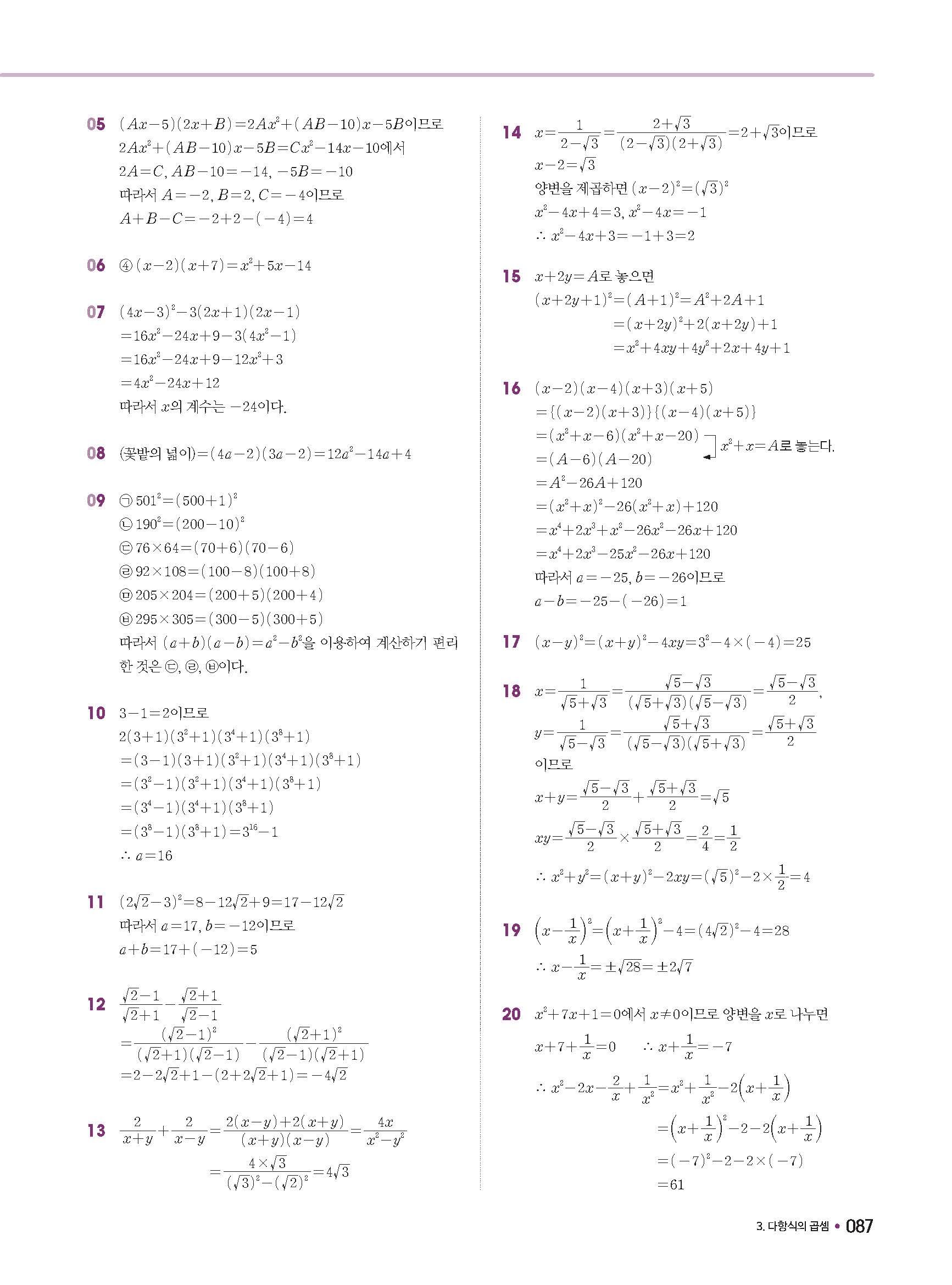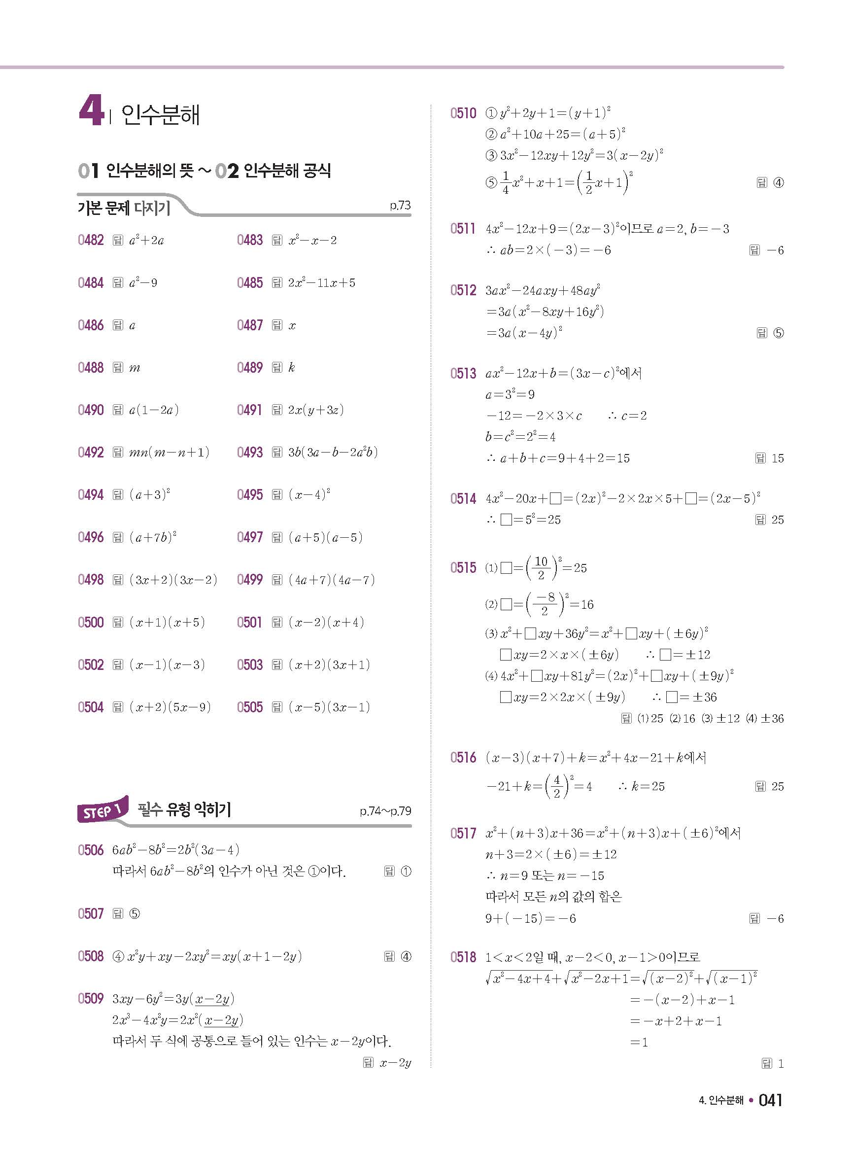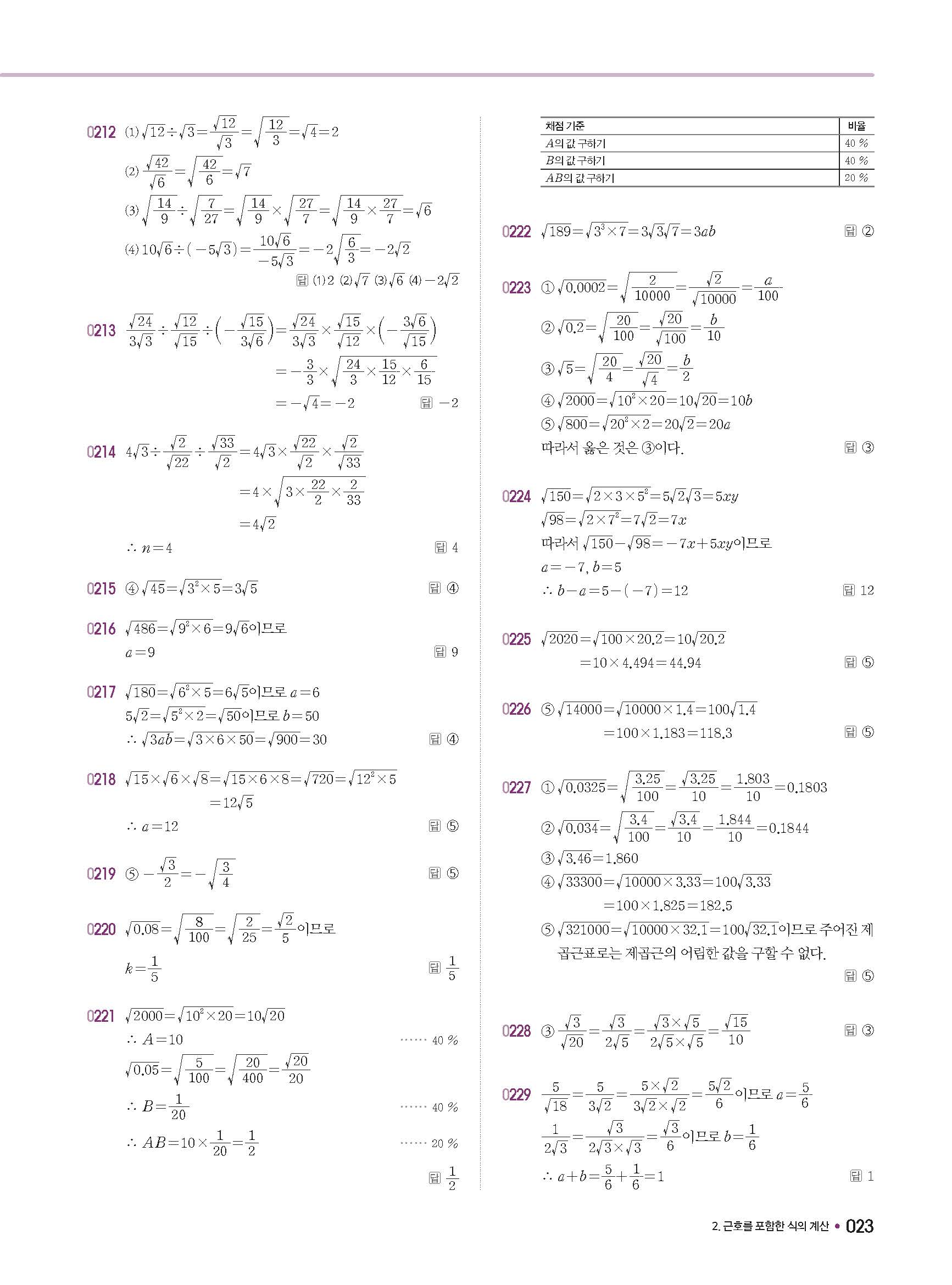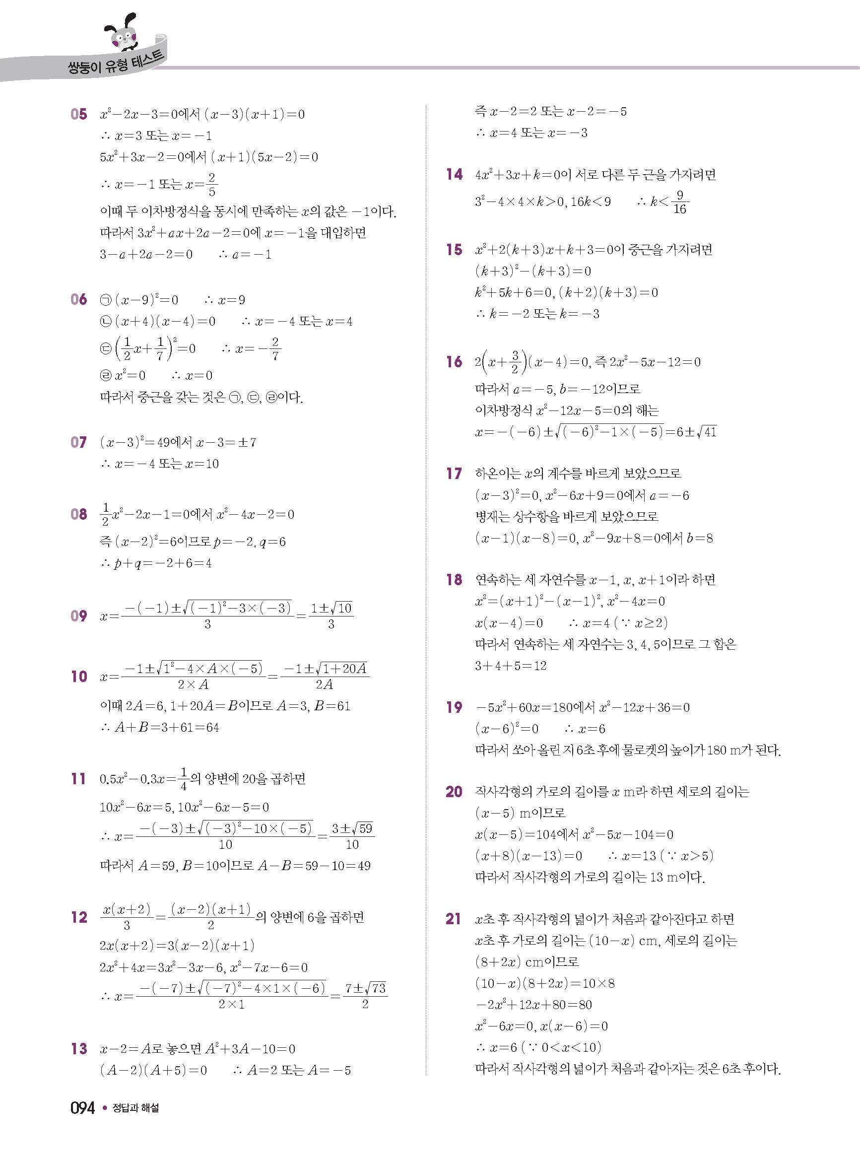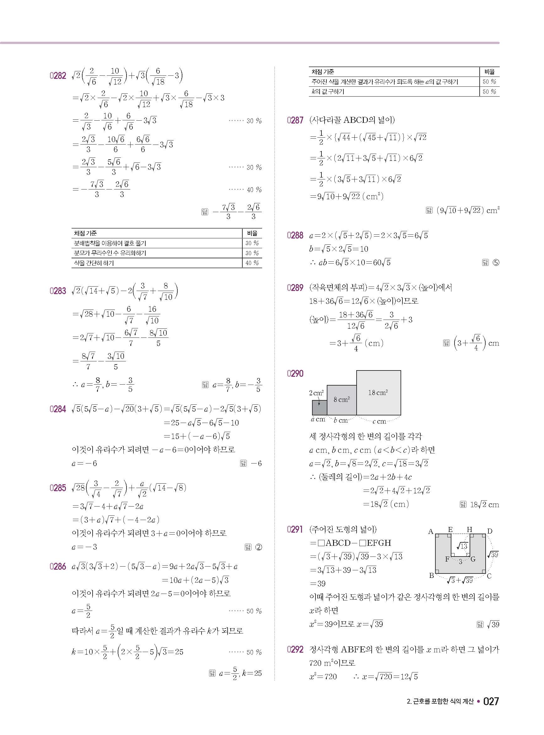 체크체크 중등수학 유형엔제 중3상 3-1 답지 해설 사진답지 빠른답지 모바일최적화